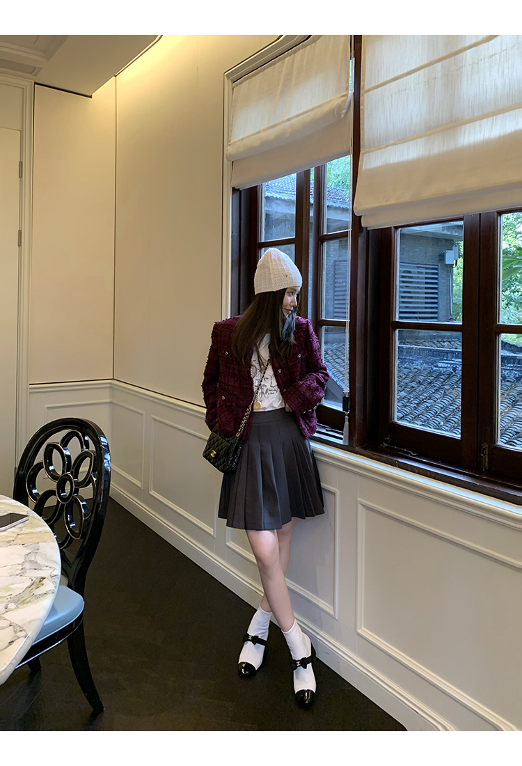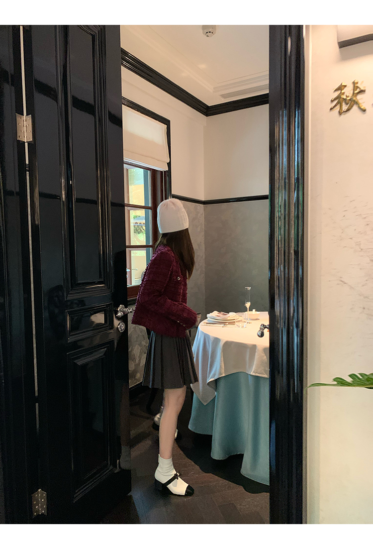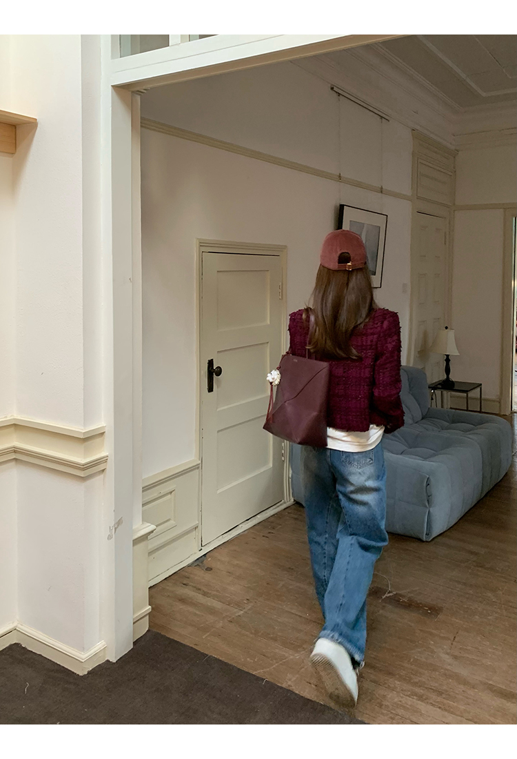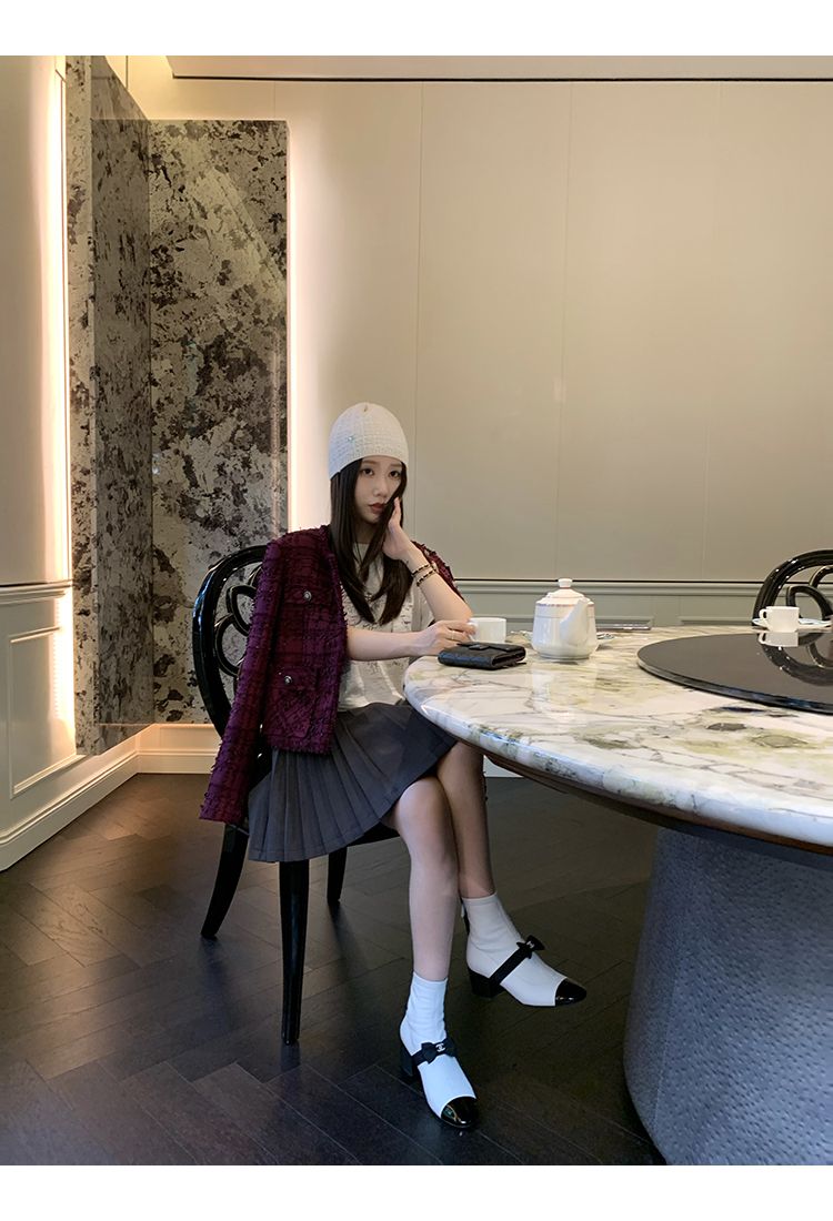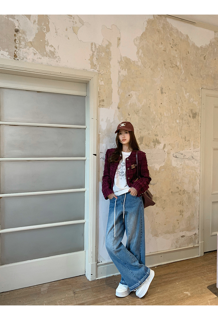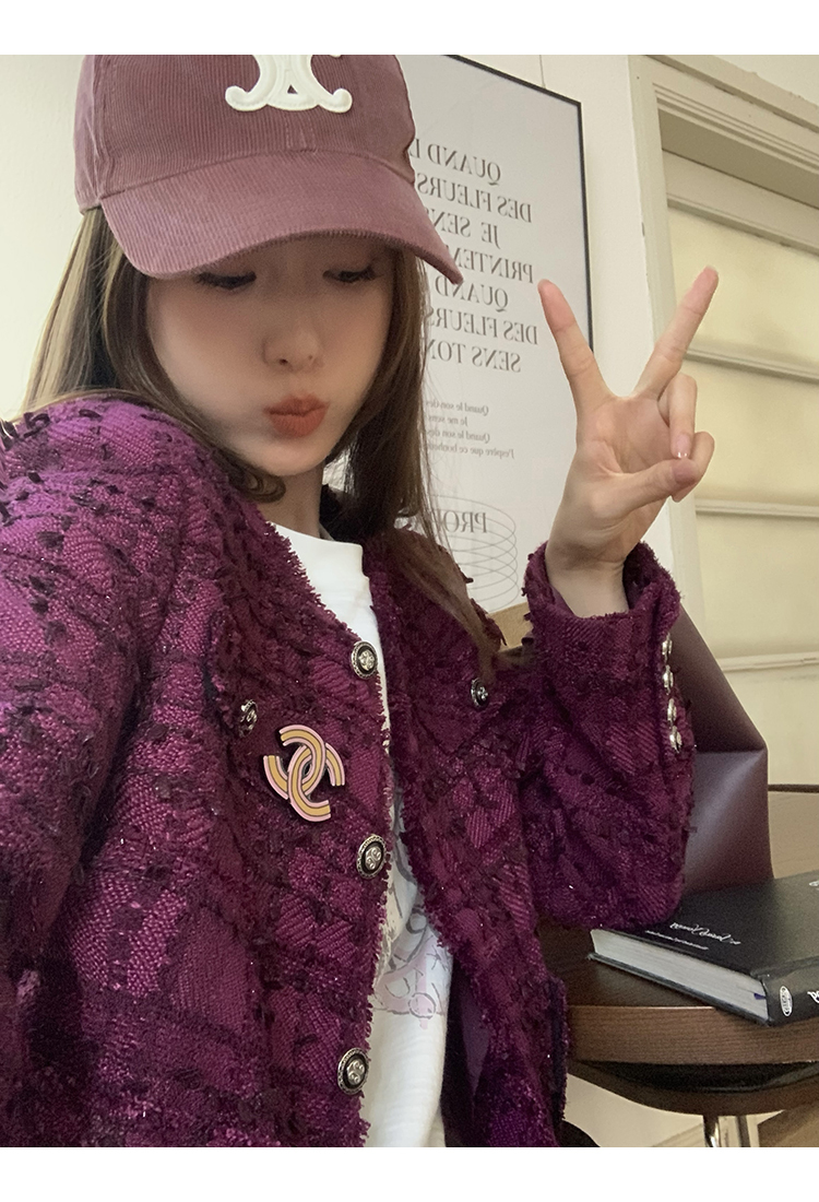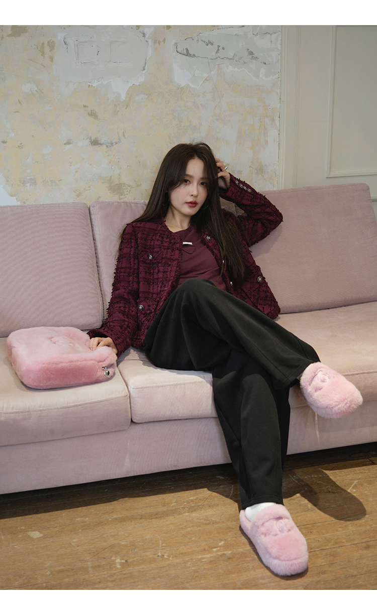 這款粗花呢短外套高芨顯質感,休閒的拉毛邊設計細節滿滿,
