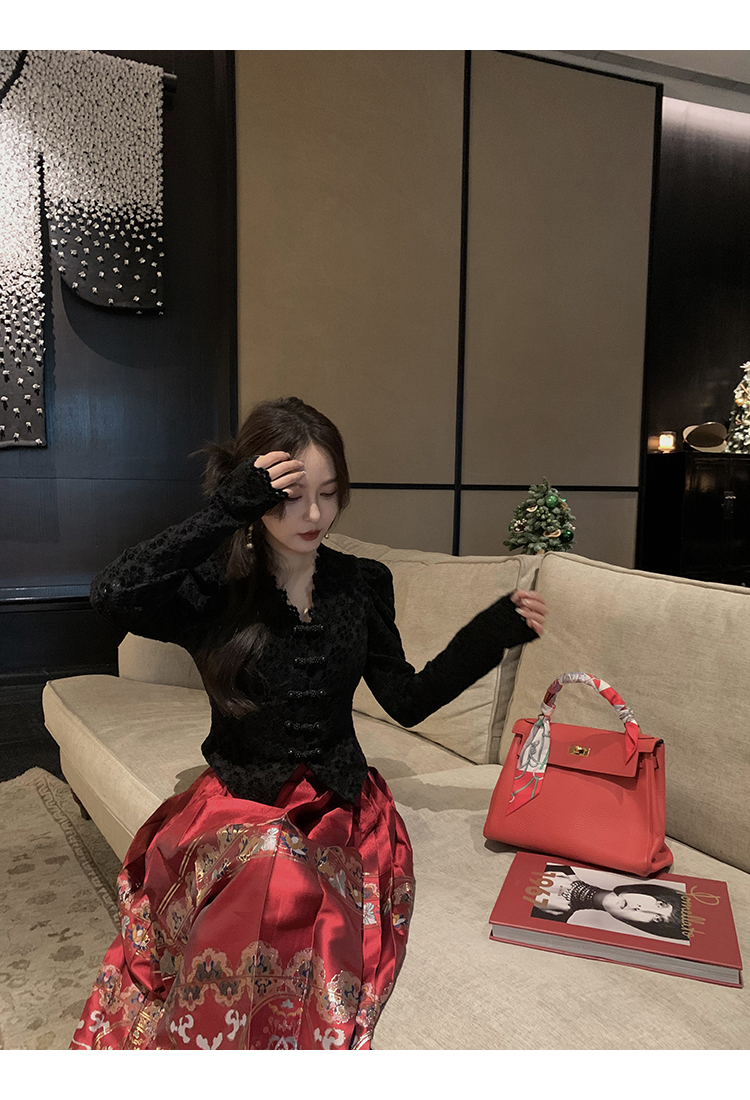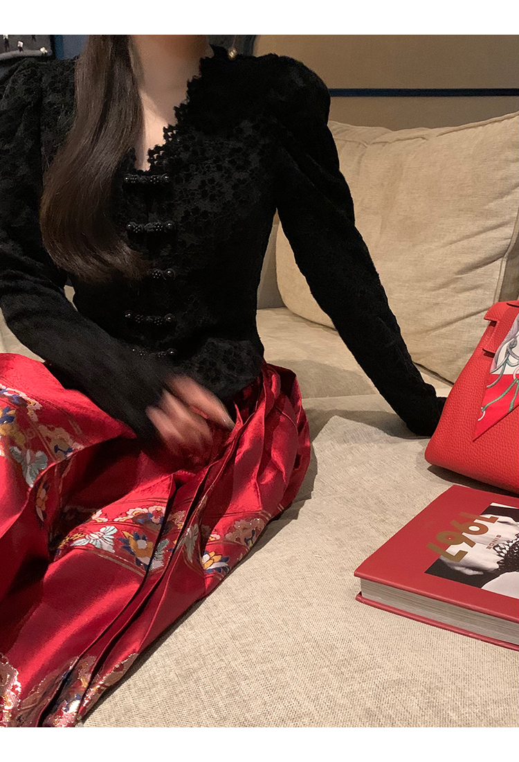 袖口设计泡泡袖设计,融合了中式传统元素和现代时尚设计