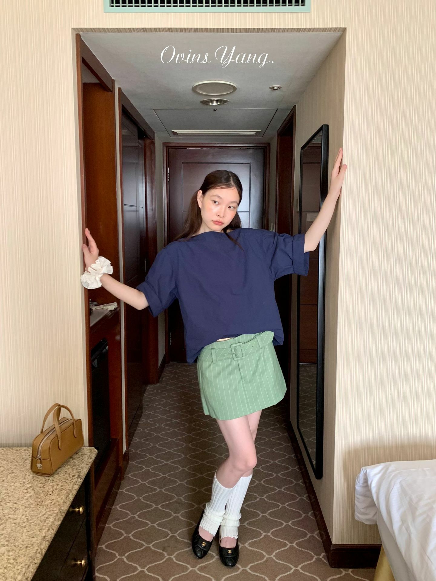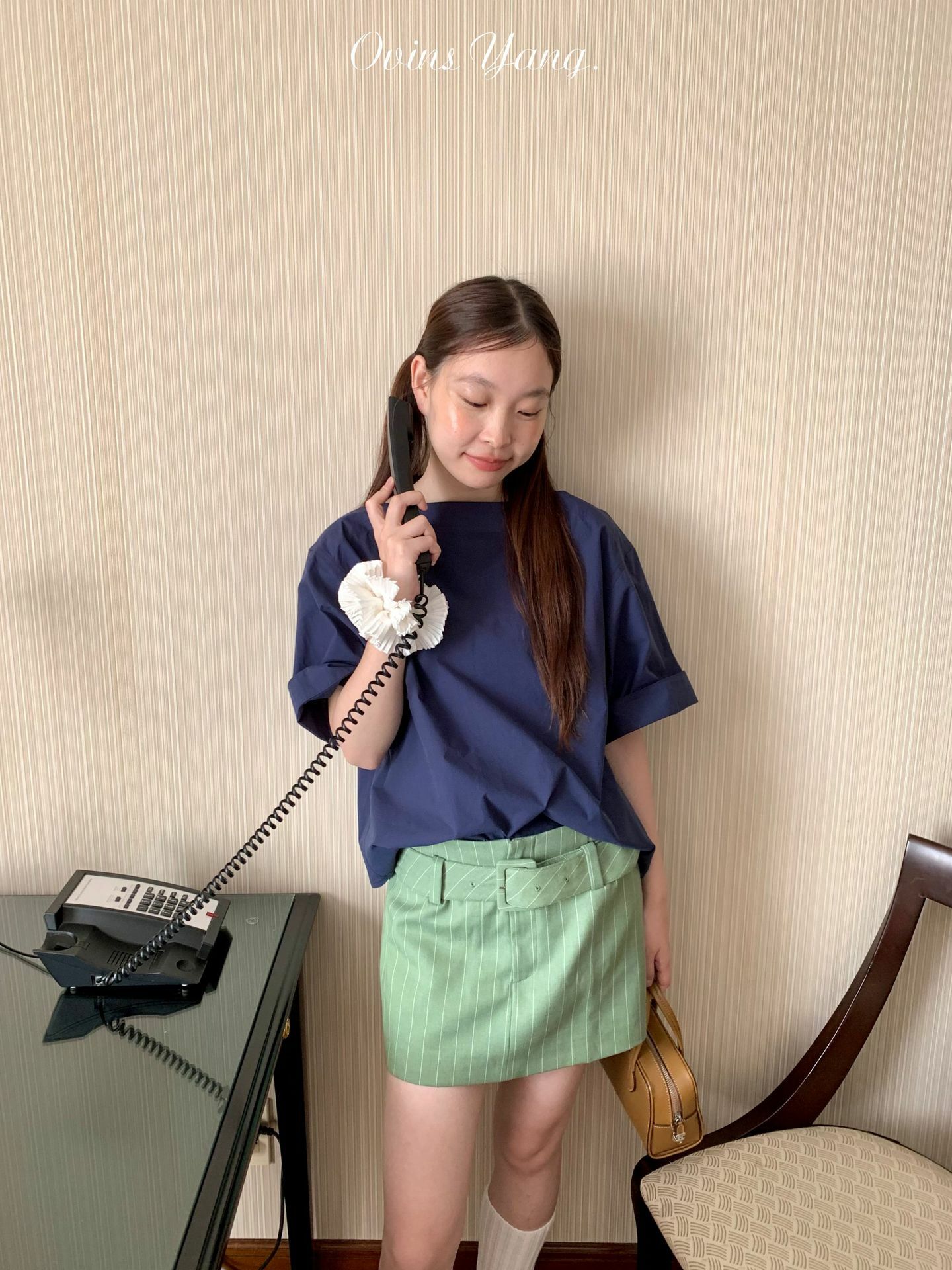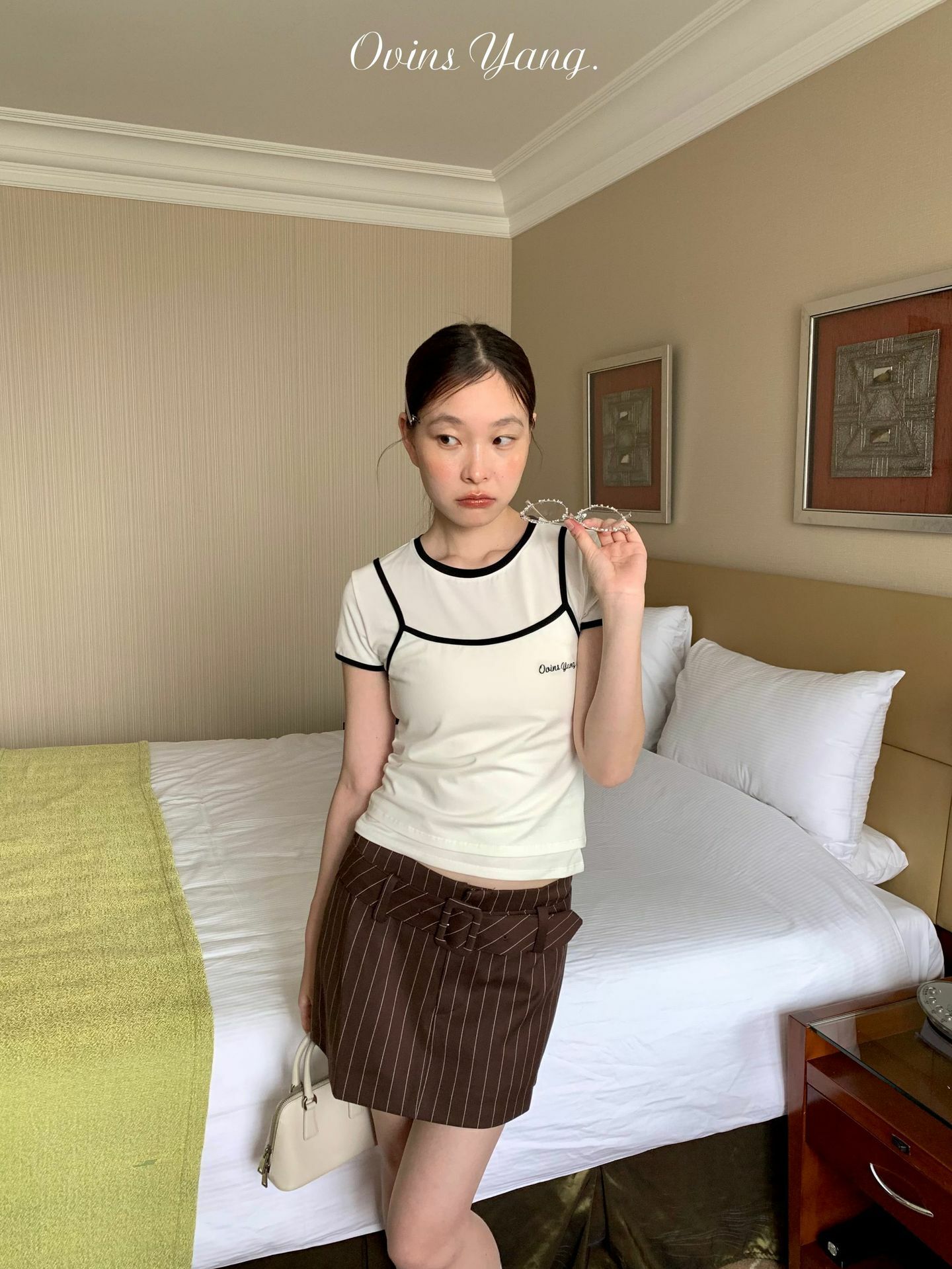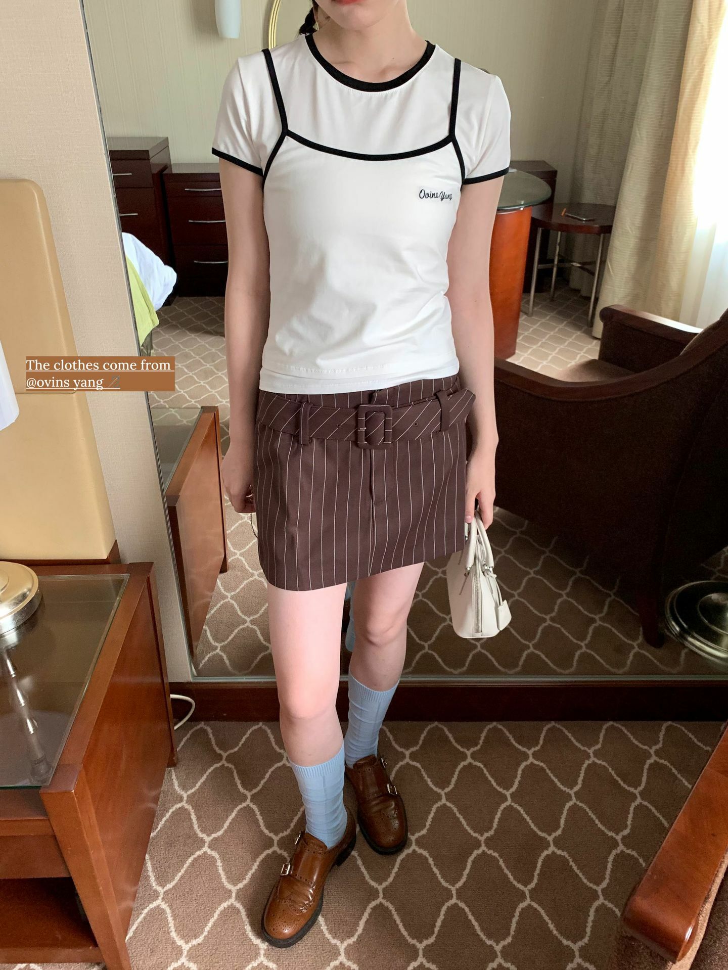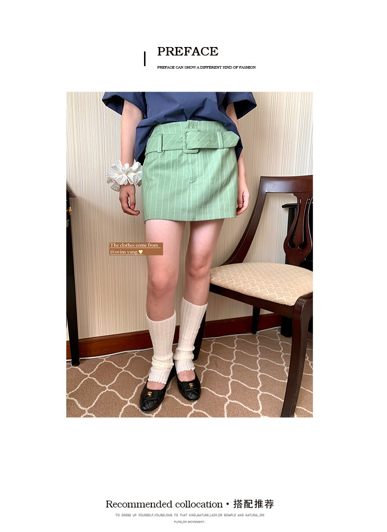 *o-ha-you*【FOY100021】條紋A字半身裙夏小個子通勤甜美風穿搭短裙子包臀裙-2色