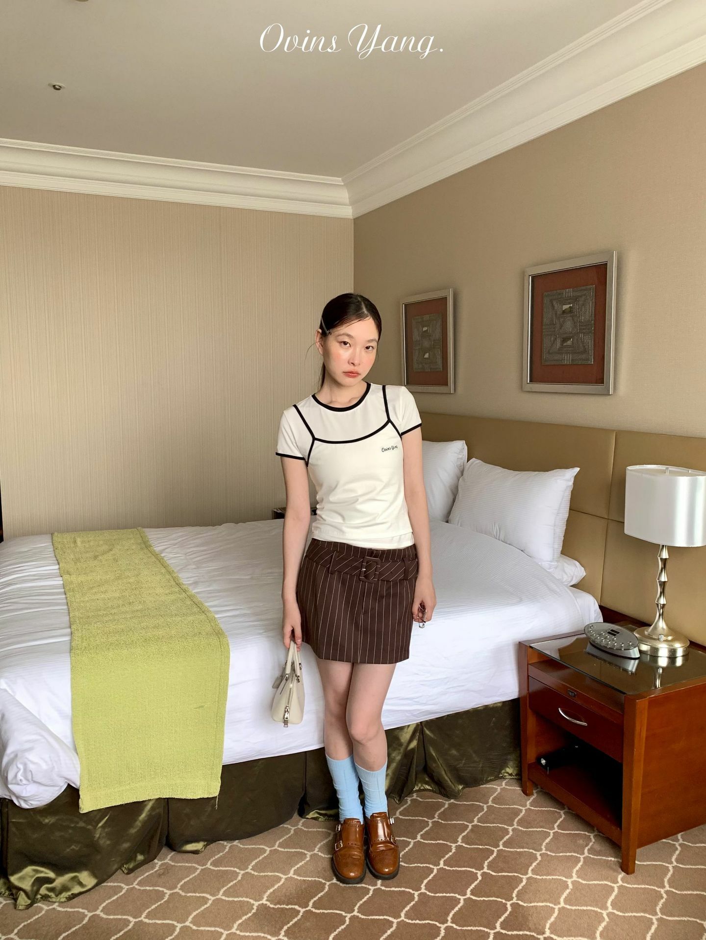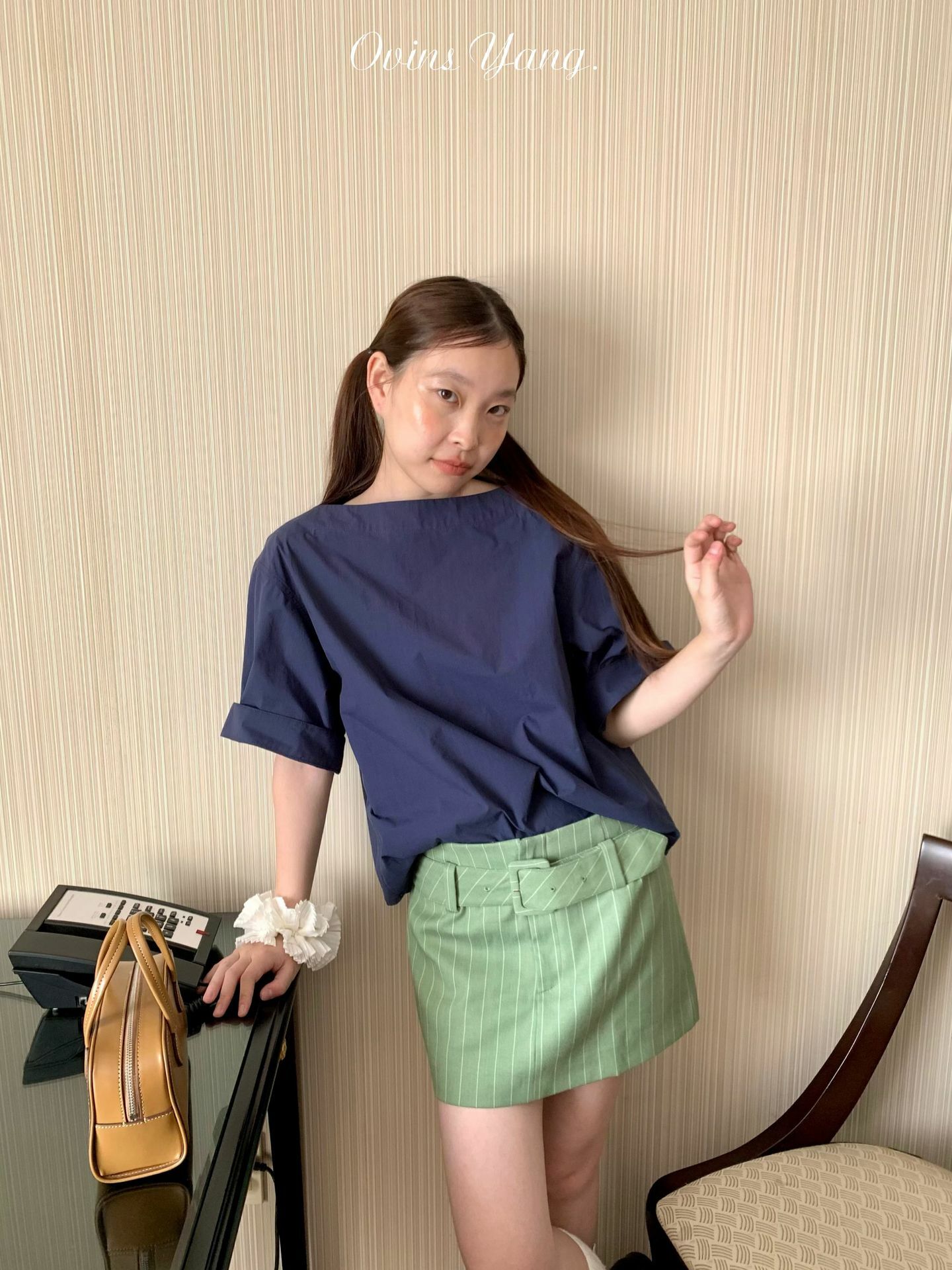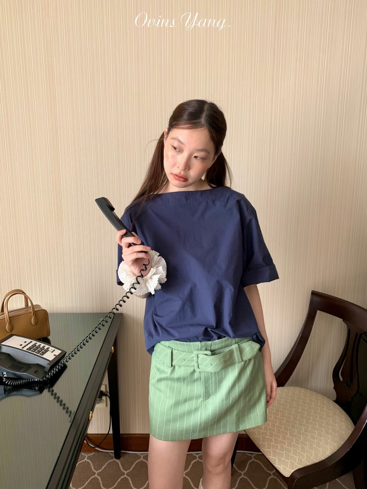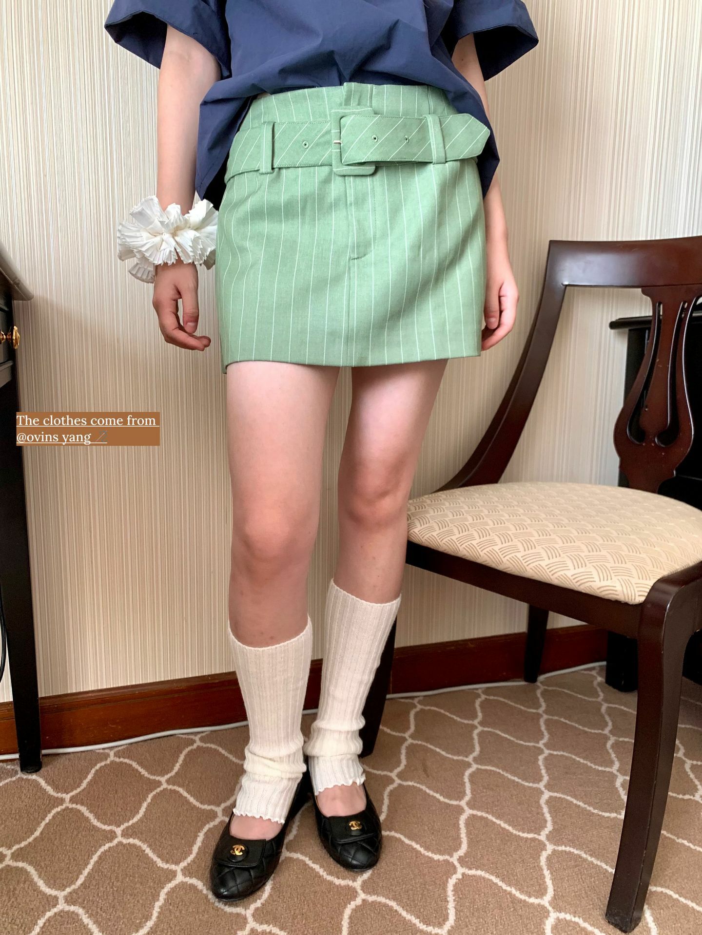 *o-ha-you*【FOY100021】條紋A字半身裙夏小個子通勤甜美風穿搭短裙子包臀裙-2色