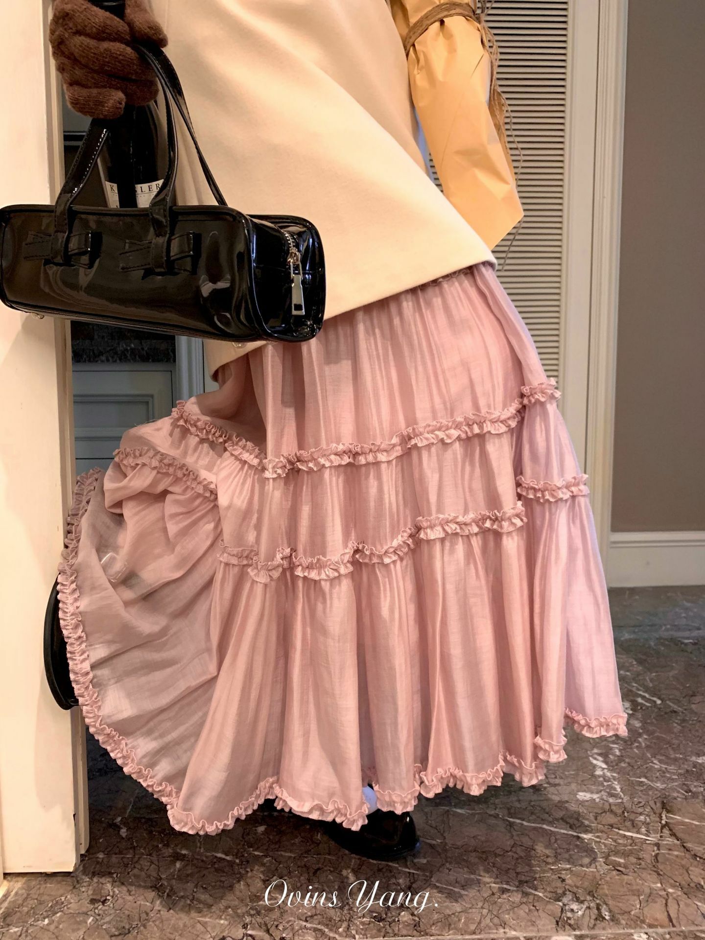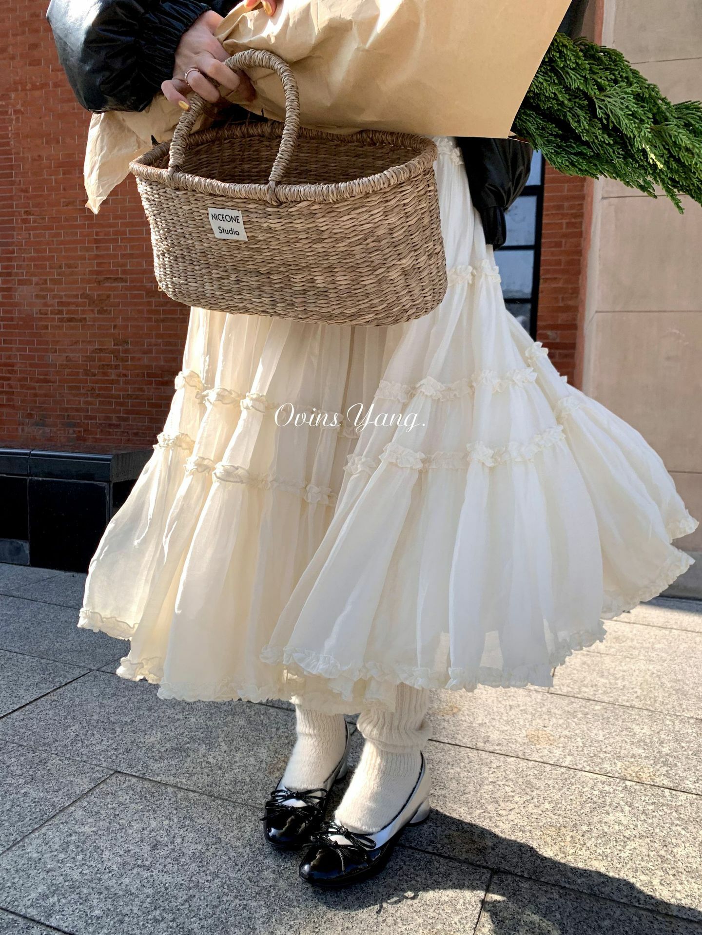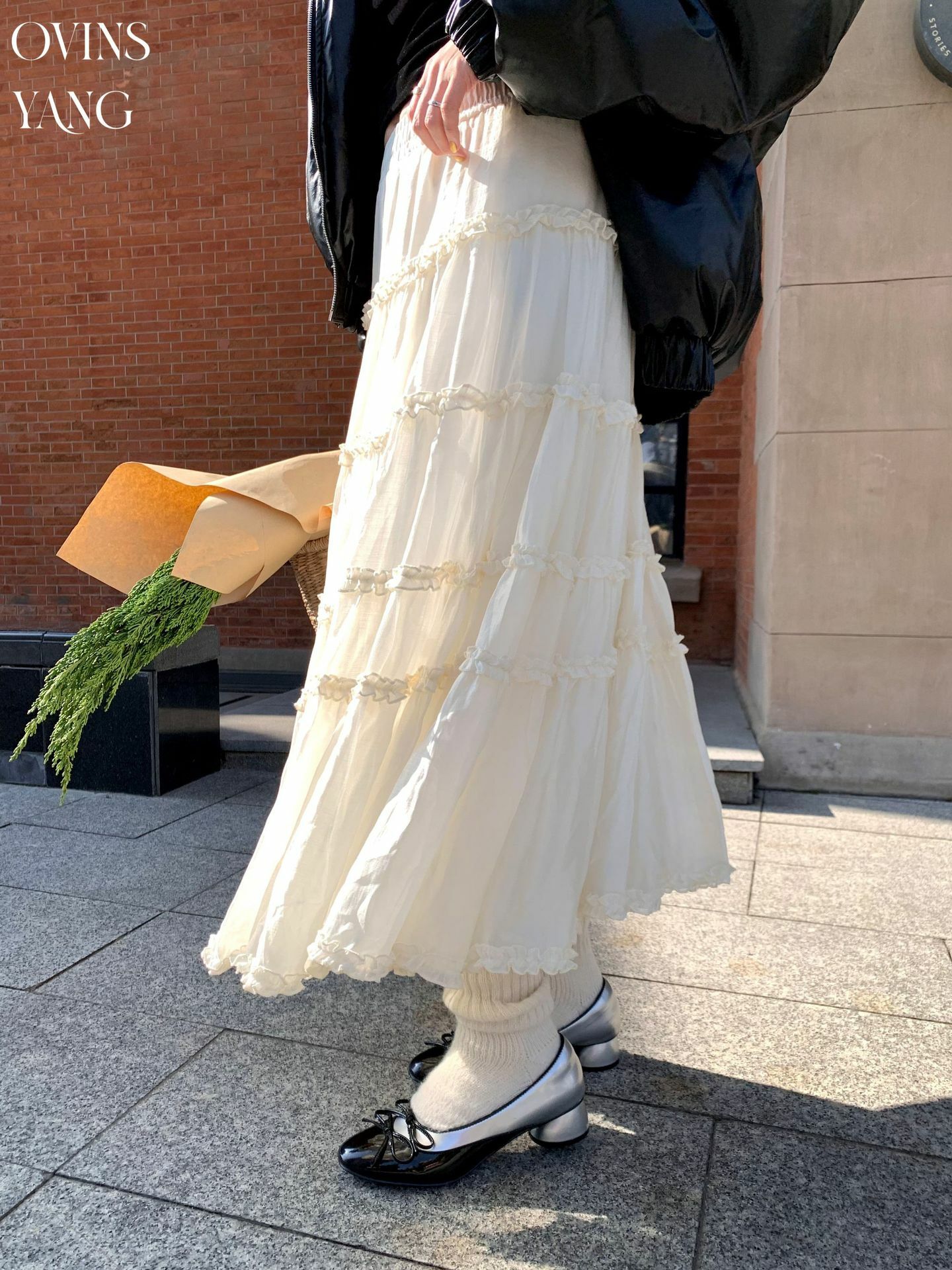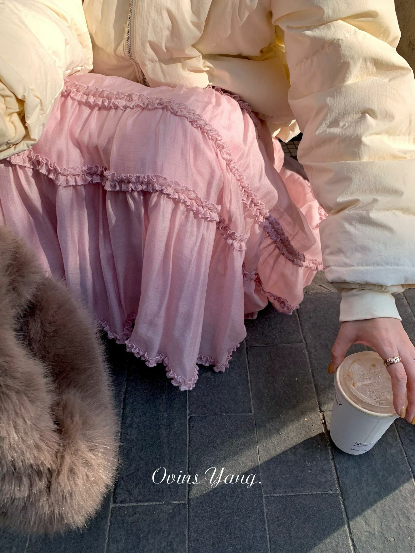 *o-ha-you*【FOY100029】花邊A字半身裙秋冬款設計感小眾甜美減齡穿搭蛋糕裙-2色-如有需要請先諮詢