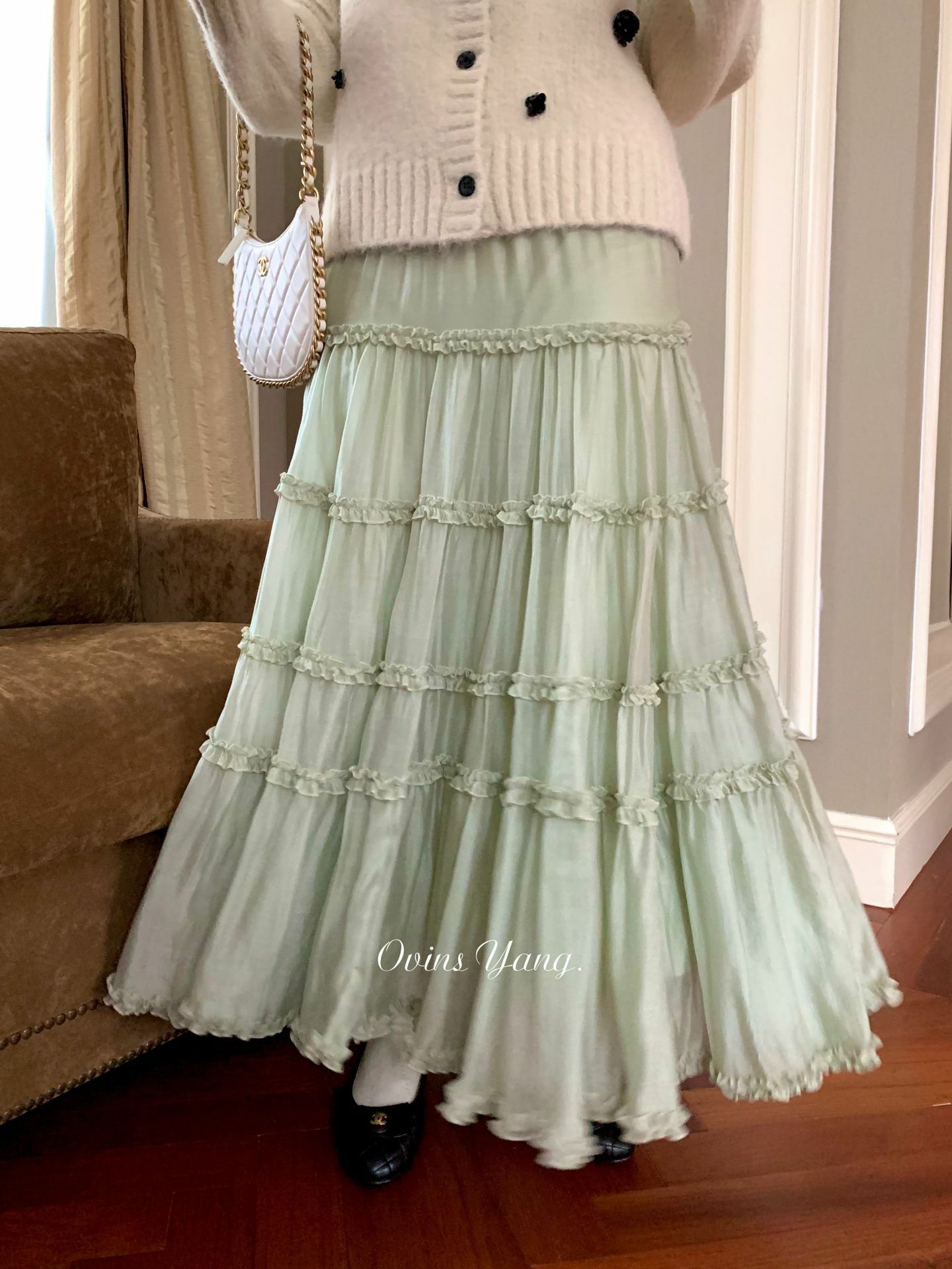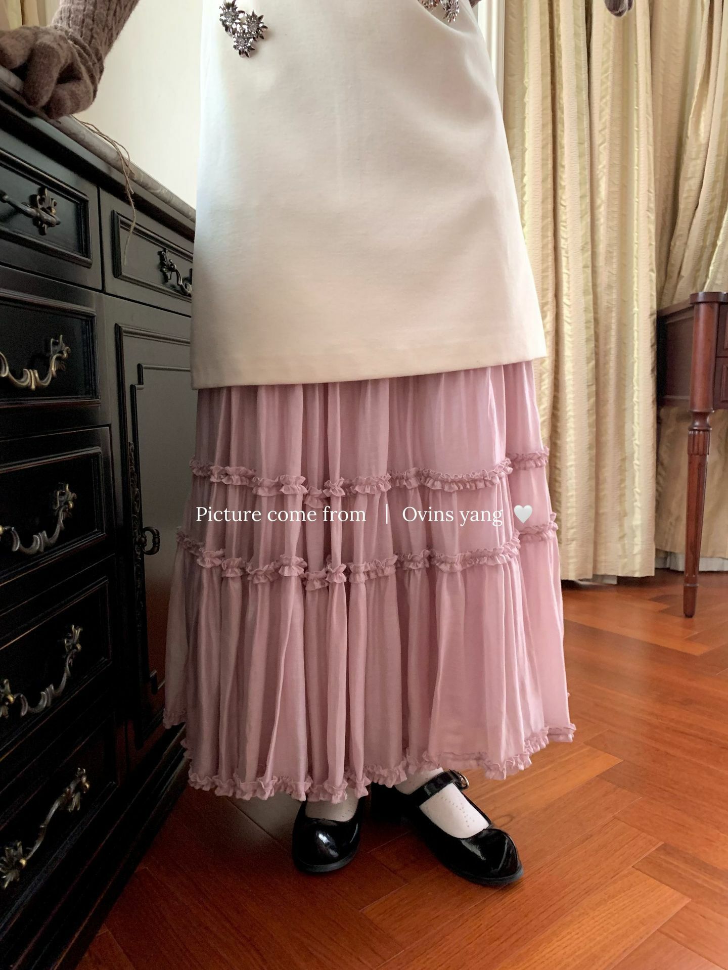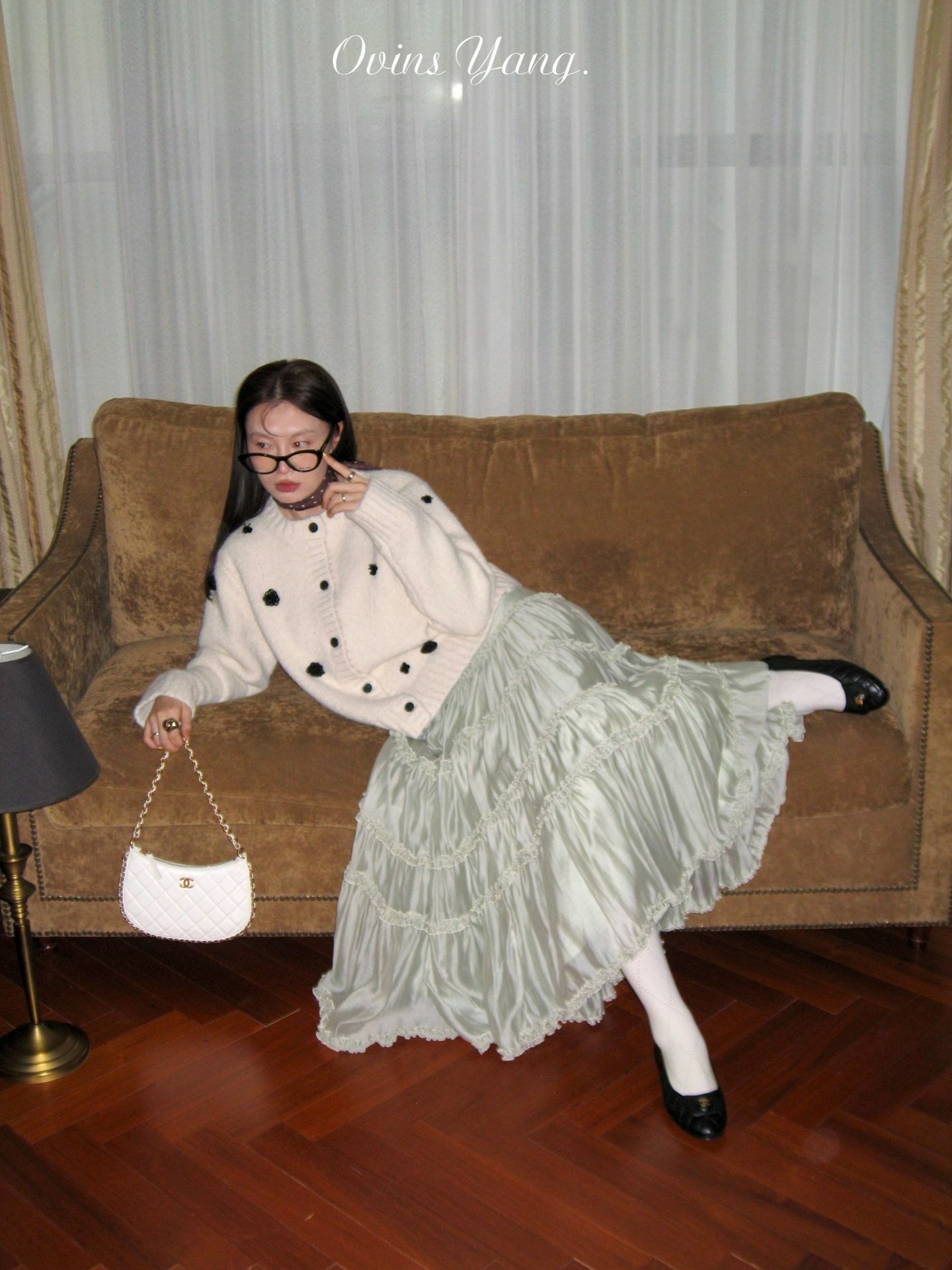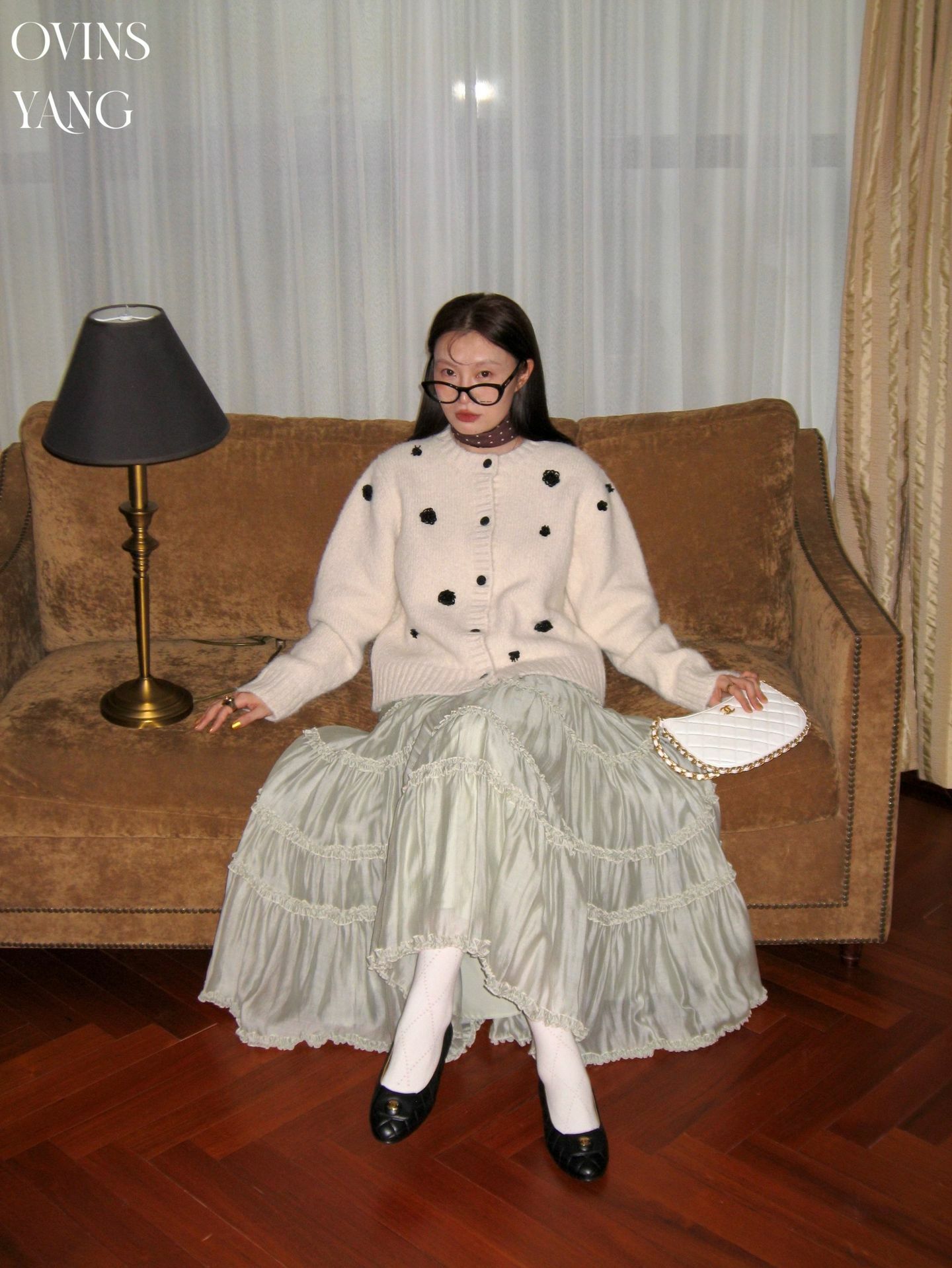 *o-ha-you*【FOY100029】花邊A字半身裙秋冬款設計感小眾甜美減齡穿搭蛋糕裙-2色-如有需要請先諮詢