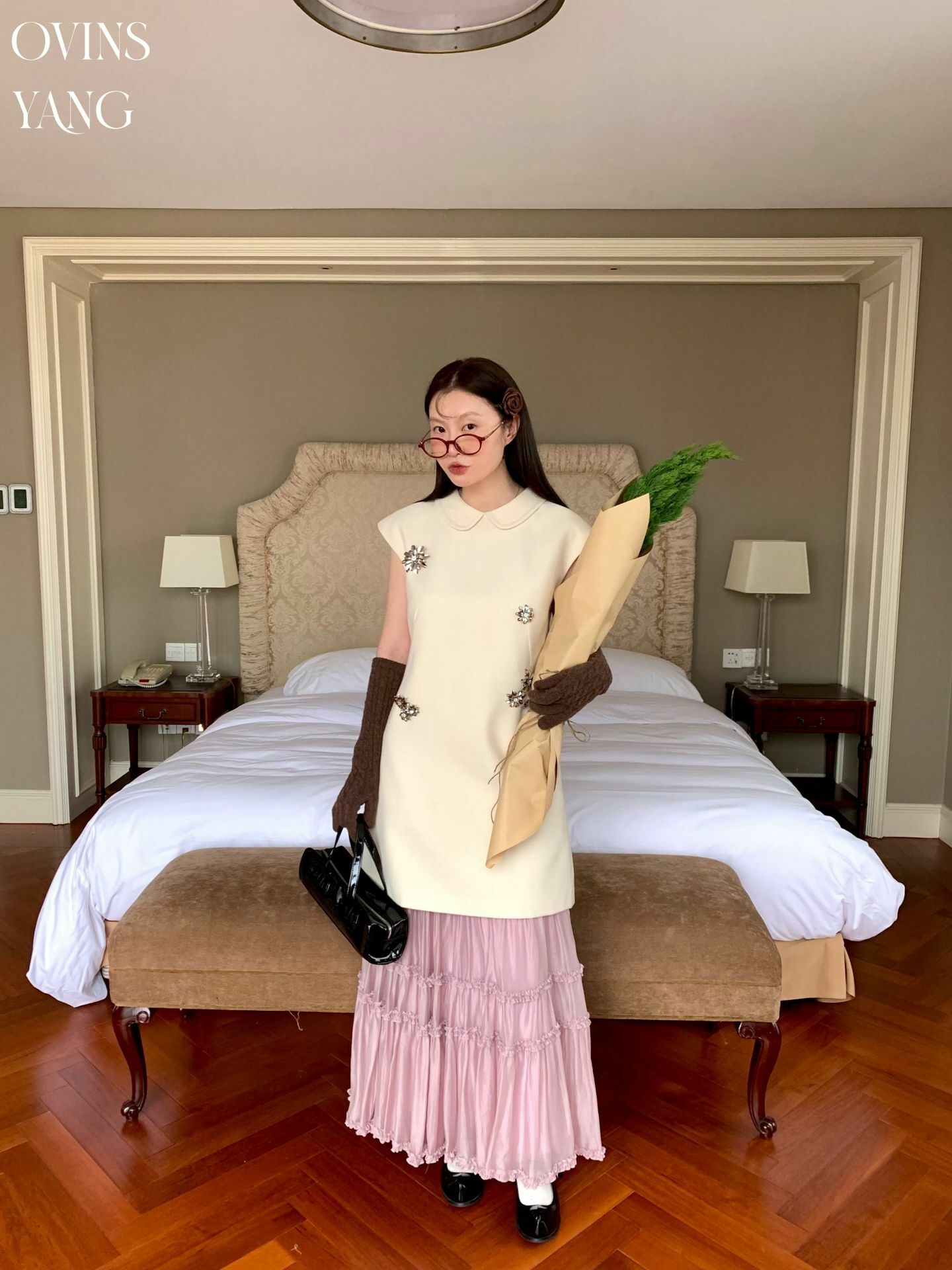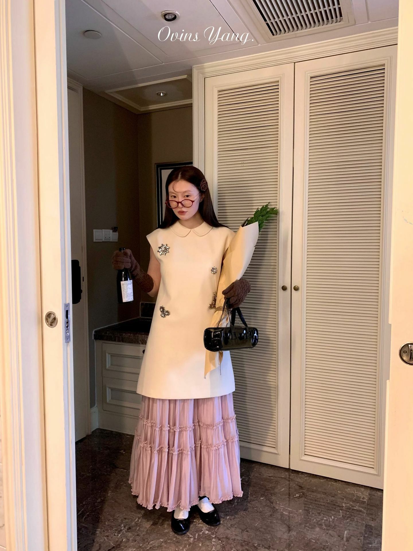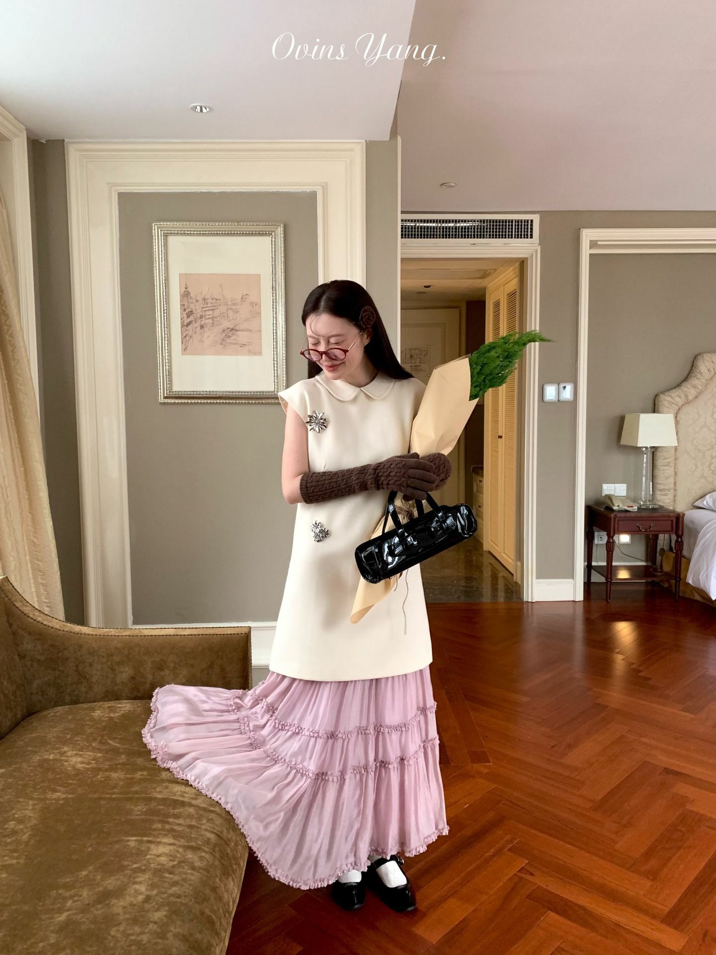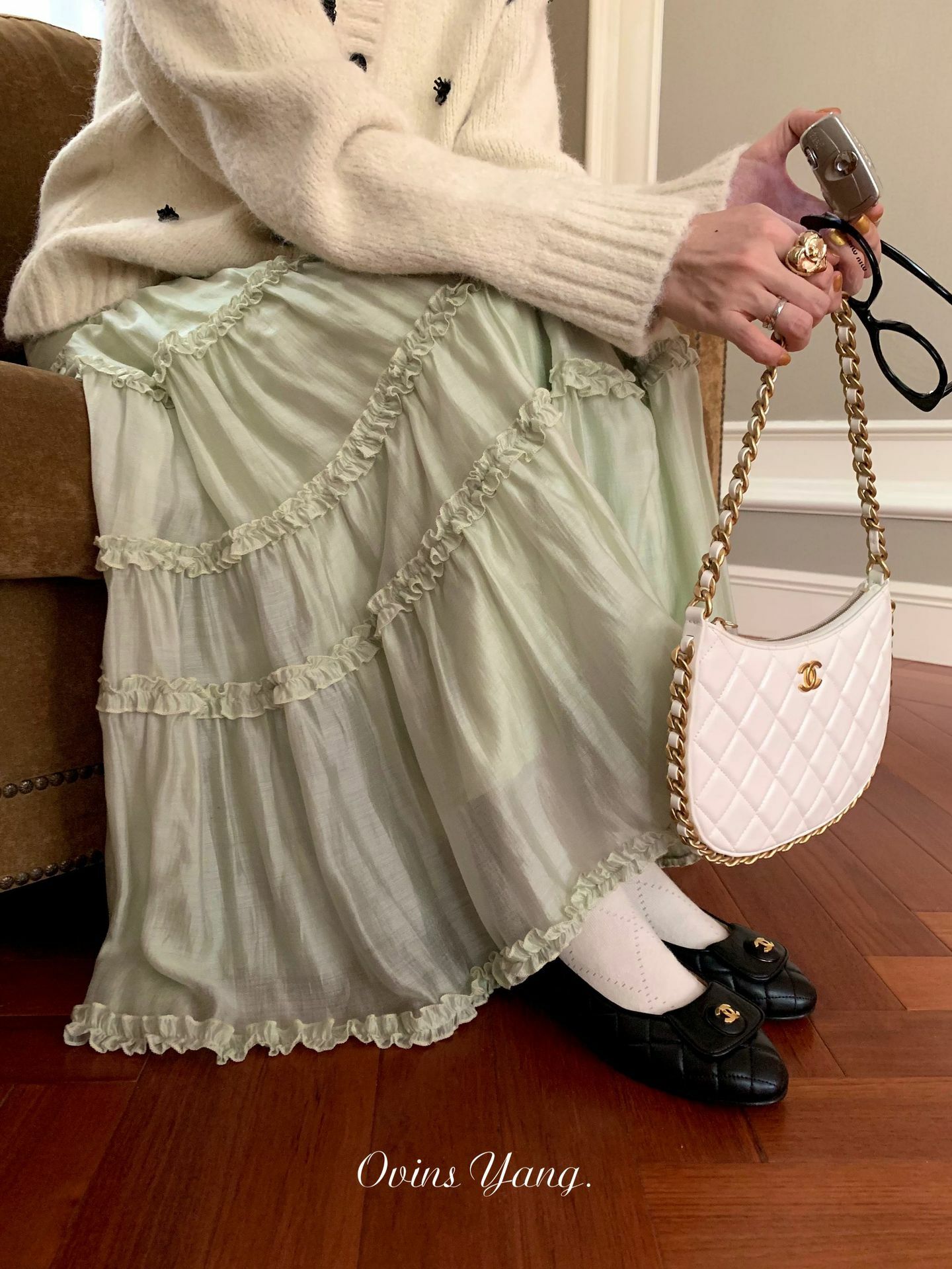 *o-ha-you*【FOY100029】花邊A字半身裙秋冬款設計感小眾甜美減齡穿搭蛋糕裙-2色-如有需要請先諮詢