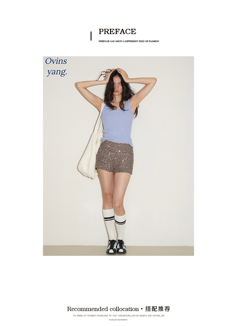 *o-ha-you*【FOY100118】亮片褲子短褲設計感小眾休閒寬褲-如有需要請先諮詢
