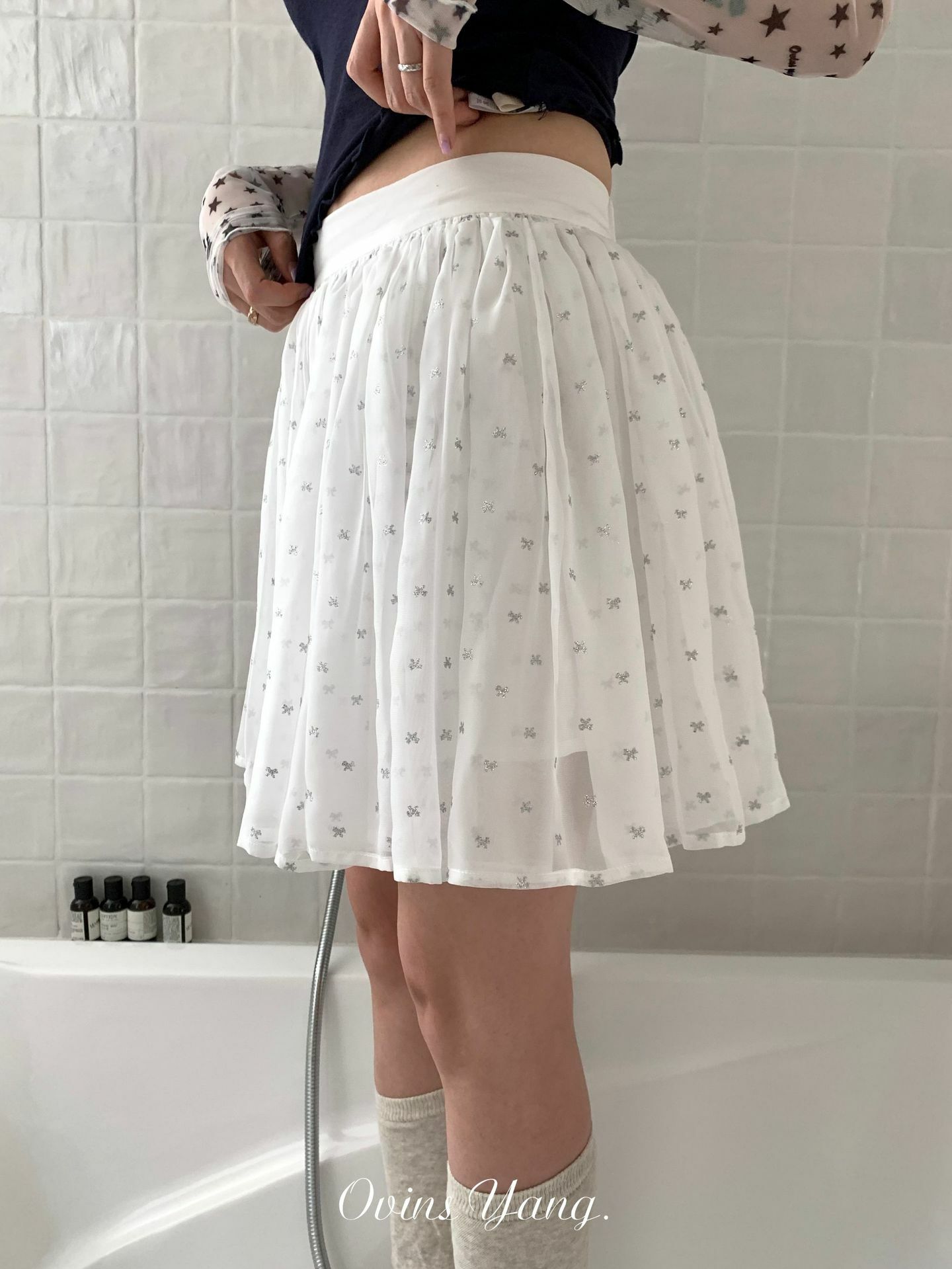 *o-ha-you*【FOY100125】蝴蝶結白色短裙半身裙短版甜美少女感穿搭A字百褶裙