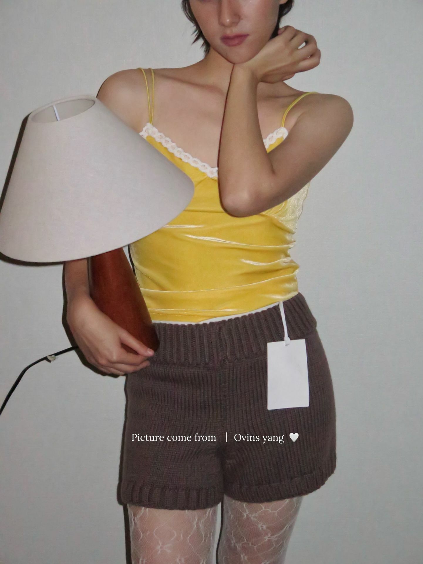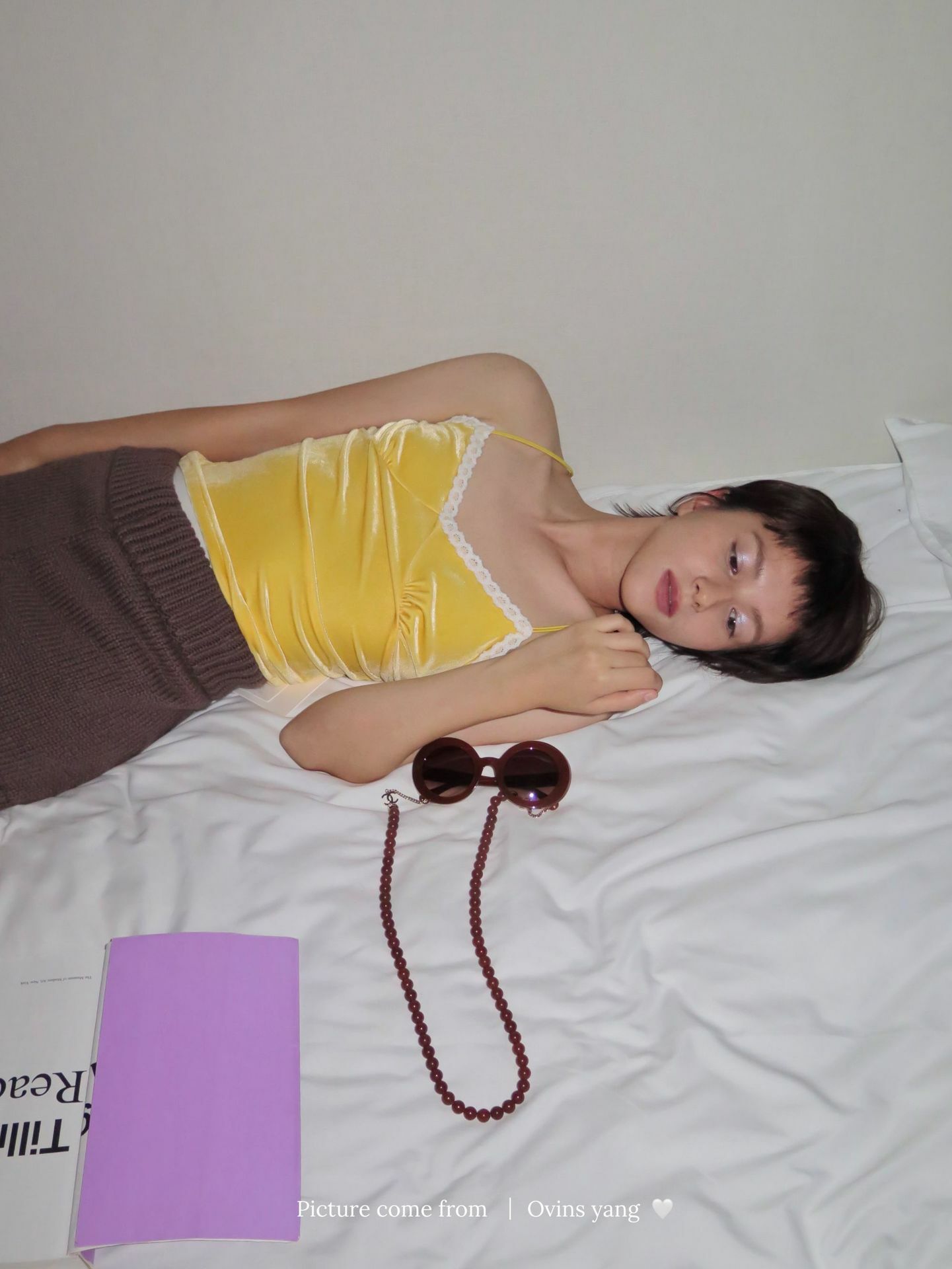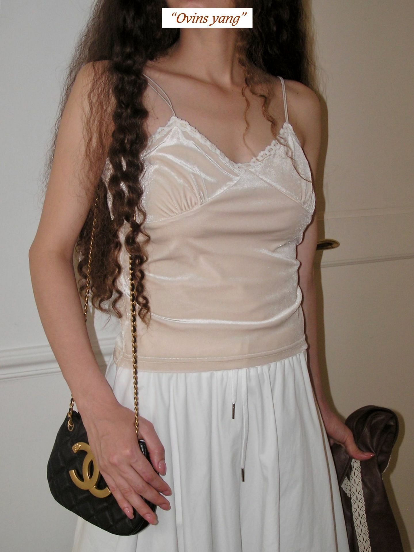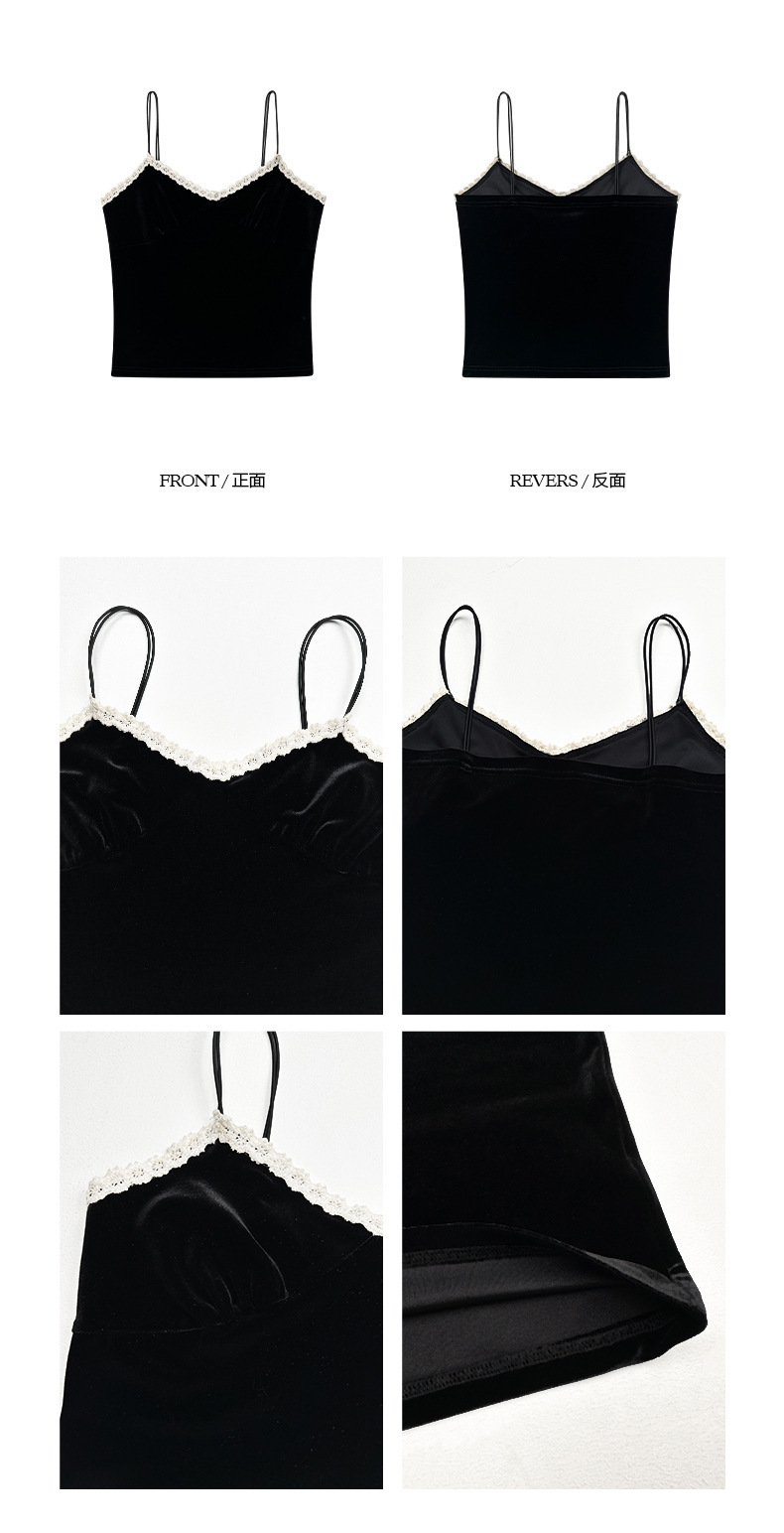 *o-ha-you*【FOY100129】絲絨辣妹小吊帶背心2024新款內搭無袖蕾絲上衣短版-3色-如有需要請先諮詢