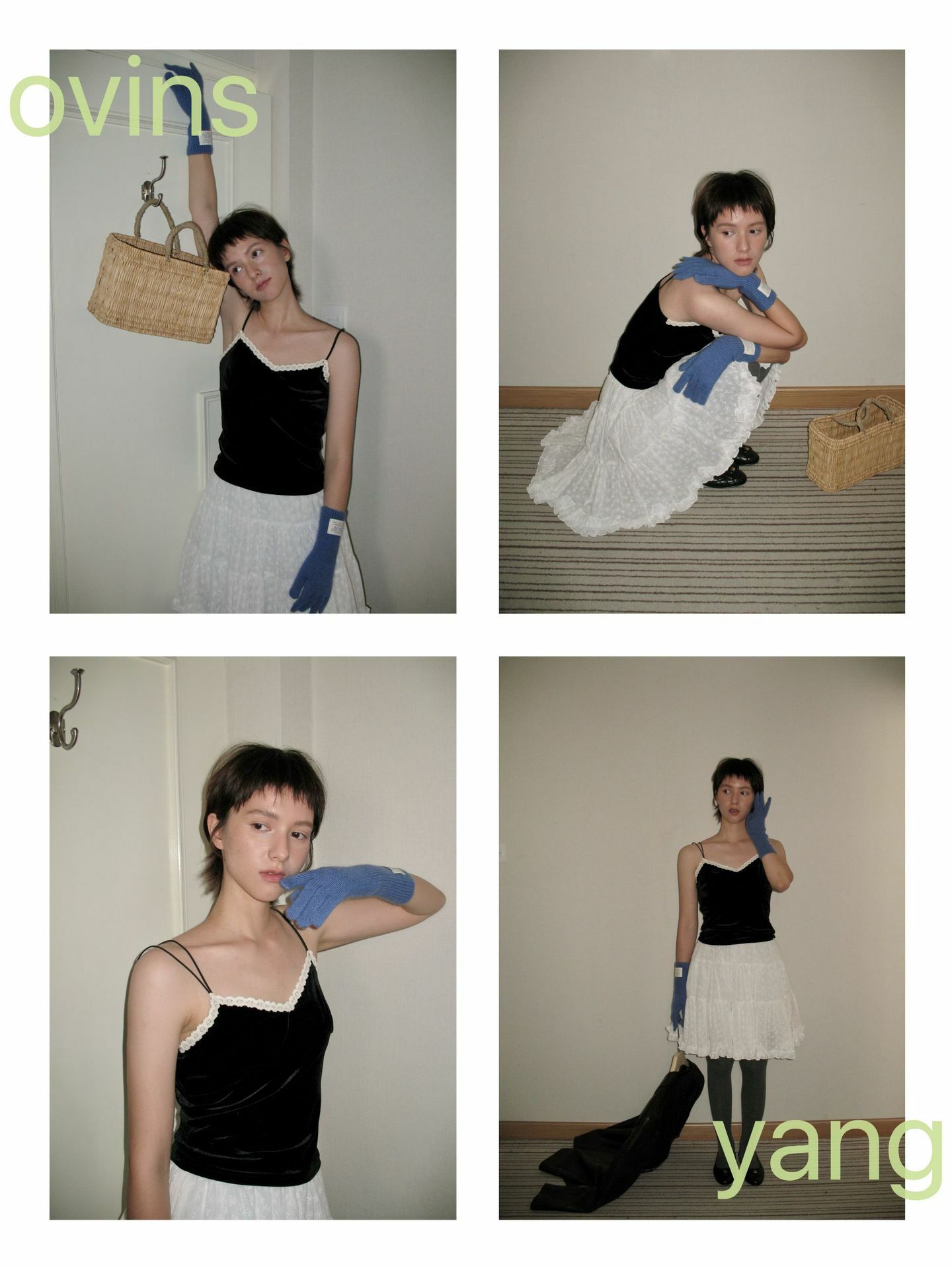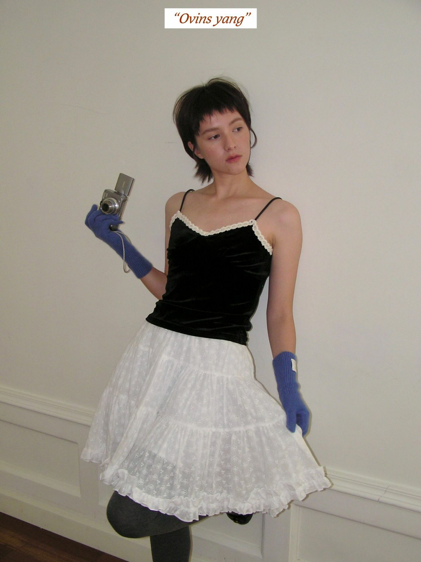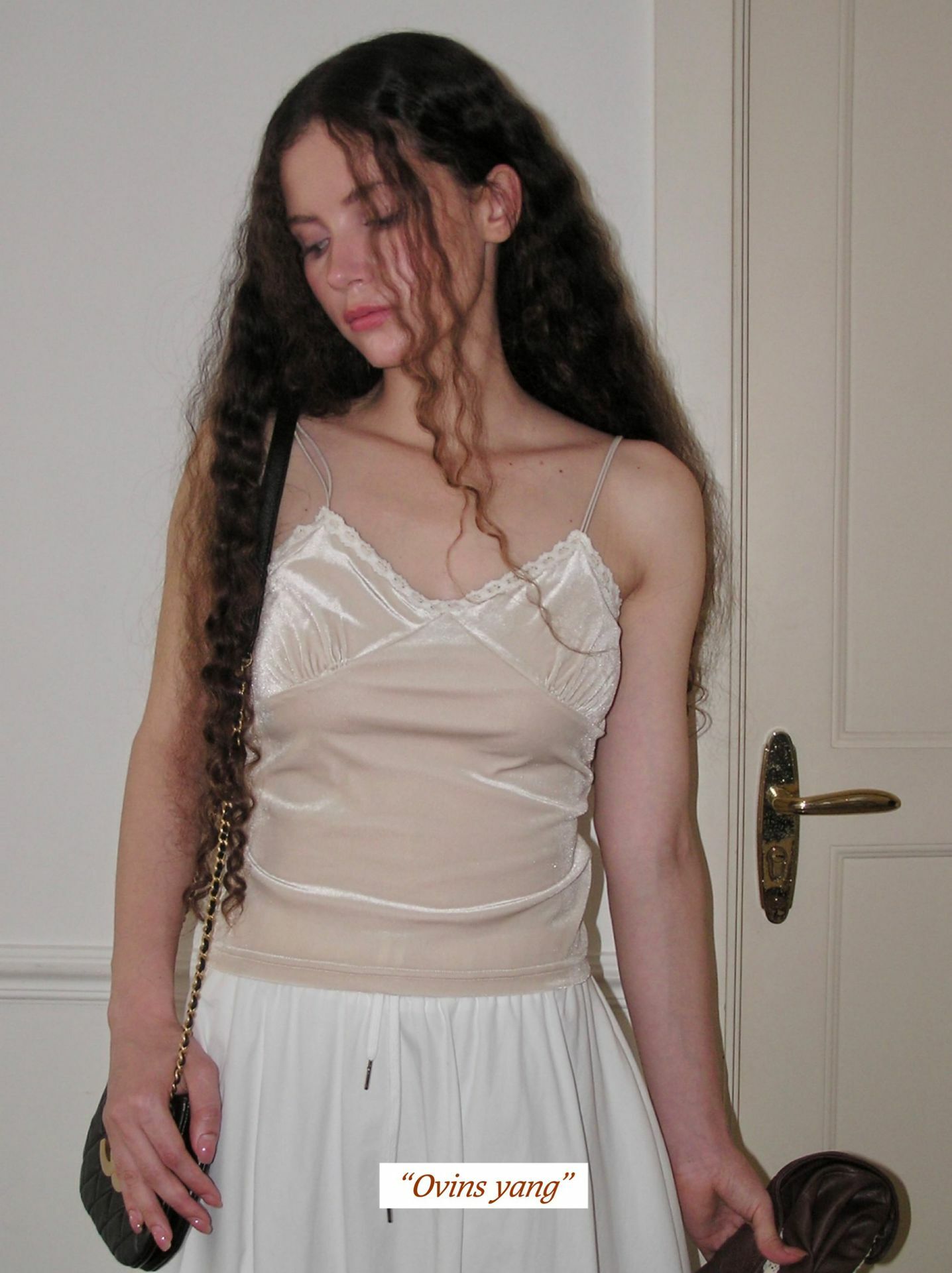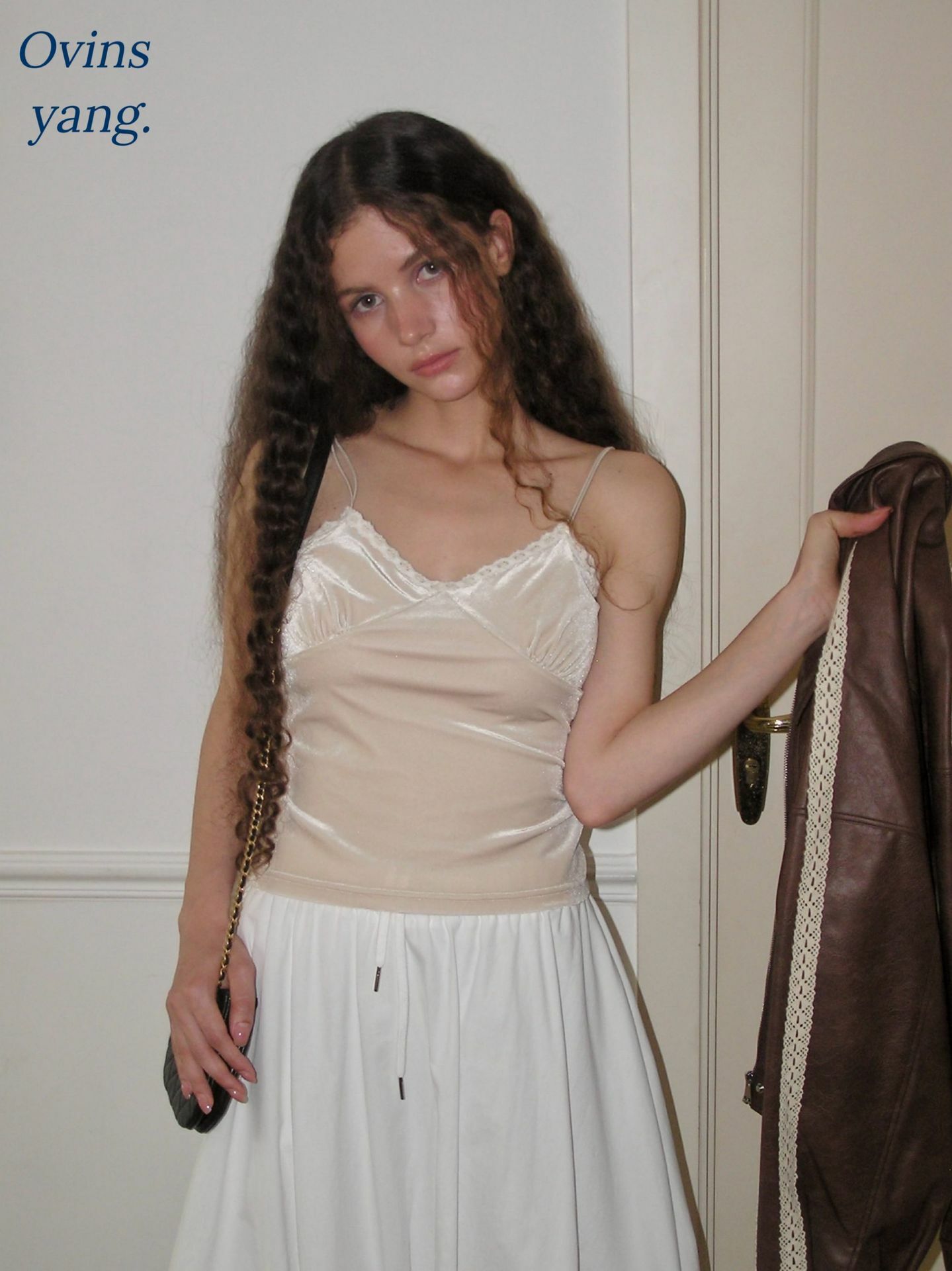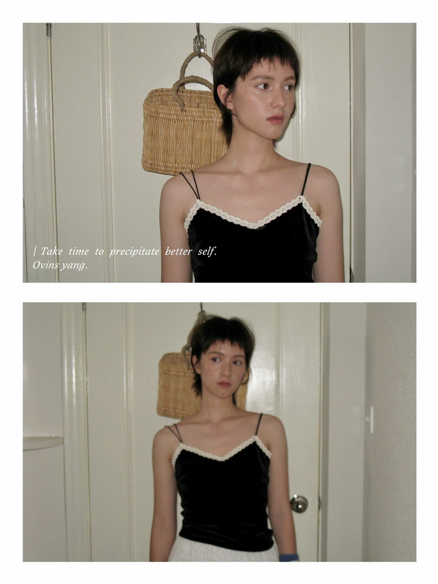 *o-ha-you*【FOY100129】絲絨辣妹小吊帶背心2024新款內搭無袖蕾絲上衣短版-3色-如有需要請先諮詢