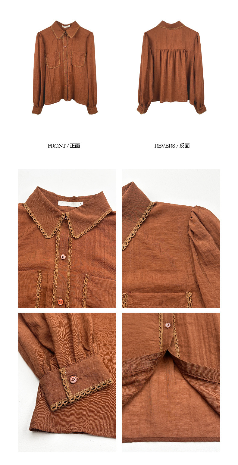 *o-ha-you*【FOY100130】2025秋季新款蕾絲翻領單排扣長袖襯衫百搭上衣-2色