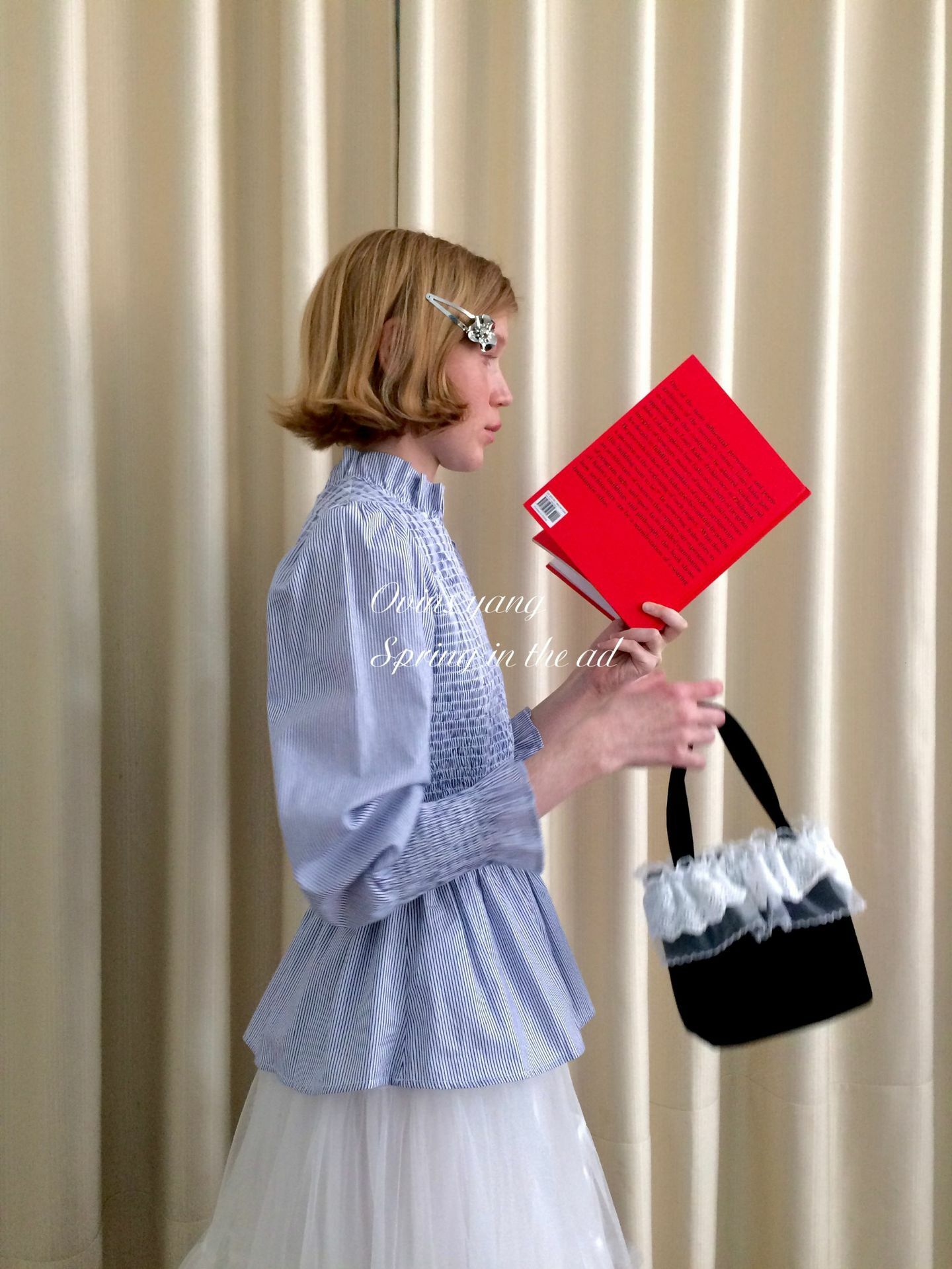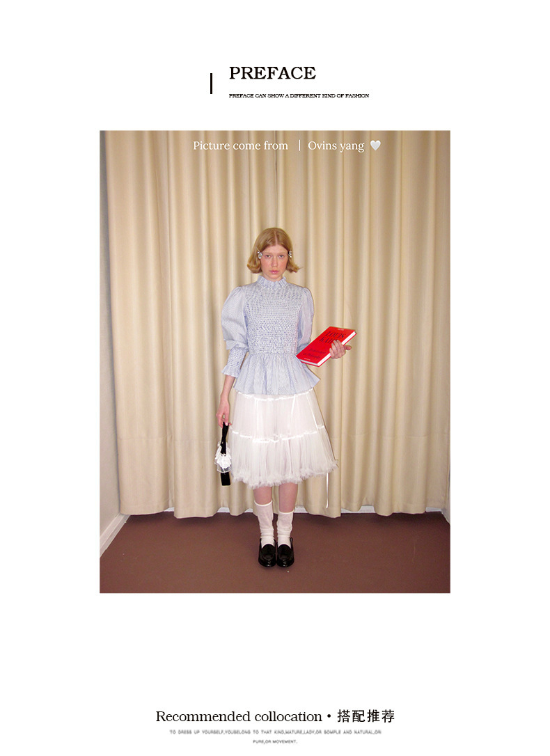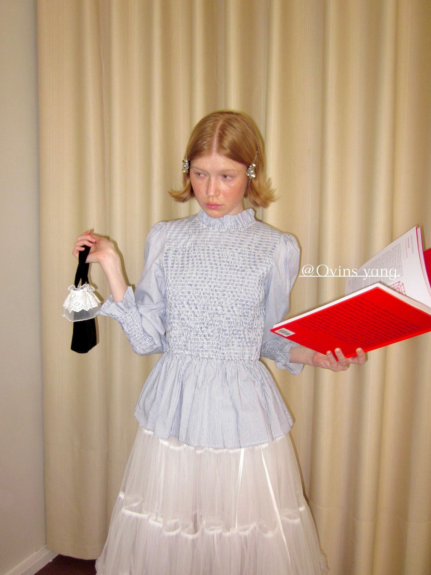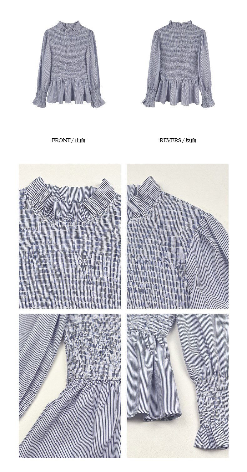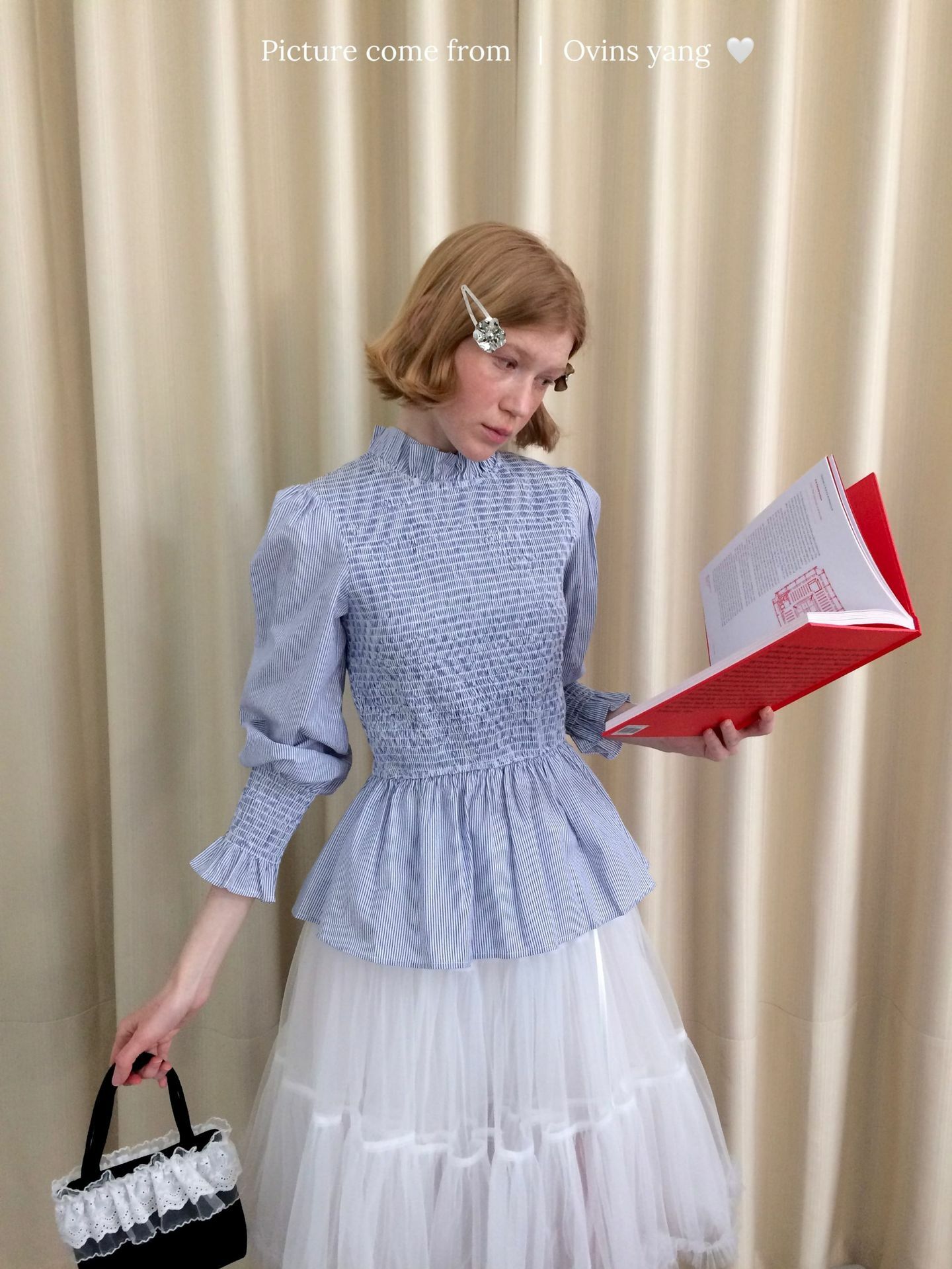 *o-ha-you*【FOY100157】藍色直條紋襯衫設計感小眾獨特打攬法式長袖上衣-如有需要請先諮詢