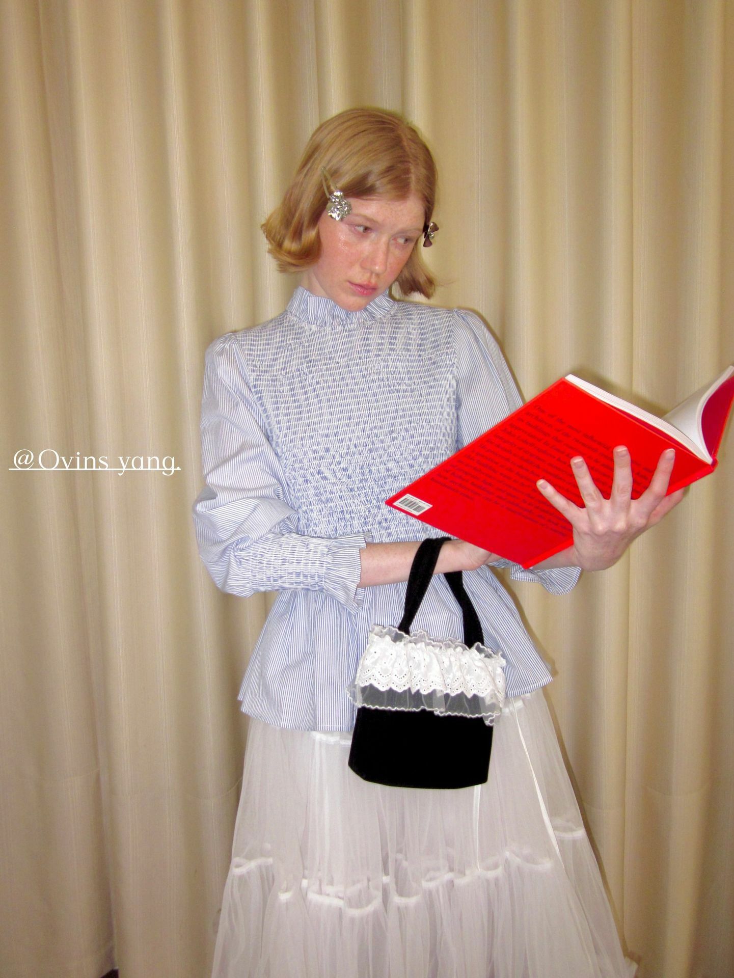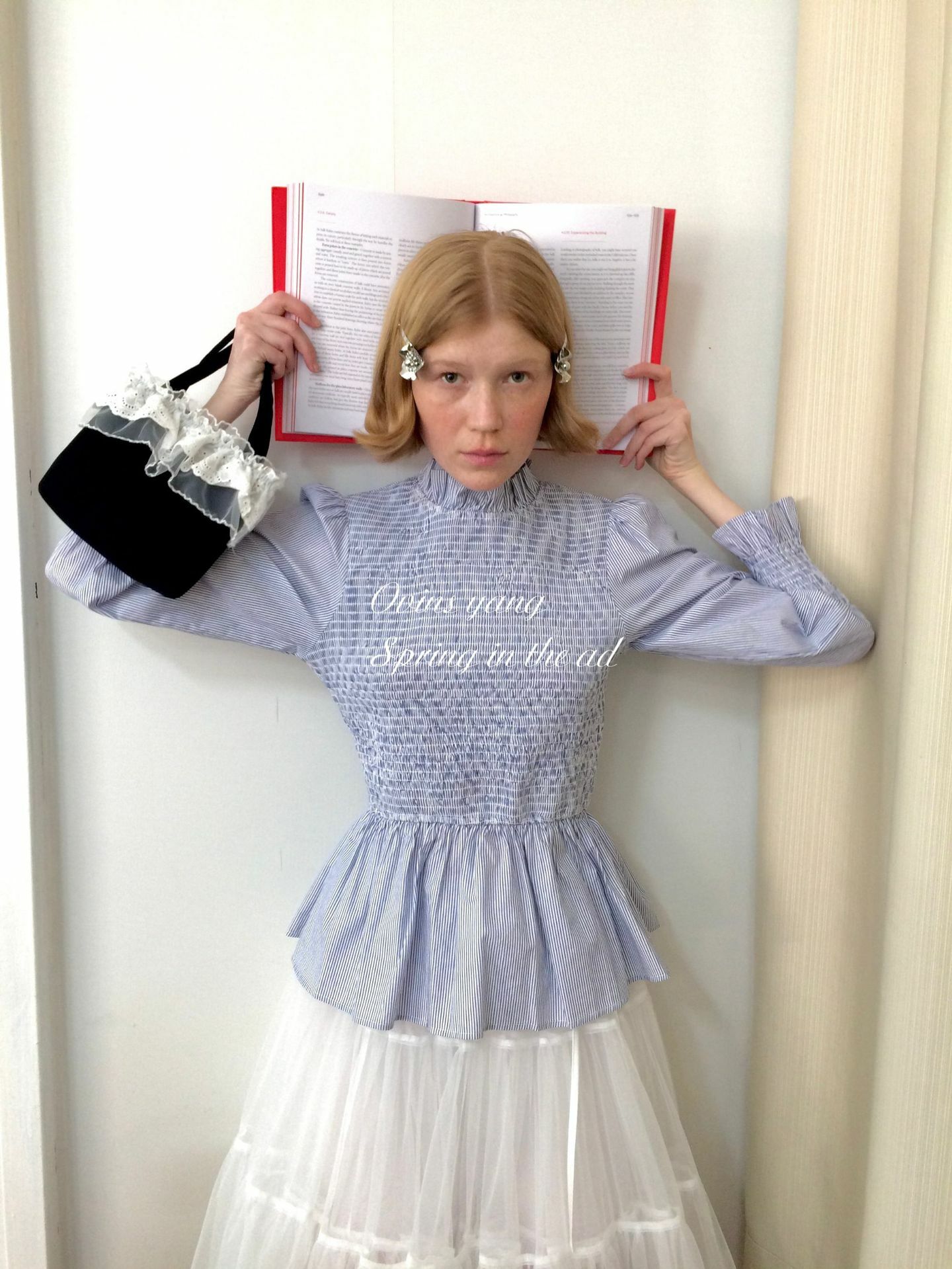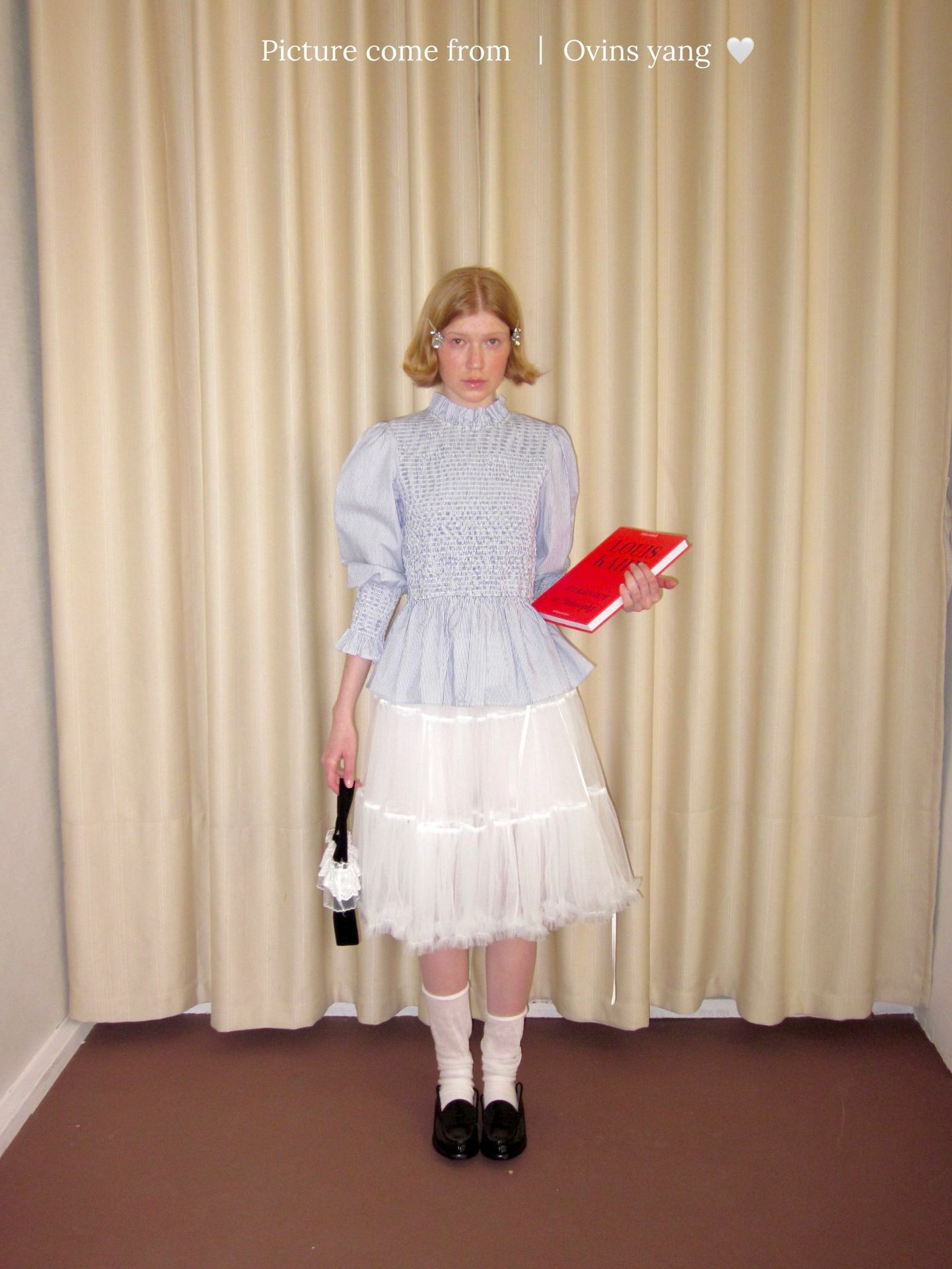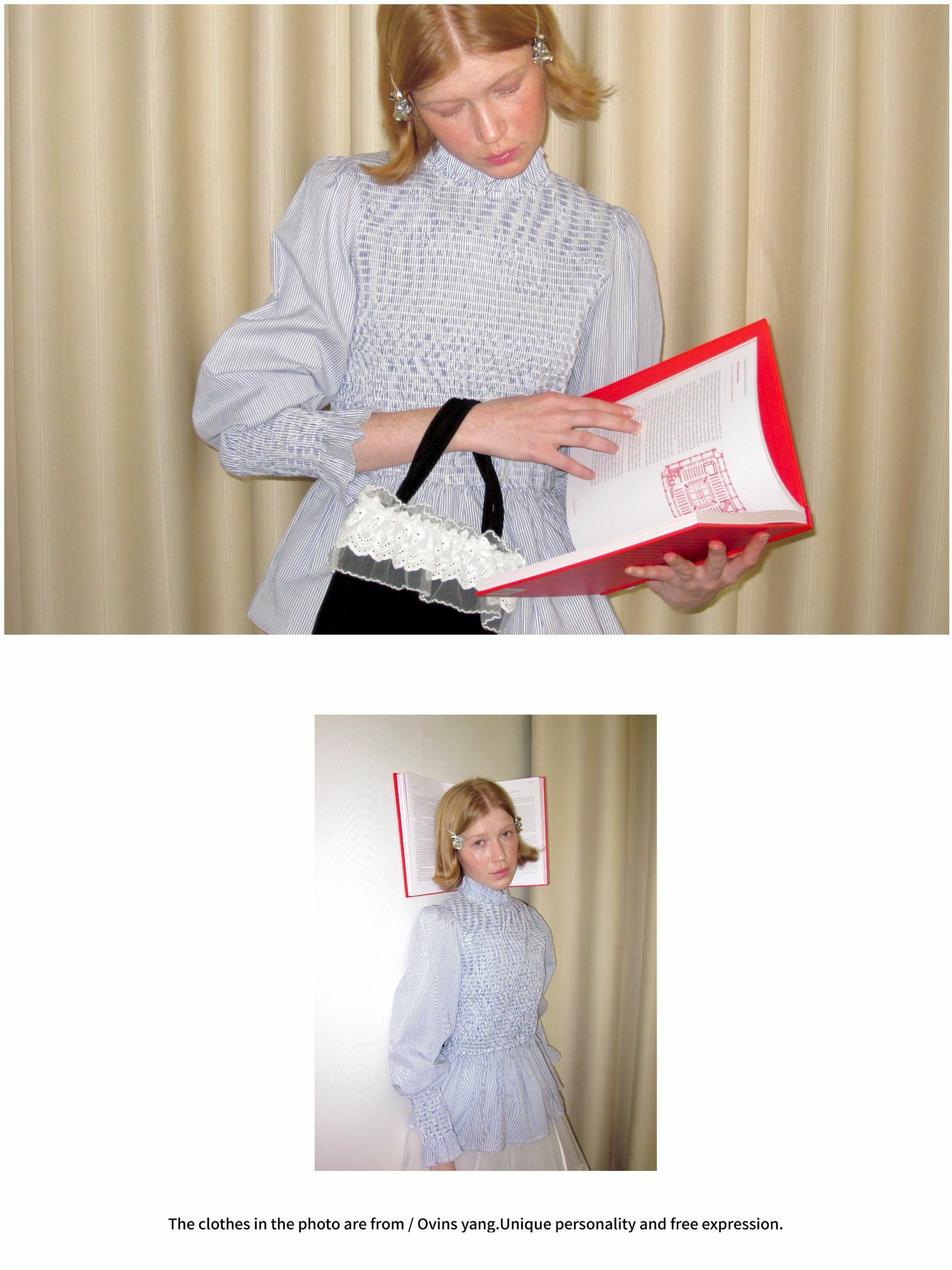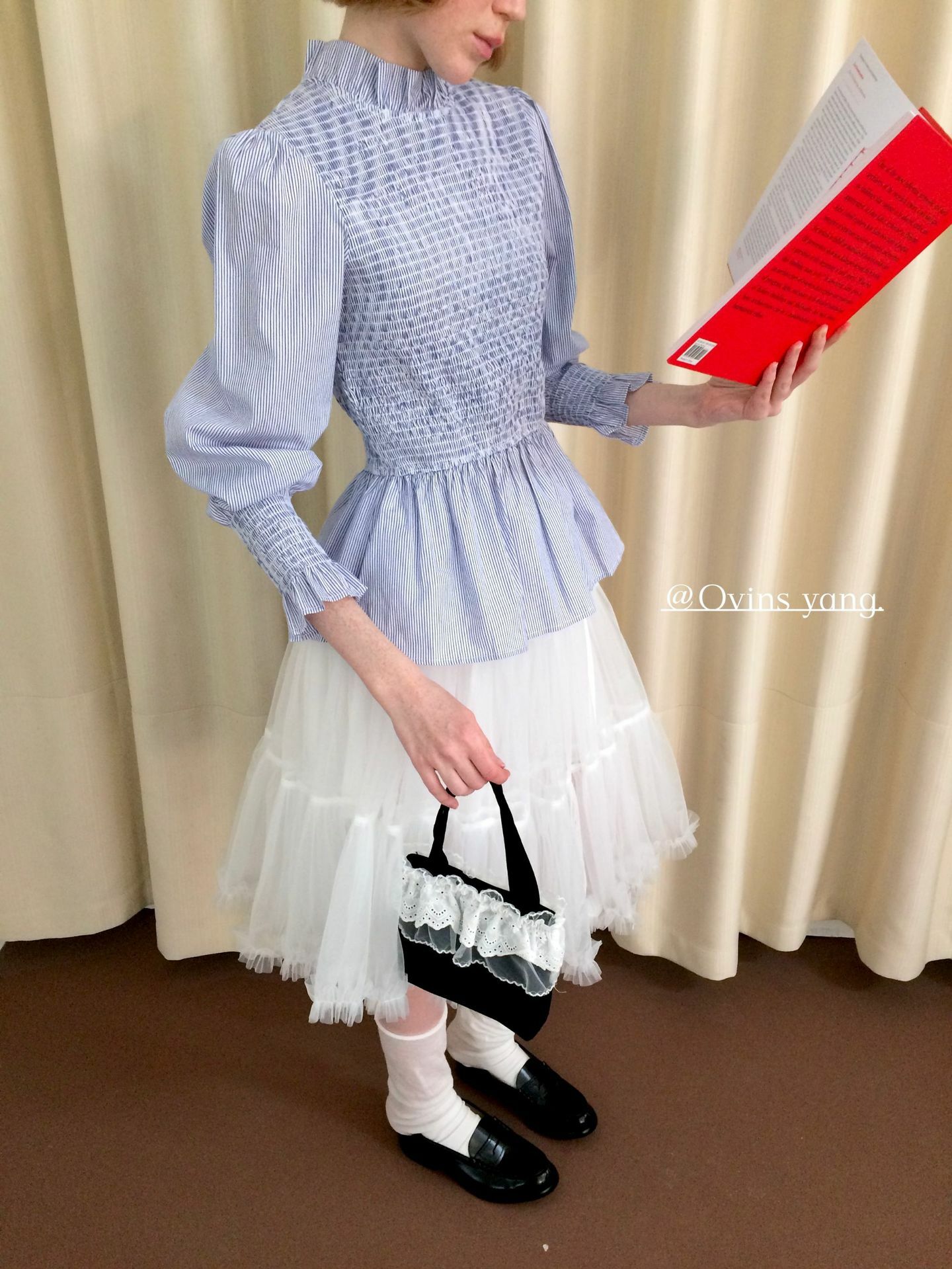 *o-ha-you*【FOY100157】藍色直條紋襯衫設計感小眾獨特打攬法式長袖上衣-如有需要請先諮詢