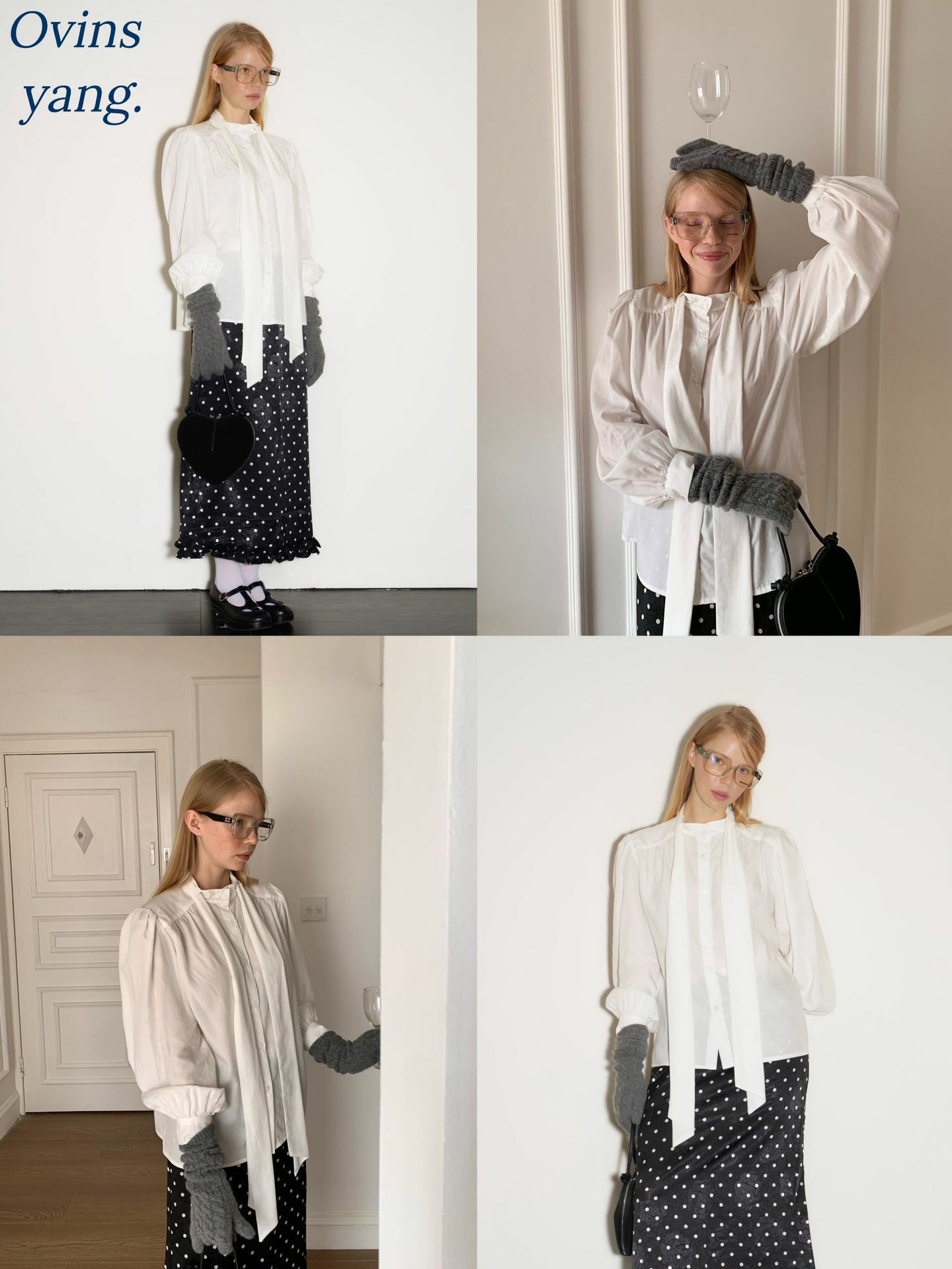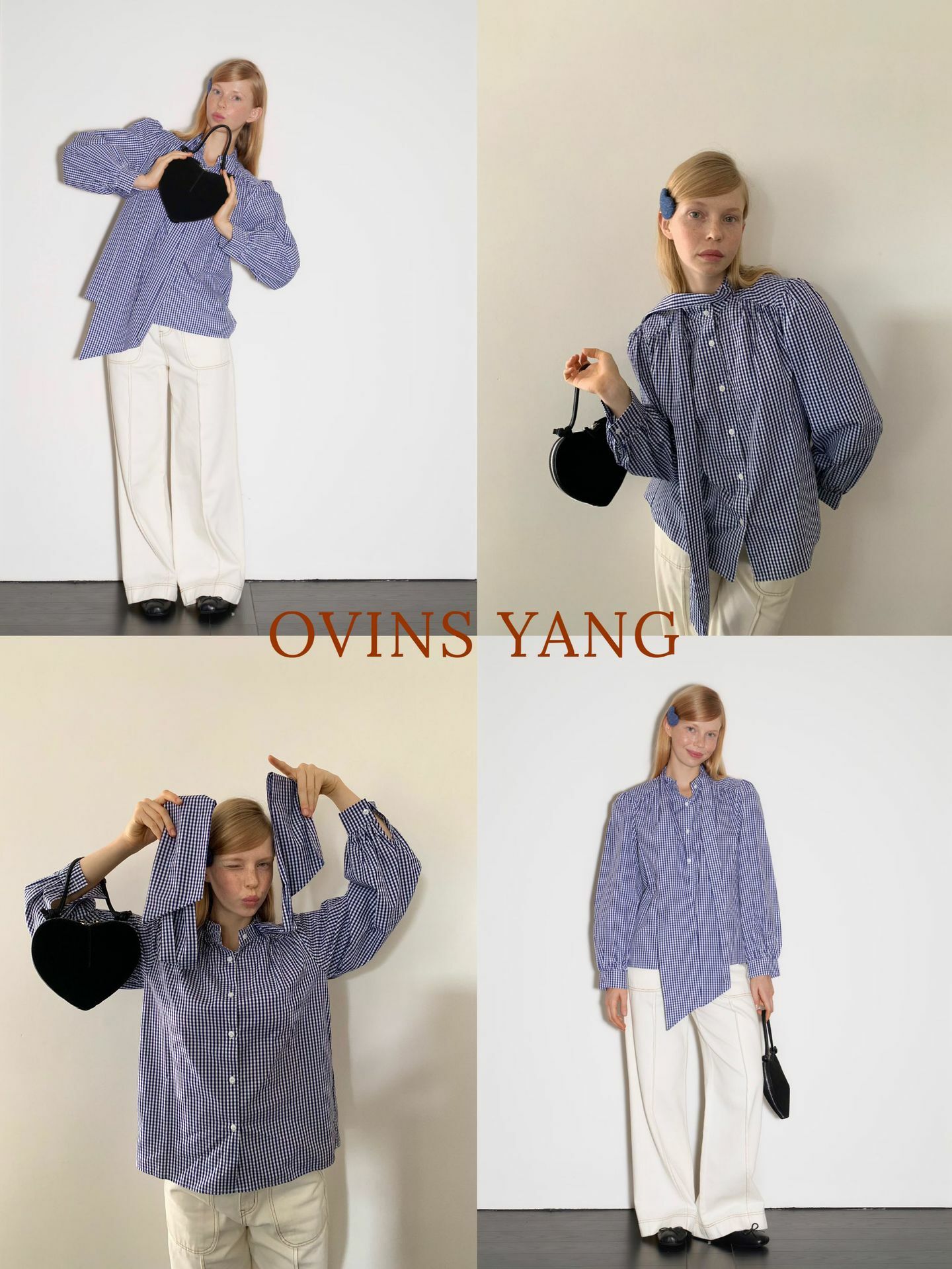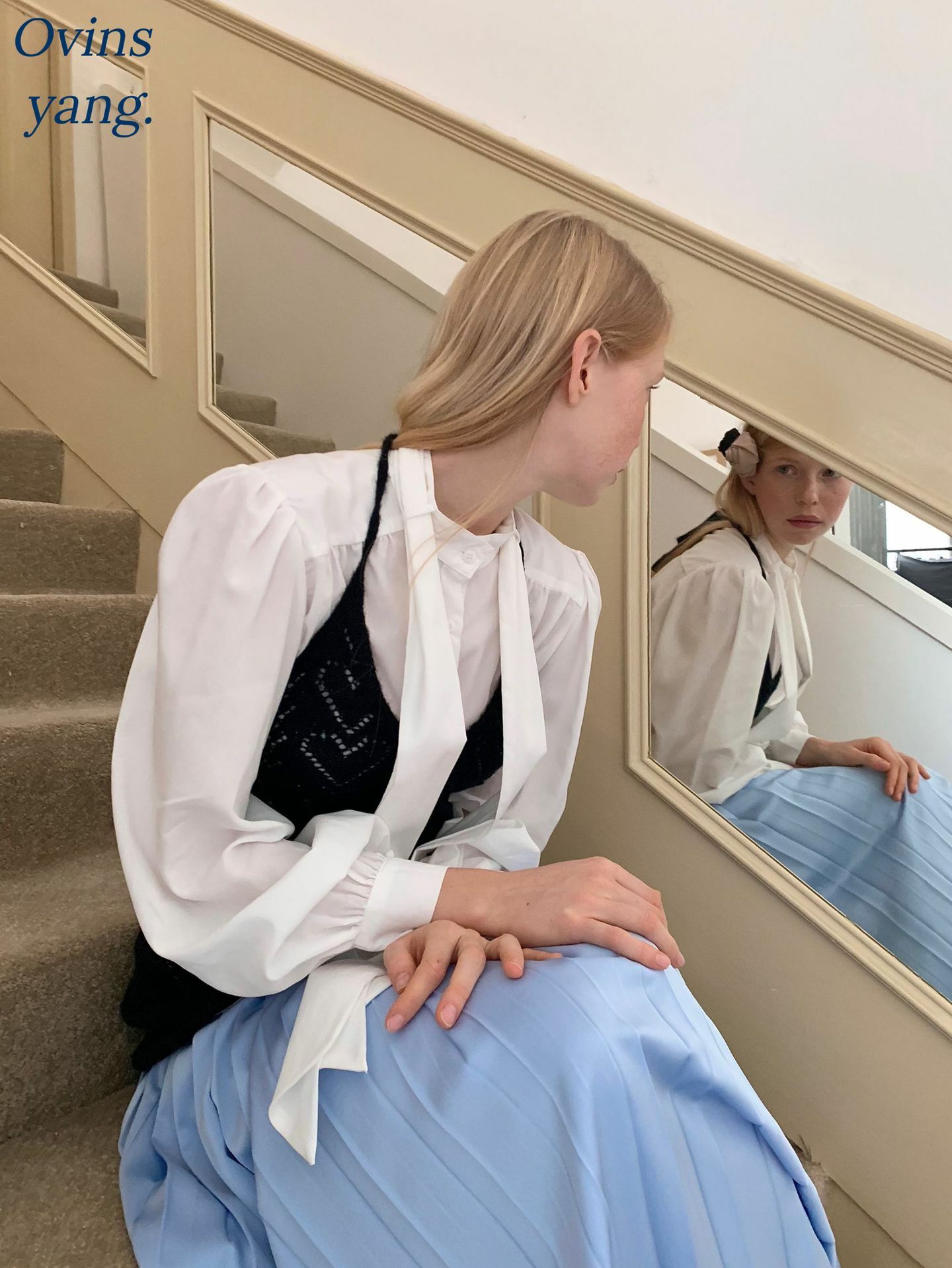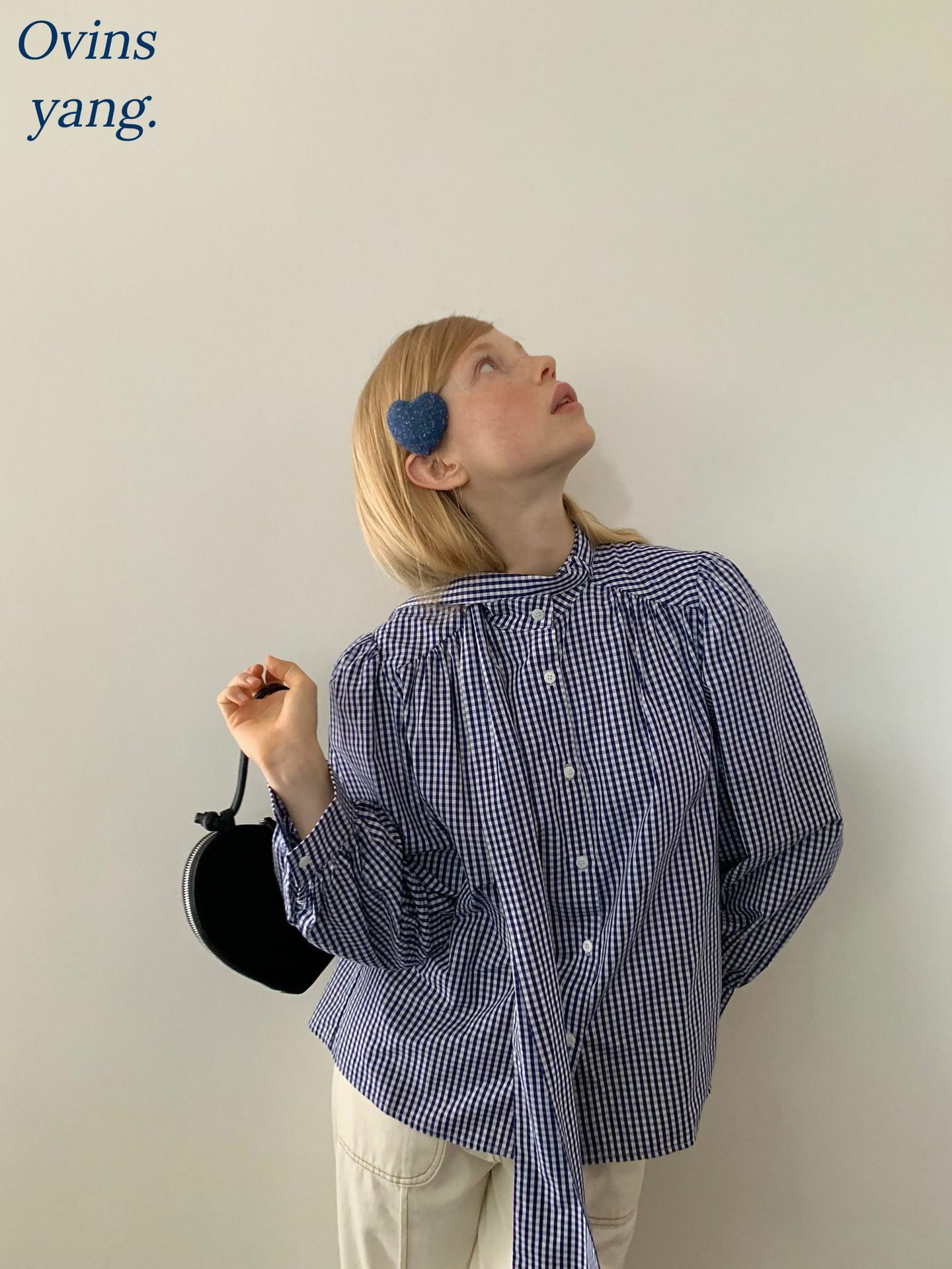 *o-ha-you*【FOY100159】繫帶白色格紋襯衫上衣設計感小眾甜美休閒長袖襯衫-2色-如有需要請先諮詢