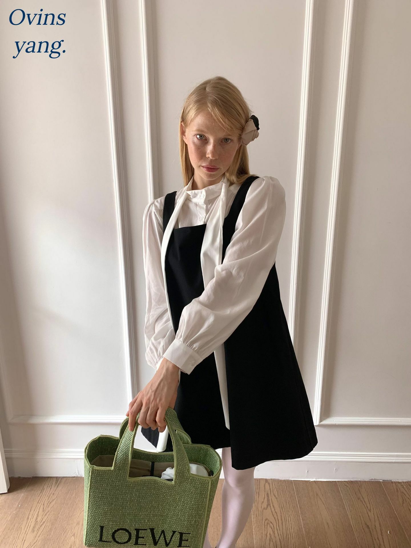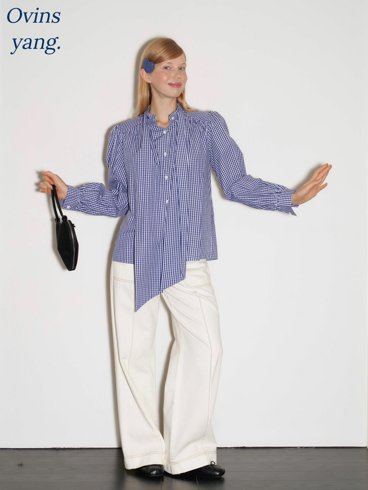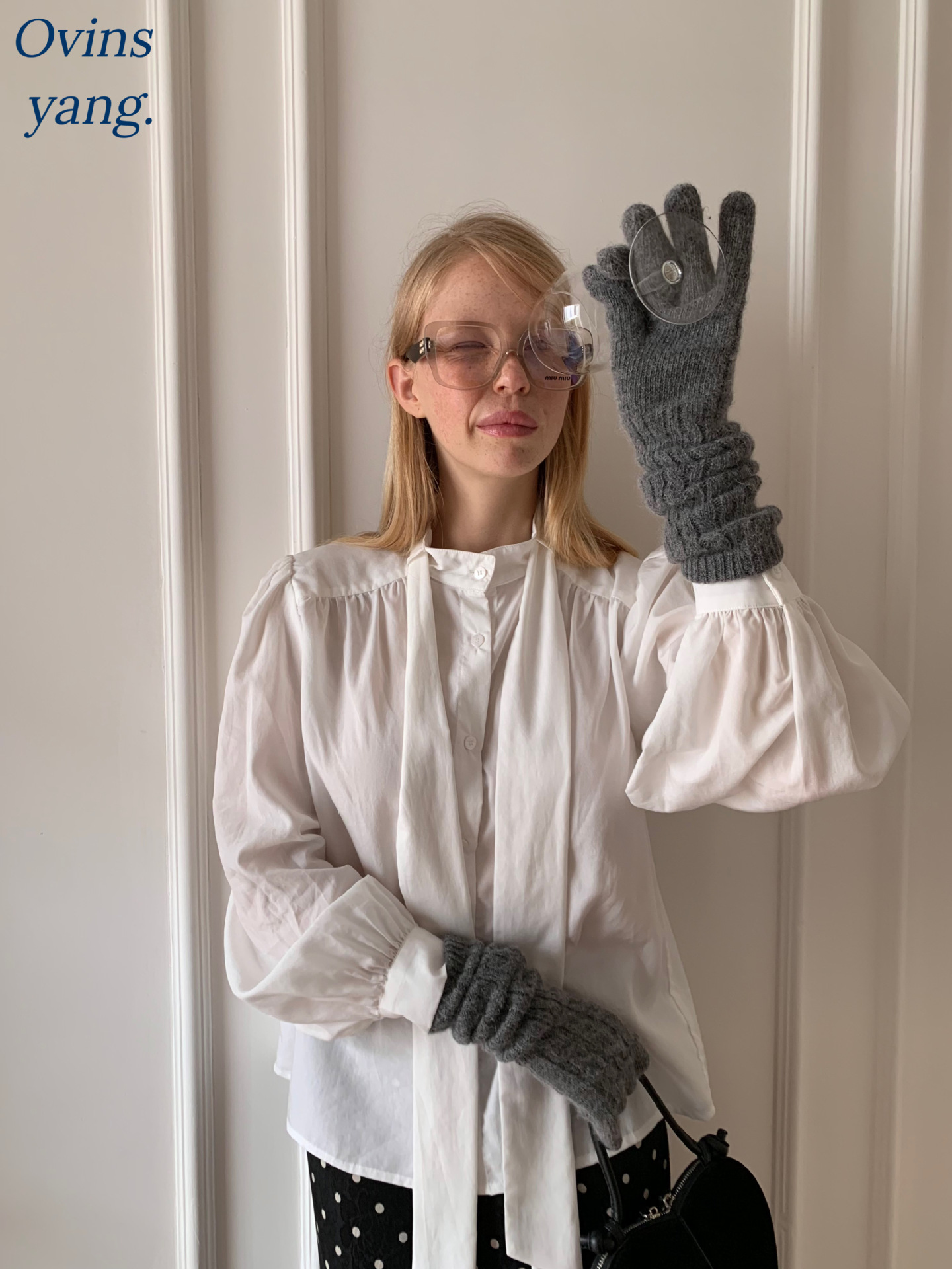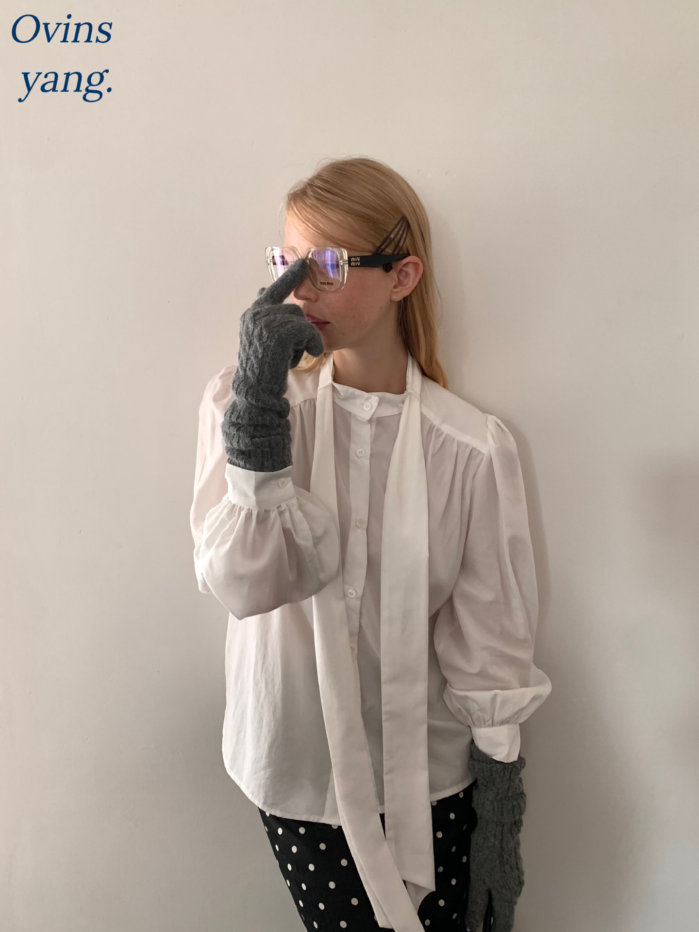*o-ha-you*【FOY100159】繫帶白色格紋襯衫上衣設計感小眾甜美休閒長袖襯衫-2色-如有需要請先諮詢
