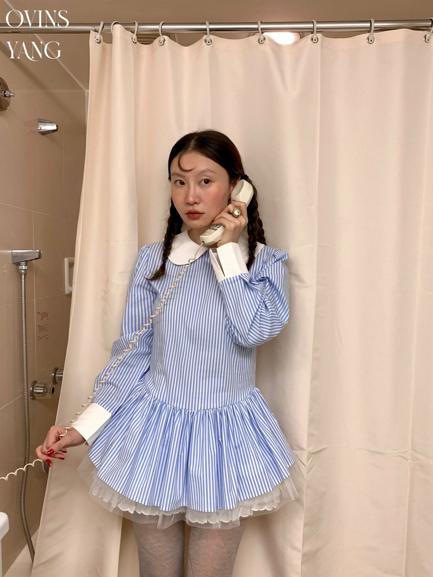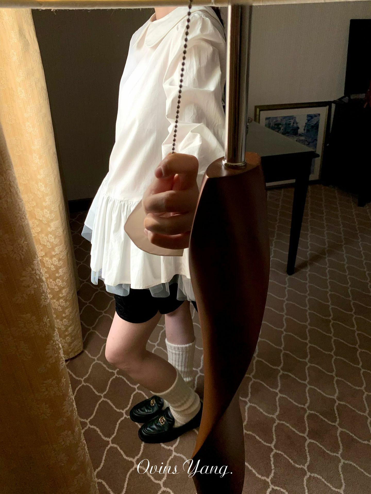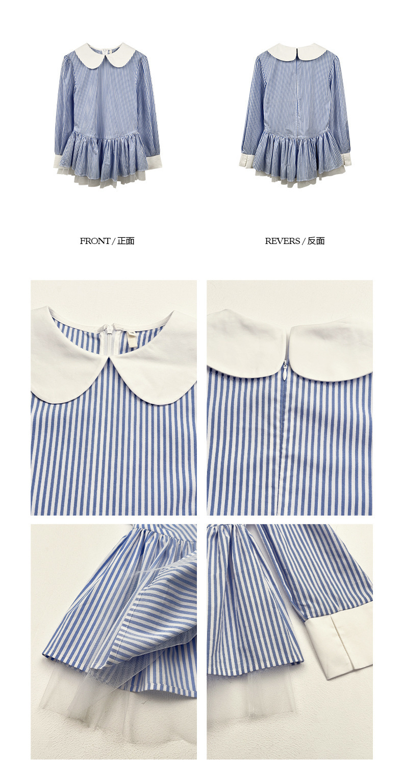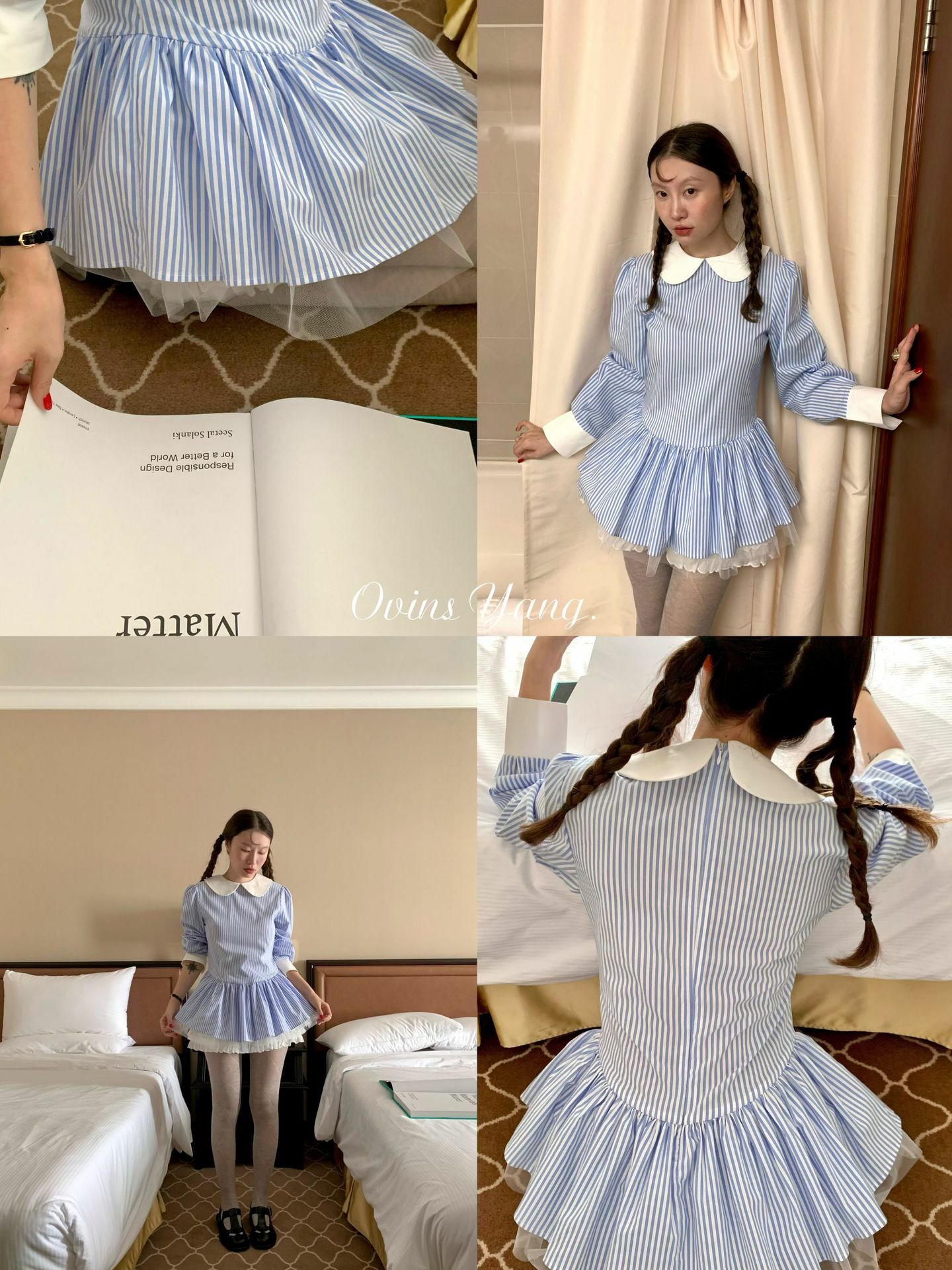 *o-ha-you*【FOY100169】條紋白襯衫秋冬設計感小眾甜美穿搭減齡娃娃領上衣-2色-如有需要請先諮詢
