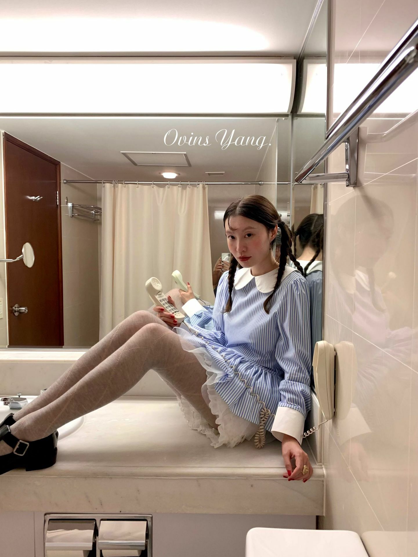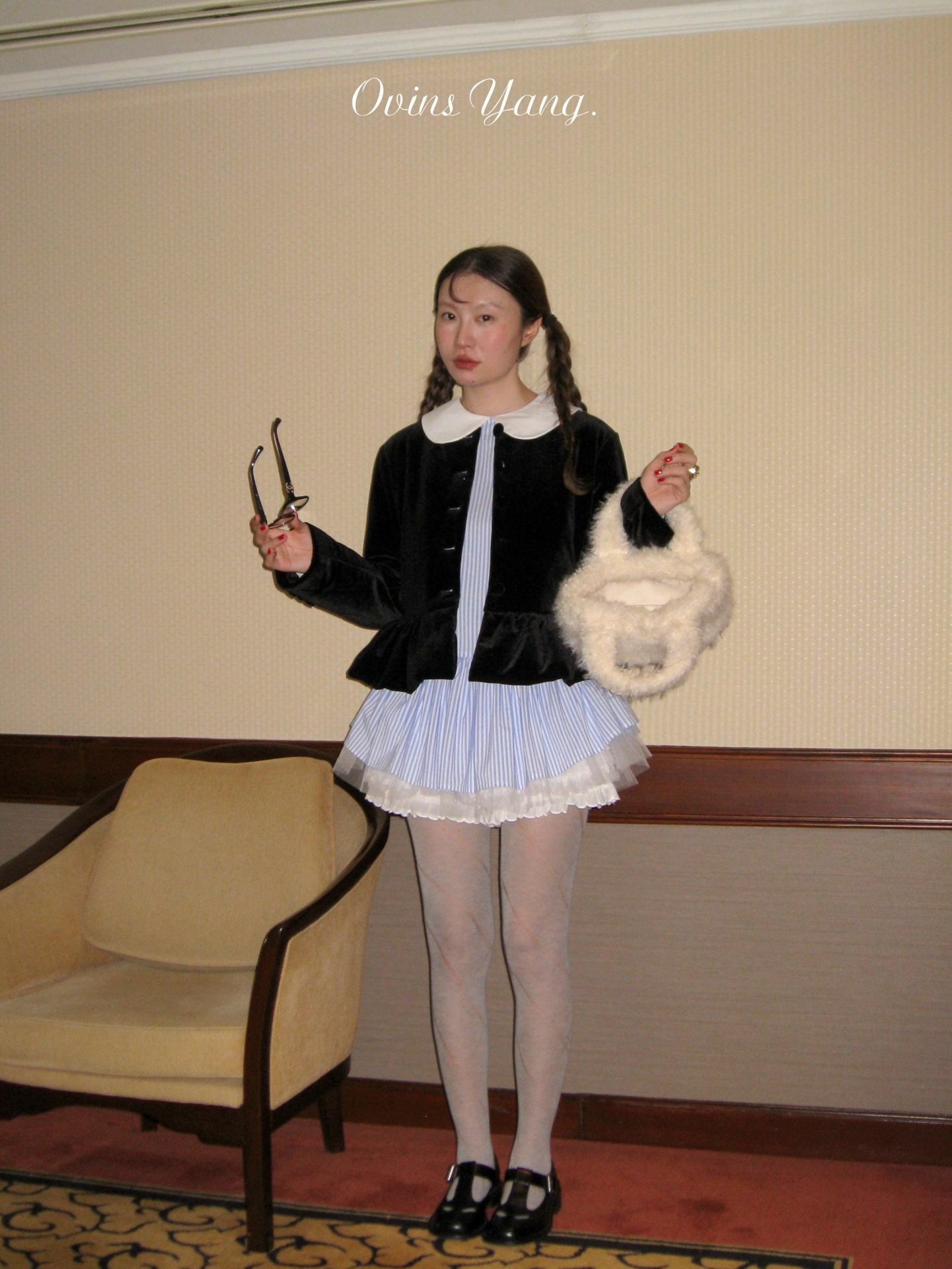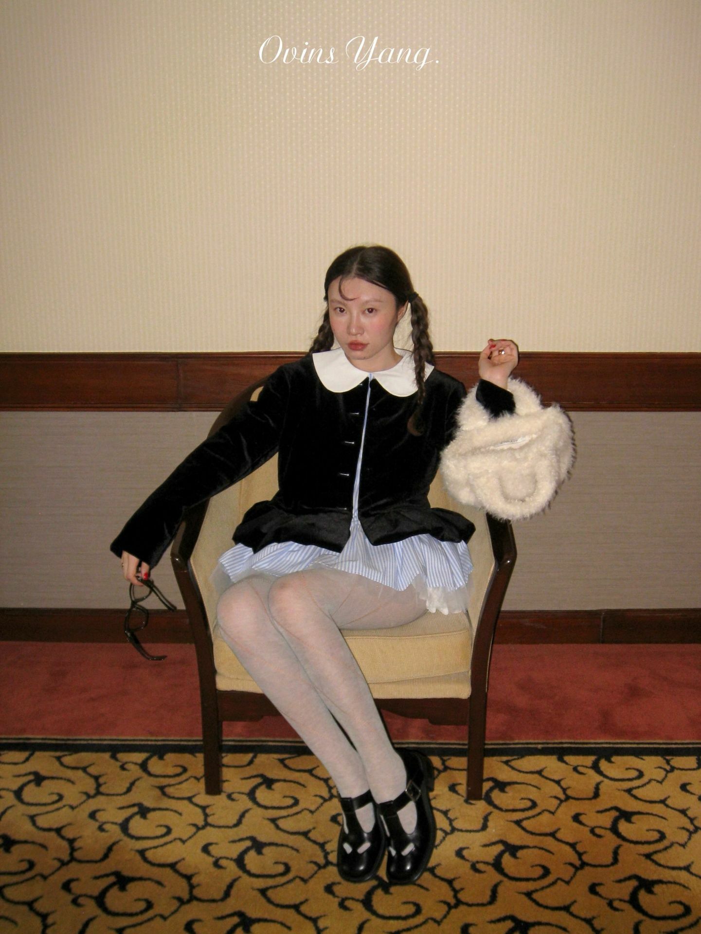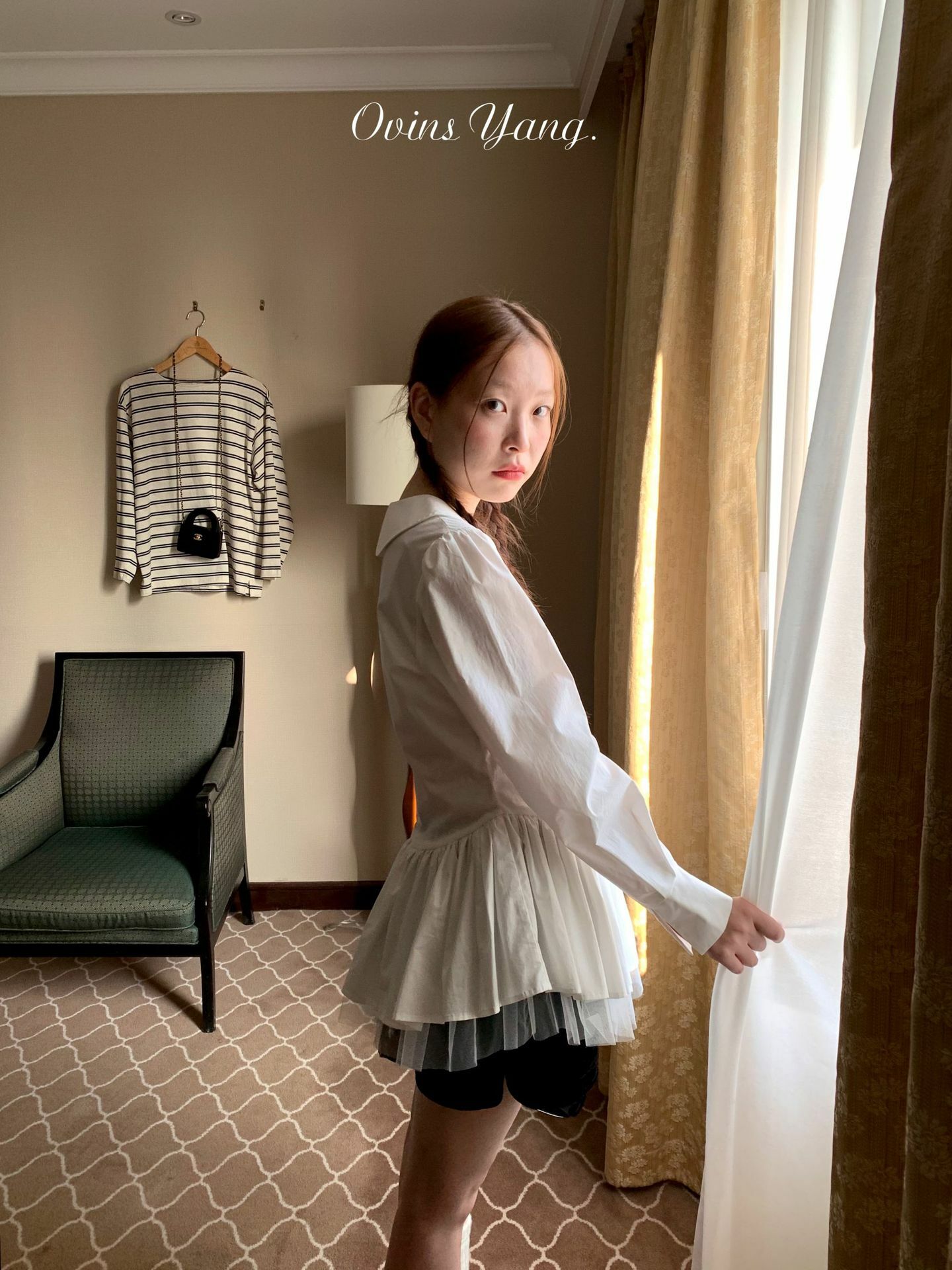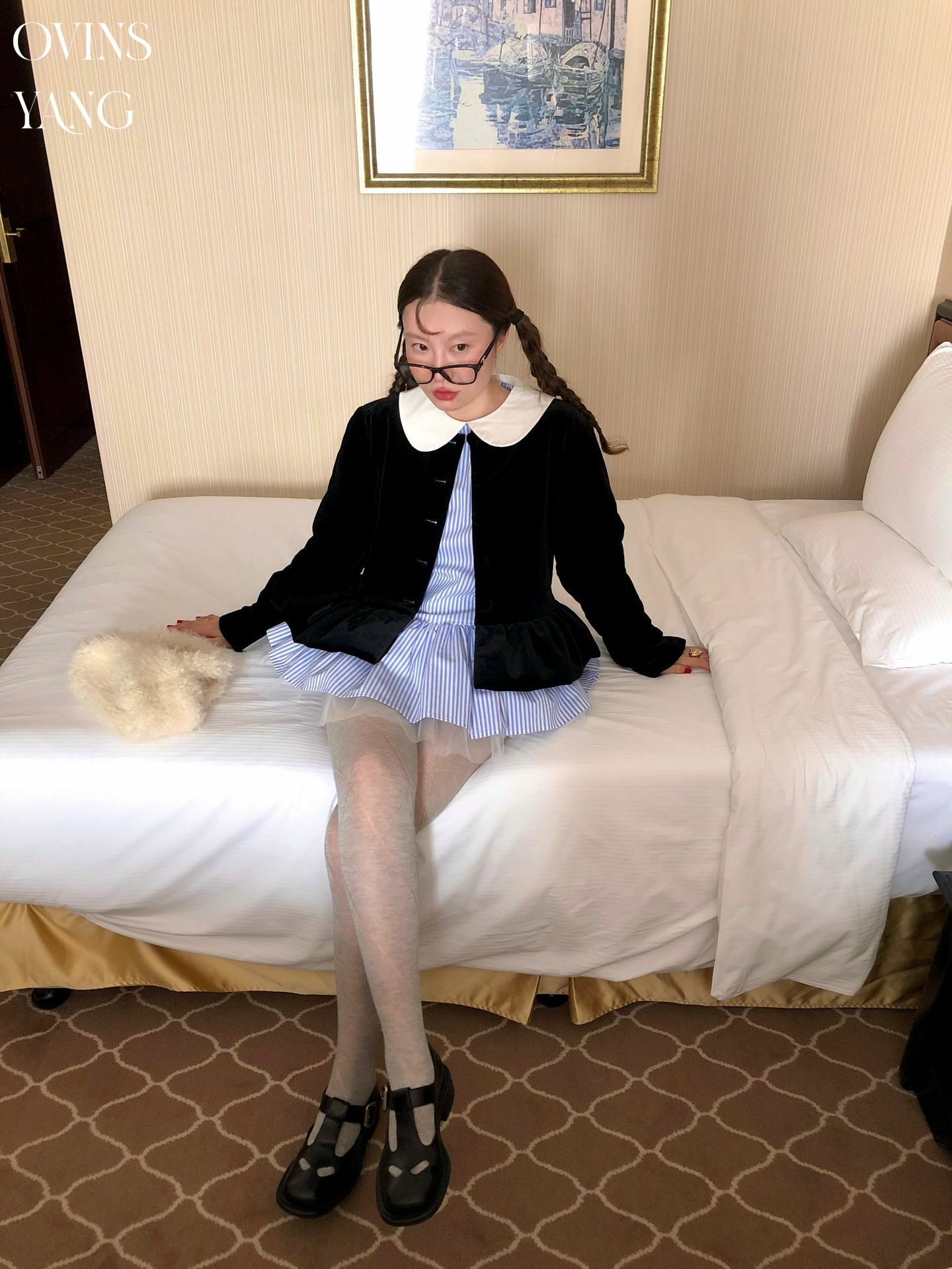 *o-ha-you*【FOY100169】條紋白襯衫秋冬設計感小眾甜美穿搭減齡娃娃領上衣-2色-如有需要請先諮詢