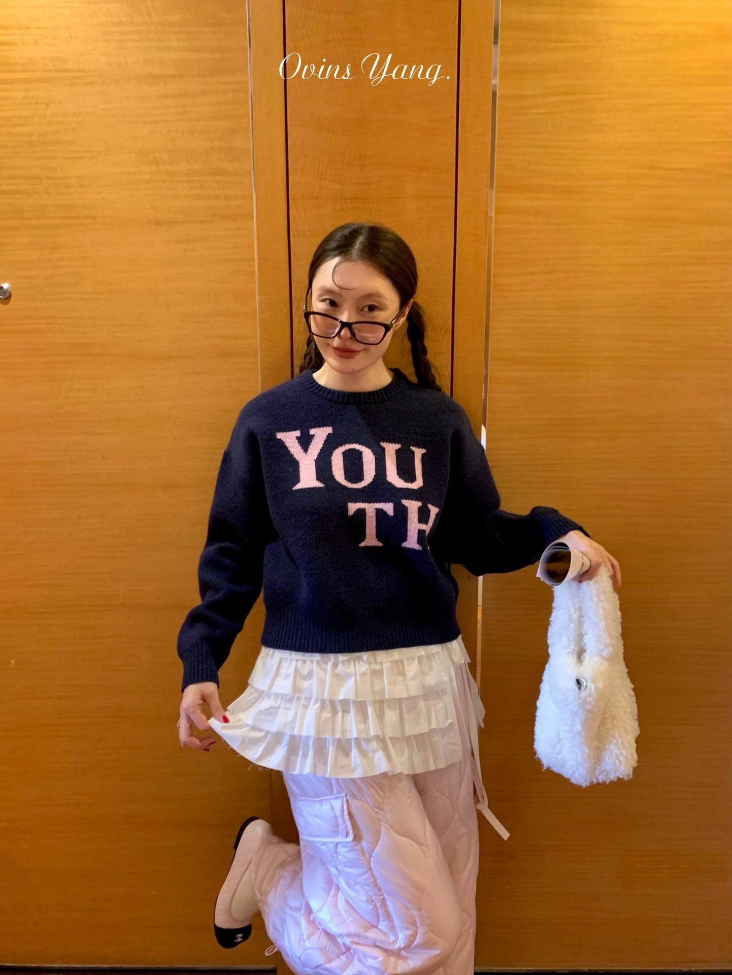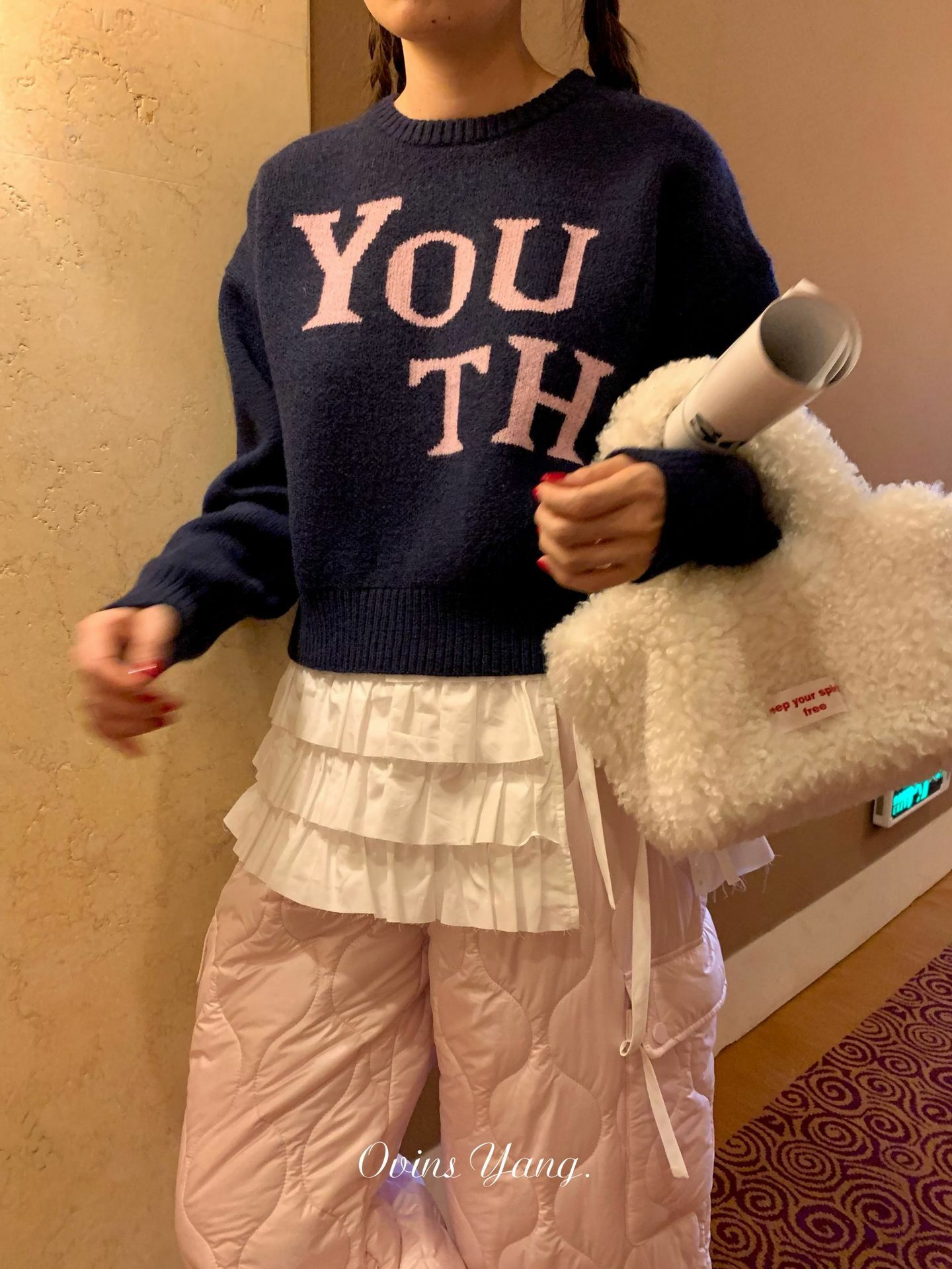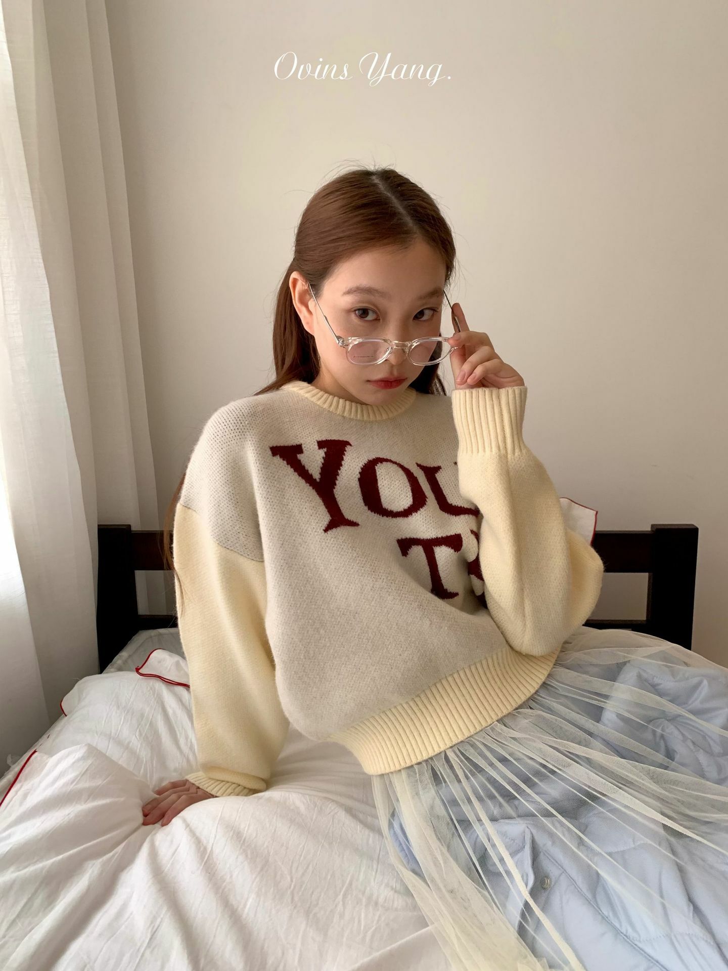 *o-ha-you*【FOY100175】字母毛衣秋冬穿搭學院風韓系慵懶高級感減齡休閒上衣-2色-如有需要請先諮詢