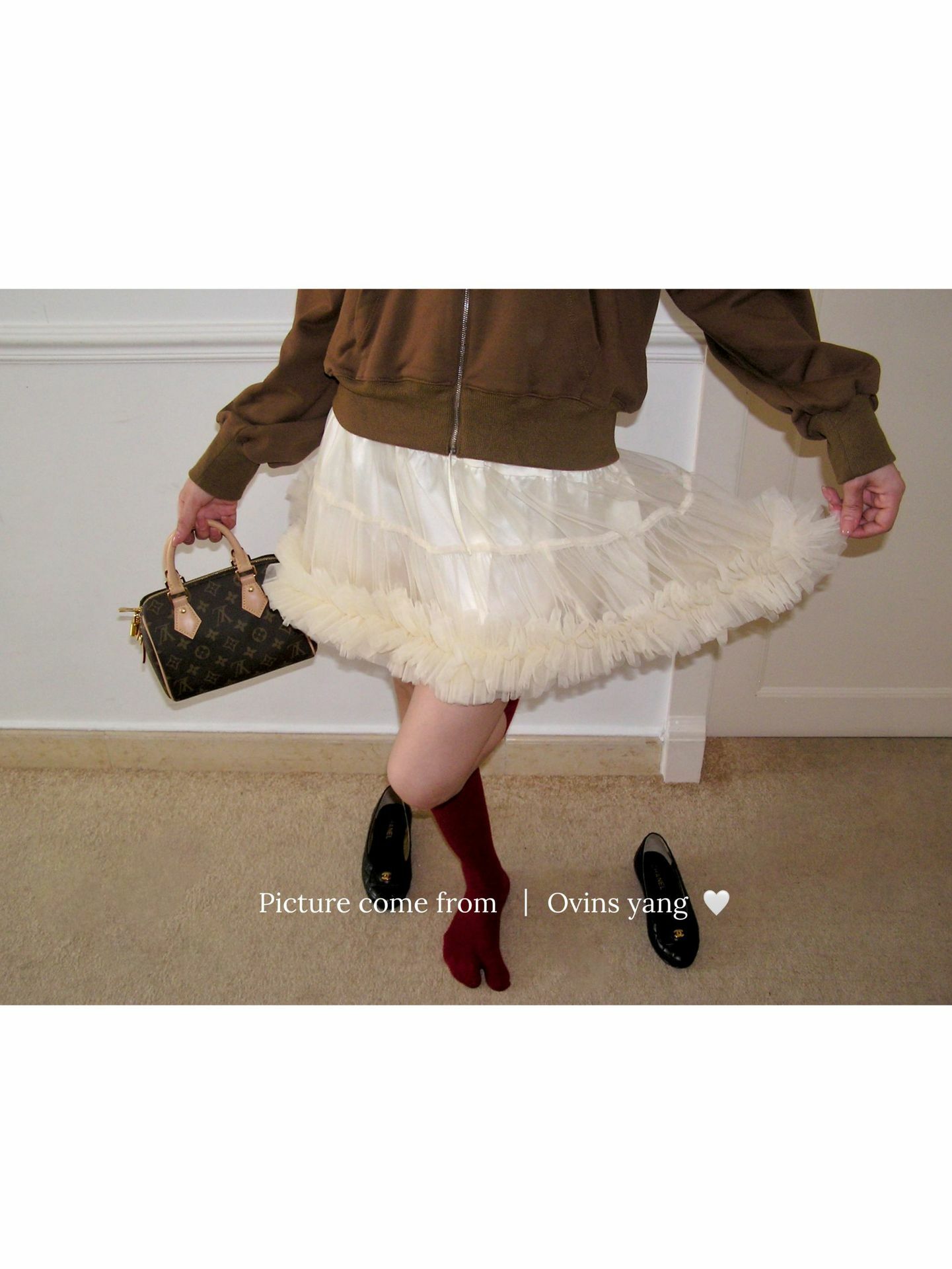 *o-ha-you*【FOY100196】花邊A字短裙半身裙春秋短款甜美減齡少女風百褶裙-3色-如有需要請先諮詢
