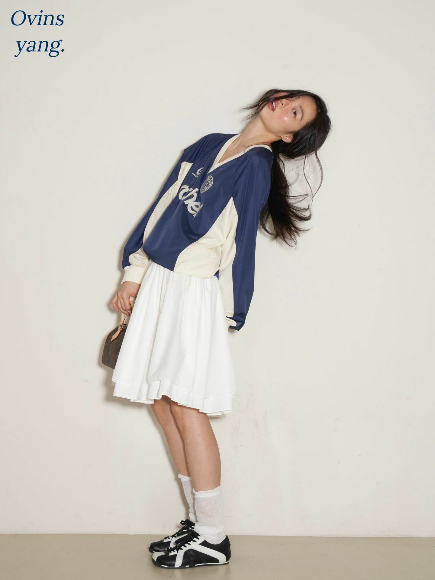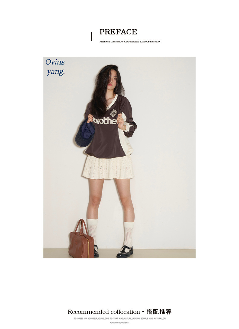 *o-ha-you*【FOY100199】V領美式衛衣春秋薄款寬鬆甜美慵懶風休閒運動上衣-2色-如有需要請先諮詢