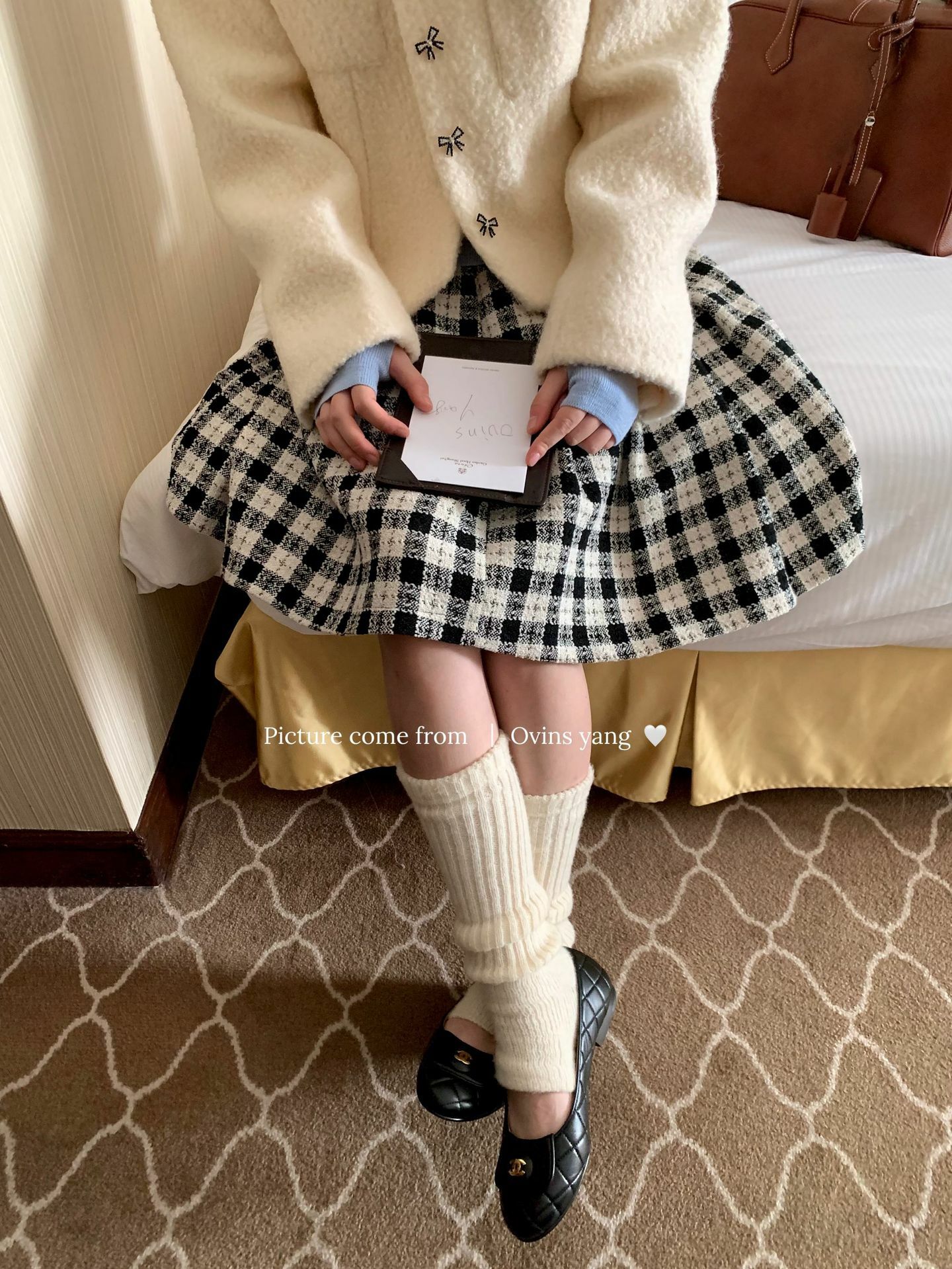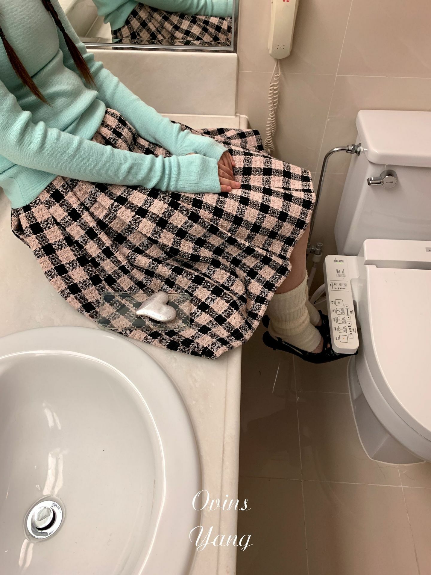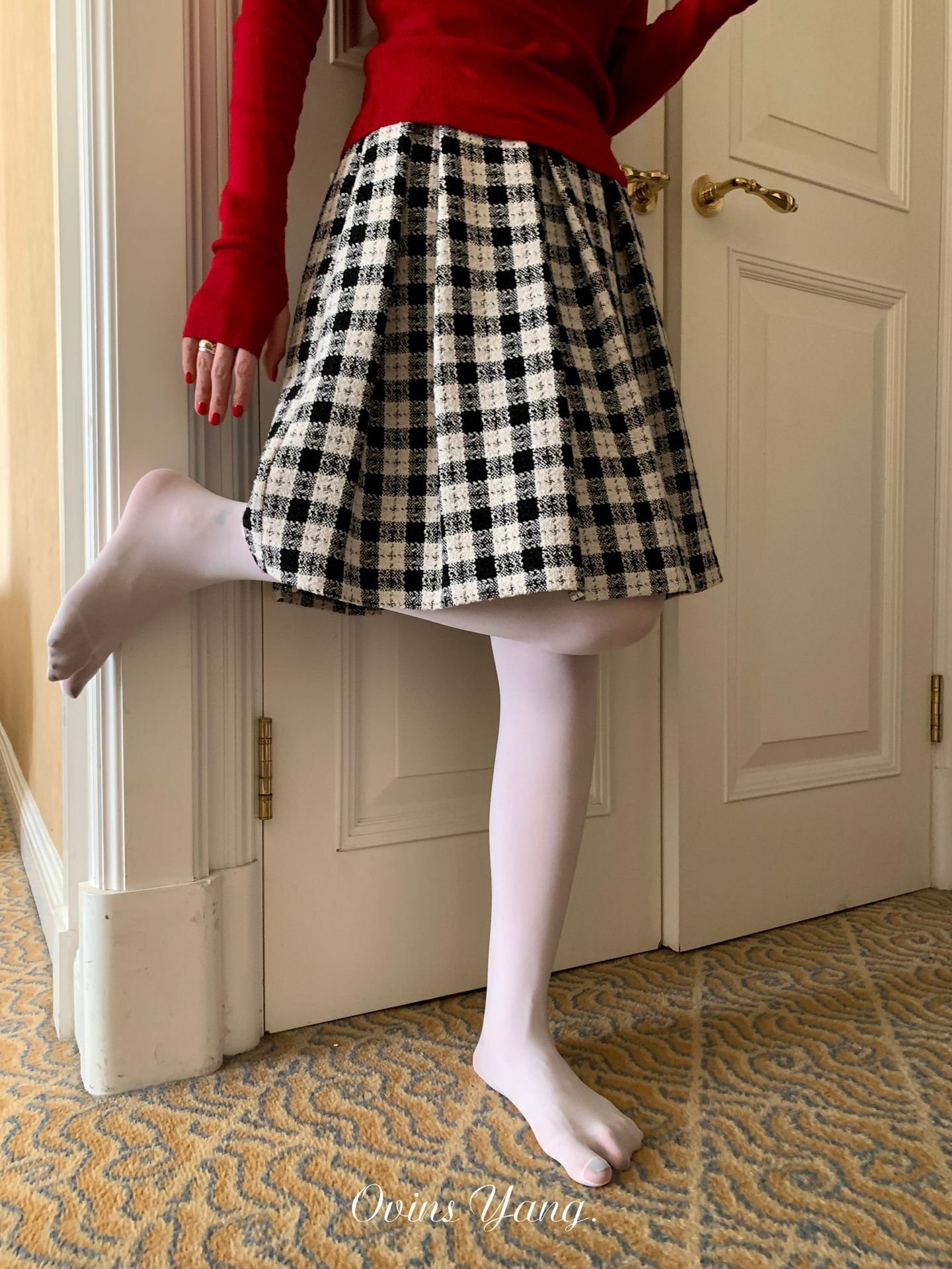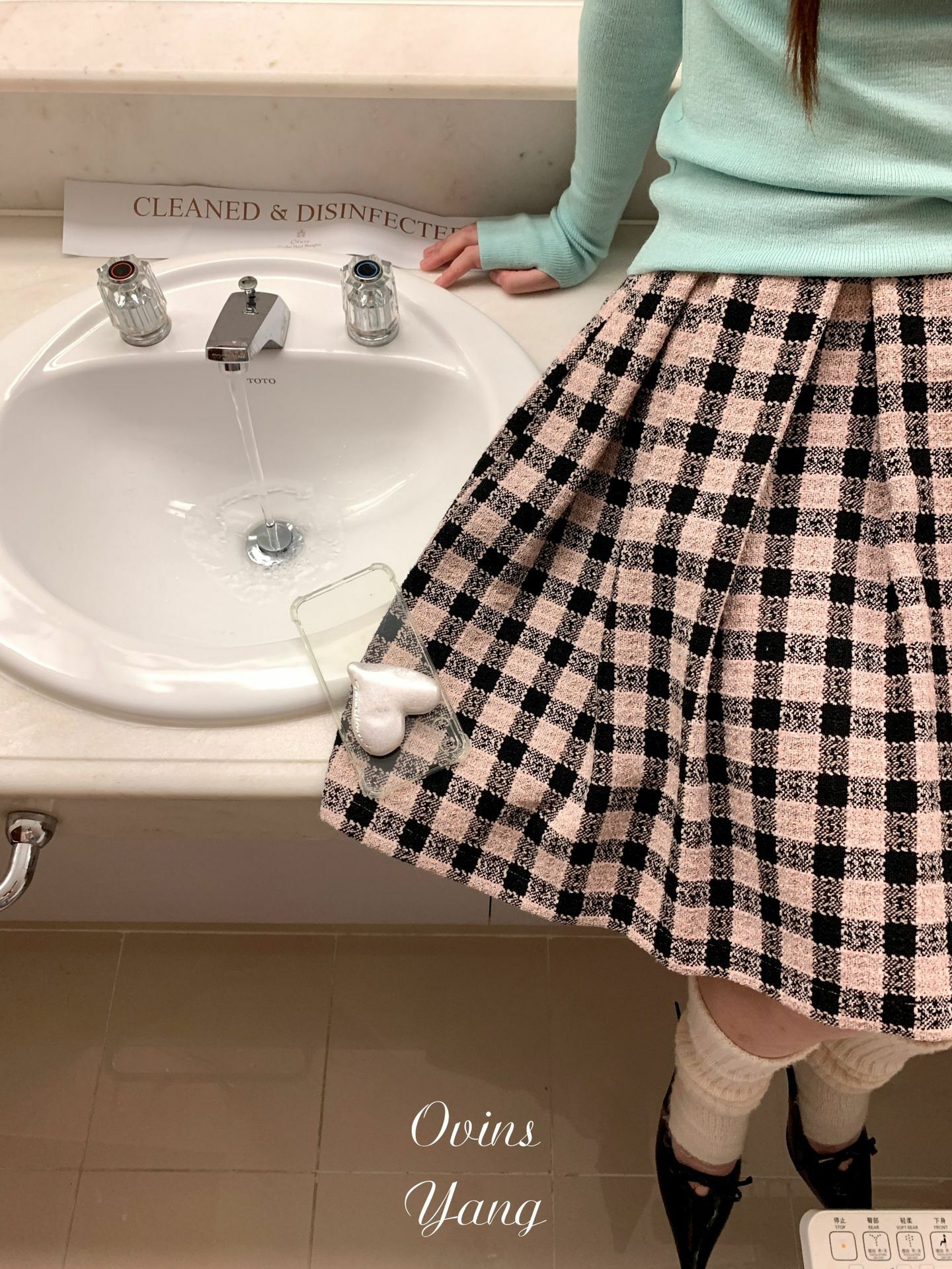 *o-ha-you*【FOY100202】毛呢A字半身裙秋冬款設計感小眾甜美學院風格子短裙-2色-如有需要請先諮詢