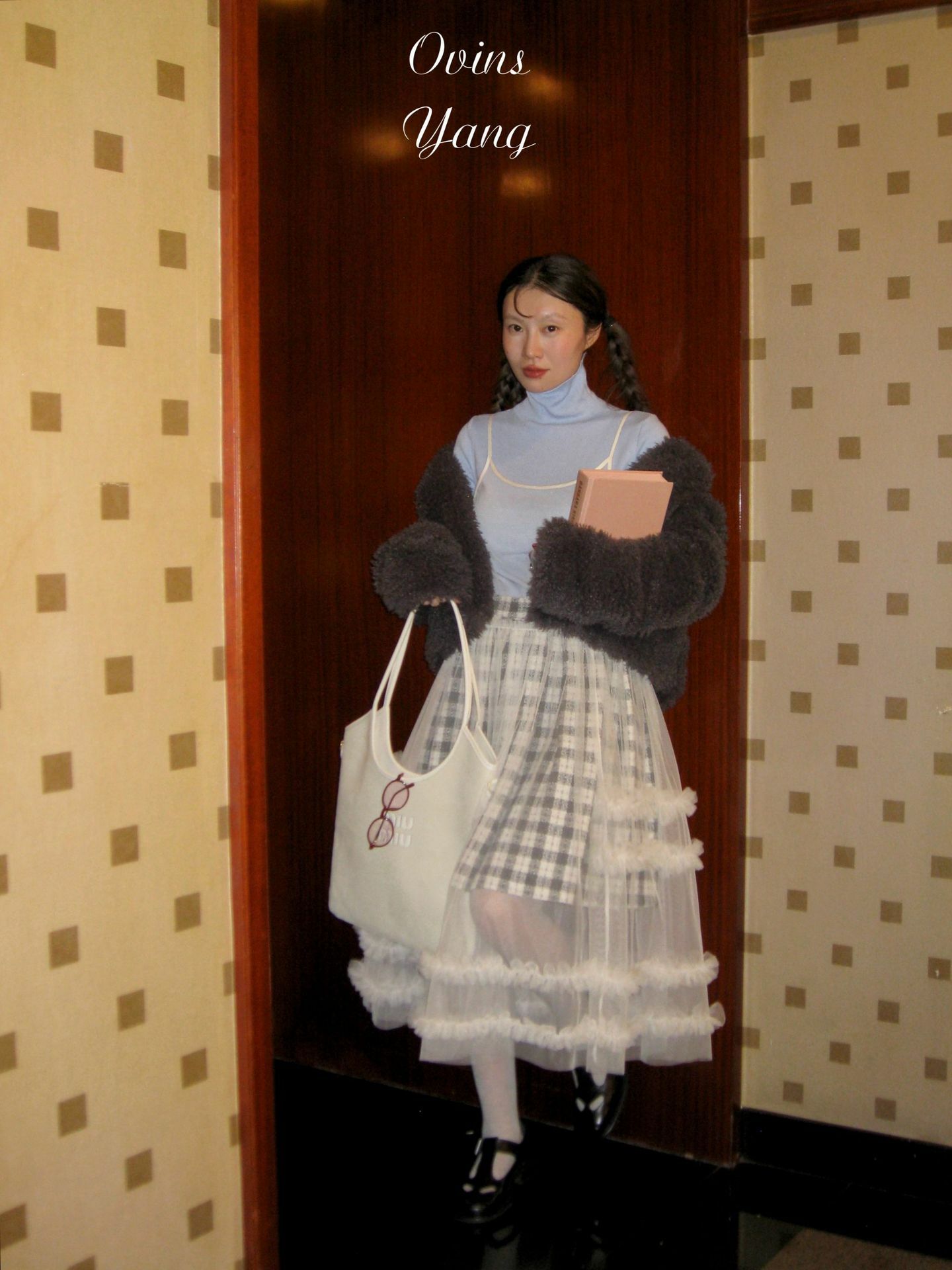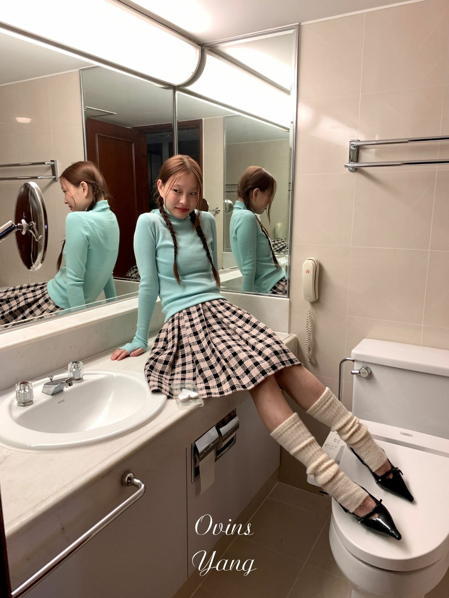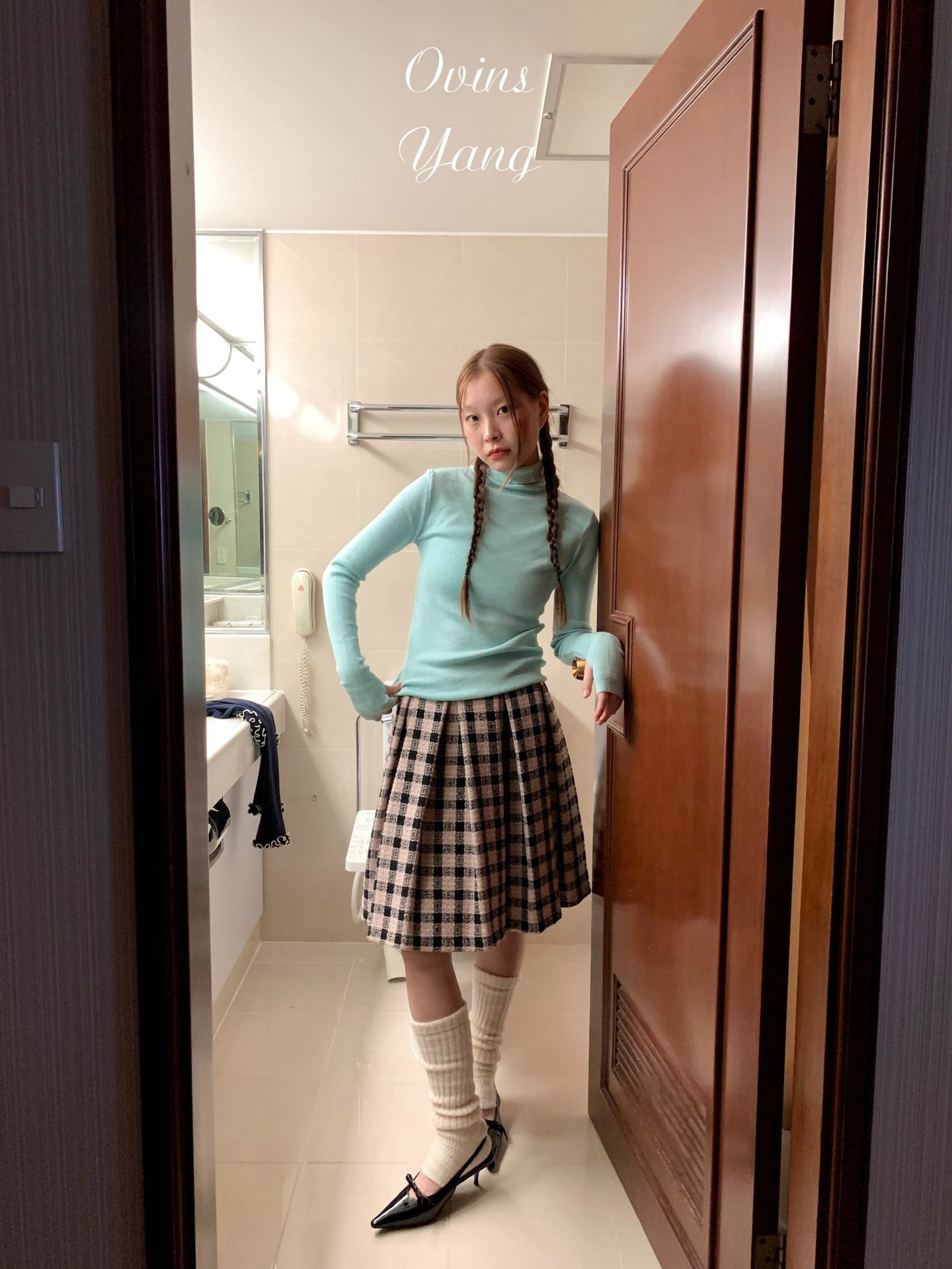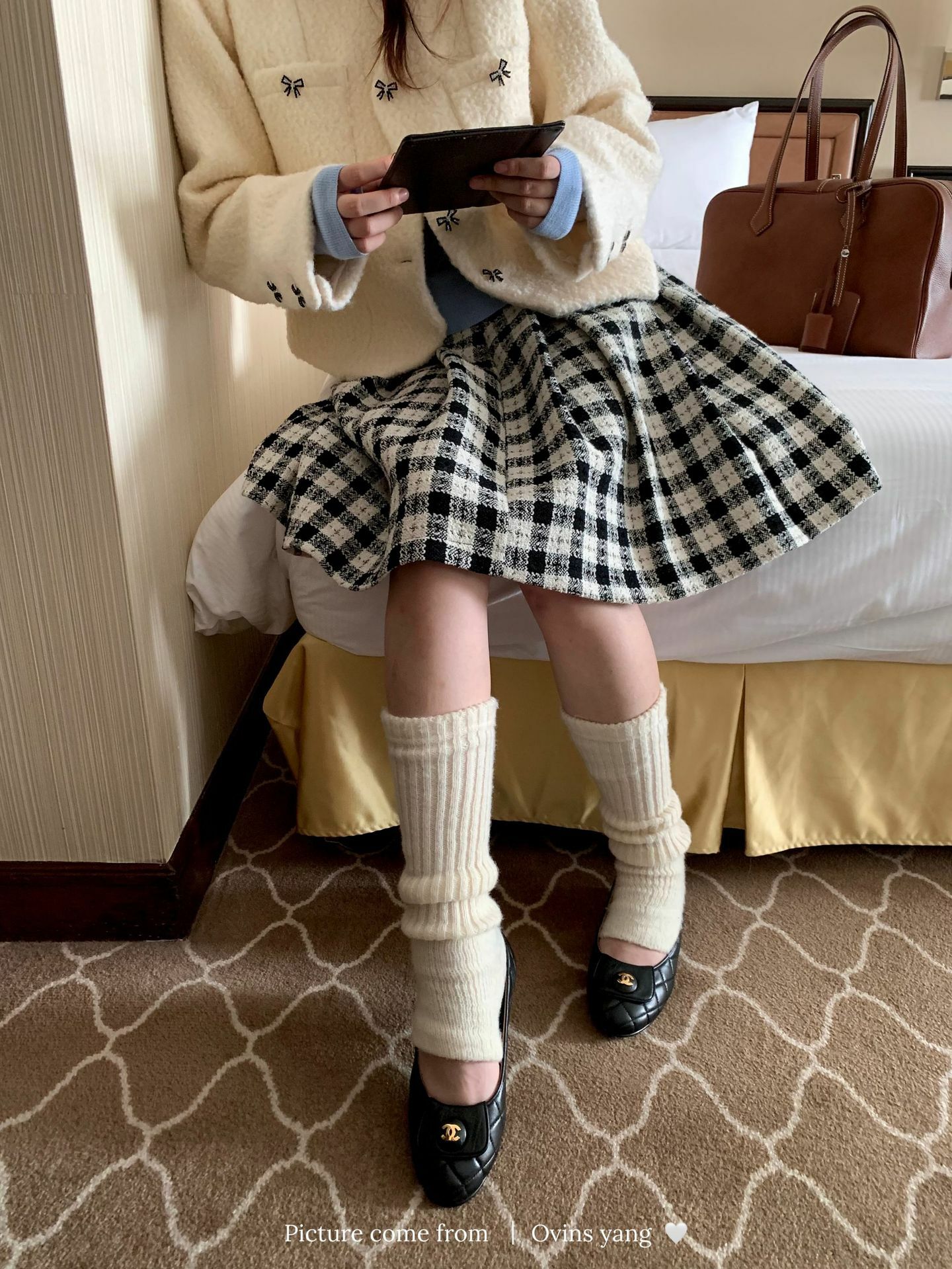 *o-ha-you*【FOY100202】毛呢A字半身裙秋冬款設計感小眾甜美學院風格子短裙-2色-如有需要請先諮詢