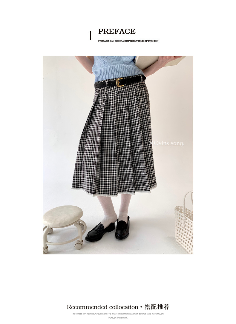 *o-ha-you*【FOY100230】格紋半身裙春秋2025新款jk甜美學院風A字短裙百褶裙-如有需要請先諮詢
