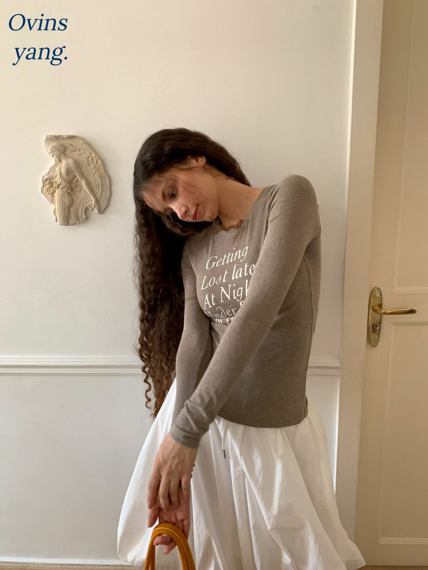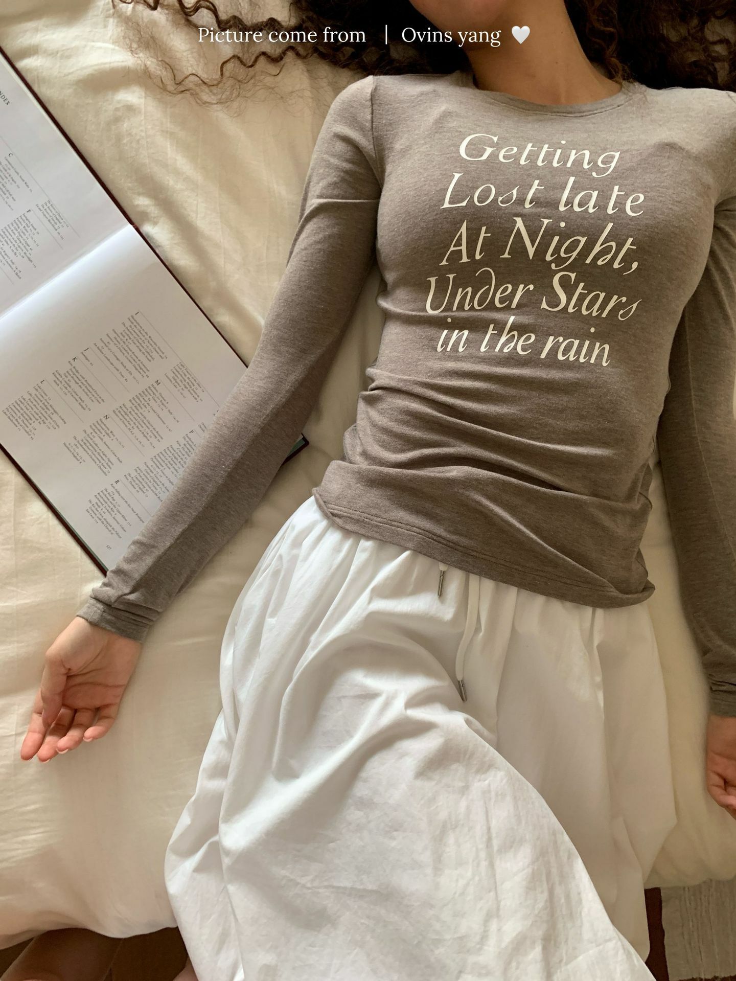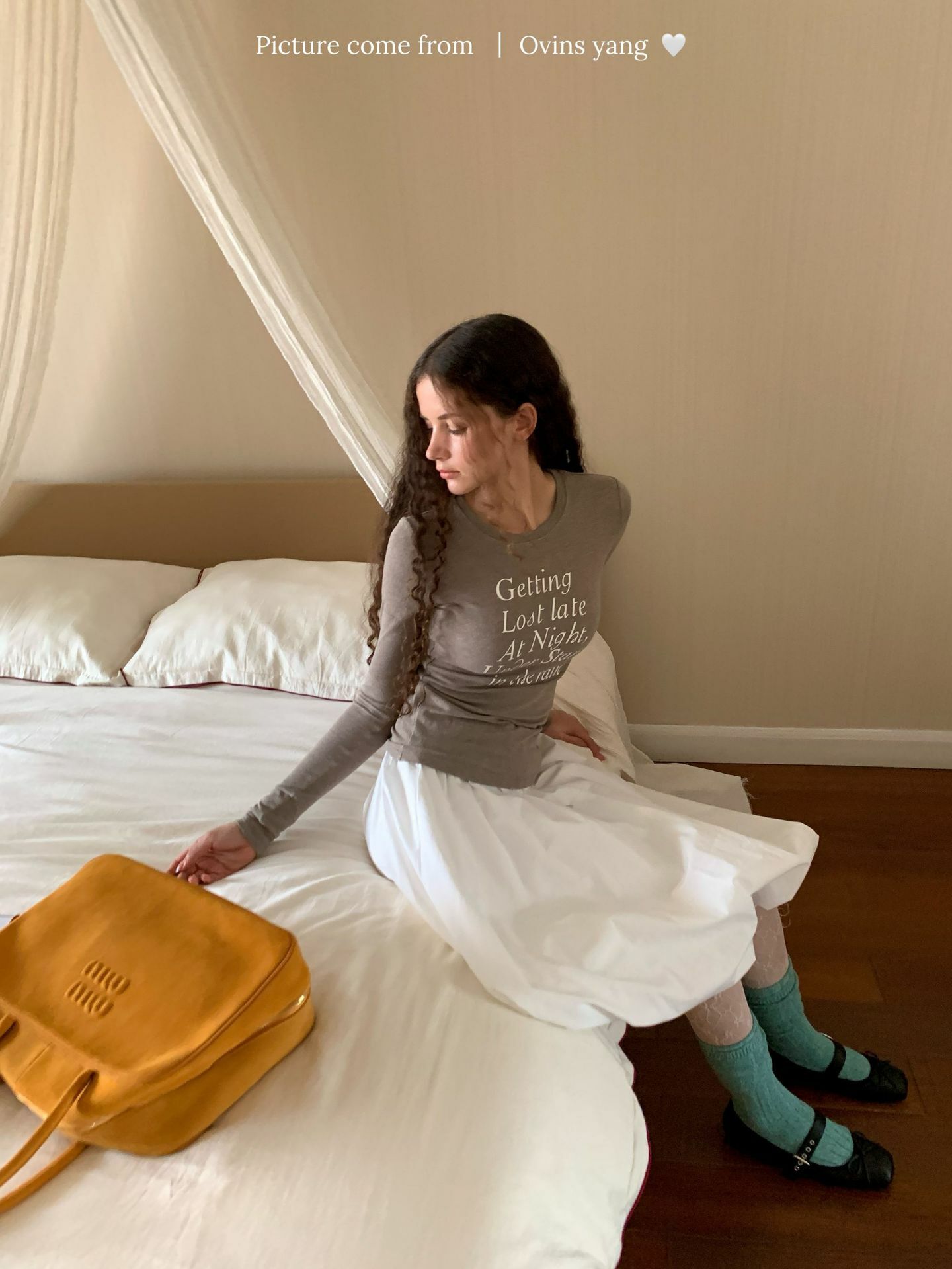 *o-ha-you*【FOY100251】灰色字母長袖T恤上衣打底衫2024新款春季秋季內搭體恤-2色-如有需要請先諮詢