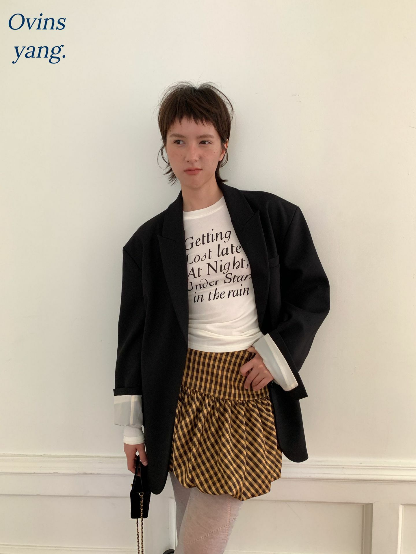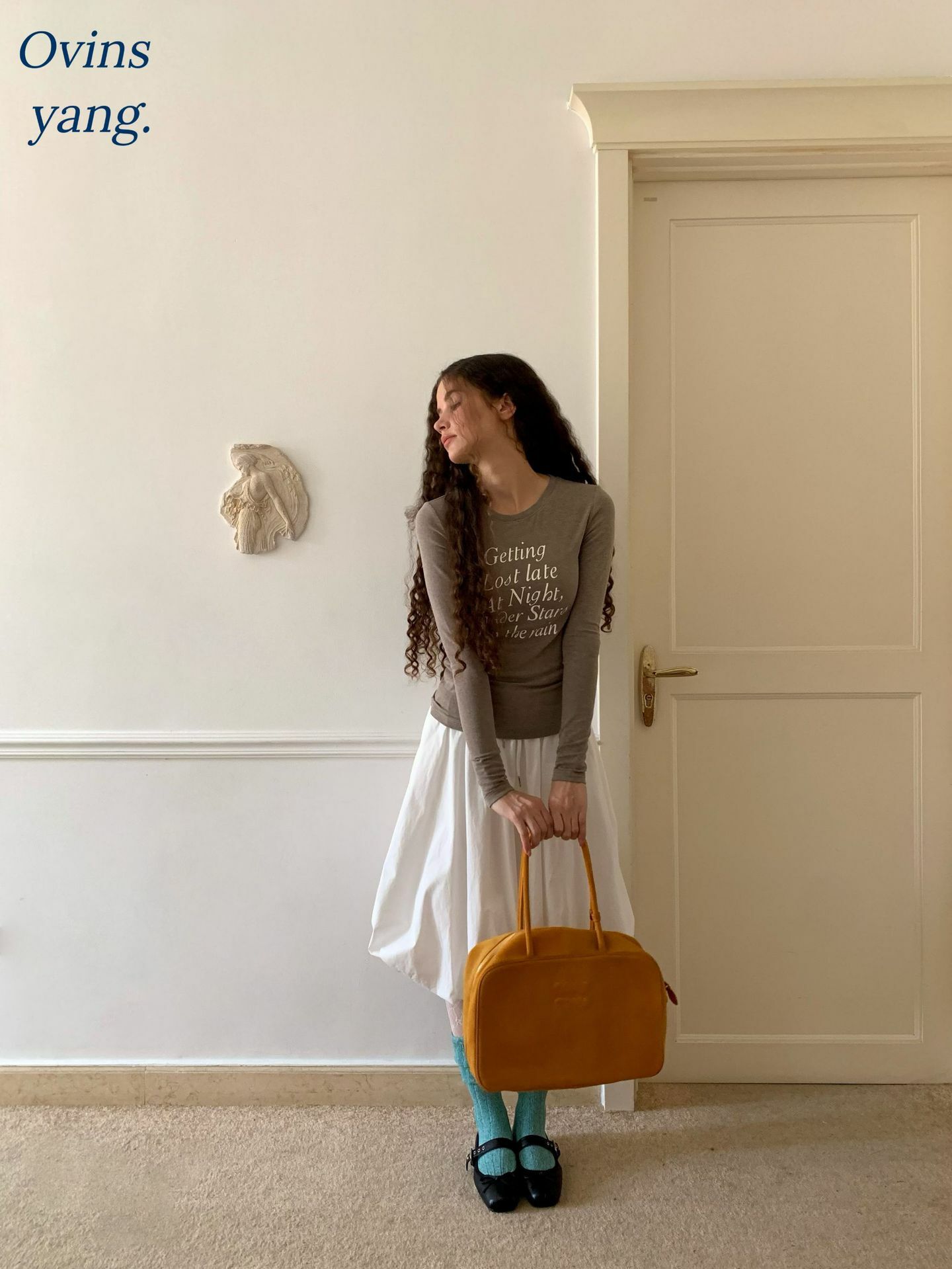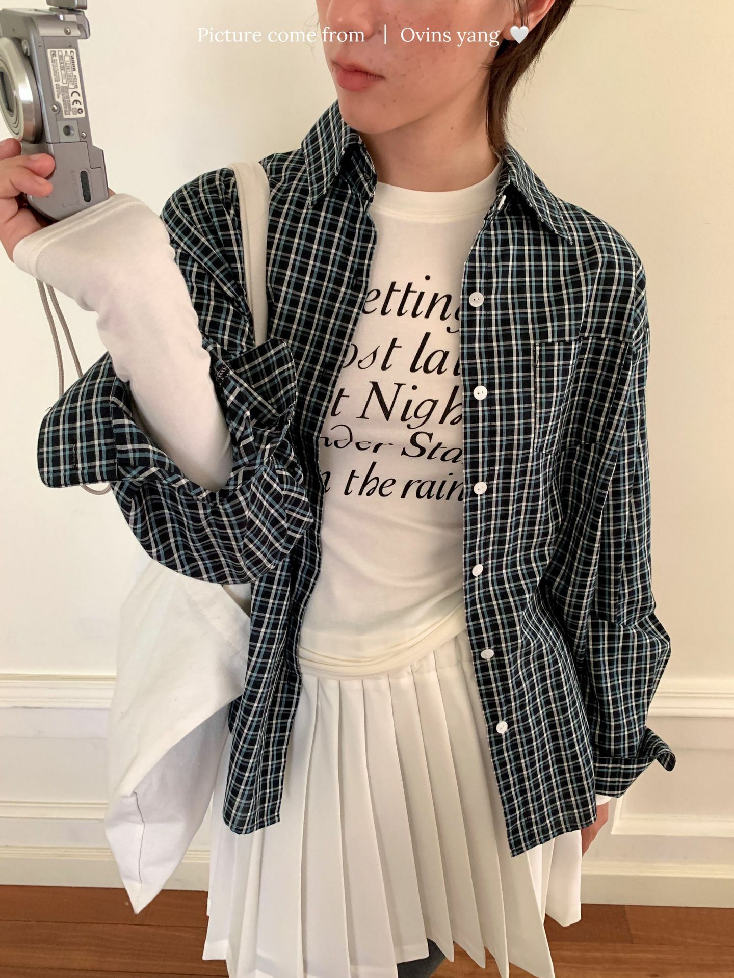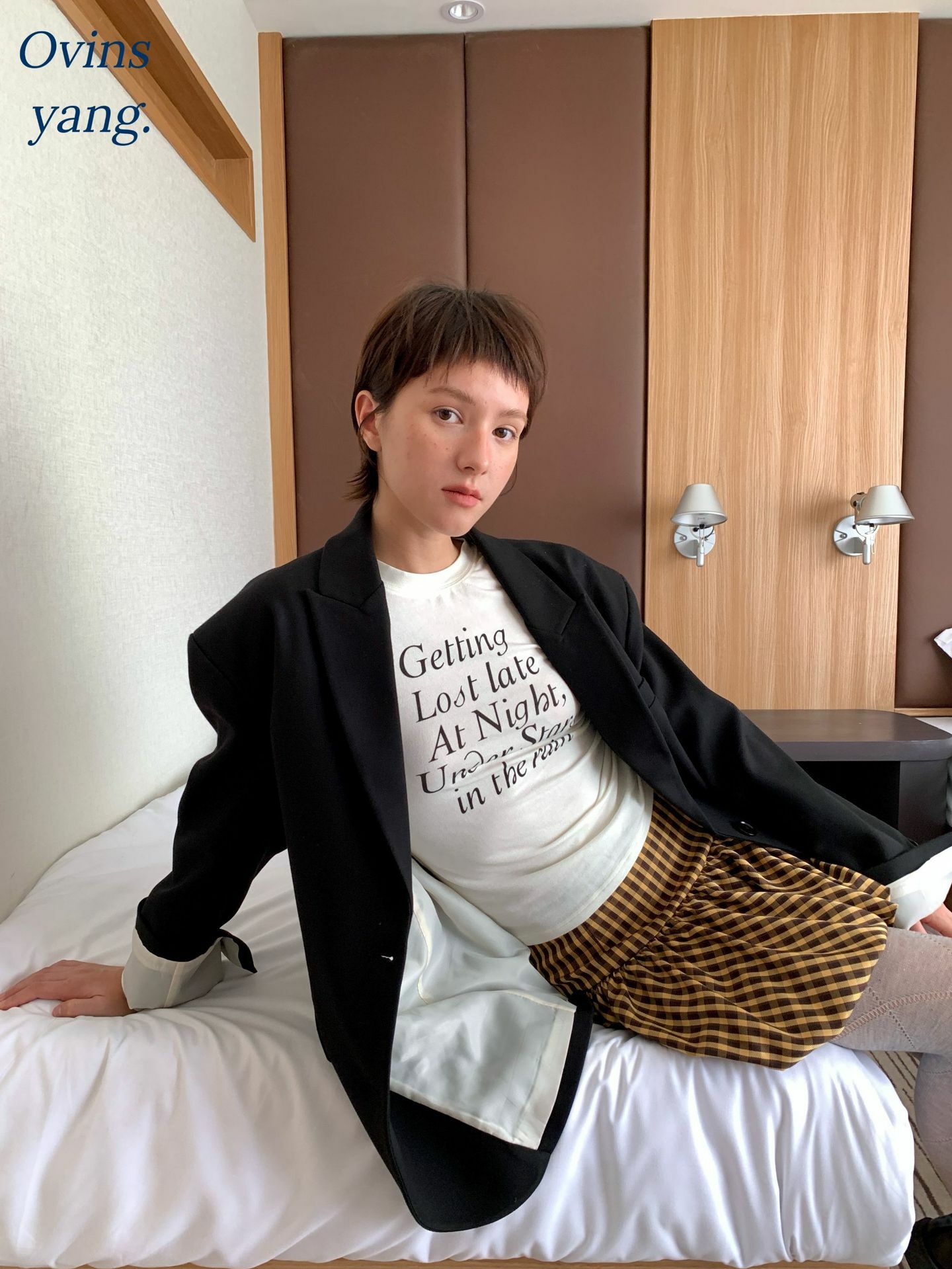 *o-ha-you*【FOY100251】灰色字母長袖T恤上衣打底衫2024新款春季秋季內搭體恤-2色-如有需要請先諮詢