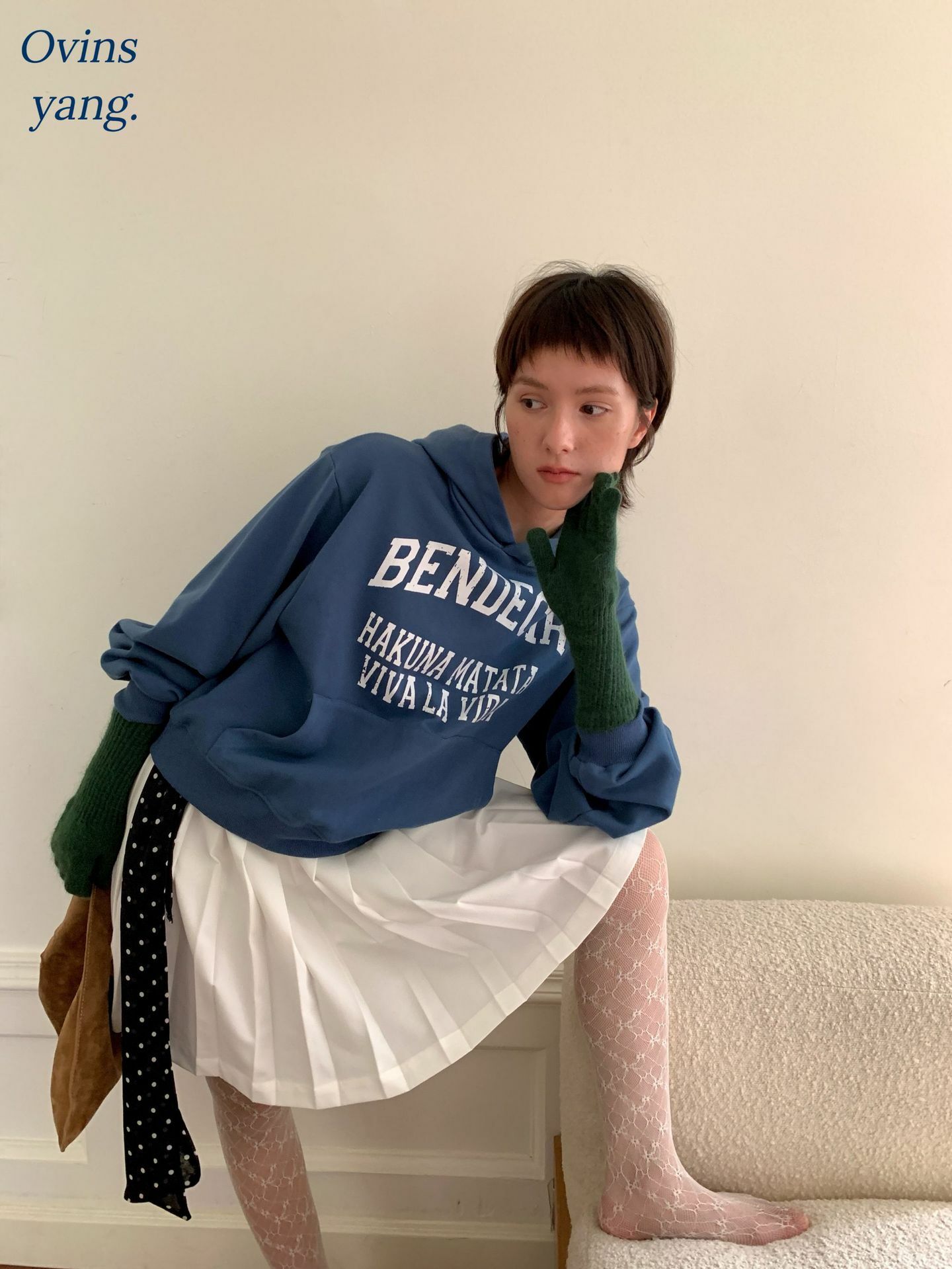 *o-ha-you*【FOY100259】灰色連帽衛衣秋冬寬鬆慵懶風美式復古oversize上衣-2色-如有需要請先諮詢