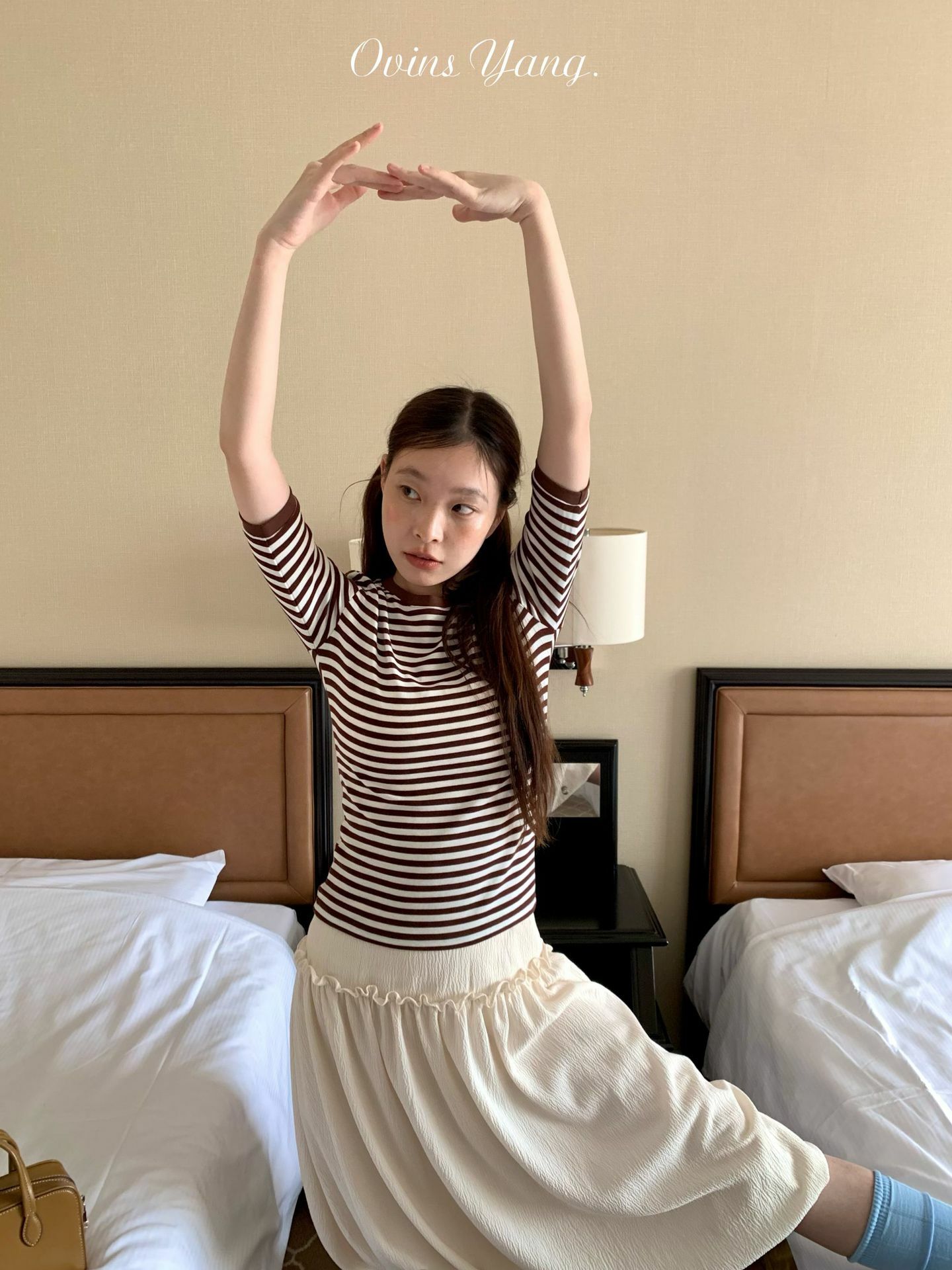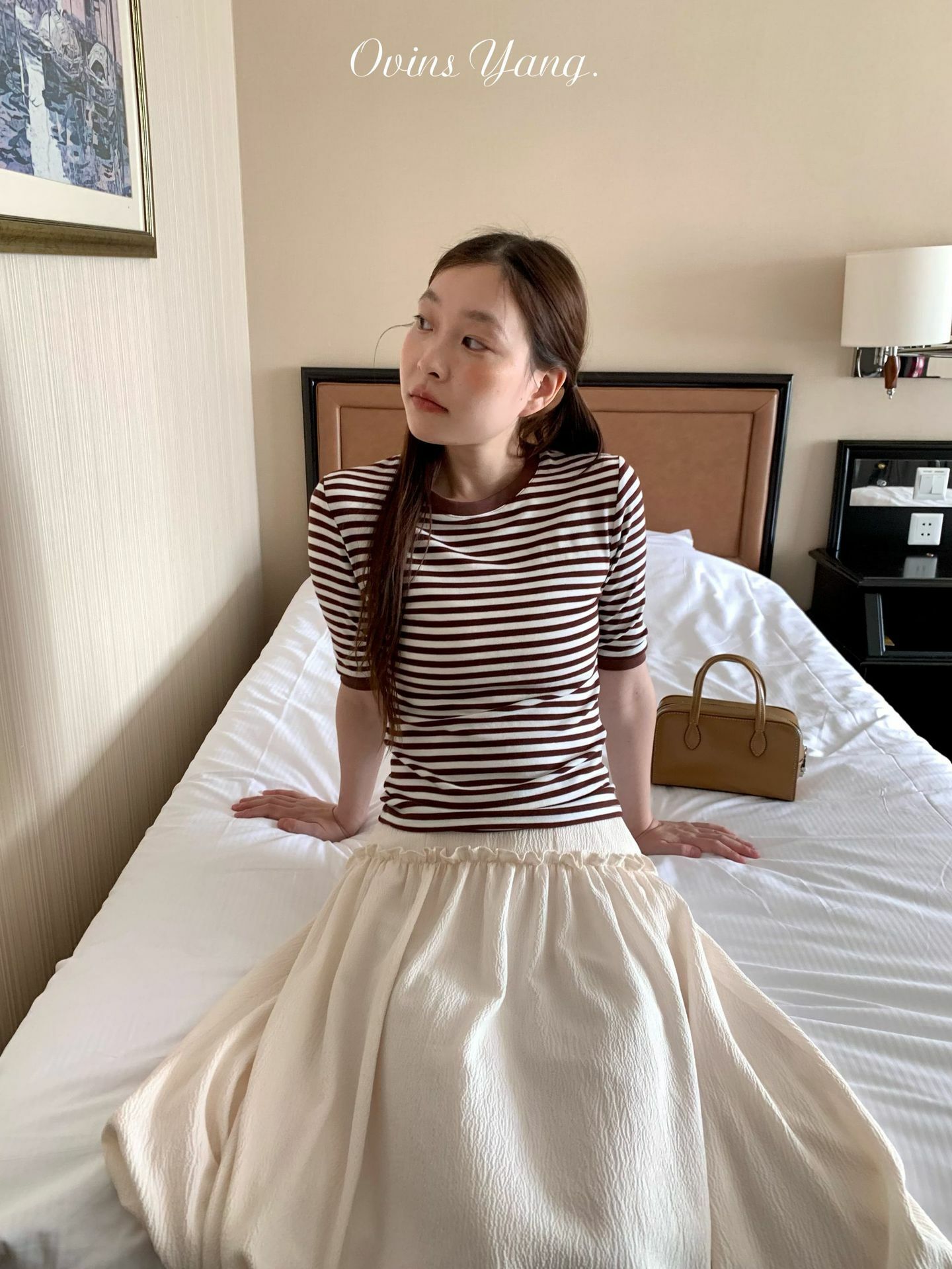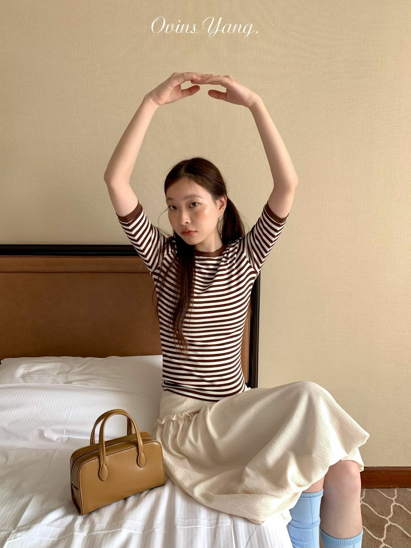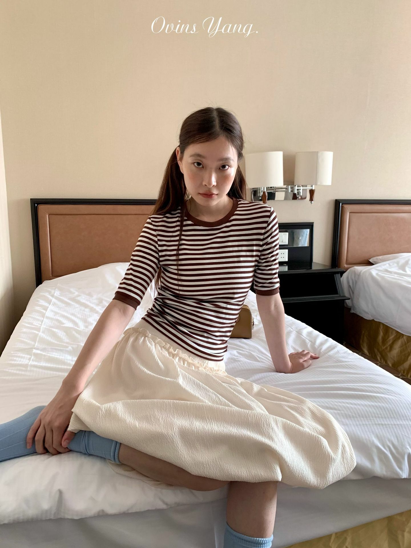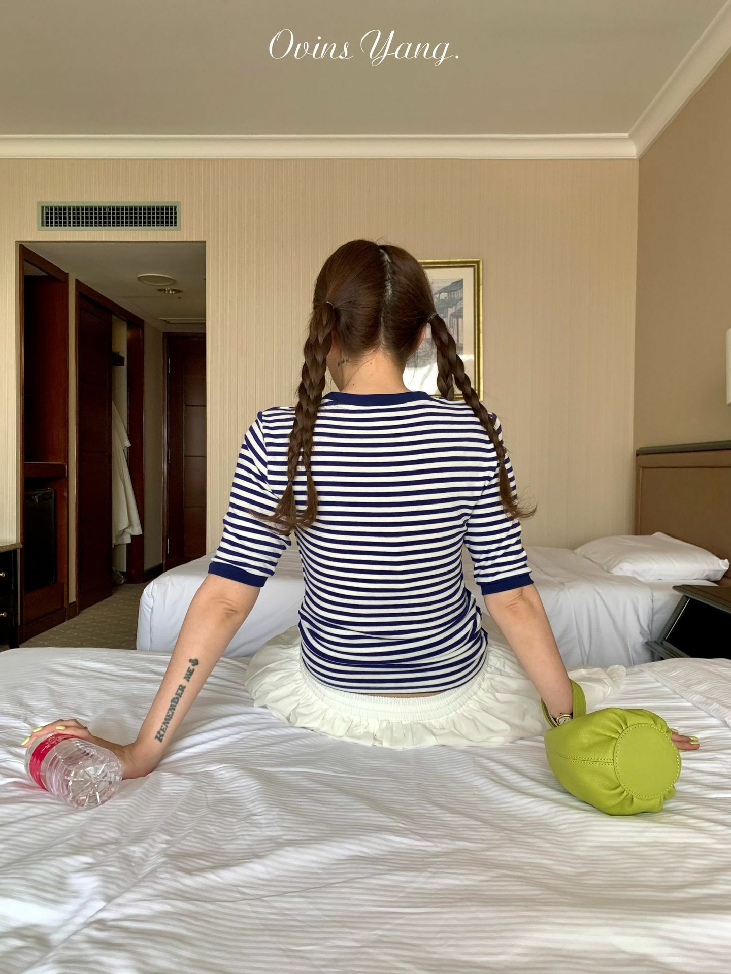 *o-ha-you*【FOY100261】韓系條紋上衣短袖T恤修身甜美學院風穿搭內搭打底衫-2色