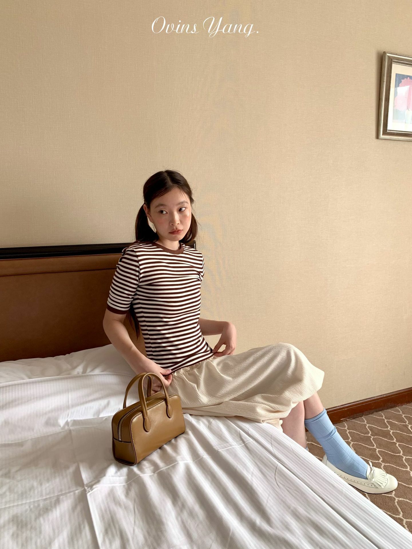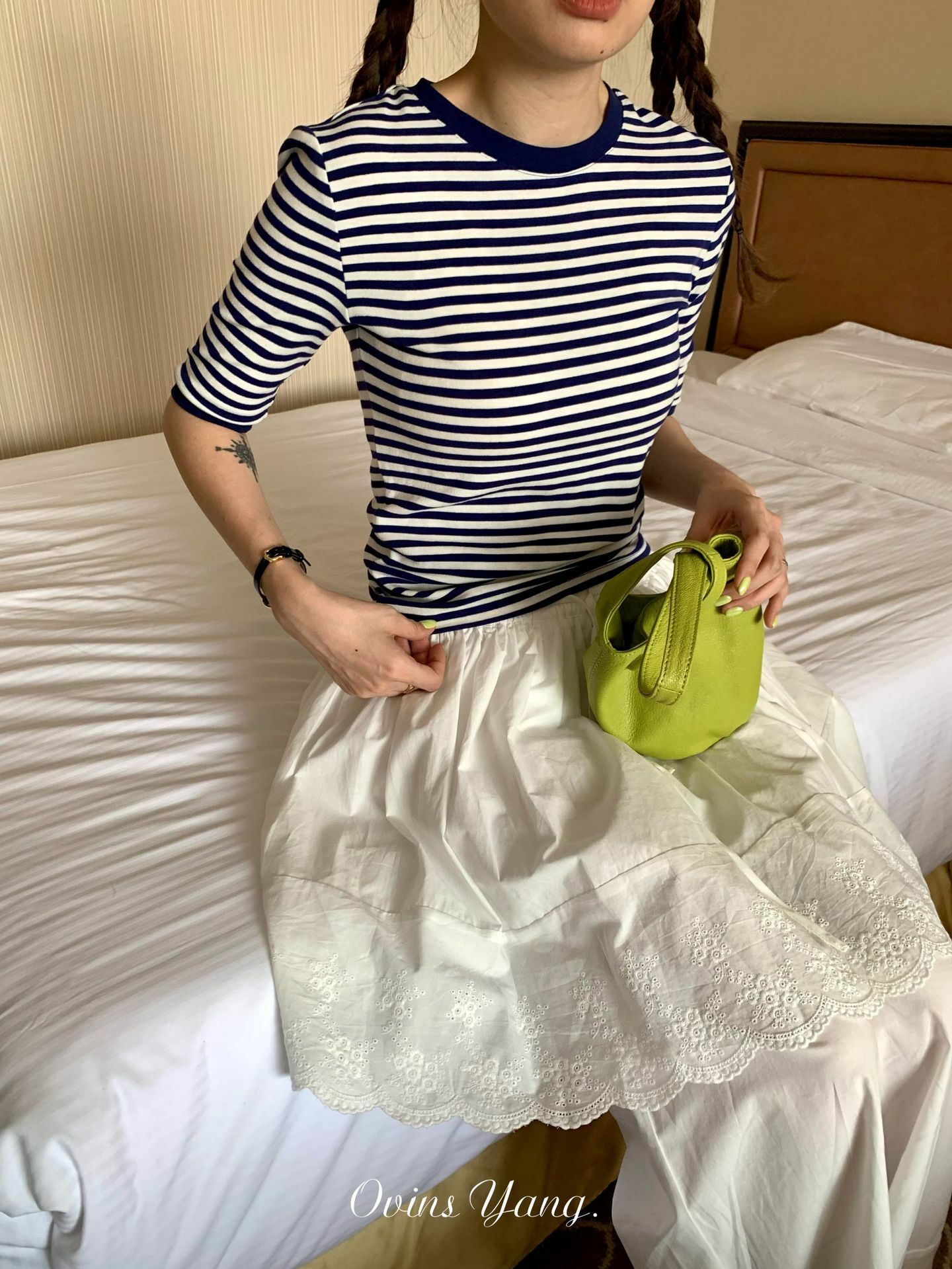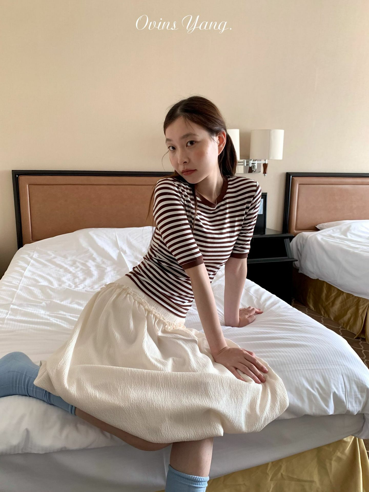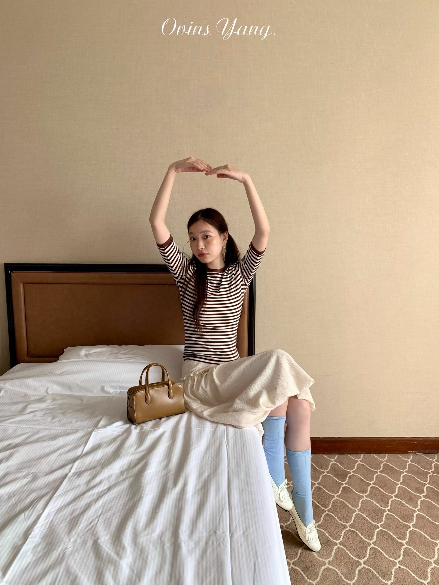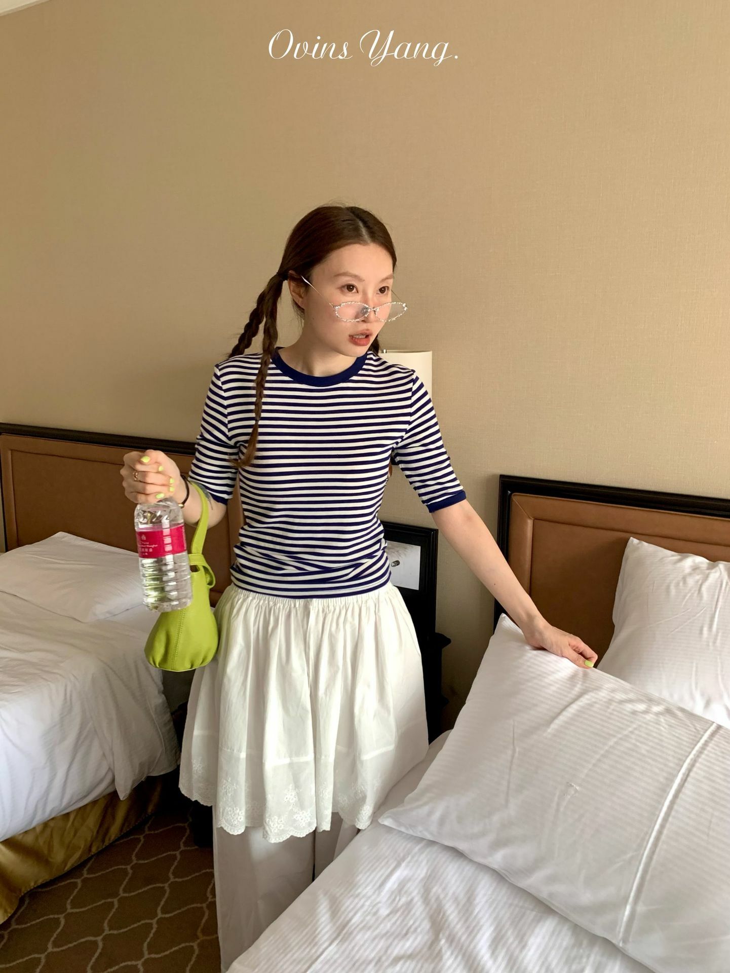 *o-ha-you*【FOY100261】韓系條紋上衣短袖T恤修身甜美學院風穿搭內搭打底衫-2色
