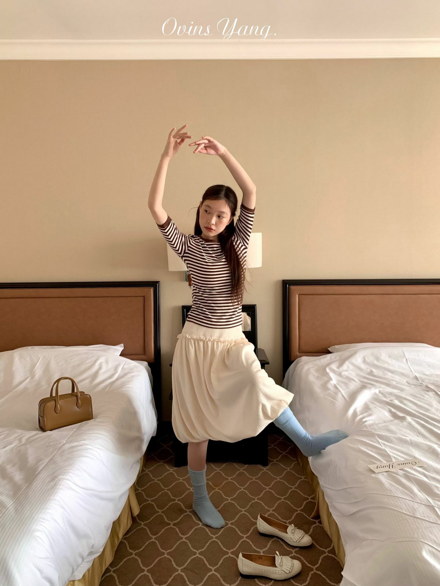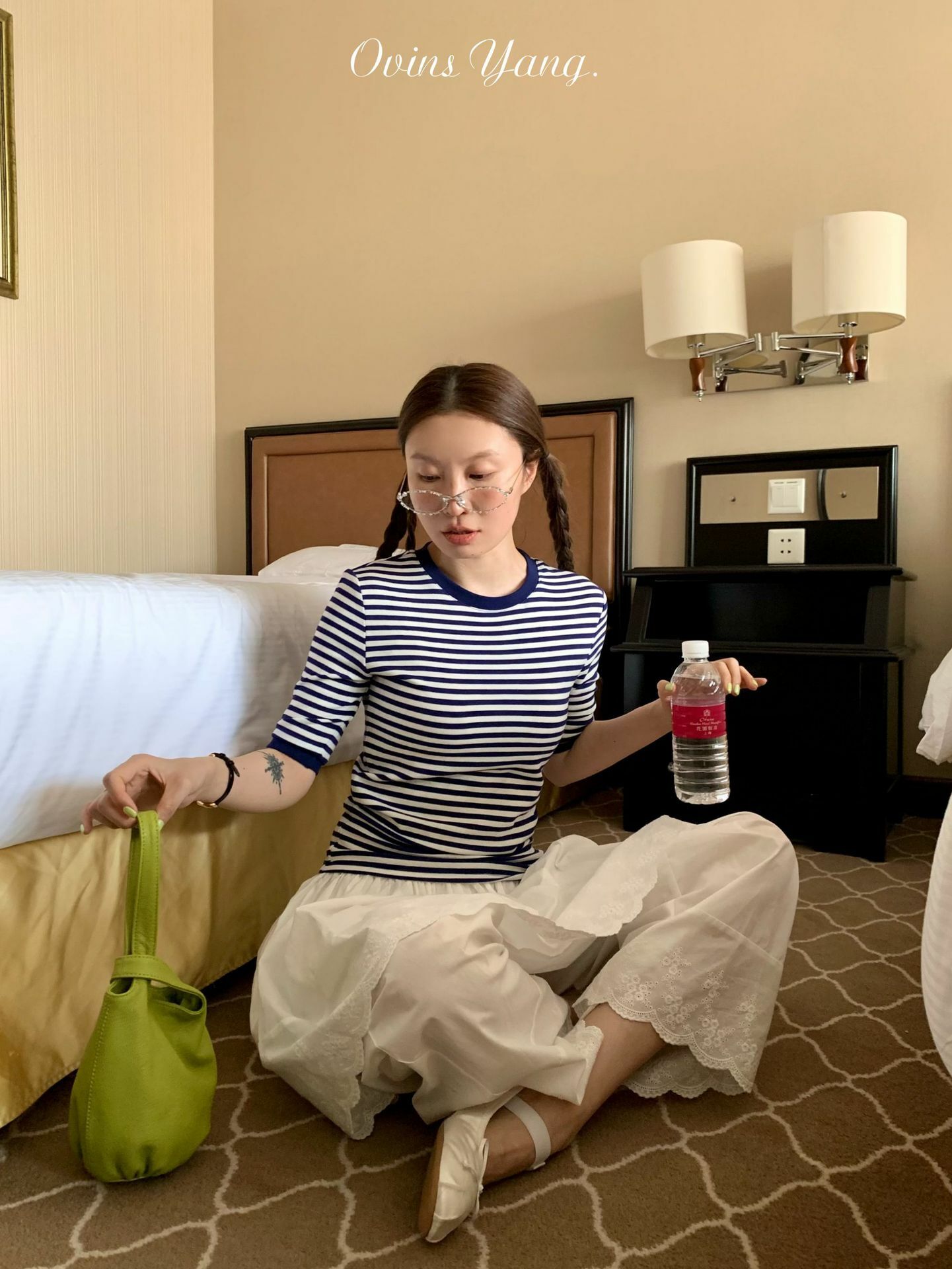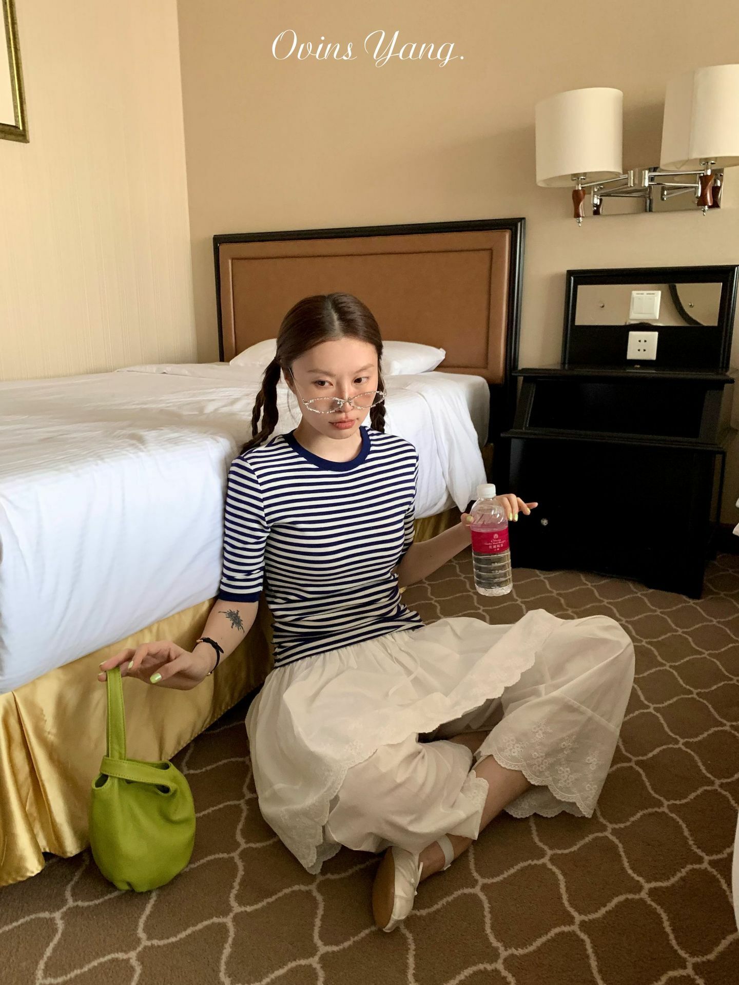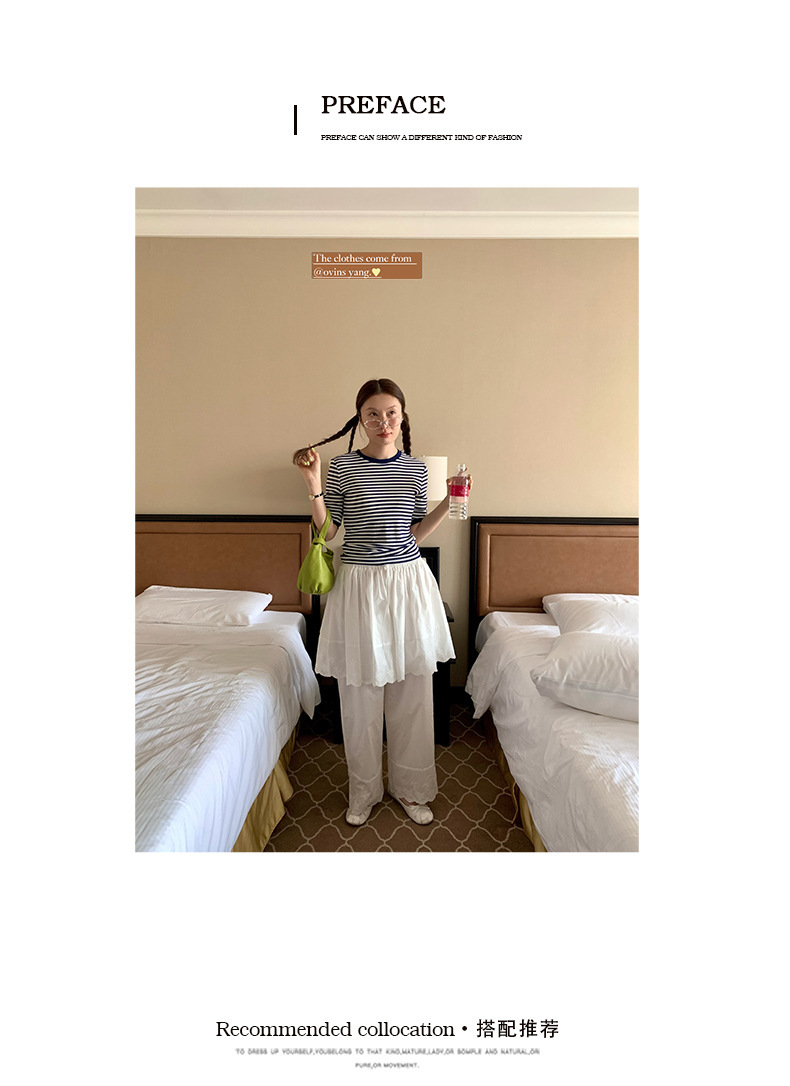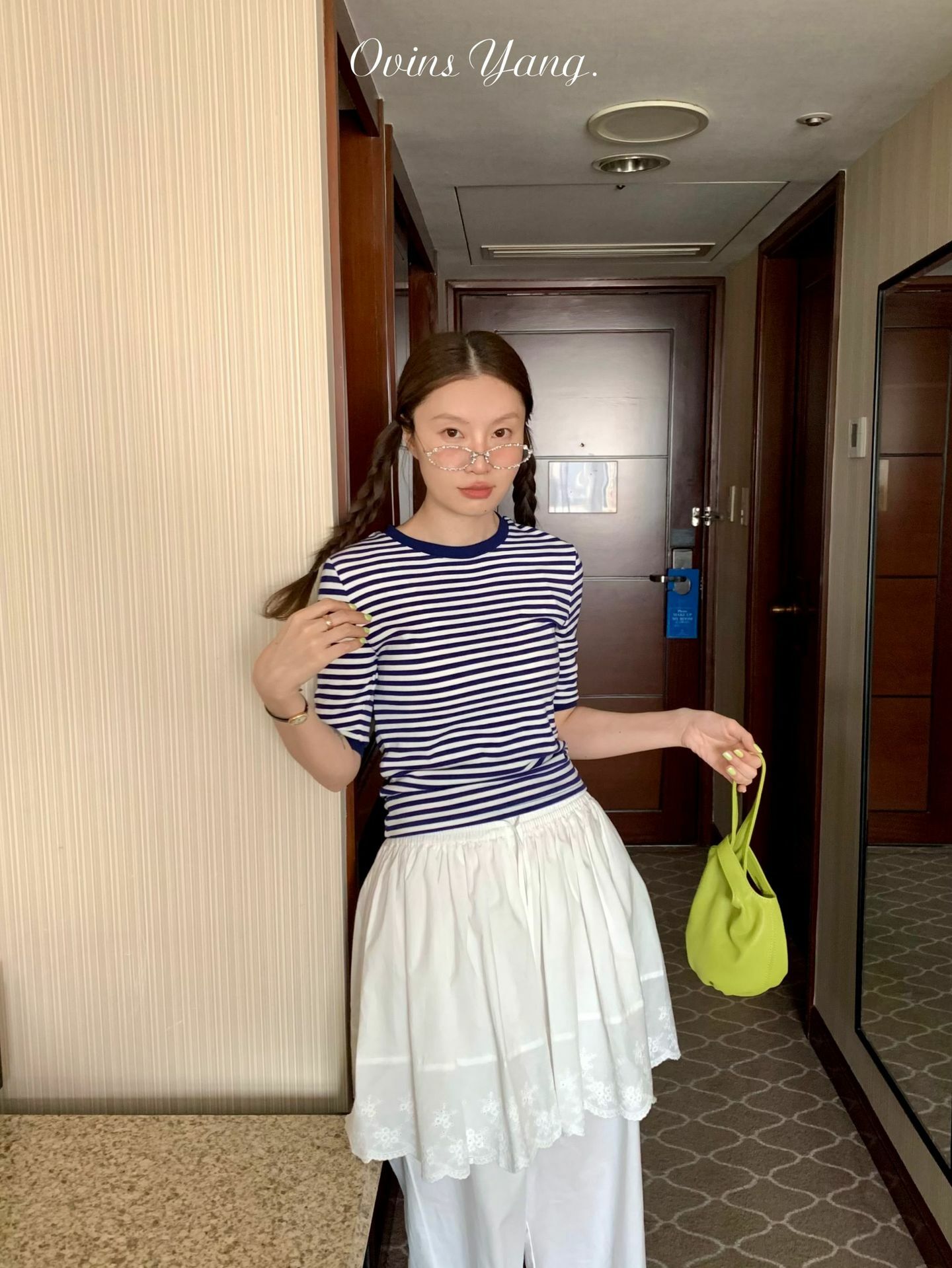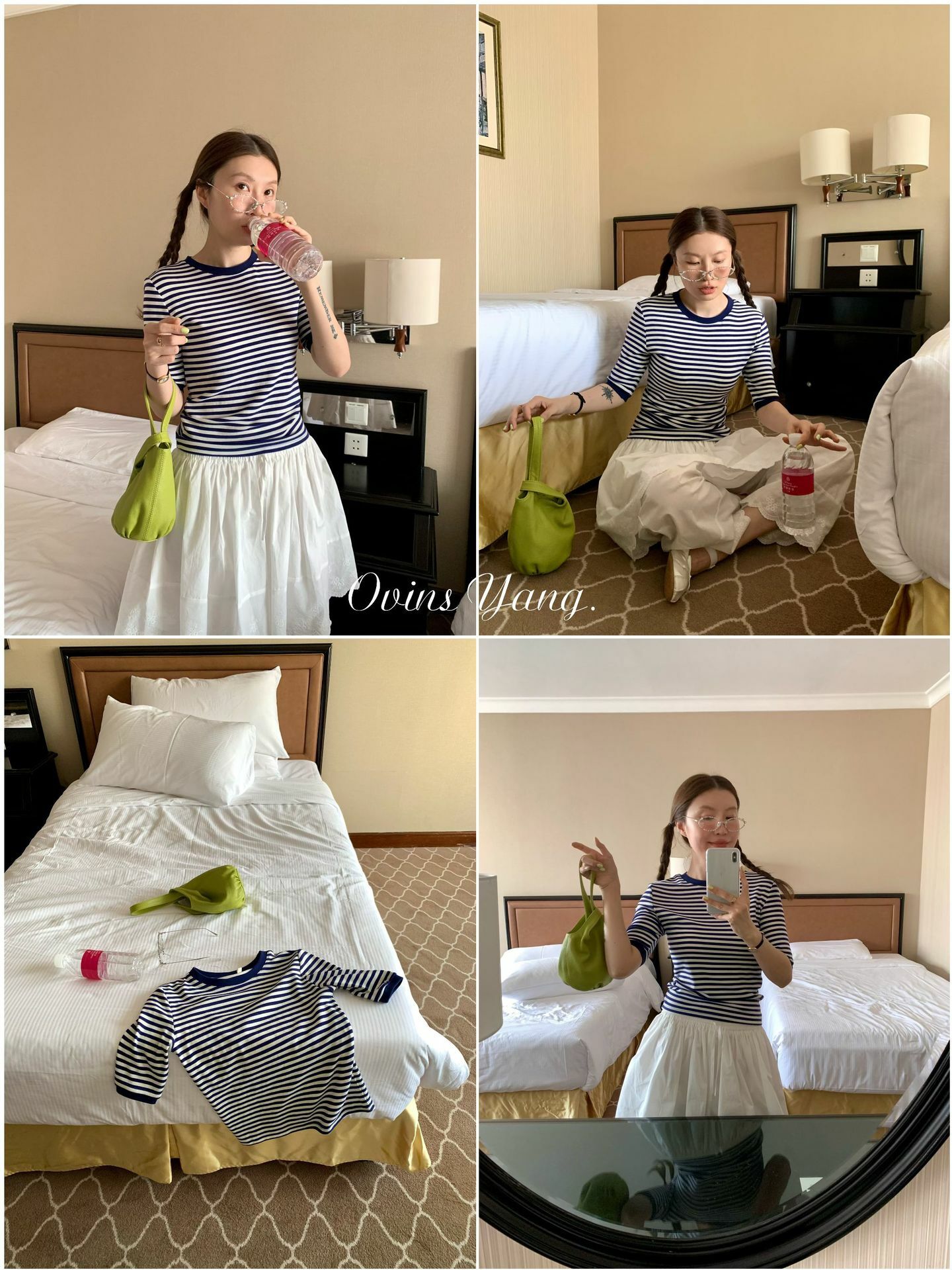 *o-ha-you*【FOY100261】韓系條紋上衣短袖T恤修身甜美學院風穿搭內搭打底衫-2色