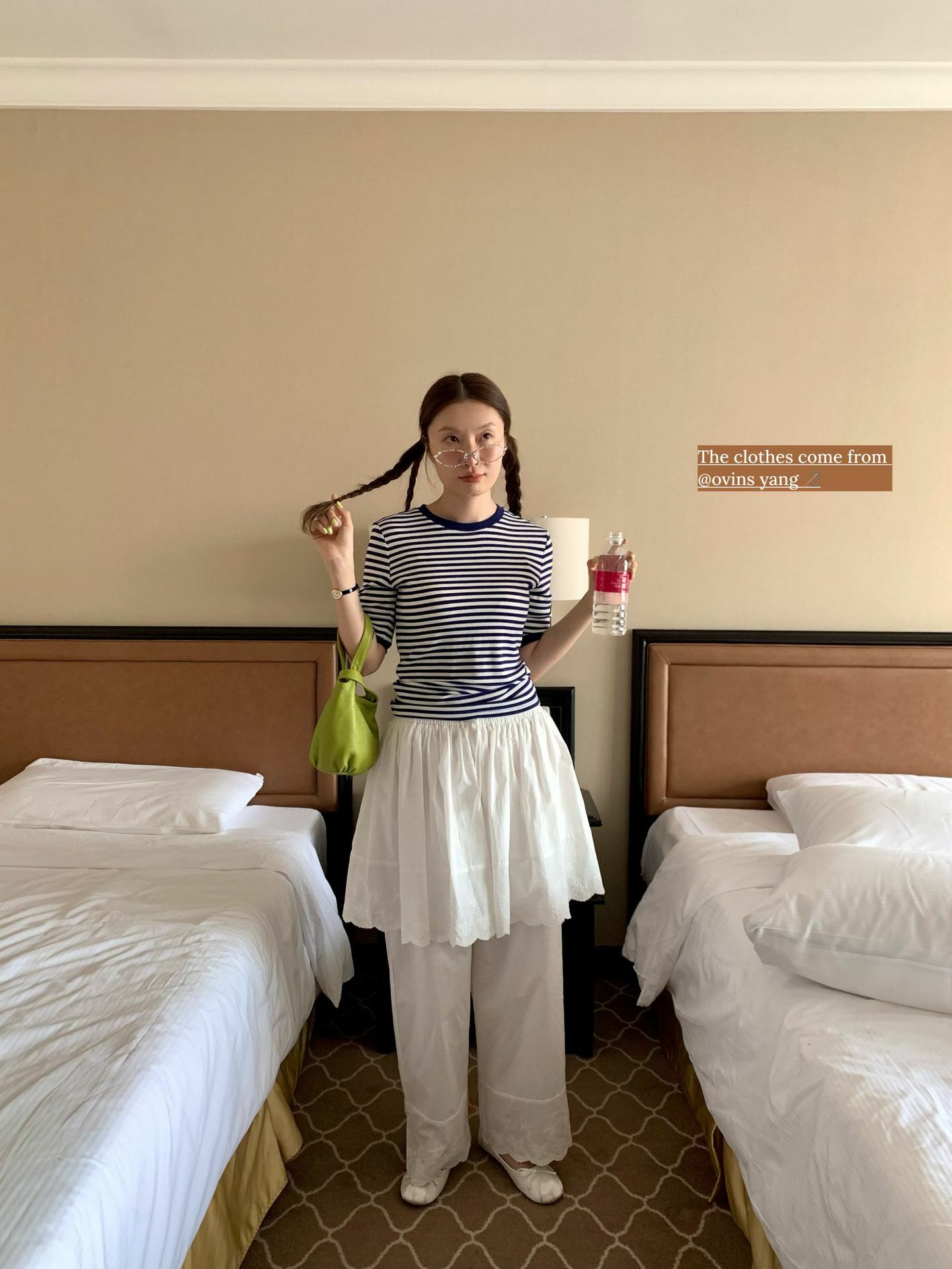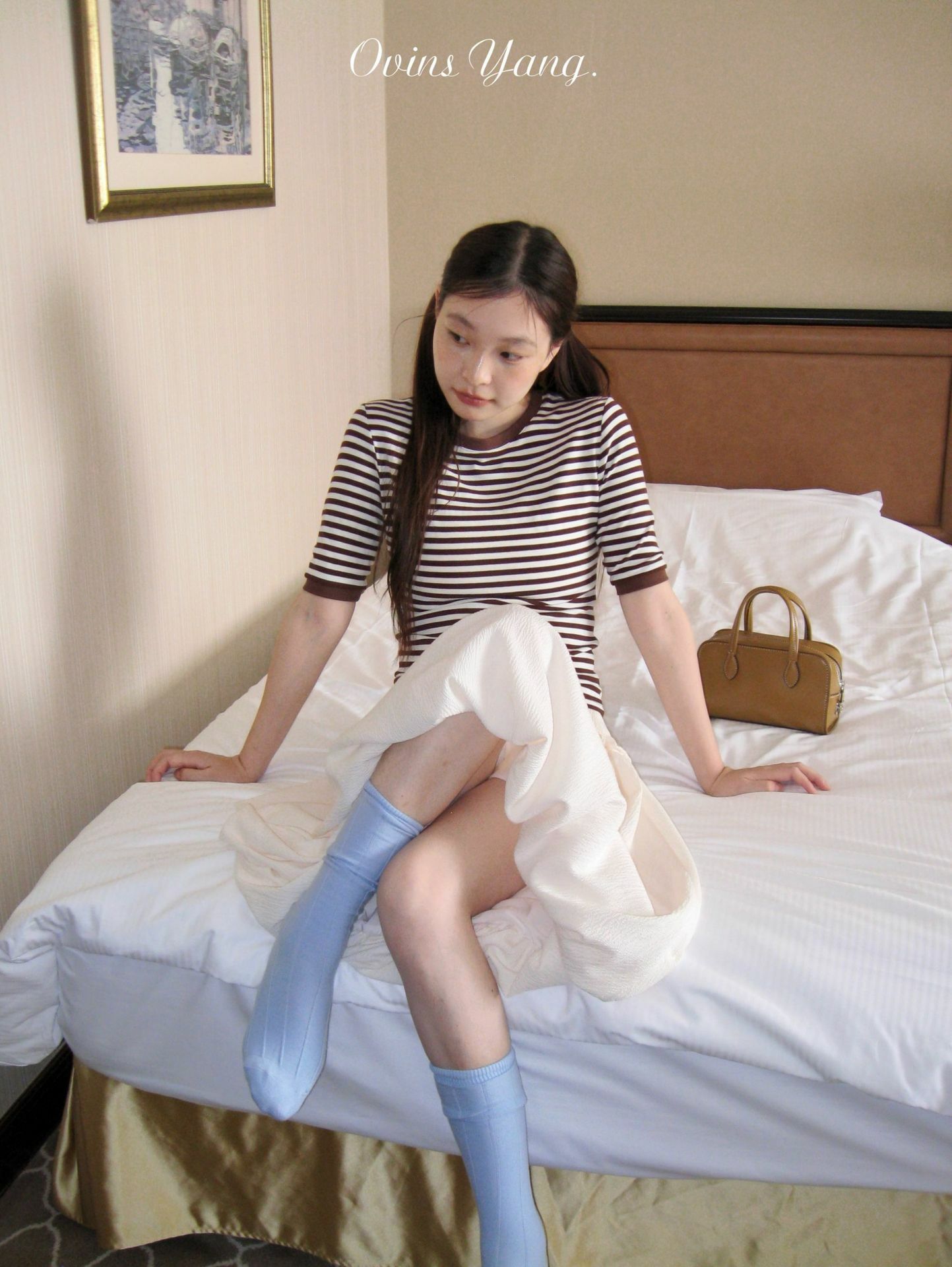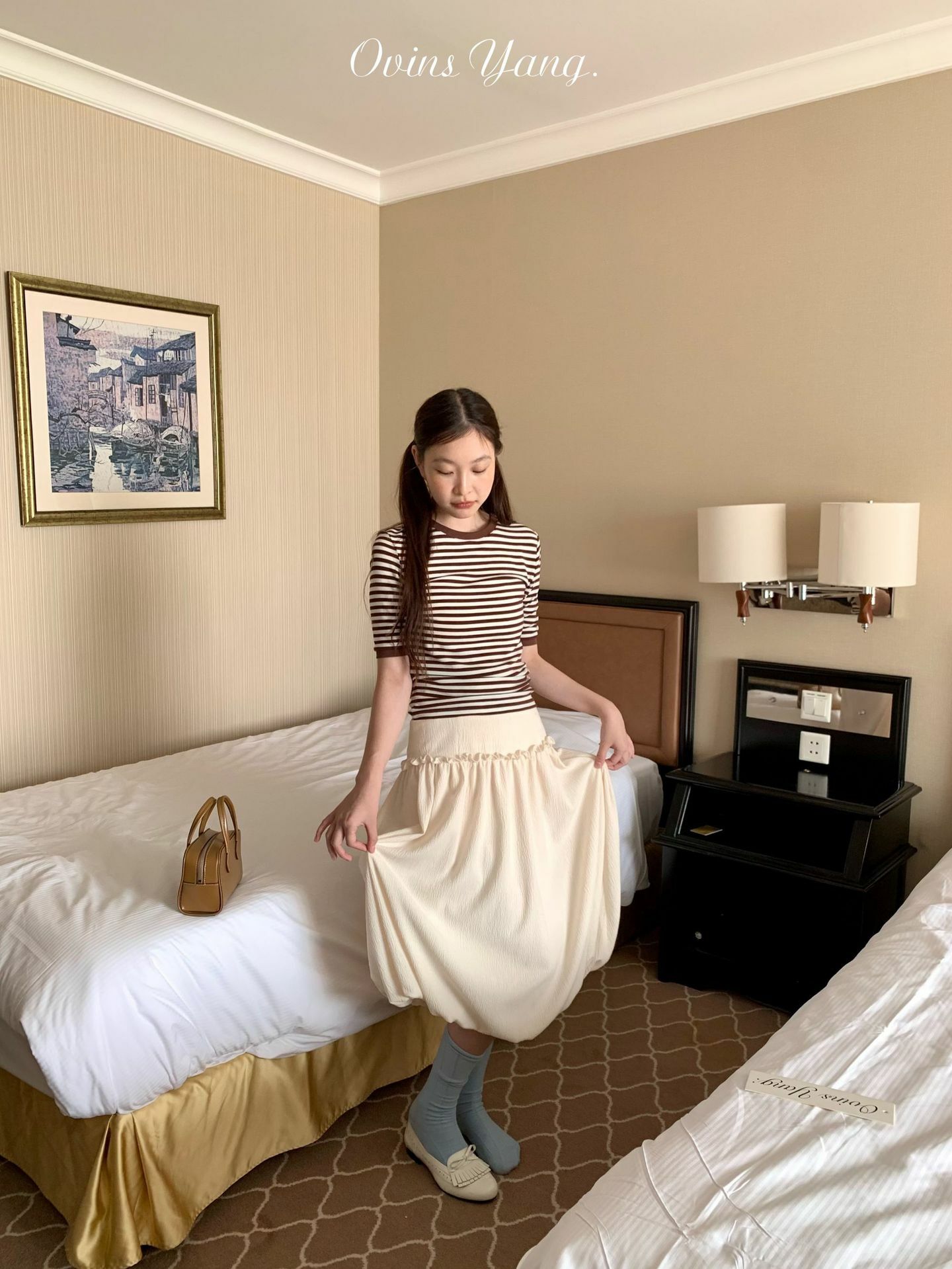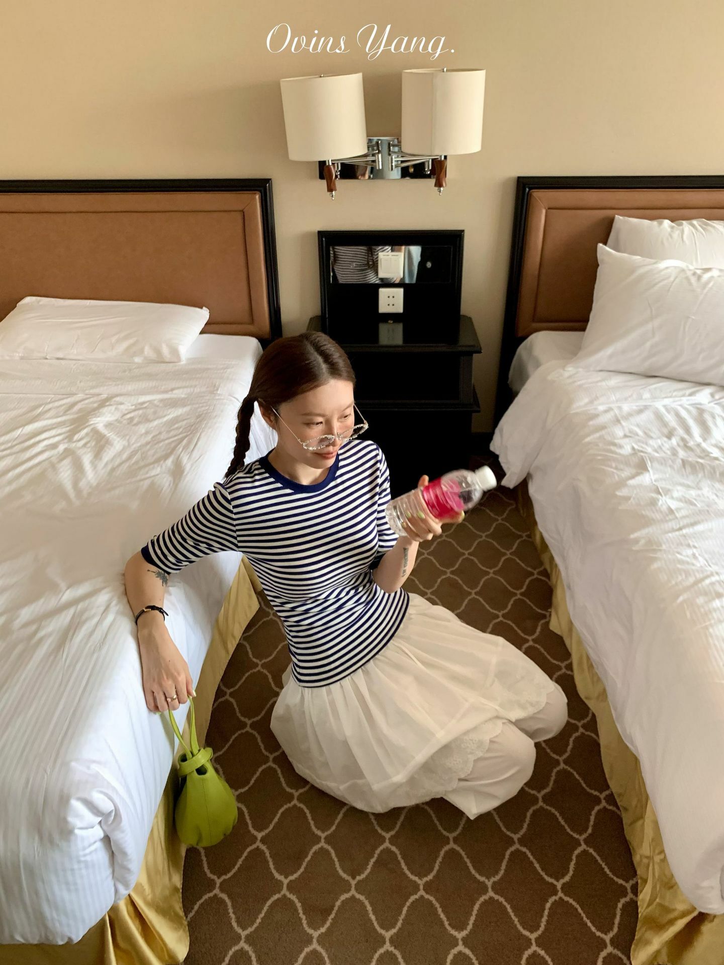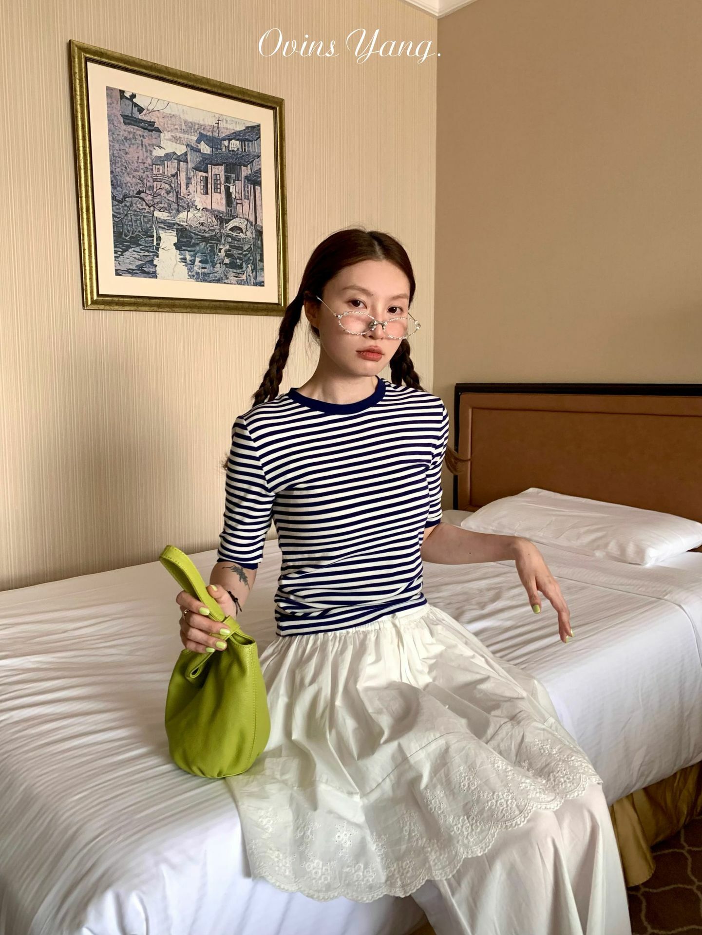 *o-ha-you*【FOY100261】韓系條紋上衣短袖T恤修身甜美學院風穿搭內搭打底衫-2色