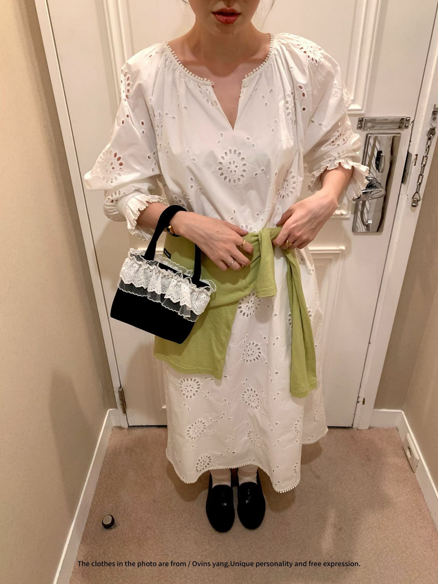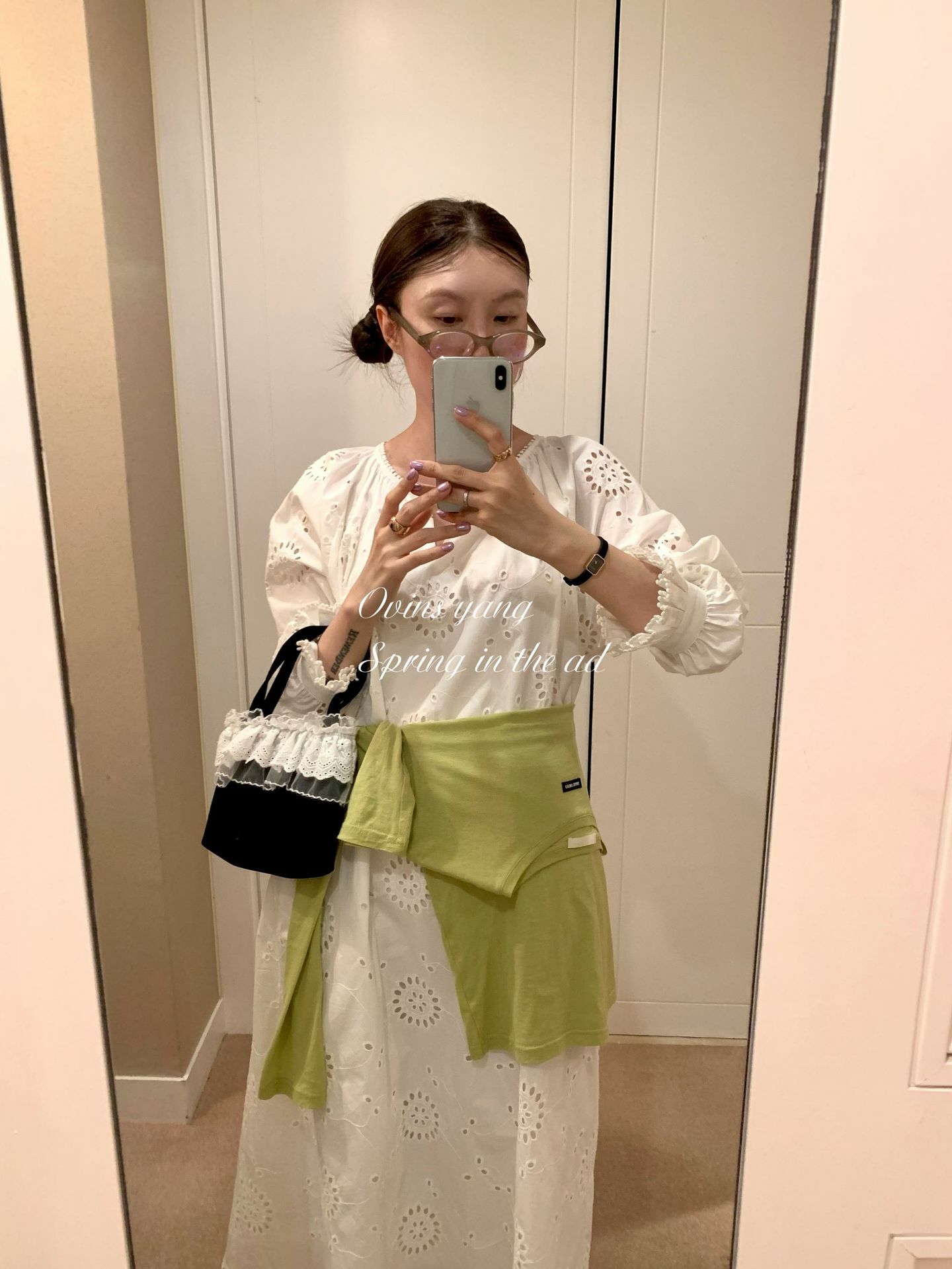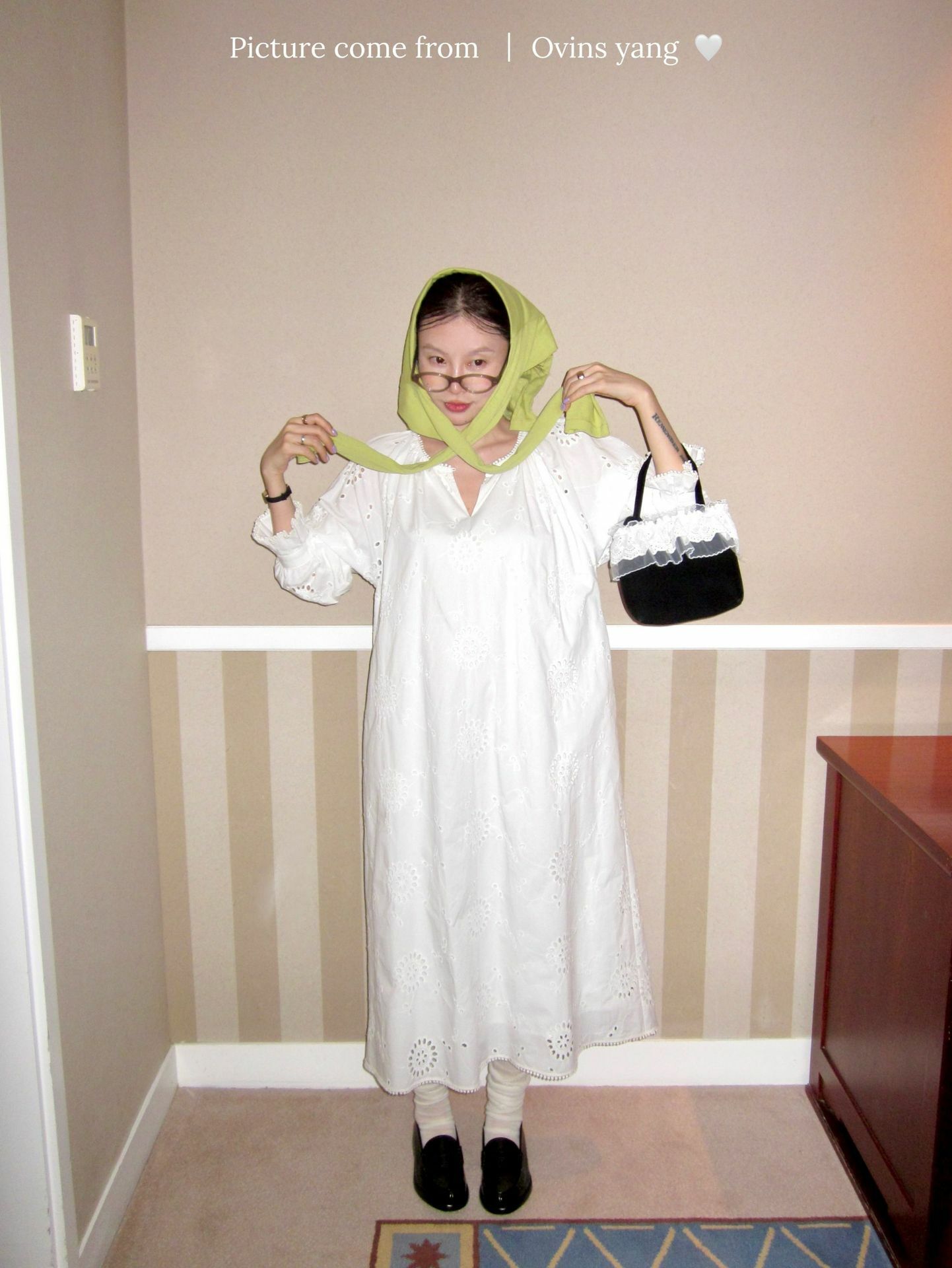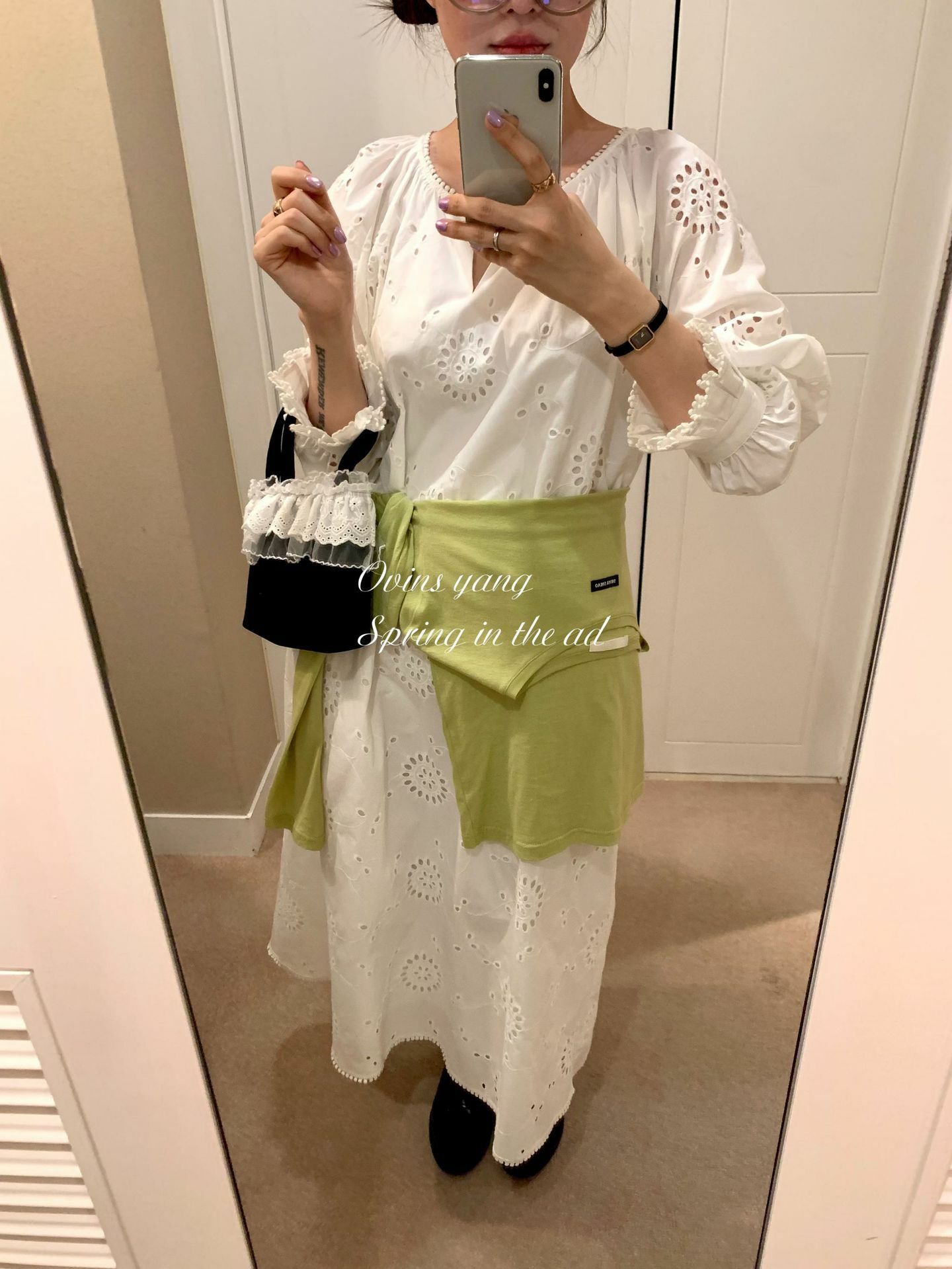 *o-ha-you*【FOY100277】白色繡花連衣裙春秋設計感小眾高級感精緻穿搭中長裙洋裝-如有需要請先諮詢