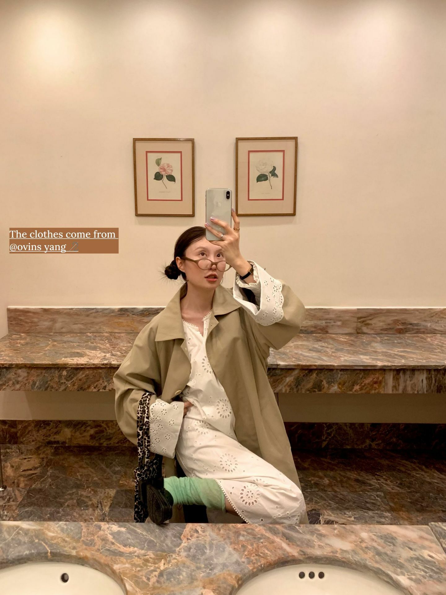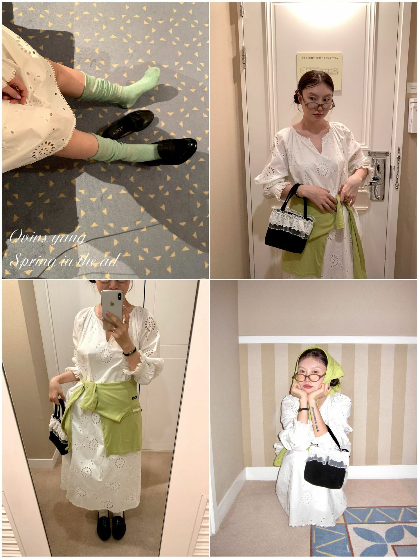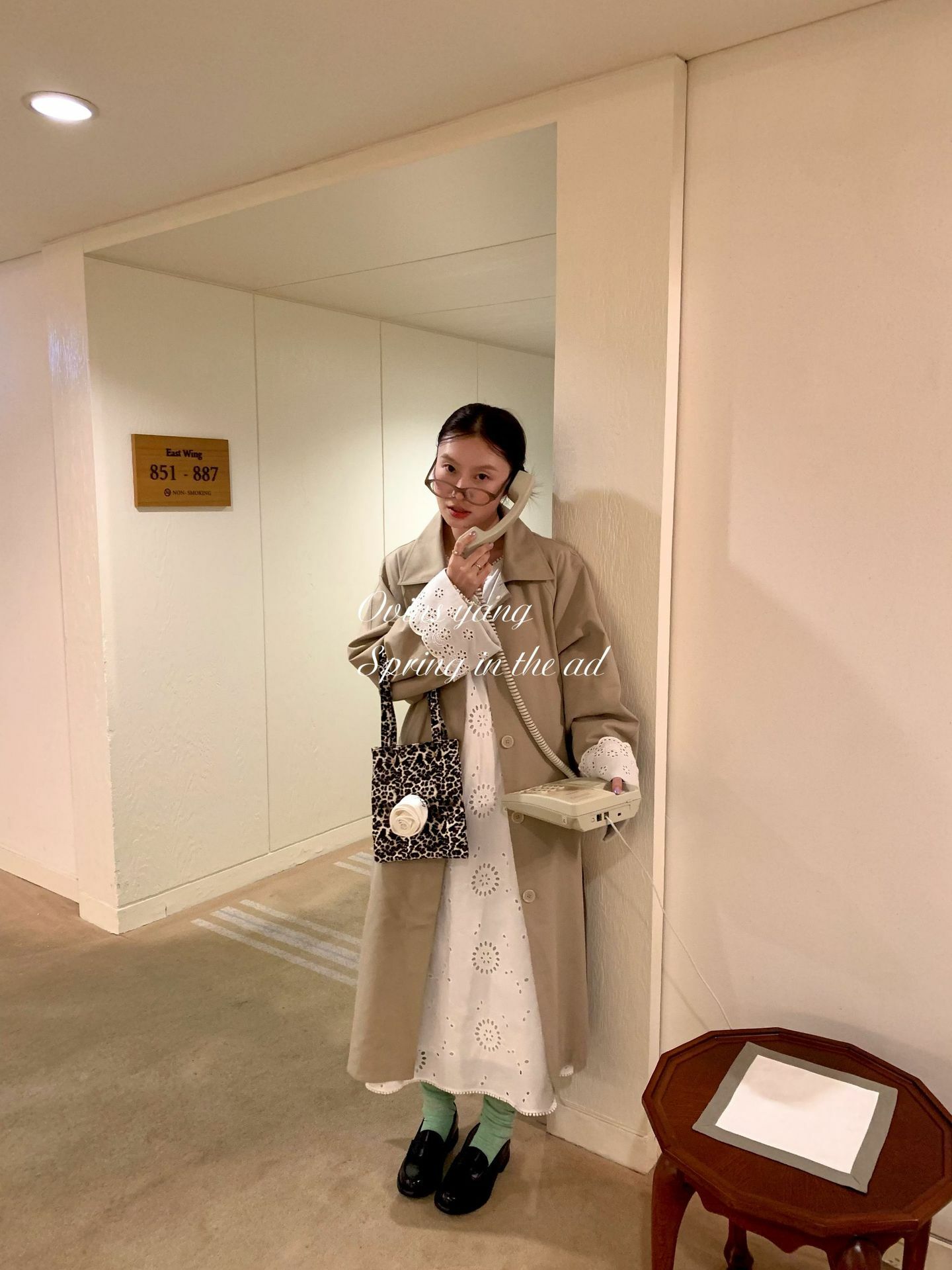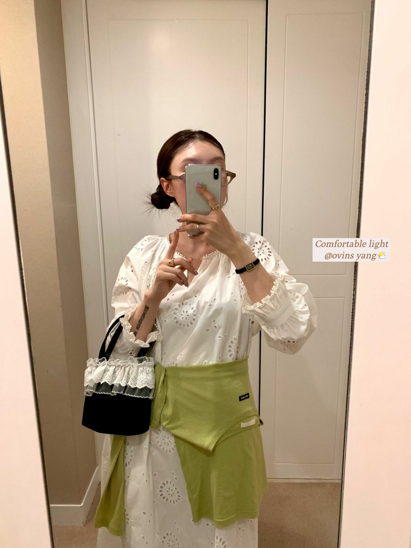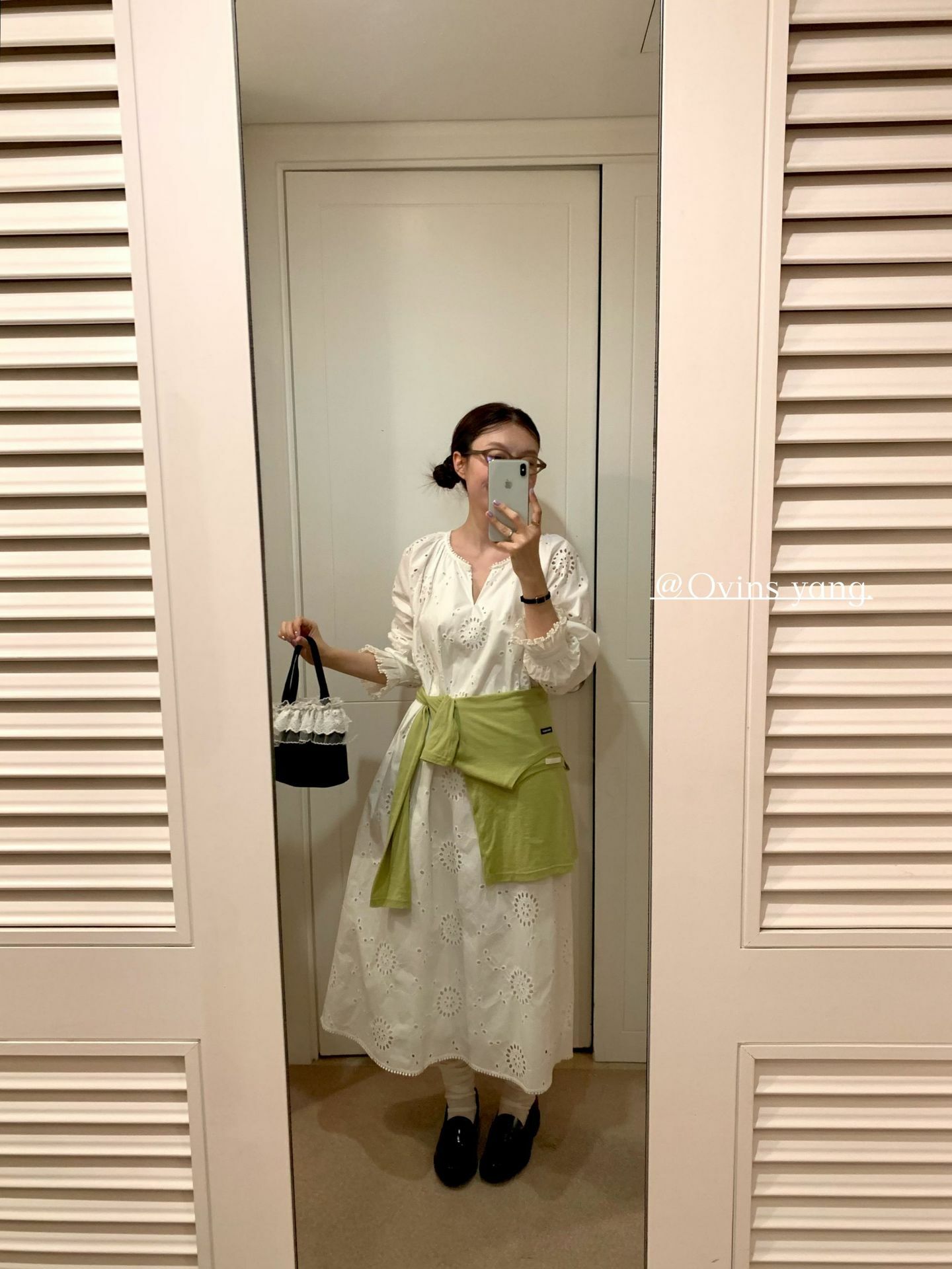 *o-ha-you*【FOY100277】白色繡花連衣裙春秋設計感小眾高級感精緻穿搭中長裙洋裝-如有需要請先諮詢