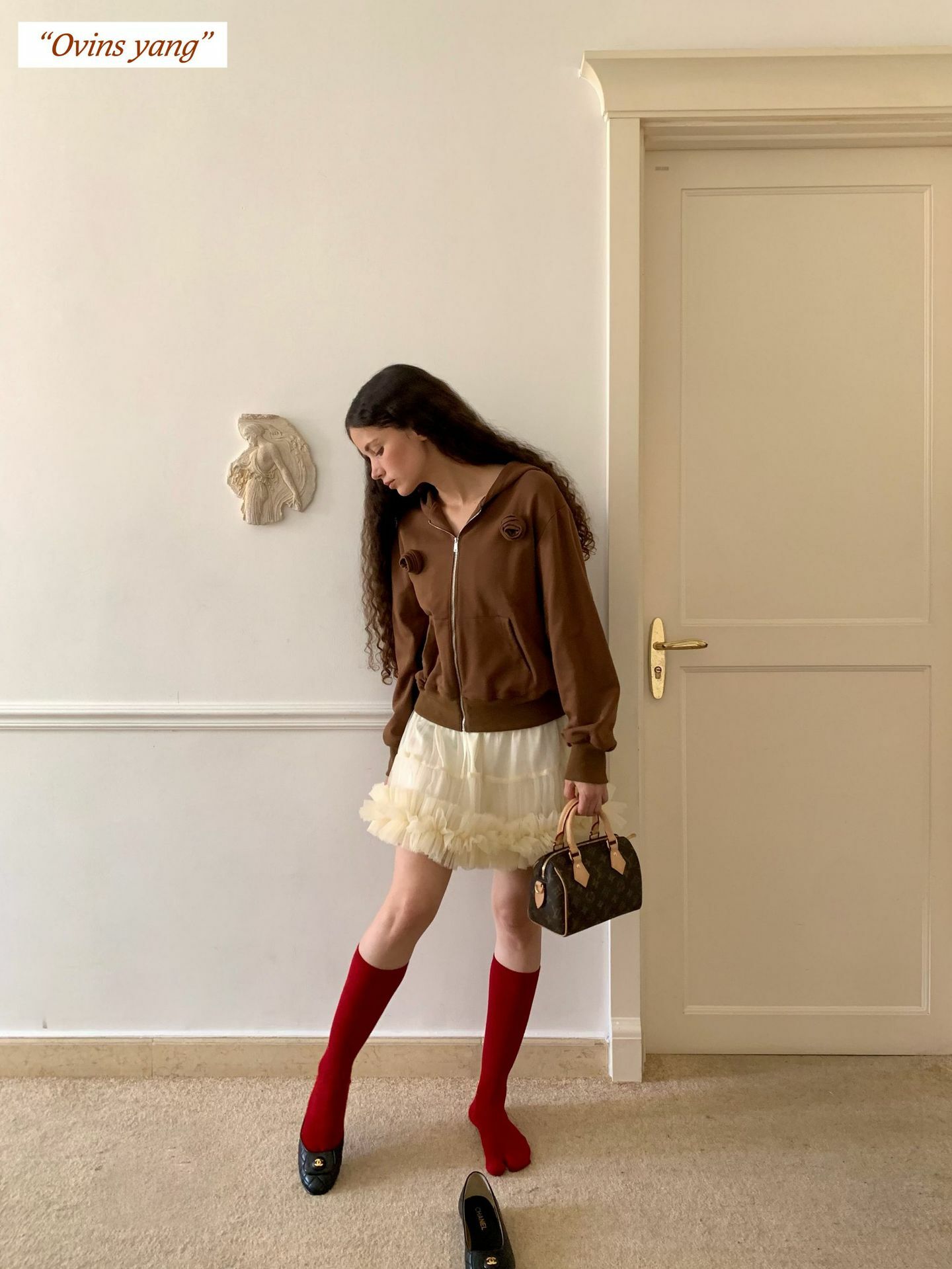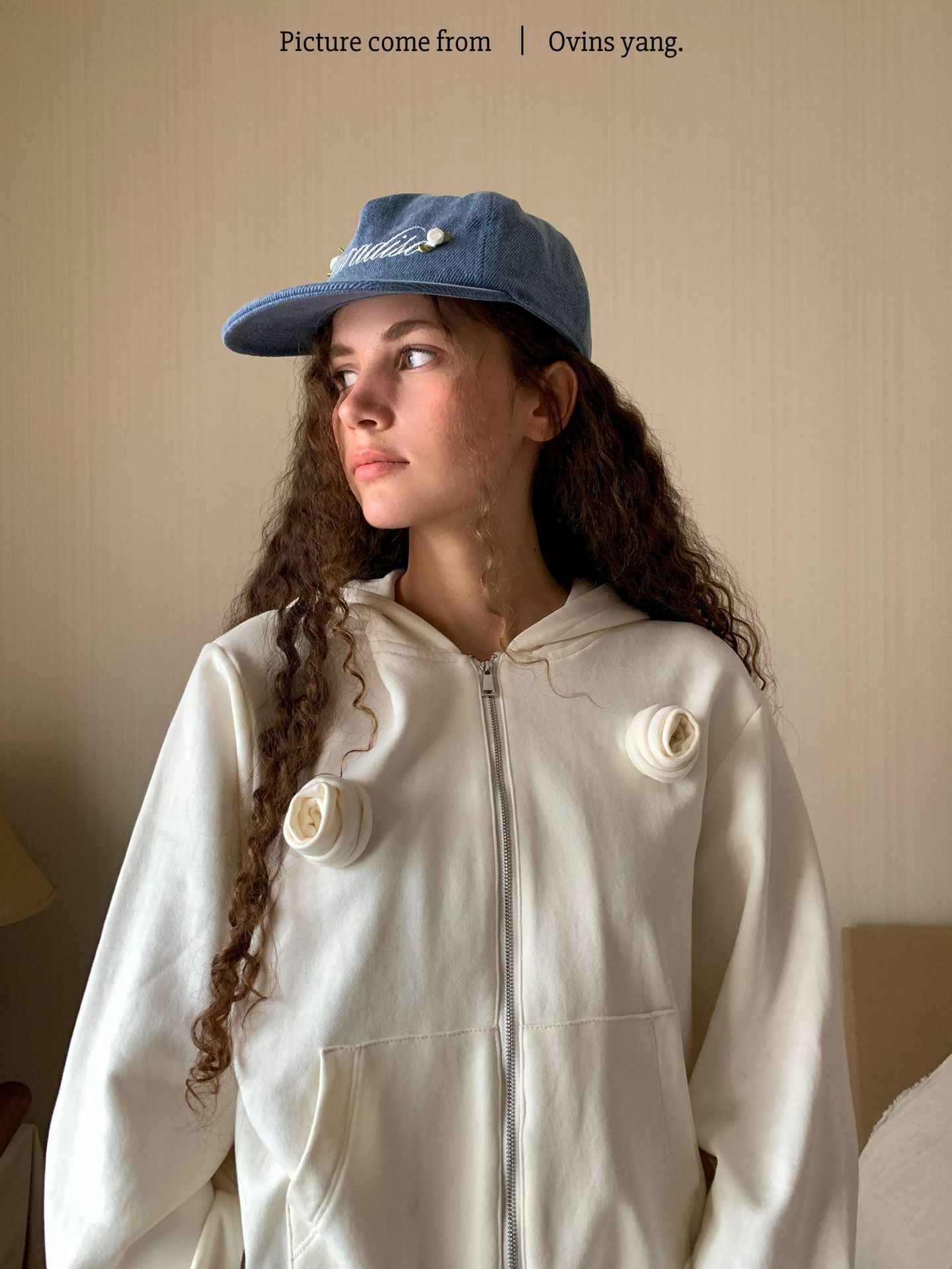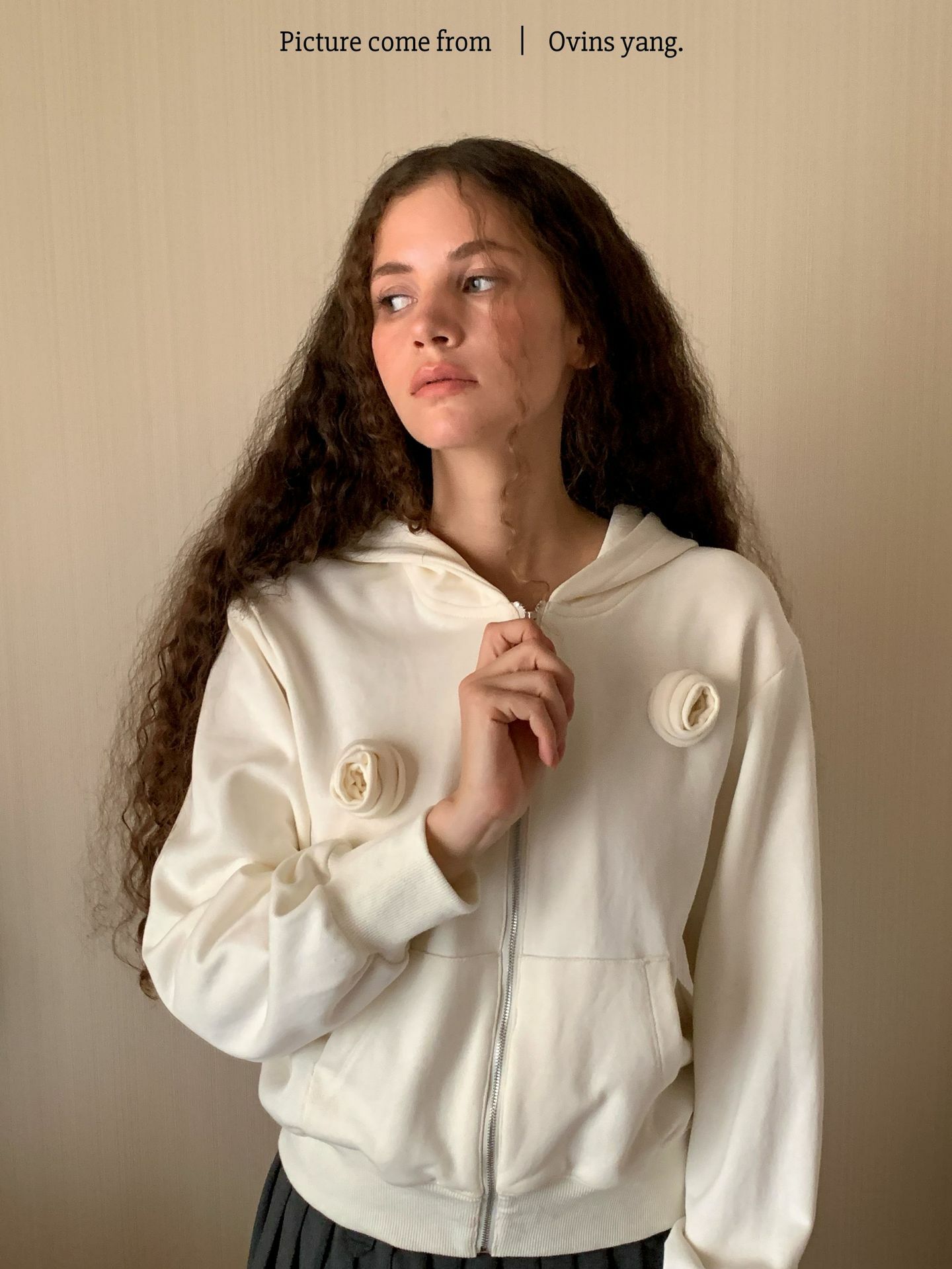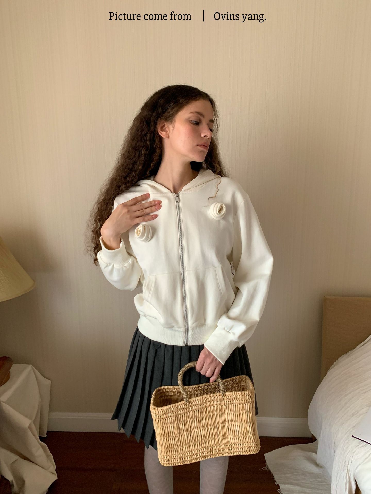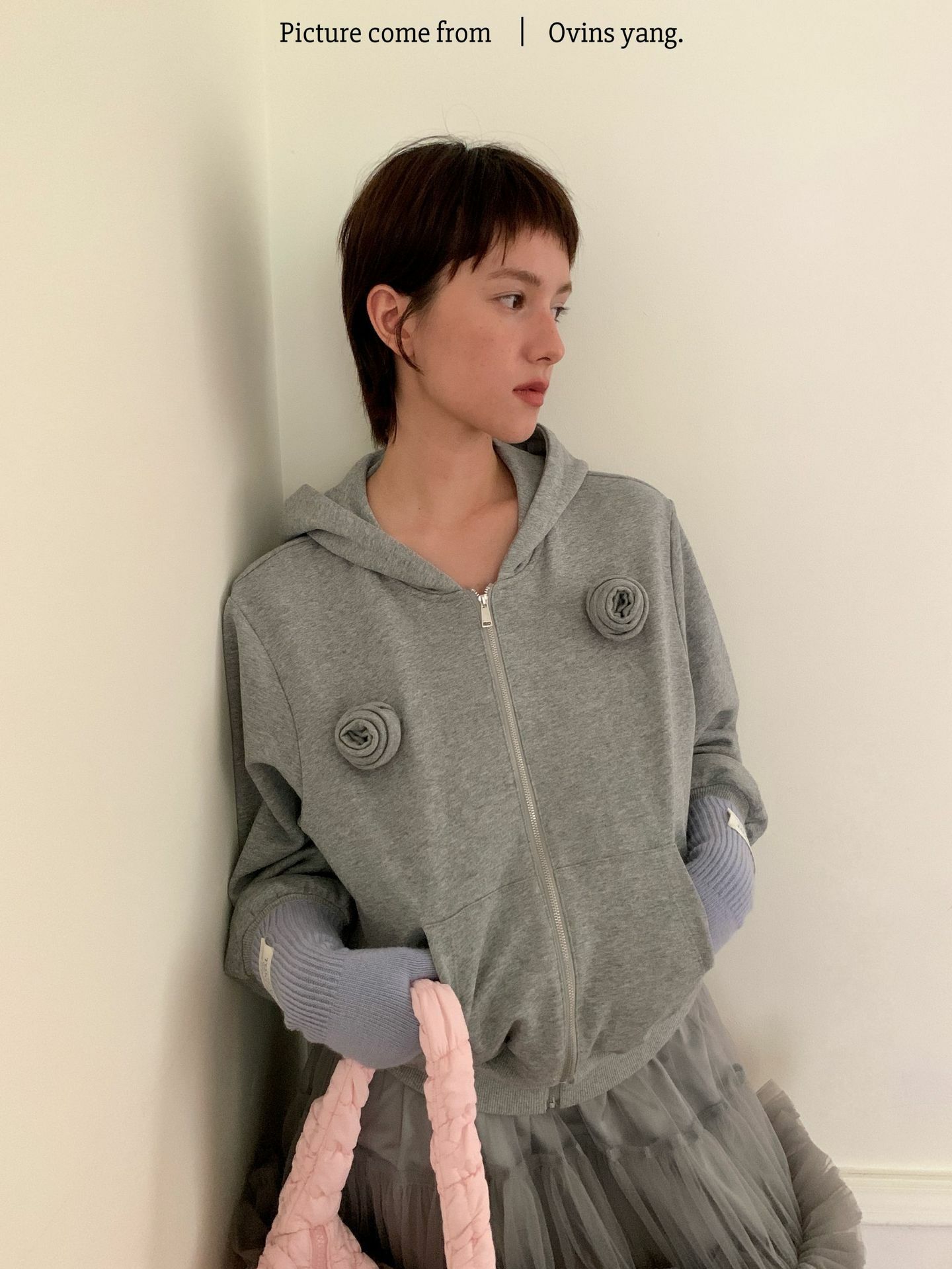 *o-ha-you*【FOY100288】花朵連帽衛衣外套春秋款2024新款洋氣減齡開襟衫外搭-4色-如有需要請先諮詢