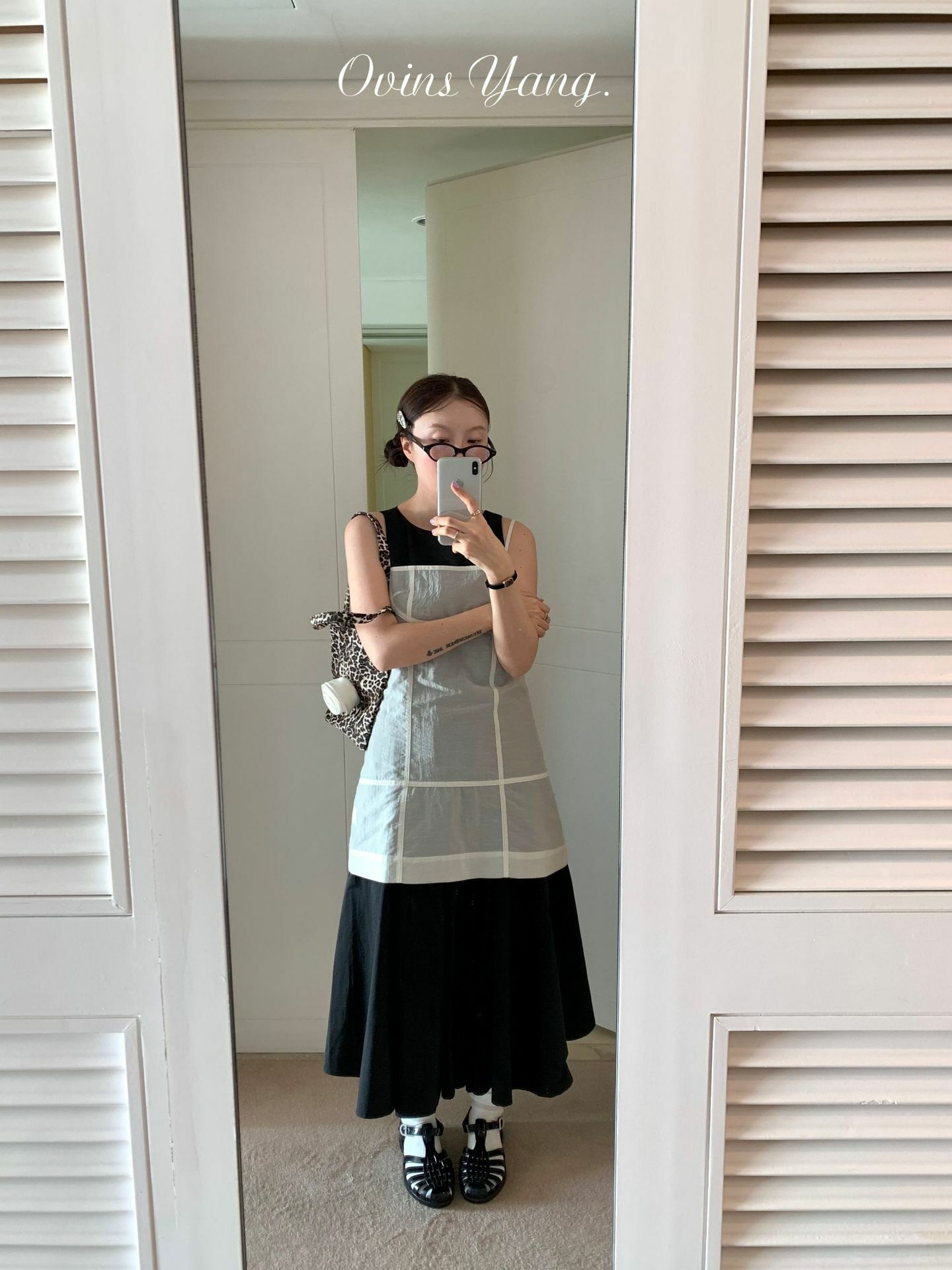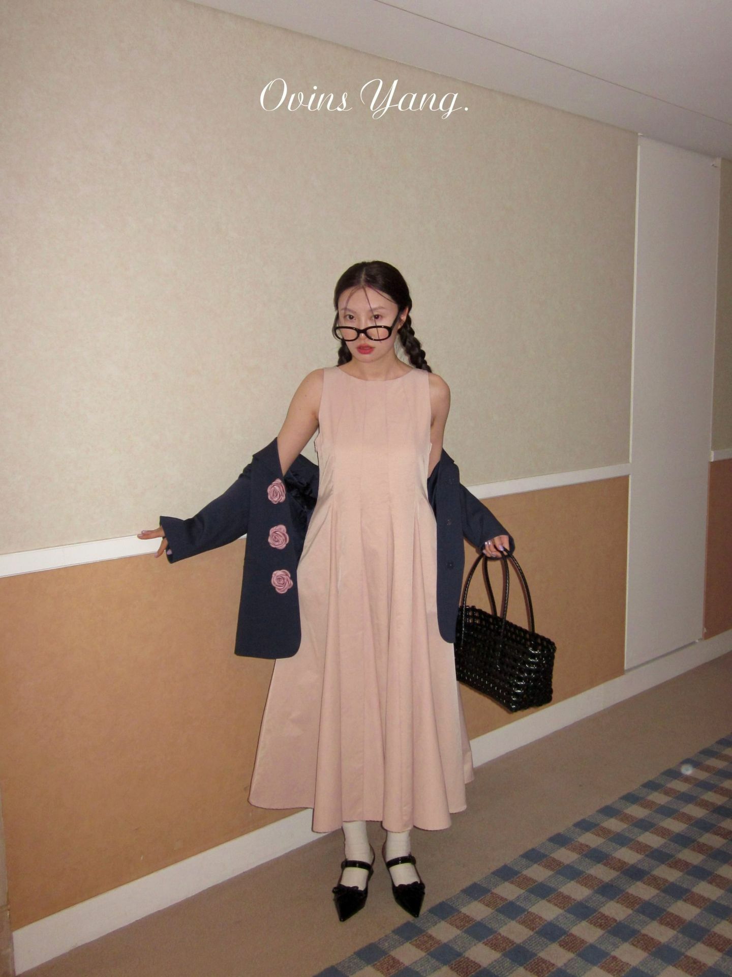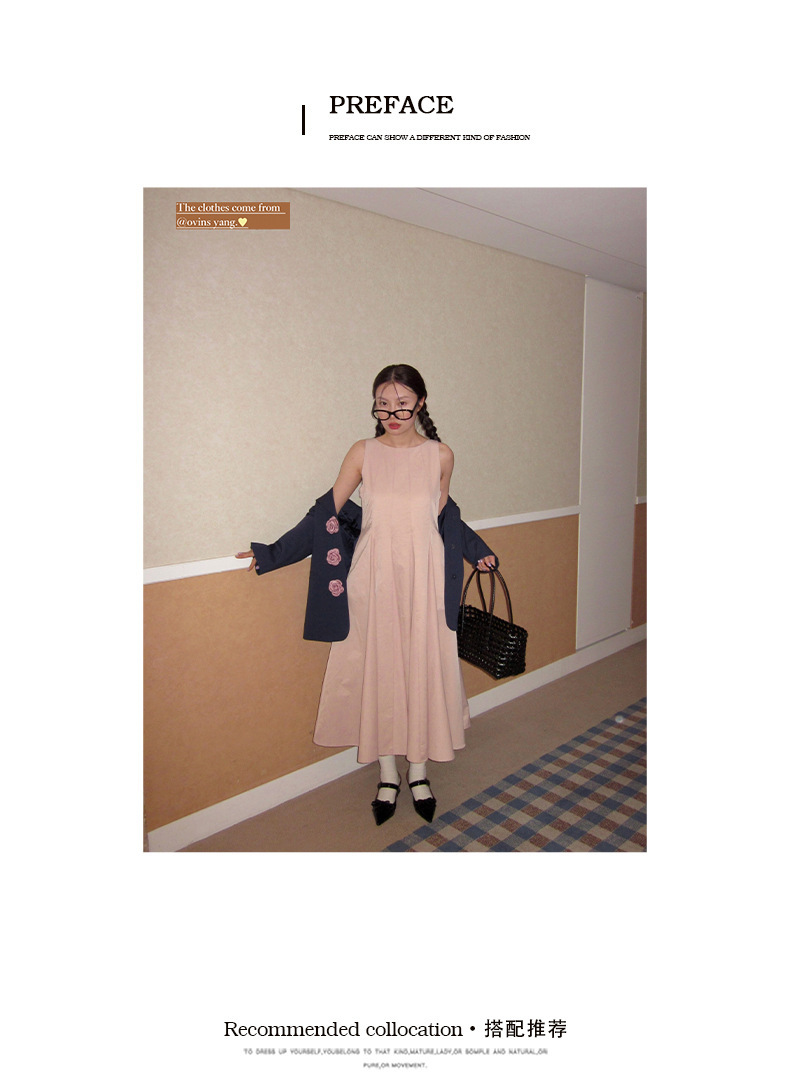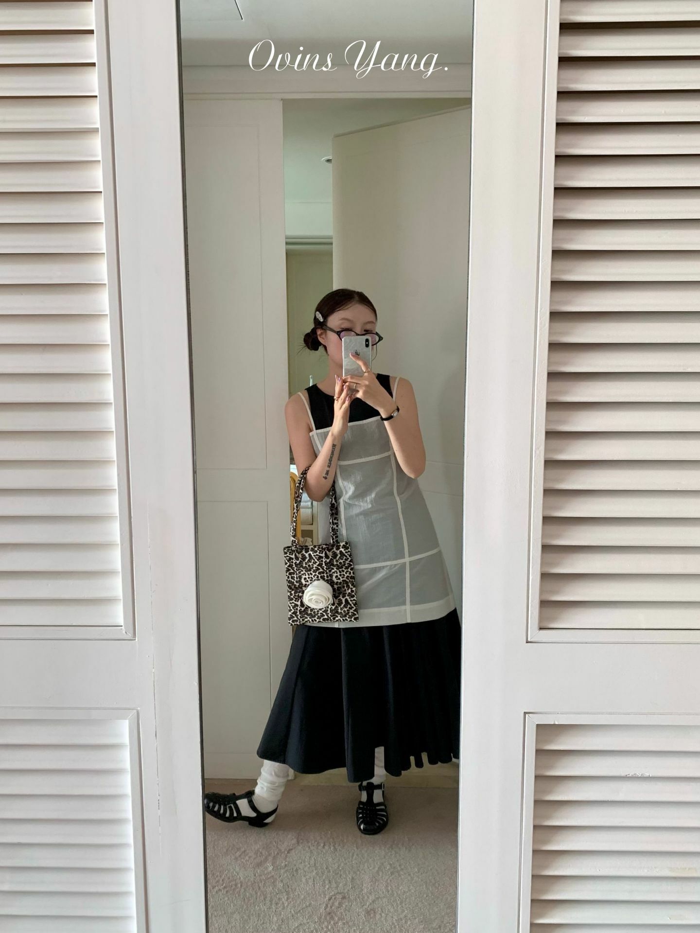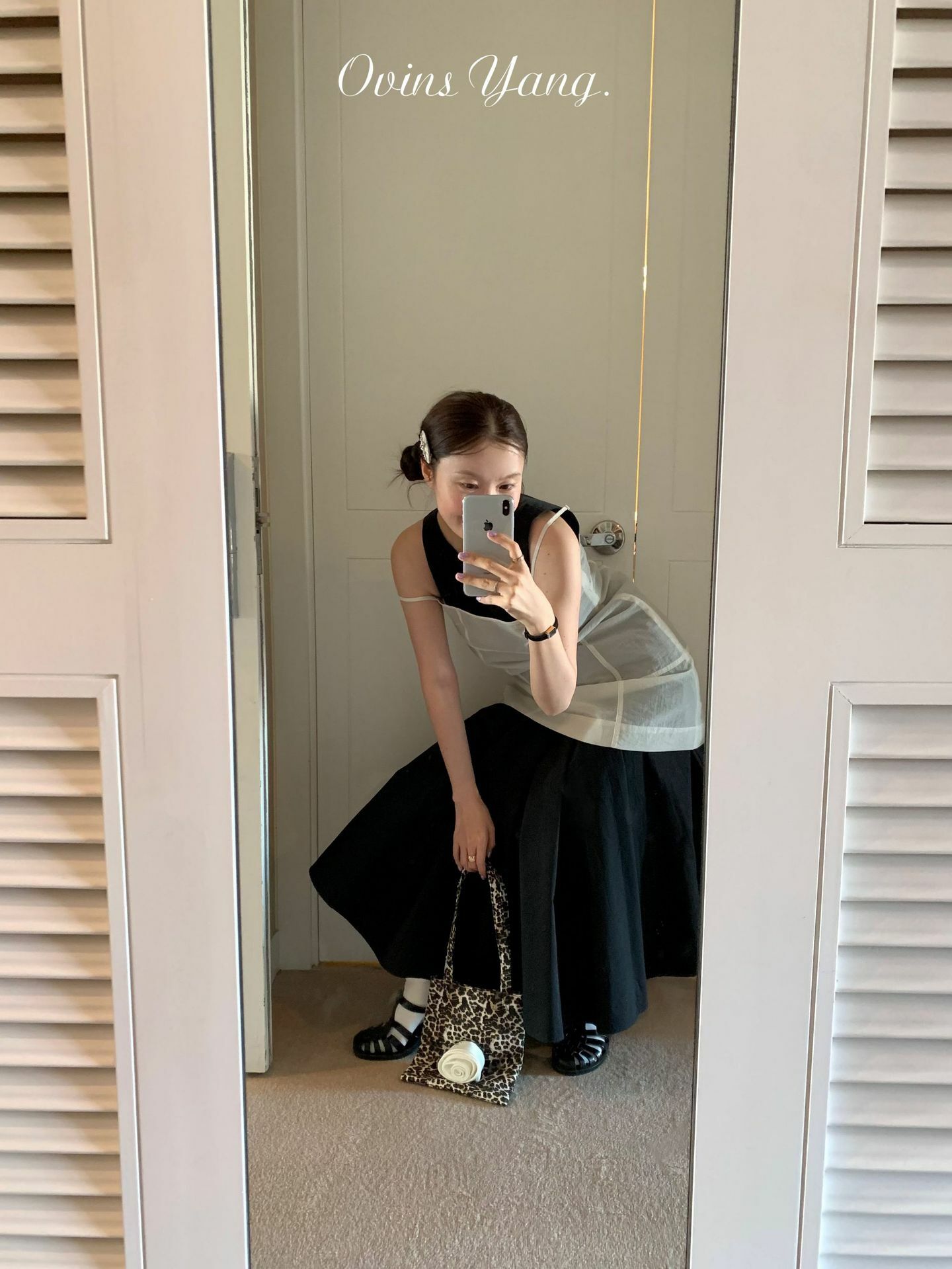 *o-ha-you*【FOY100296】開春氣質穿搭黑色背心裙春秋款外穿連衣裙百褶裙中長款洋裝-2色