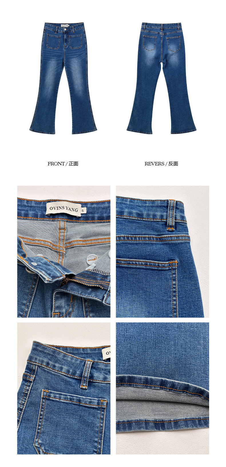 *o-ha-you*【FOY100297】藍色牛仔褲秋冬2024新款修身顯瘦甜美微喇褲子休閒褲-如有需要請先諮詢