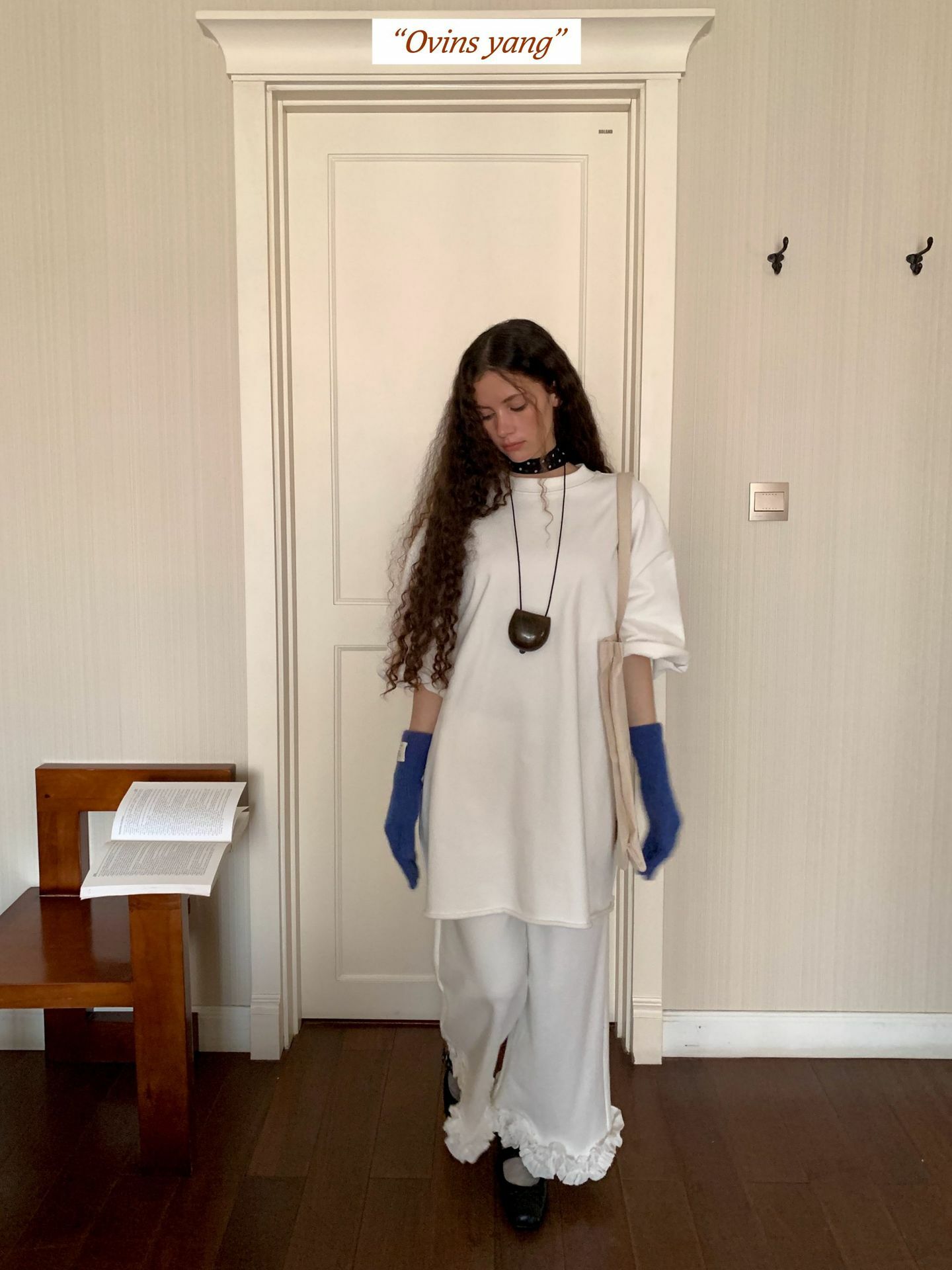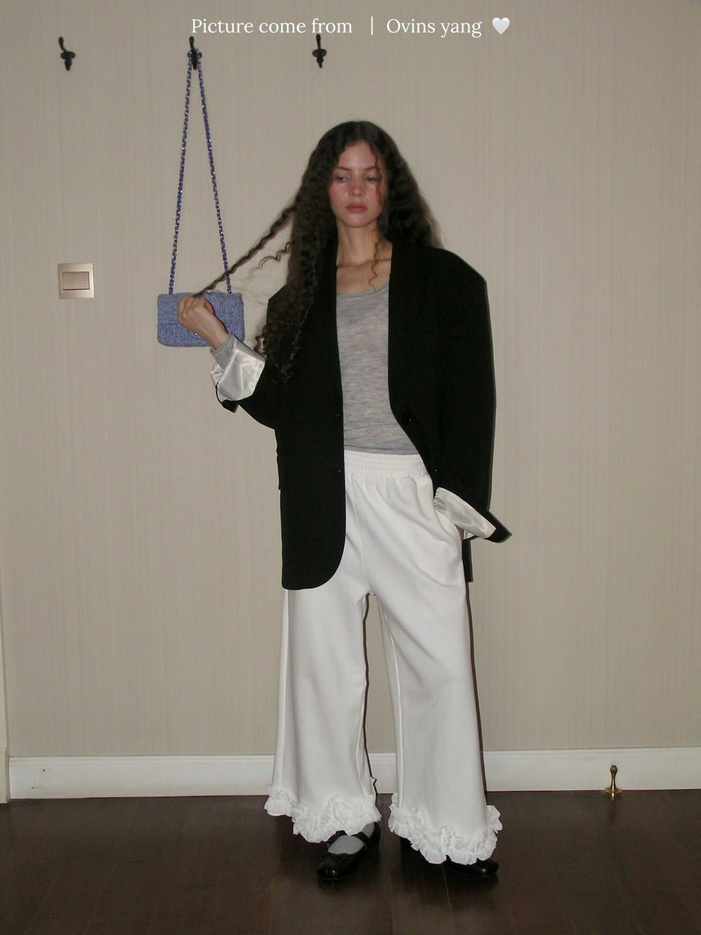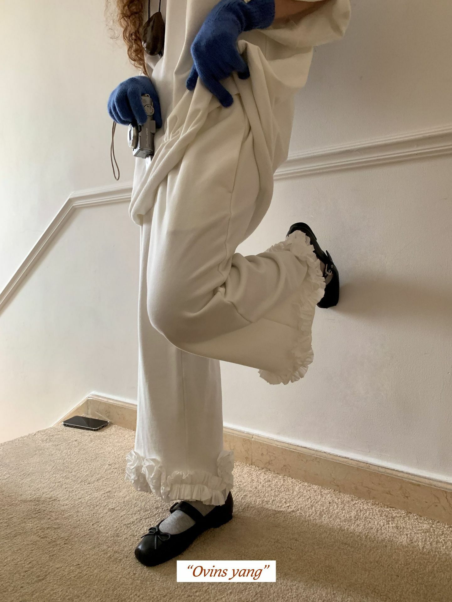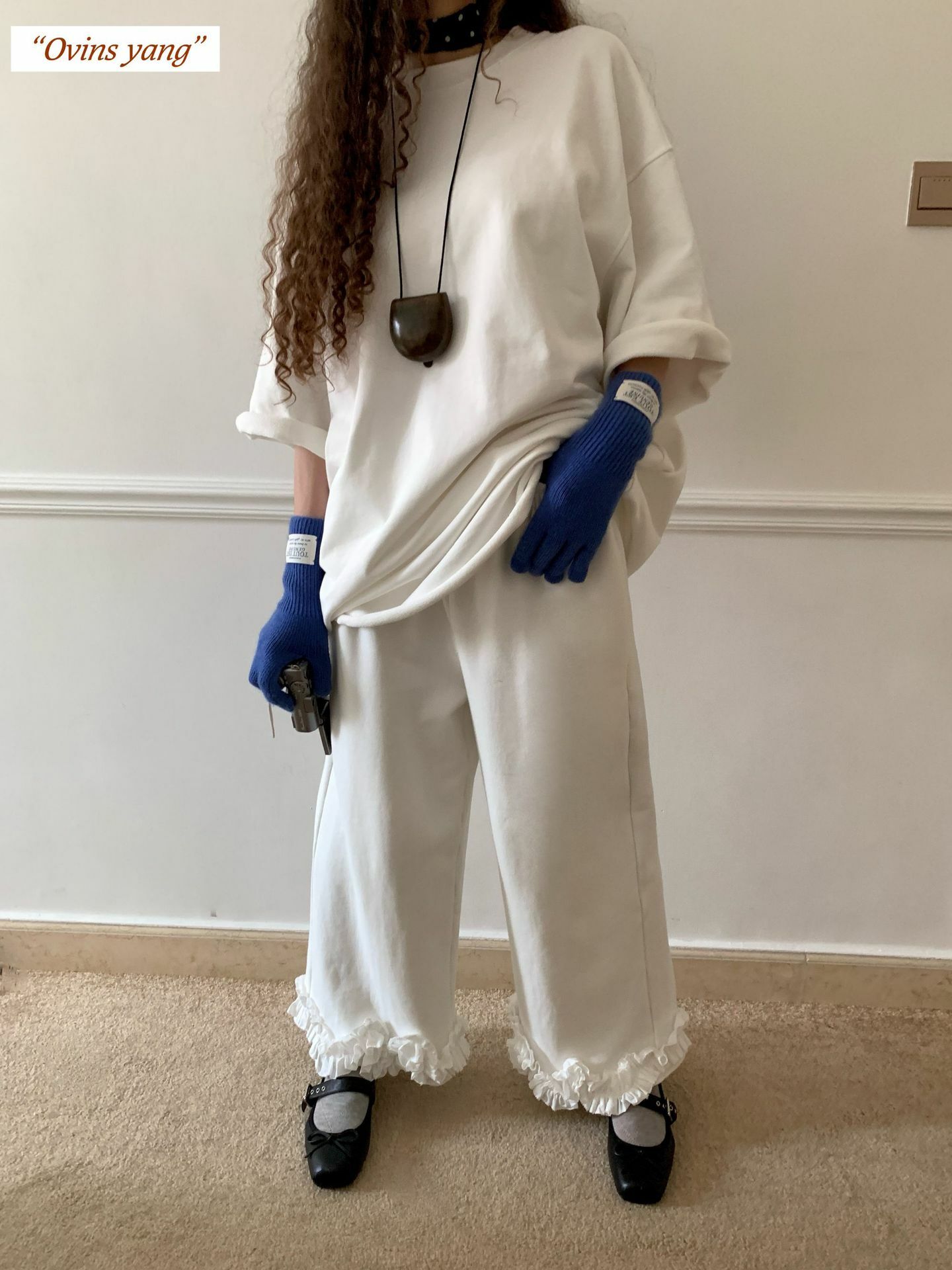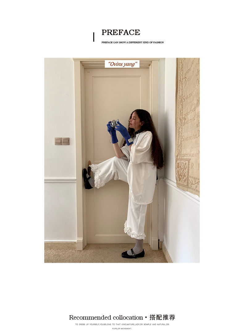 *o-ha-you*【FOY100308】花邊白色褲子春秋款設計感小眾寬鬆直筒闊腿褲休閒褲-如有需要請先諮詢
