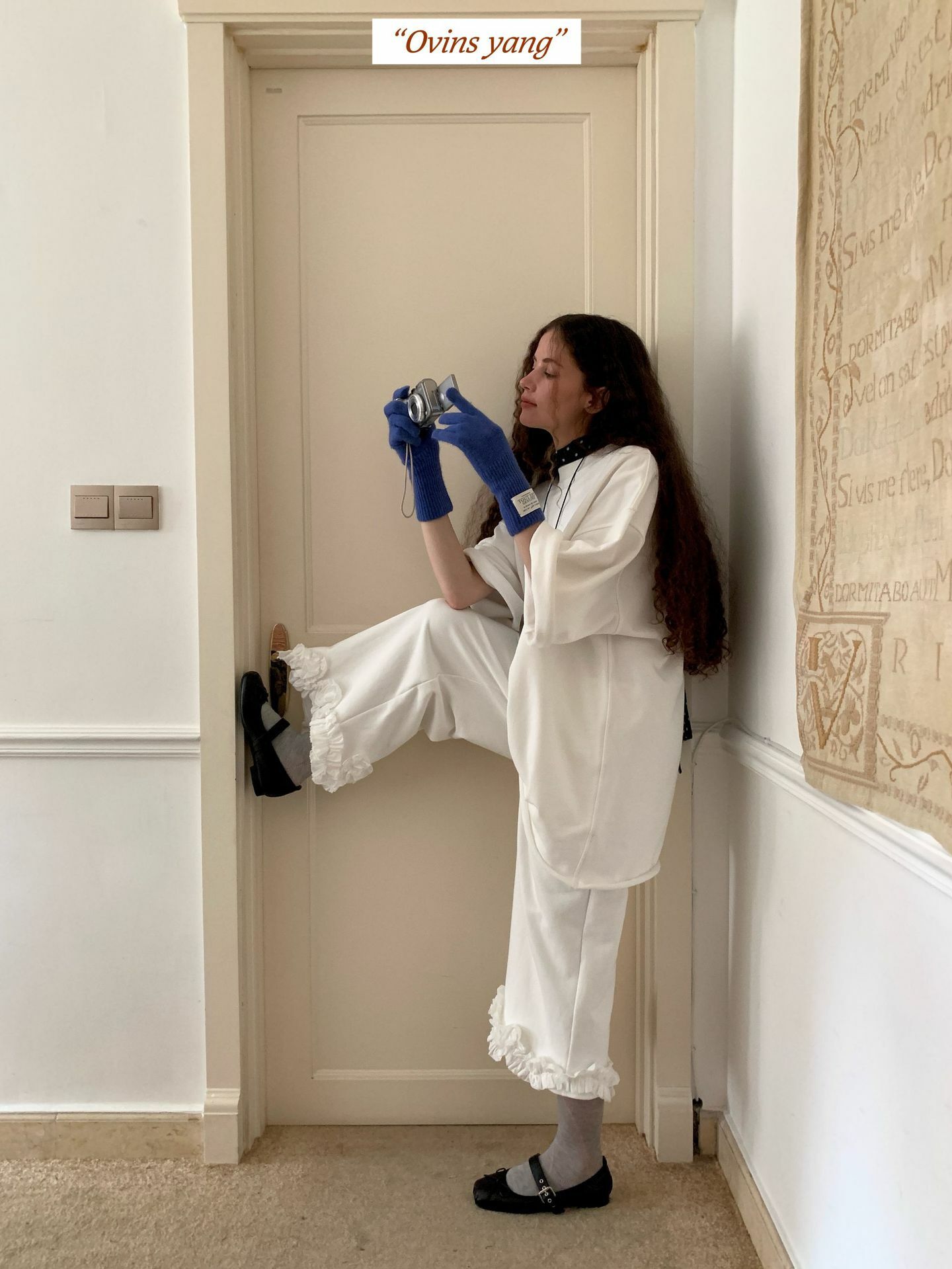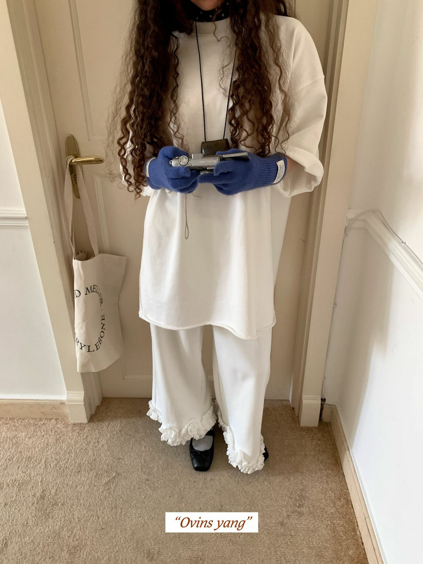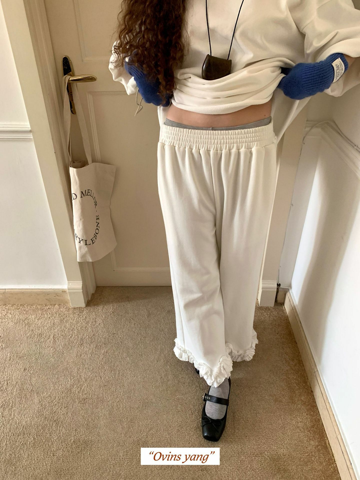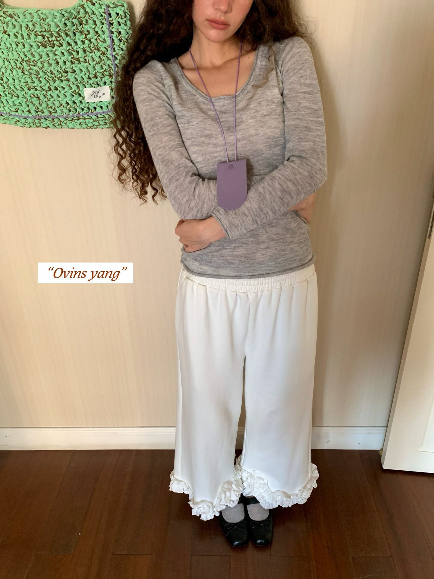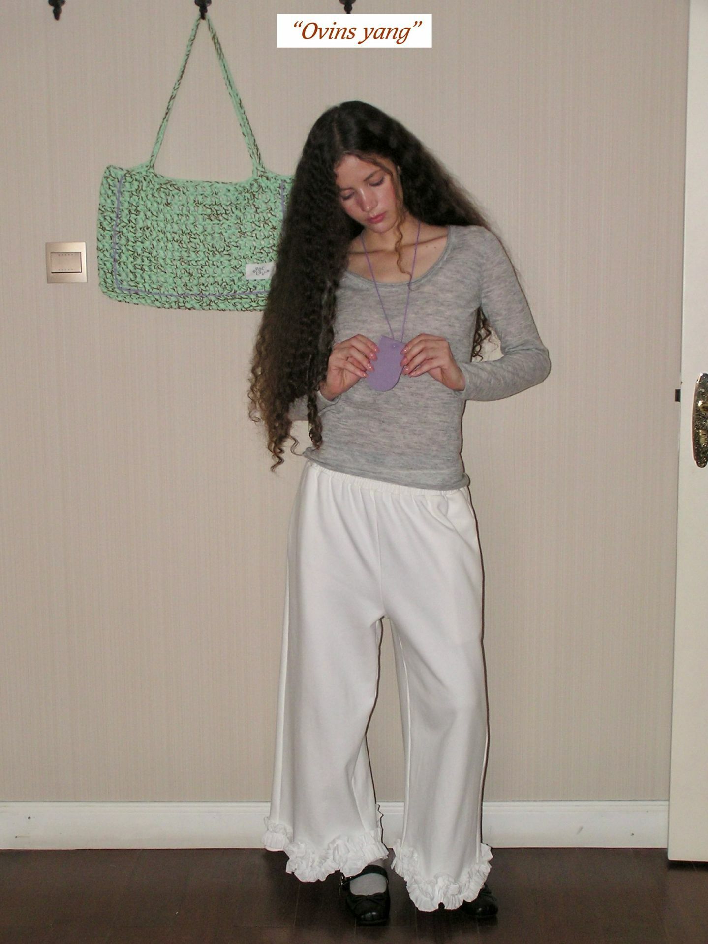 *o-ha-you*【FOY100308】花邊白色褲子春秋款設計感小眾寬鬆直筒闊腿褲休閒褲-如有需要請先諮詢