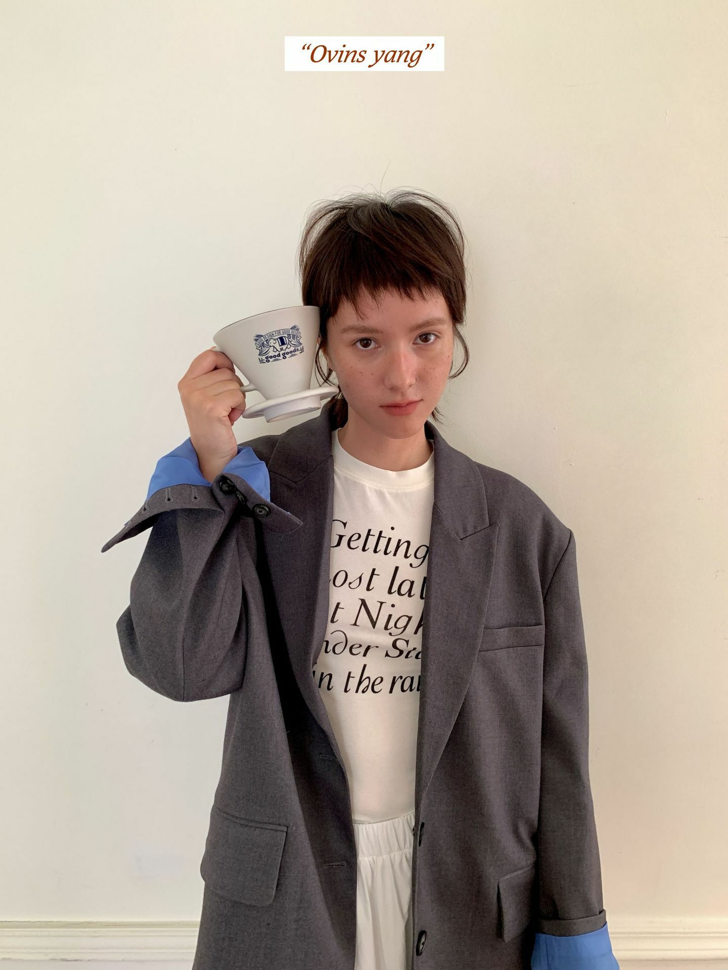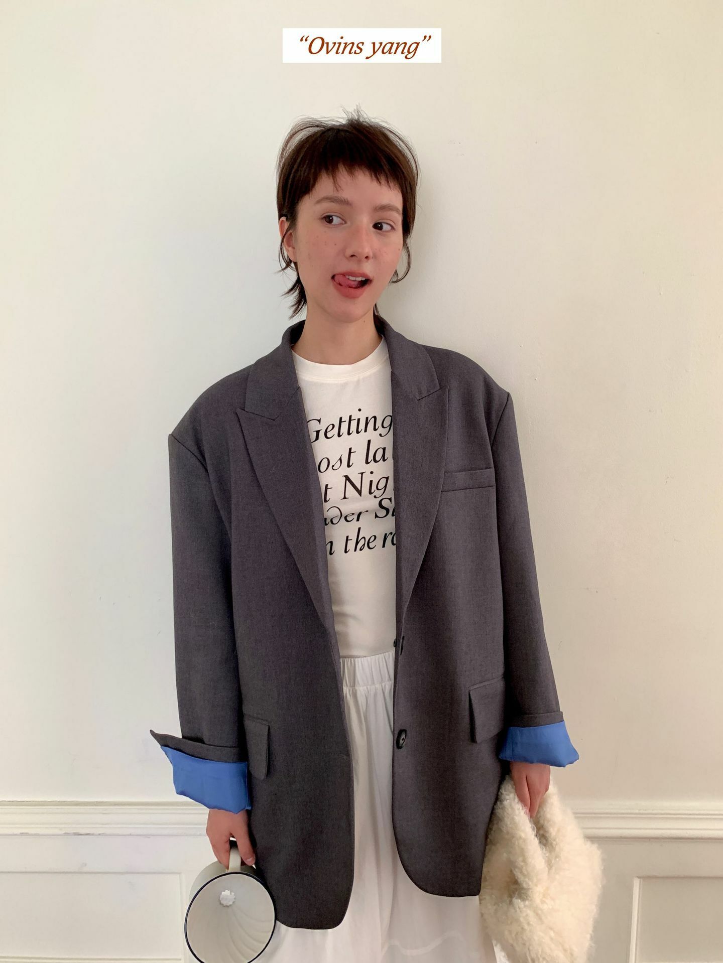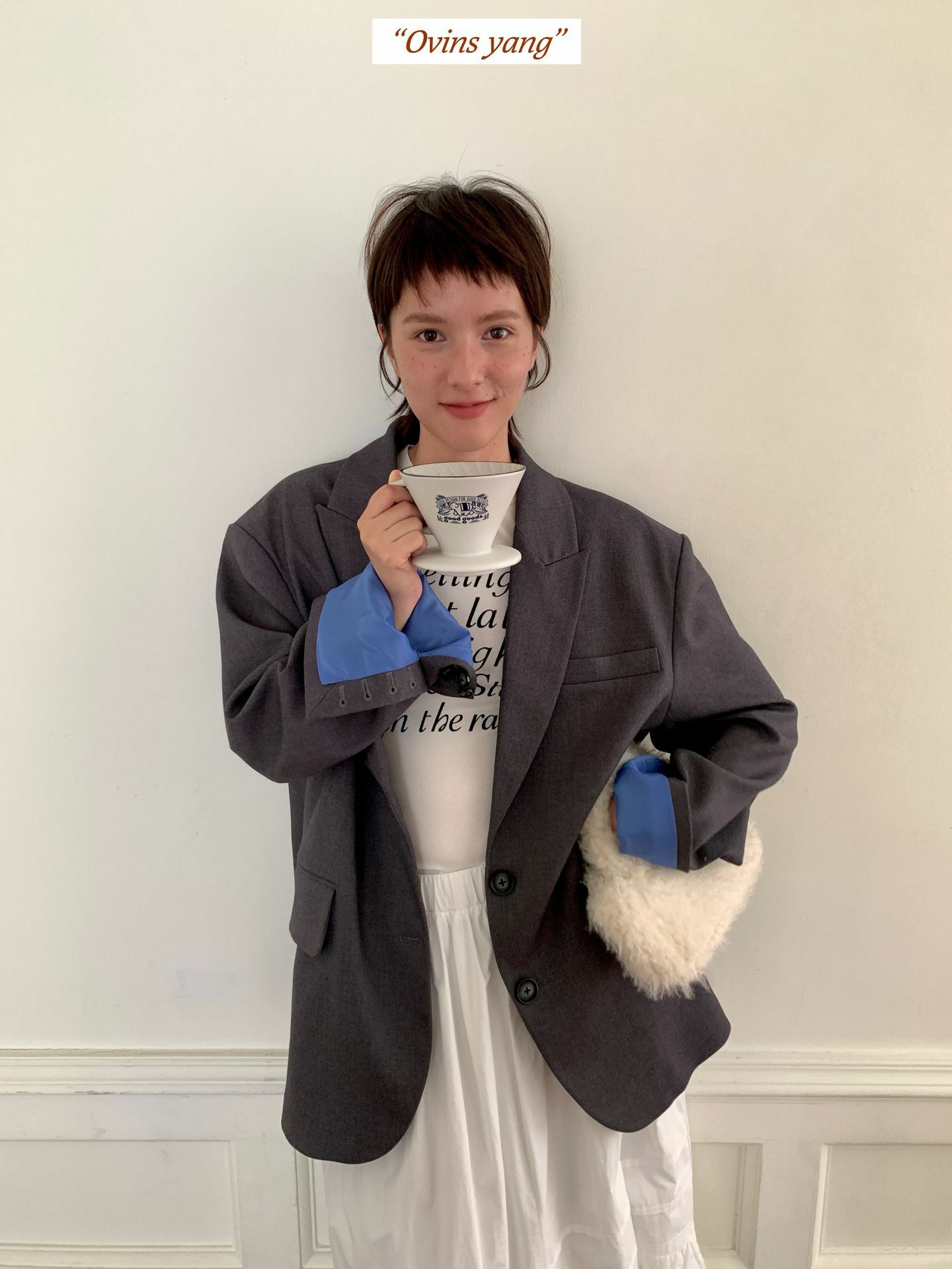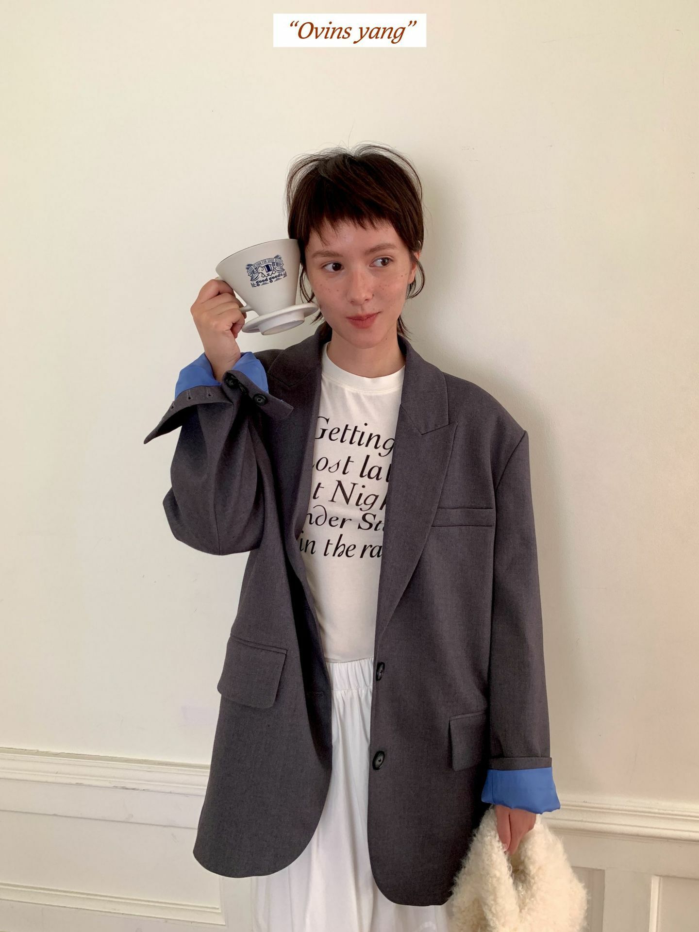 *o-ha-you*【FOY100313】高級感小西裝外套2024新款寬鬆慵懶風西服上衣中長款-3色-如有需要請先諮詢
