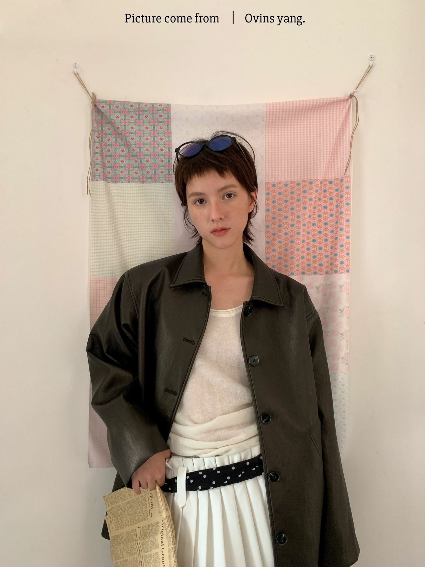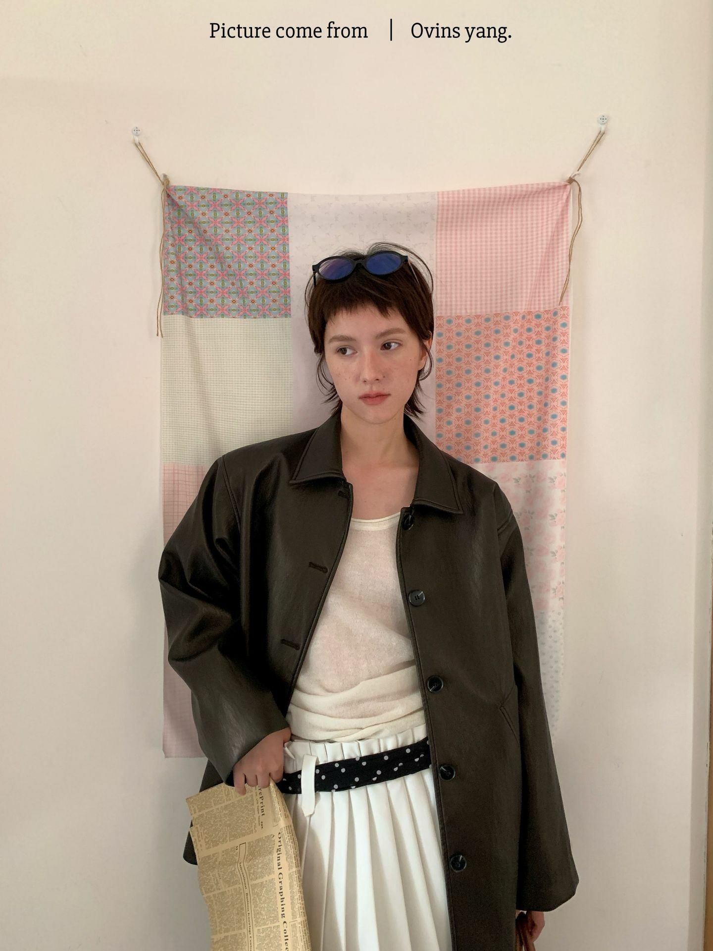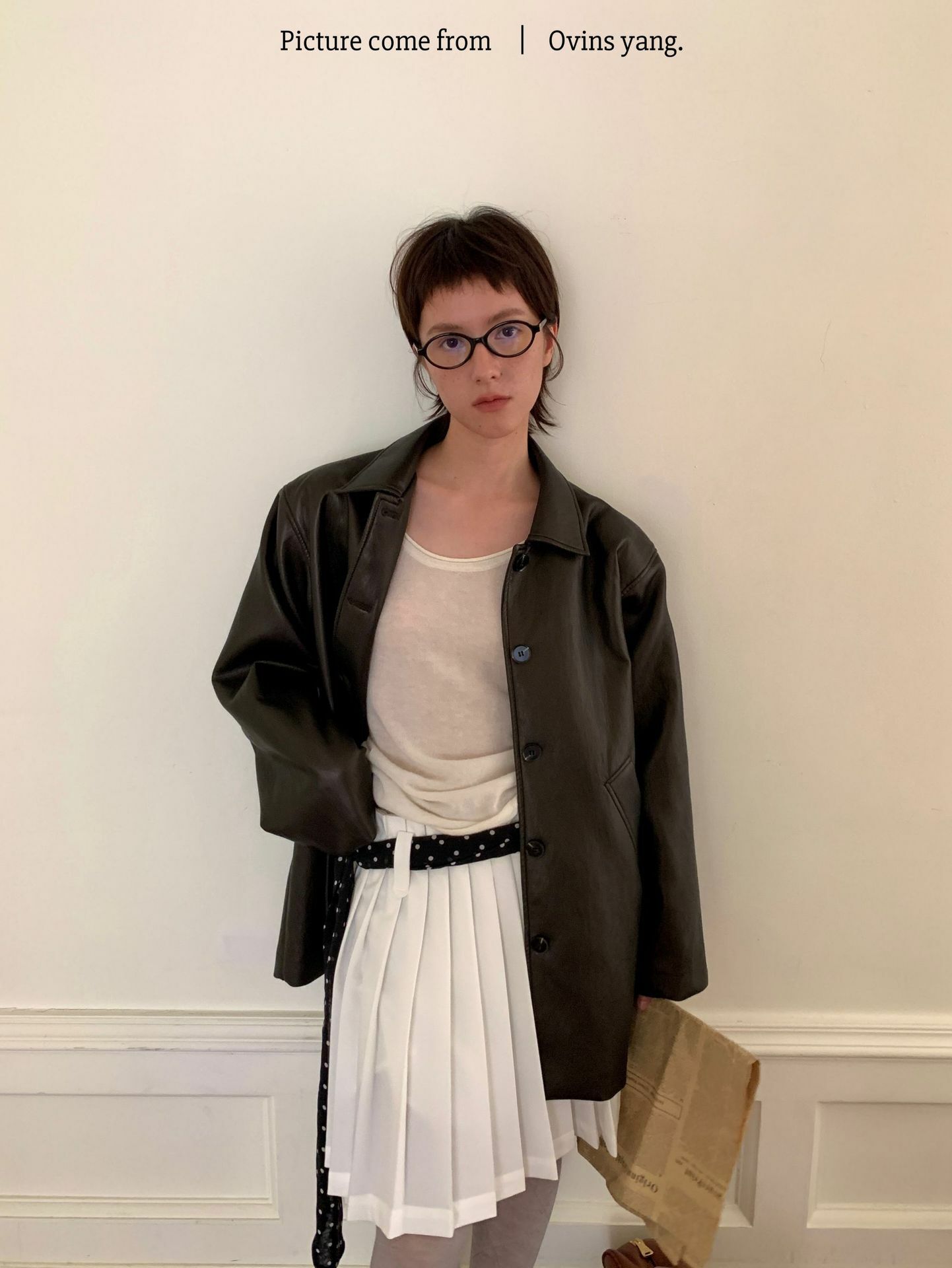 *o-ha-you*【FOY100321】翻領皮衣外套高級感秋冬2024新款中長款港風機車夾克-2色-如有需要請先諮詢