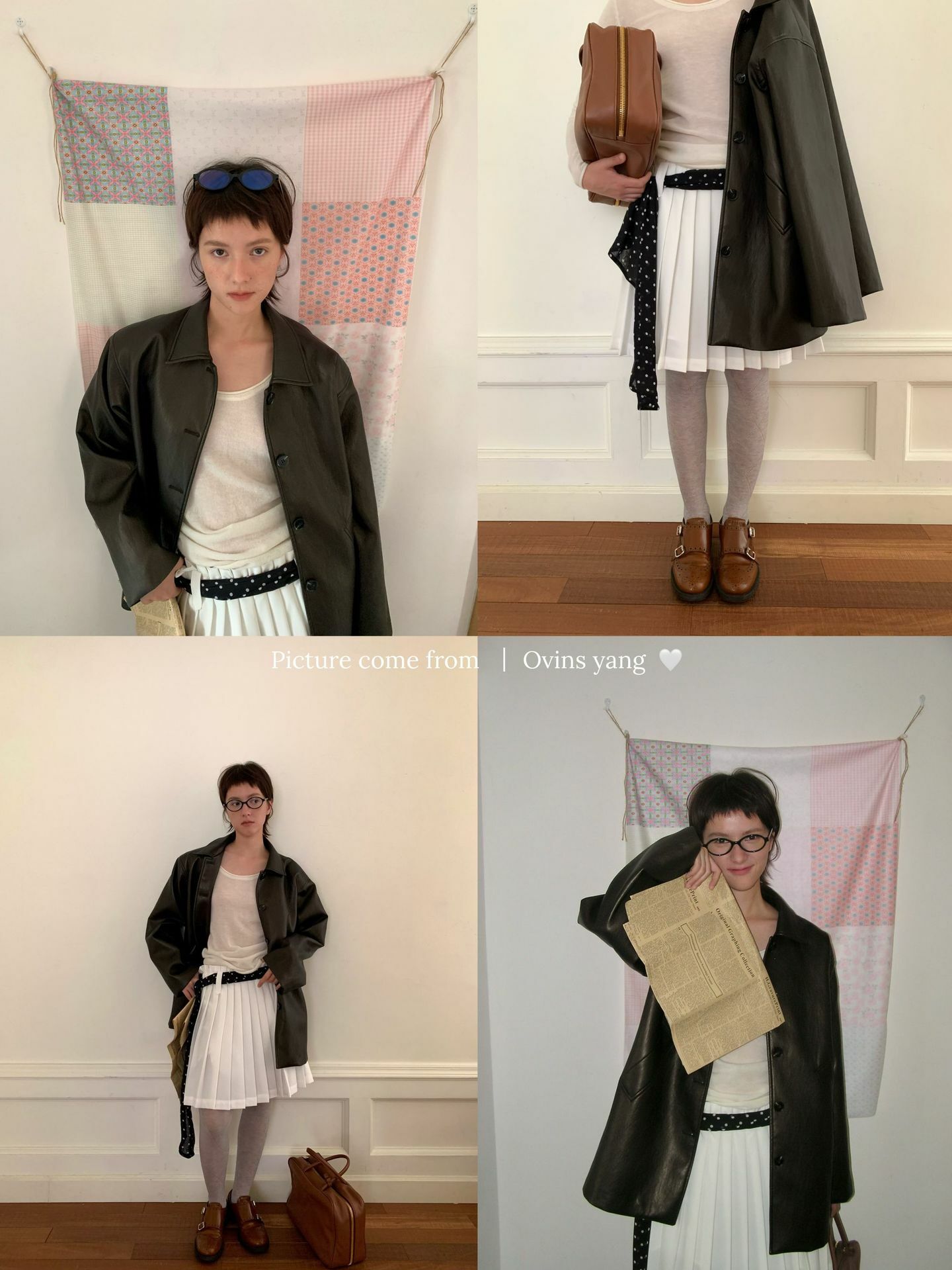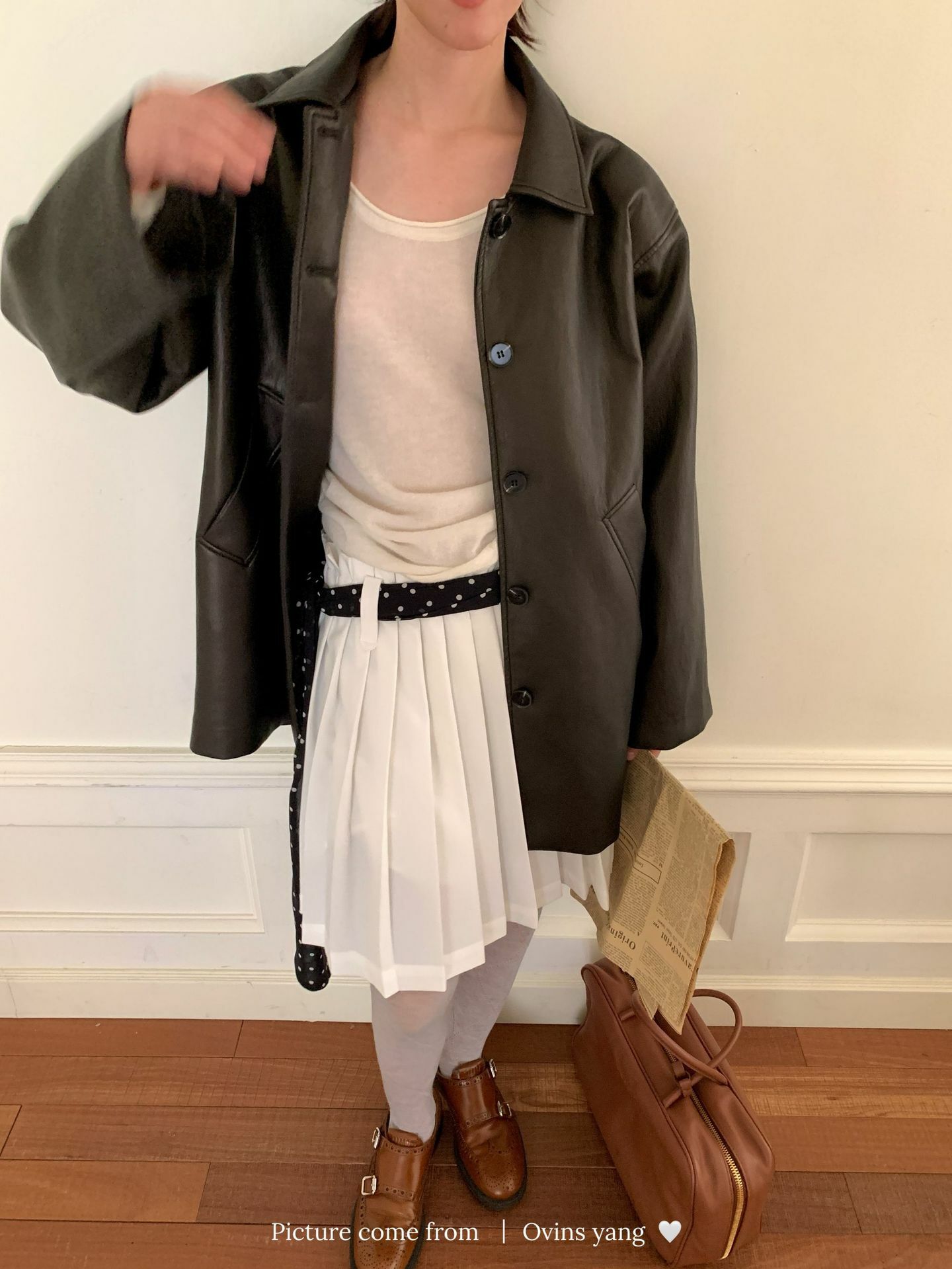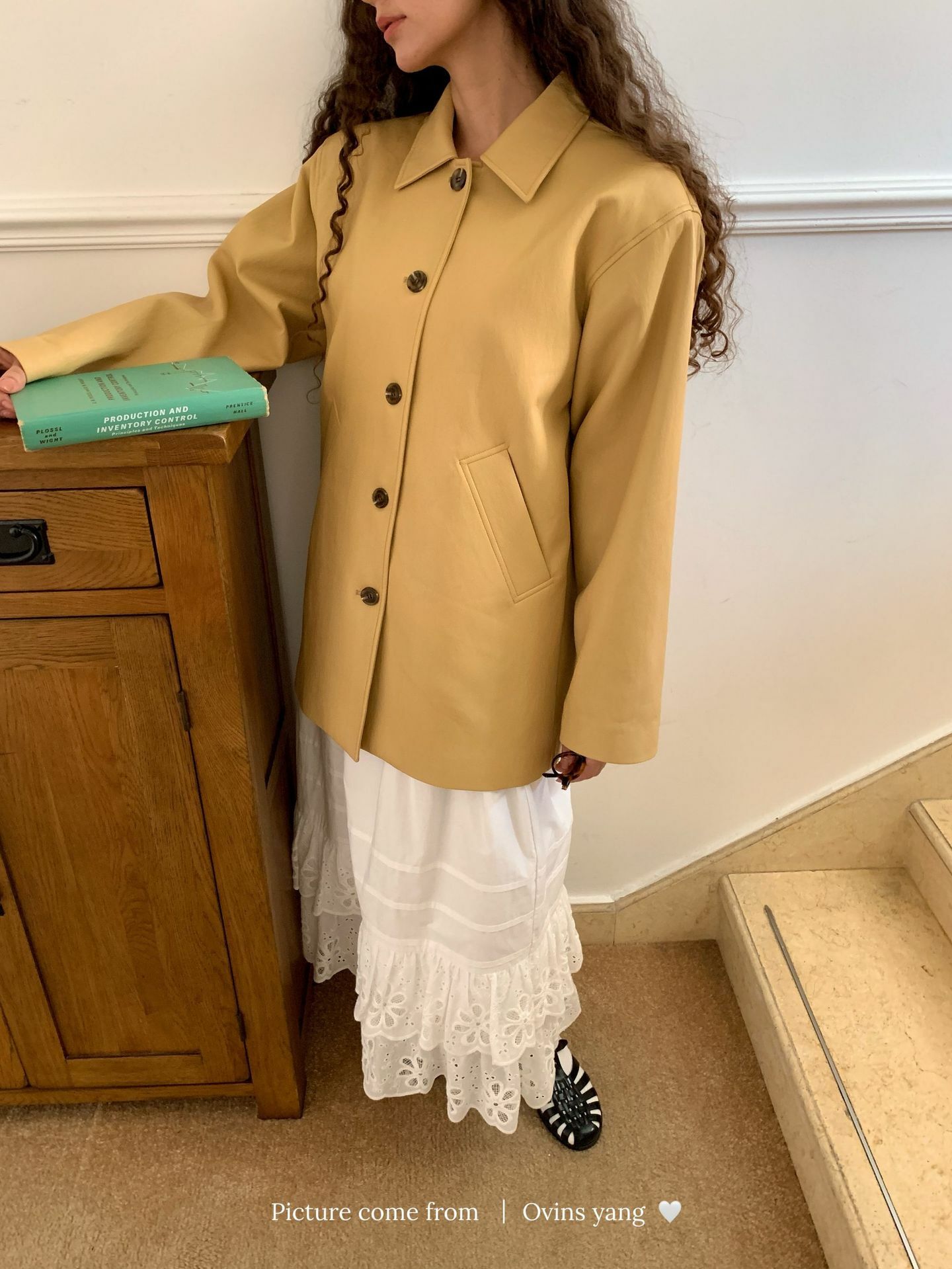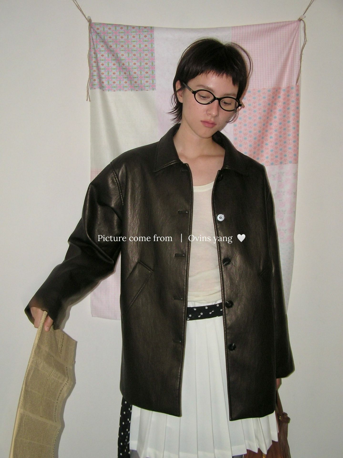 *o-ha-you*【FOY100321】翻領皮衣外套高級感秋冬2024新款中長款港風機車夾克-2色-如有需要請先諮詢