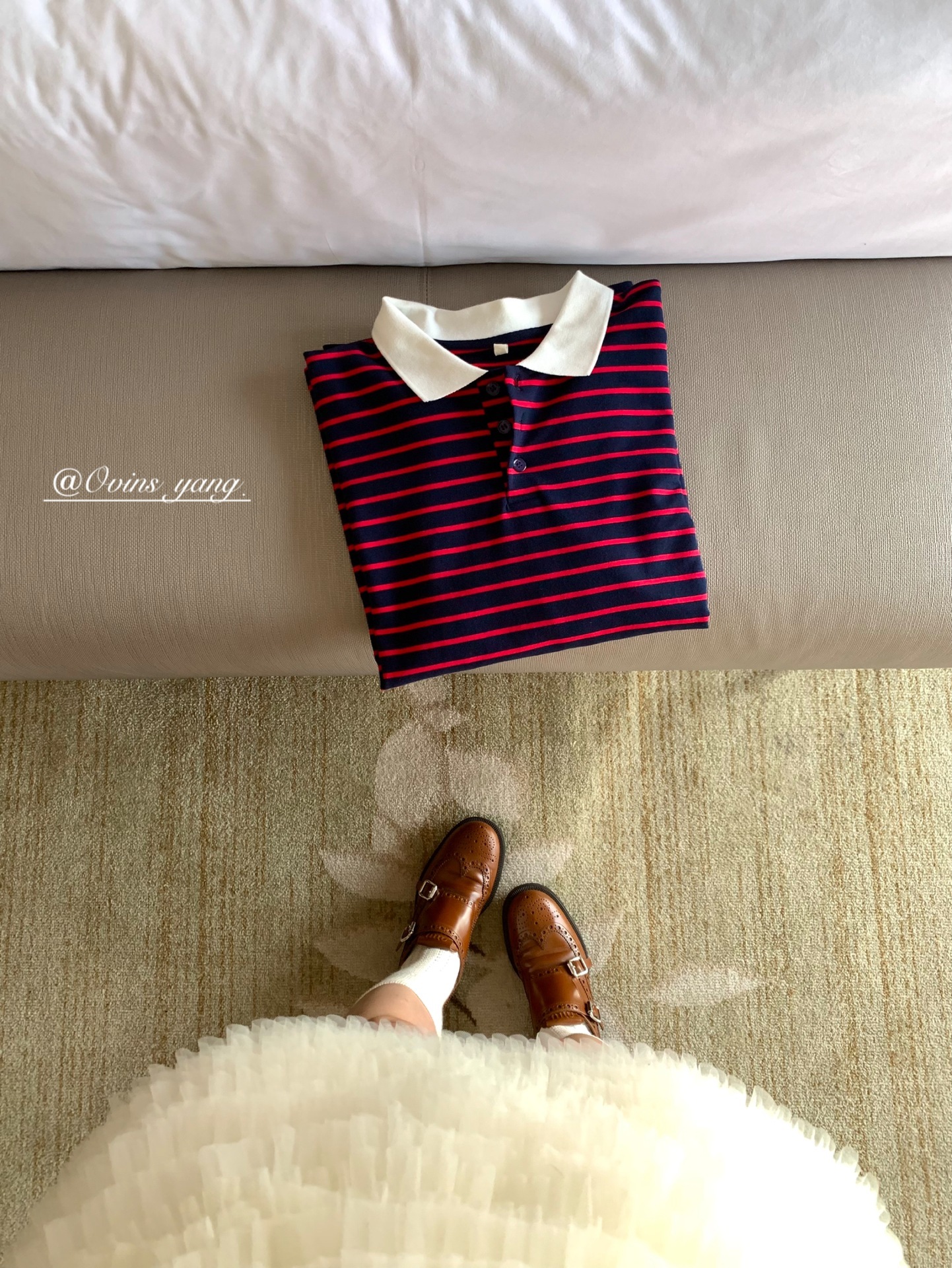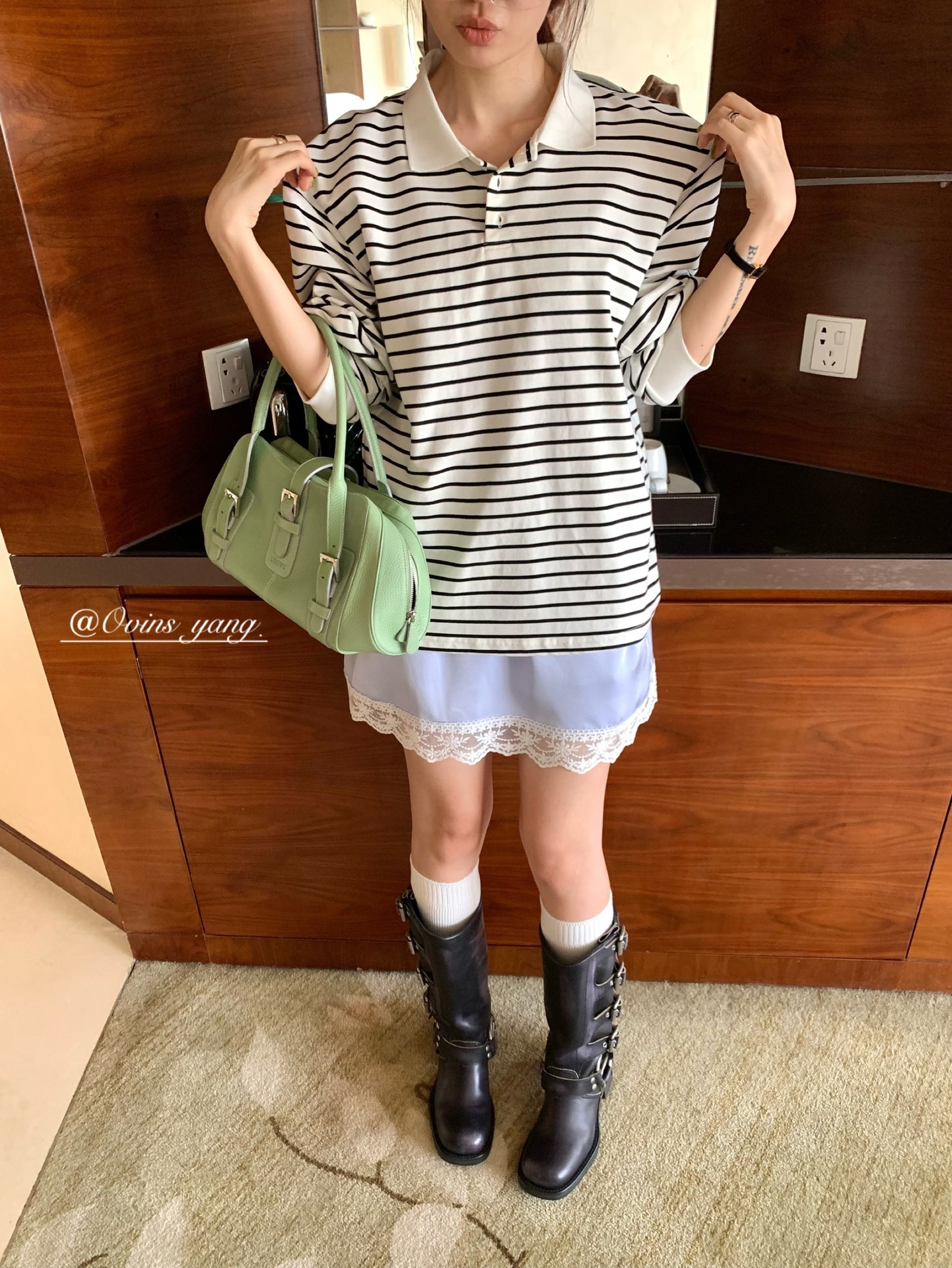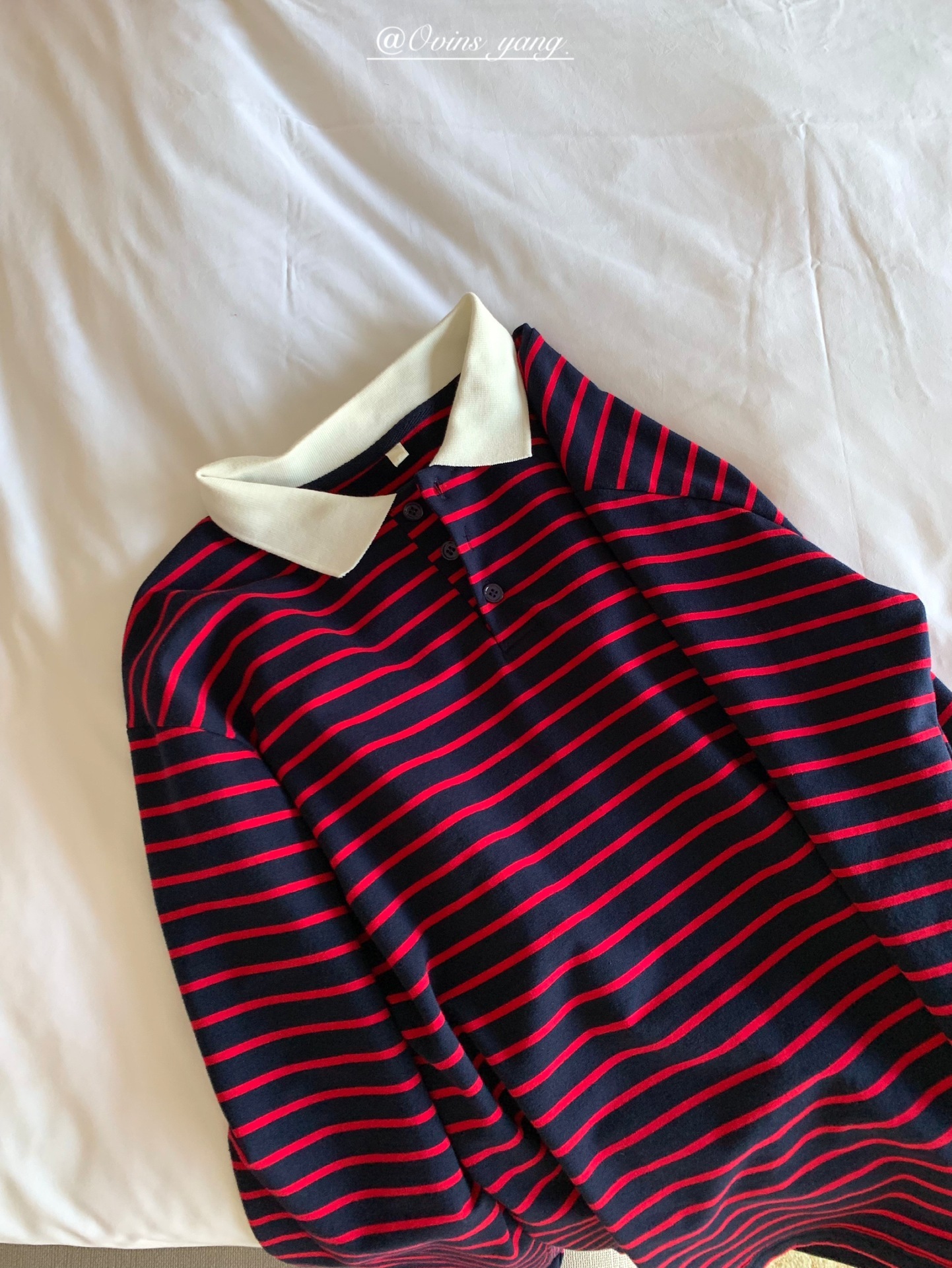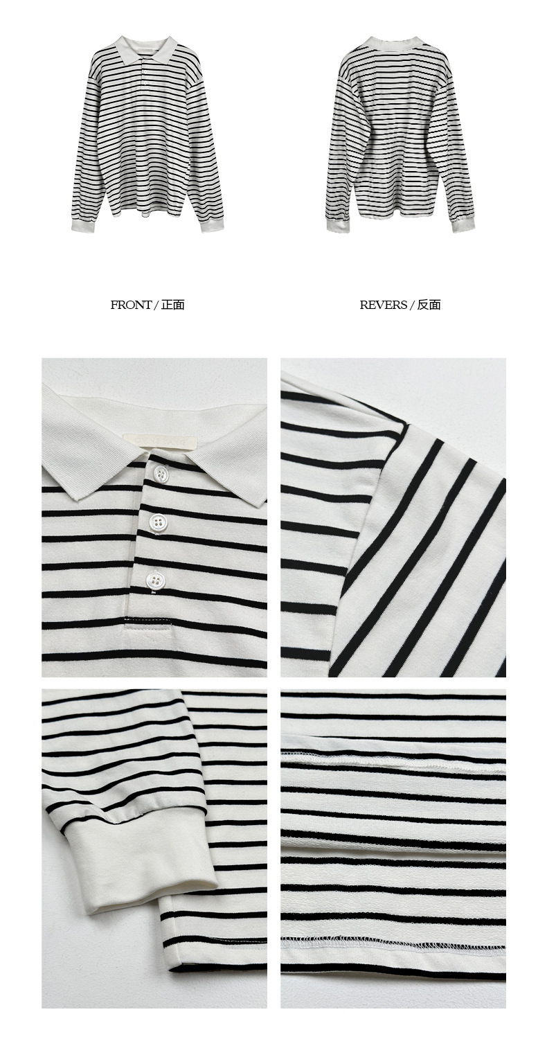 *o-ha-you*【FOY100323】Polo領條紋T恤秋季韓系學院風寬鬆休閒長袖上衣-3色