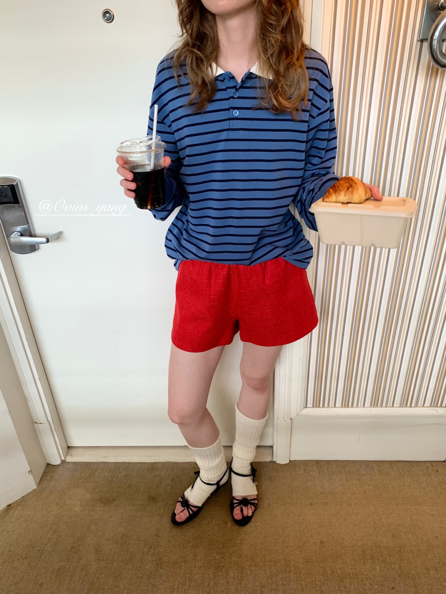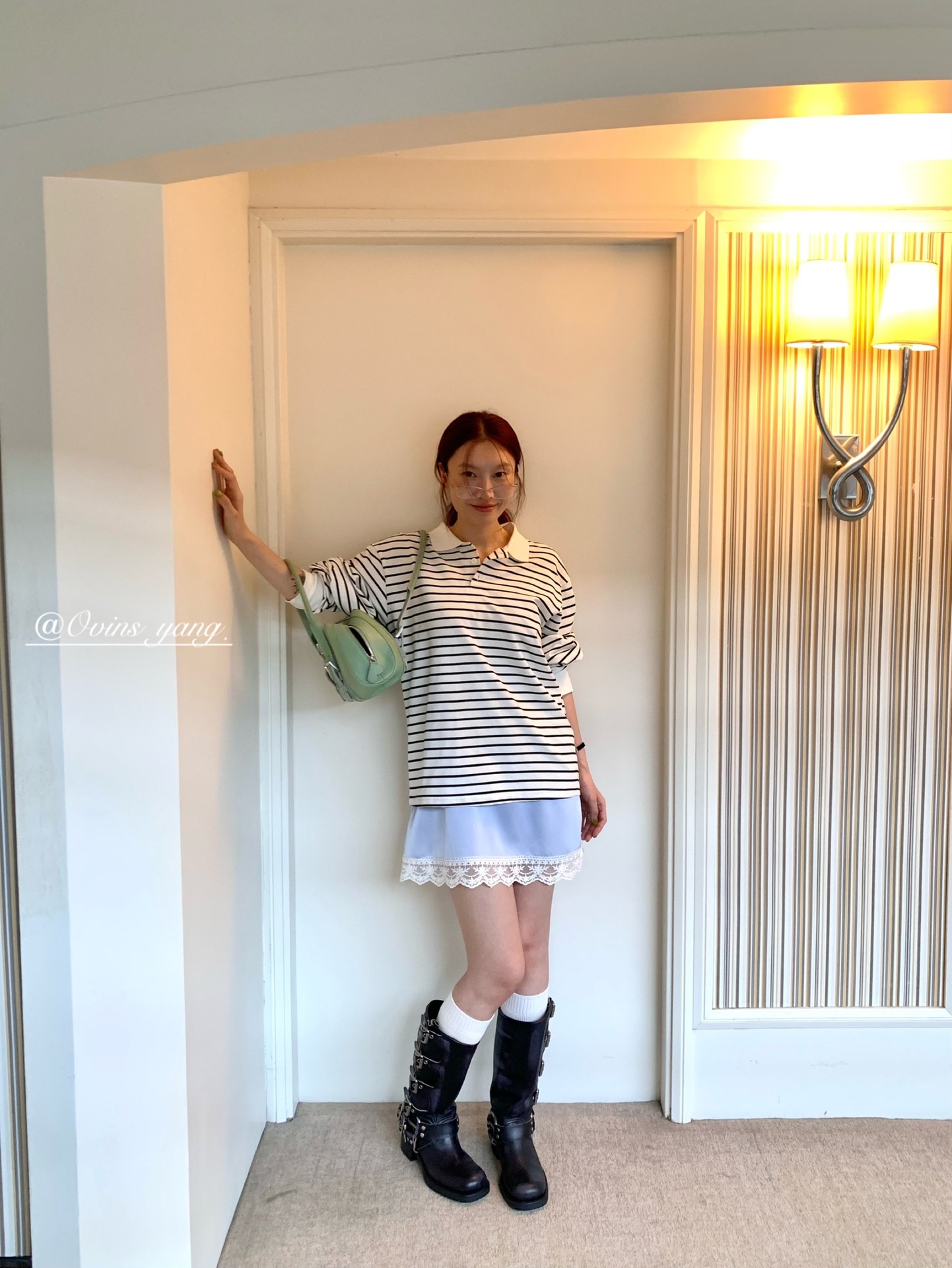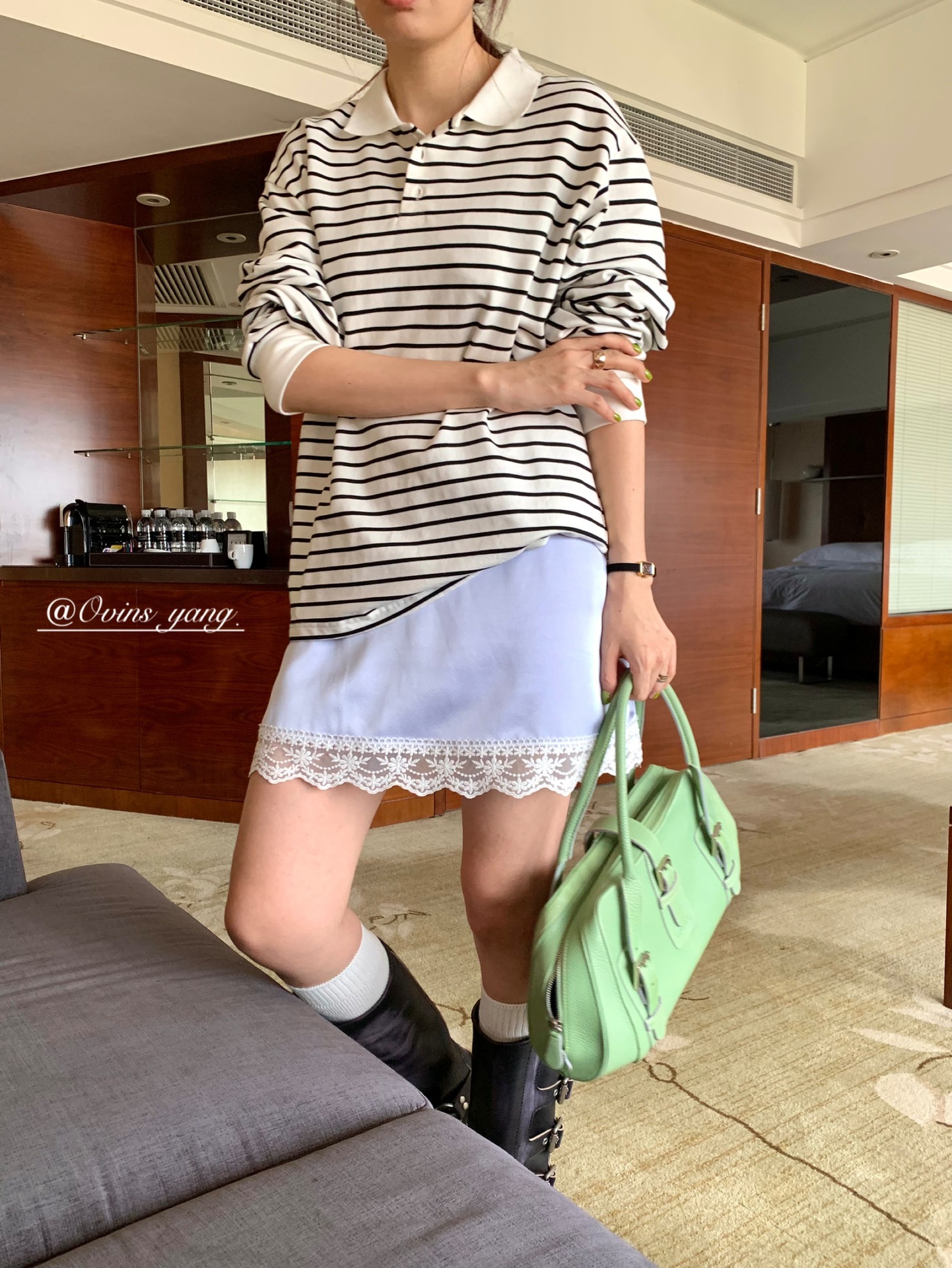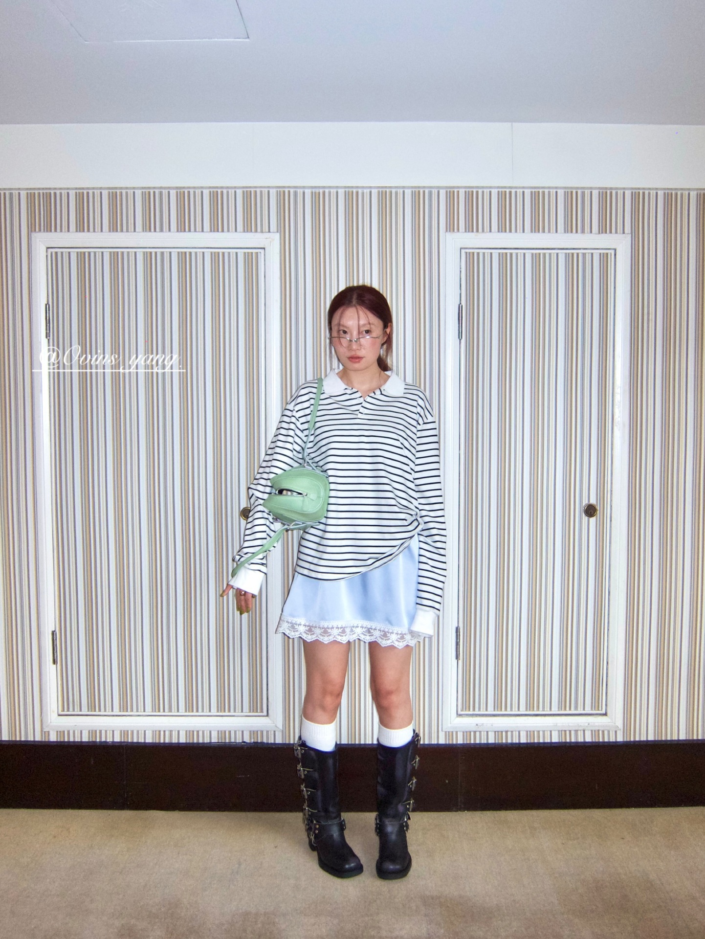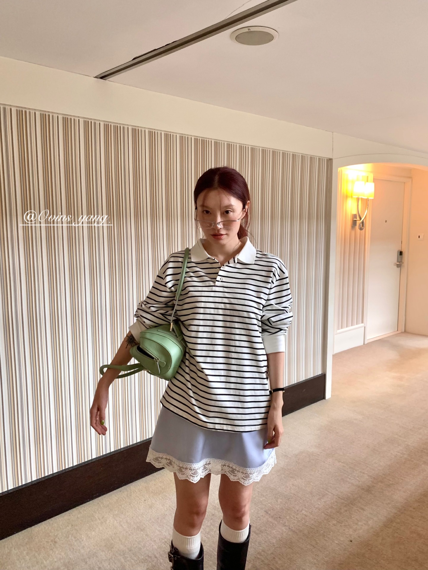 *o-ha-you*【FOY100323】Polo領條紋T恤秋季韓系學院風寬鬆休閒長袖上衣-3色