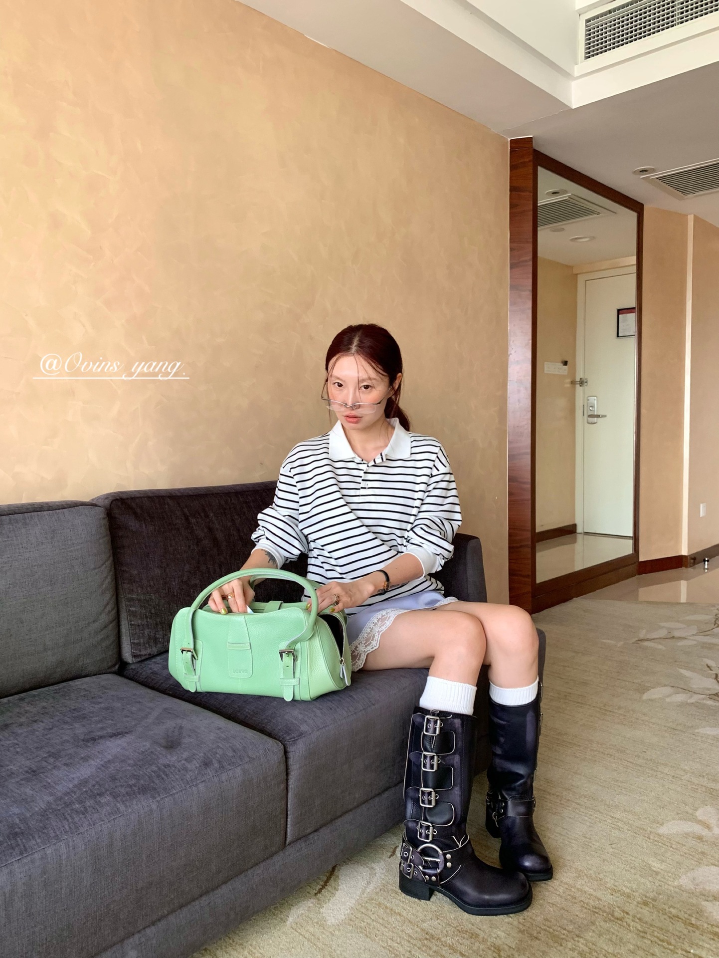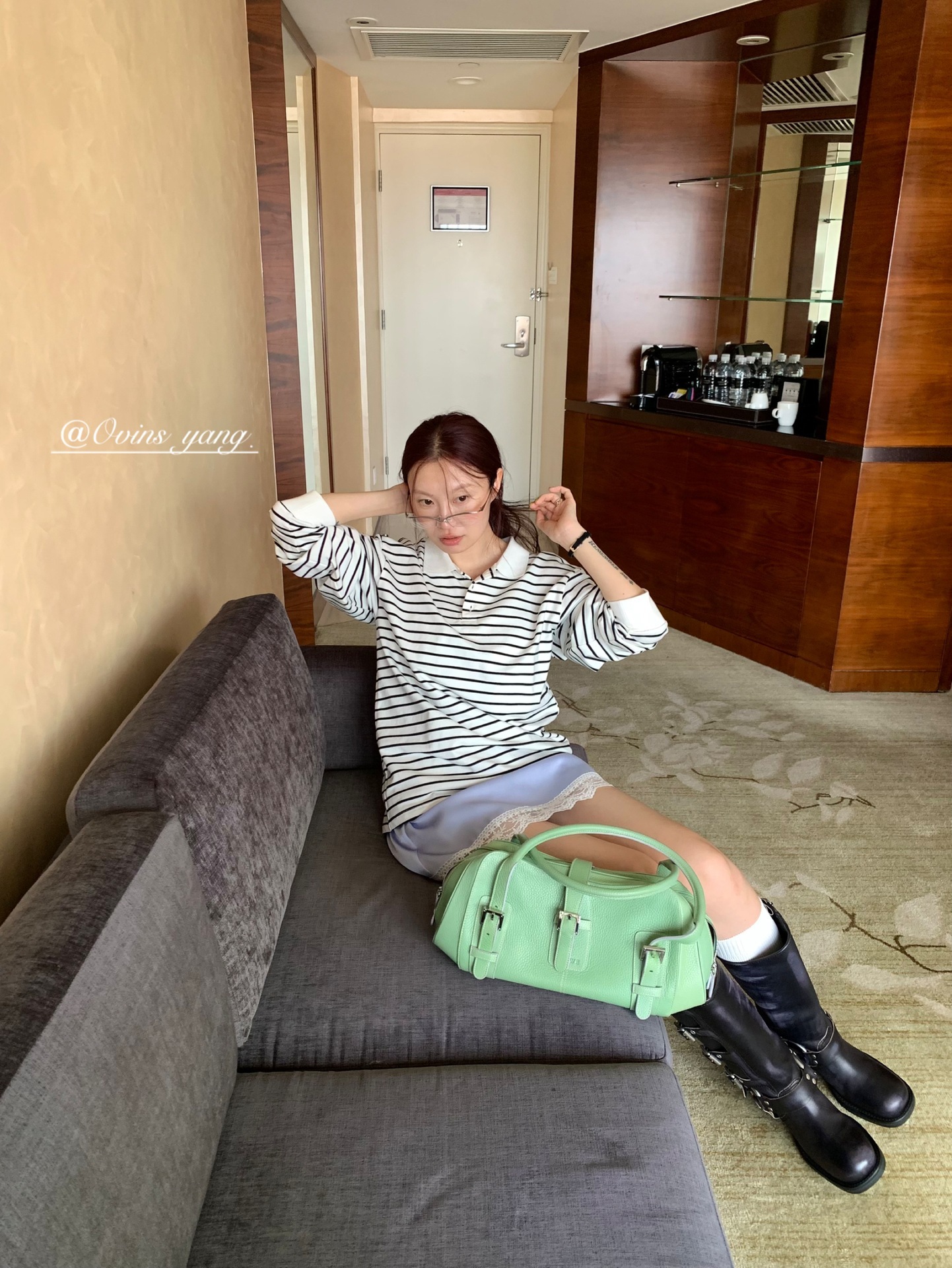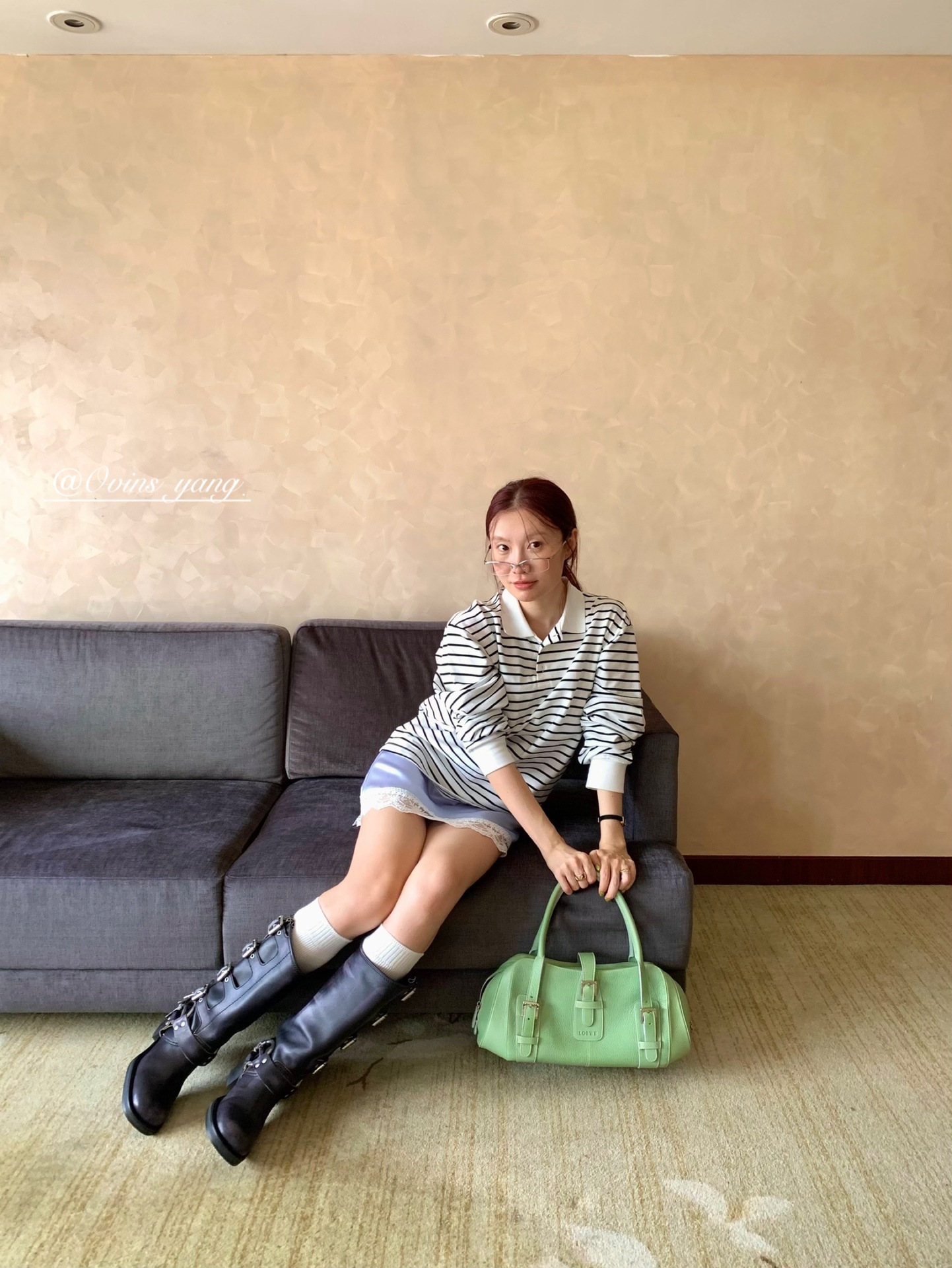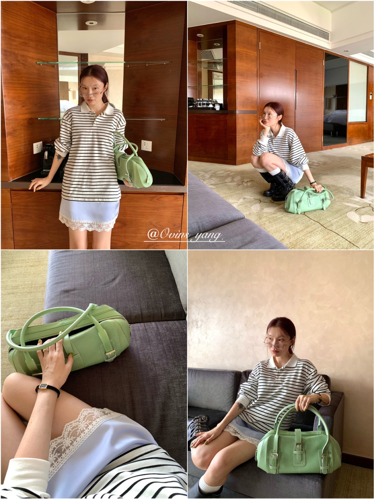 *o-ha-you*【FOY100323】Polo領條紋T恤秋季韓系學院風寬鬆休閒長袖上衣-3色