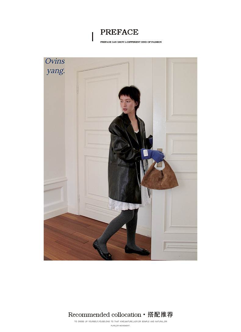 *o-ha-you*【FOY100331】美拉德皮衣外套高級感中長款2024新款法式風休閒皮衣-2色-如有需要請先諮詢