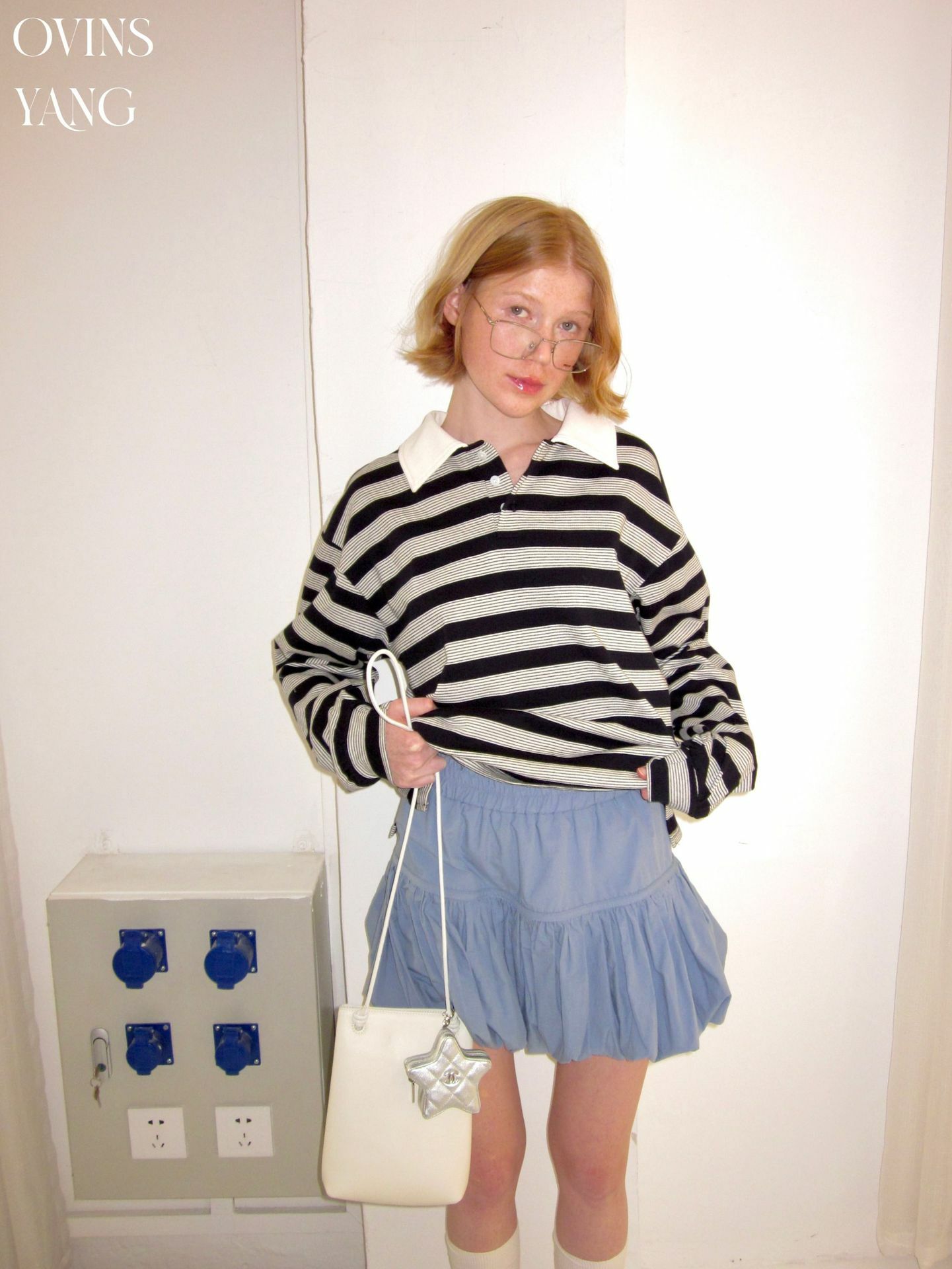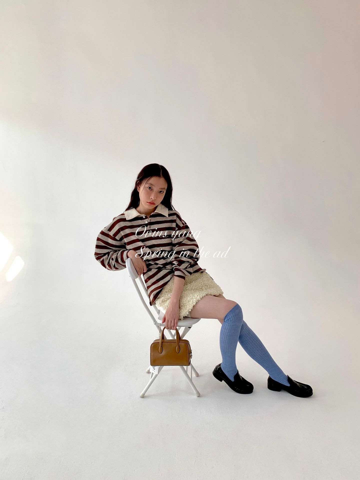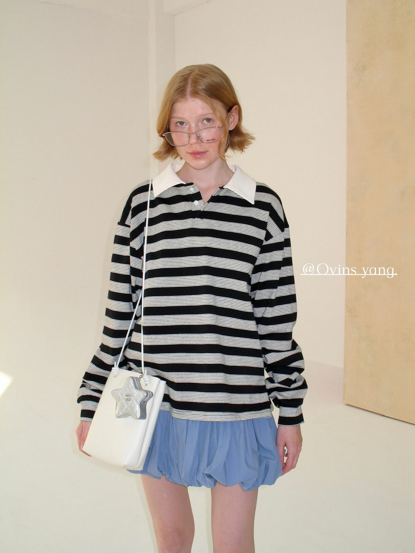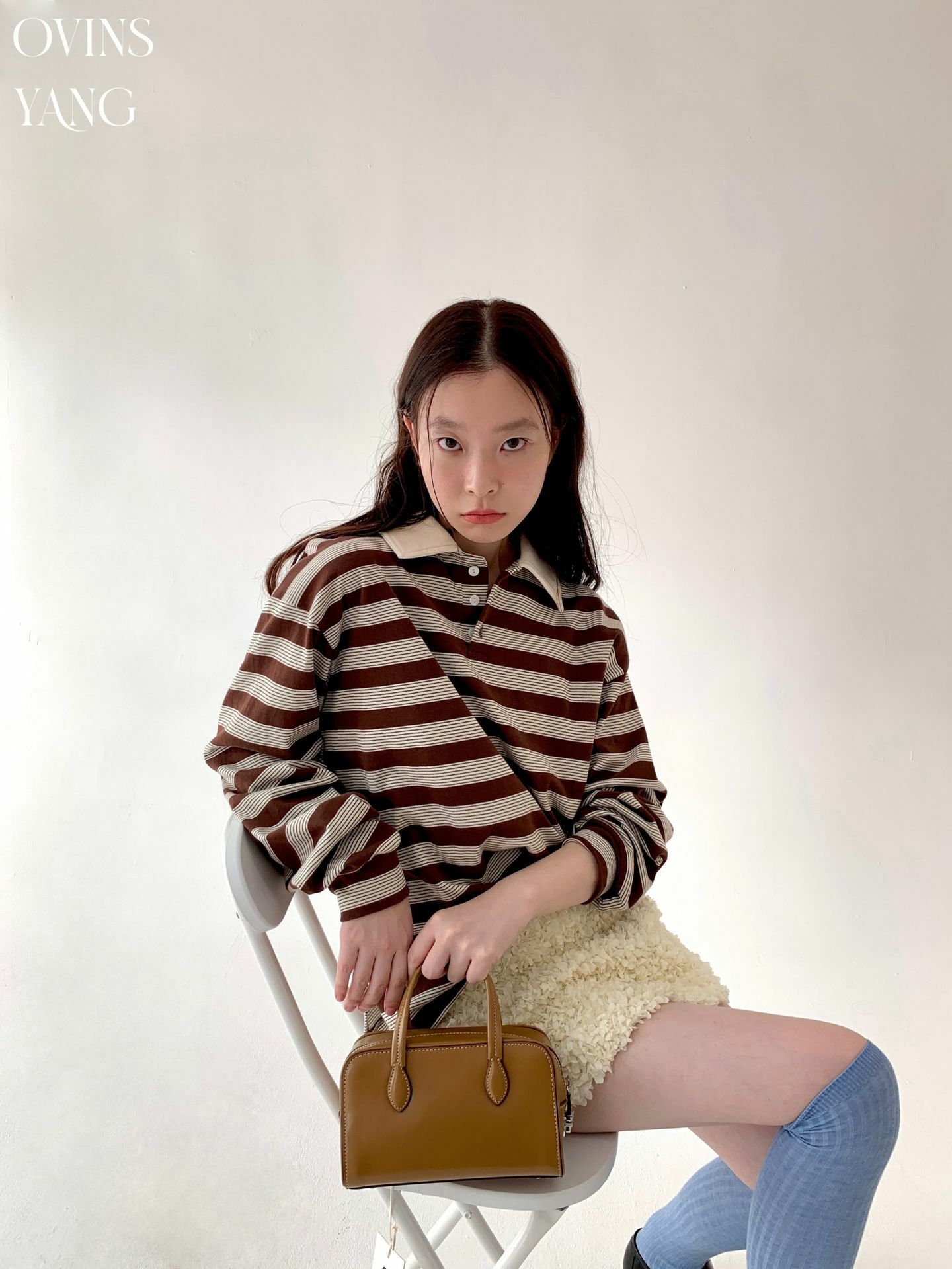 *o-ha-you*【FOY100350】條紋polo衫純棉休閒復古寬鬆慵懶風打底衫長袖上衣-2色-如有需要請先諮詢