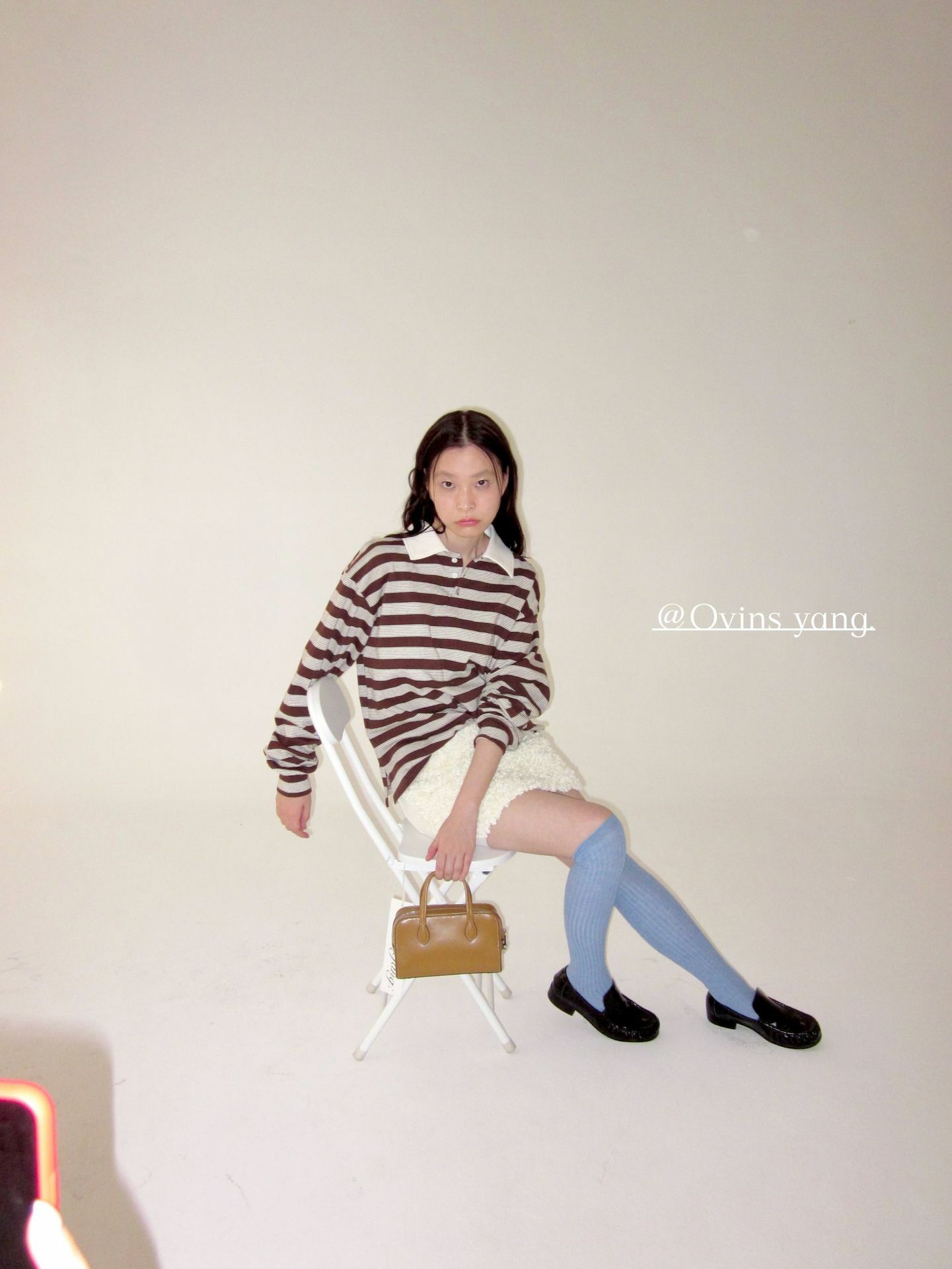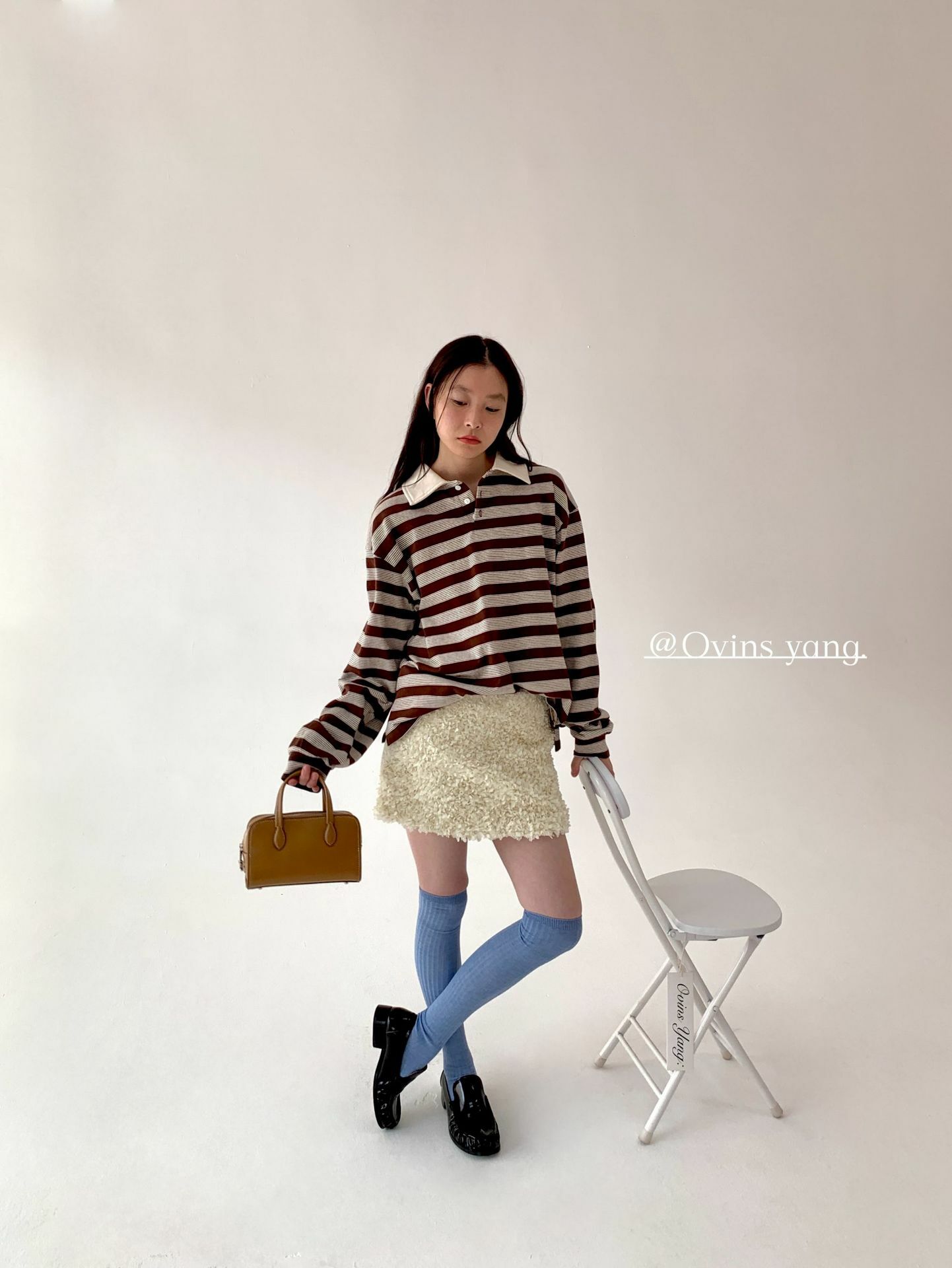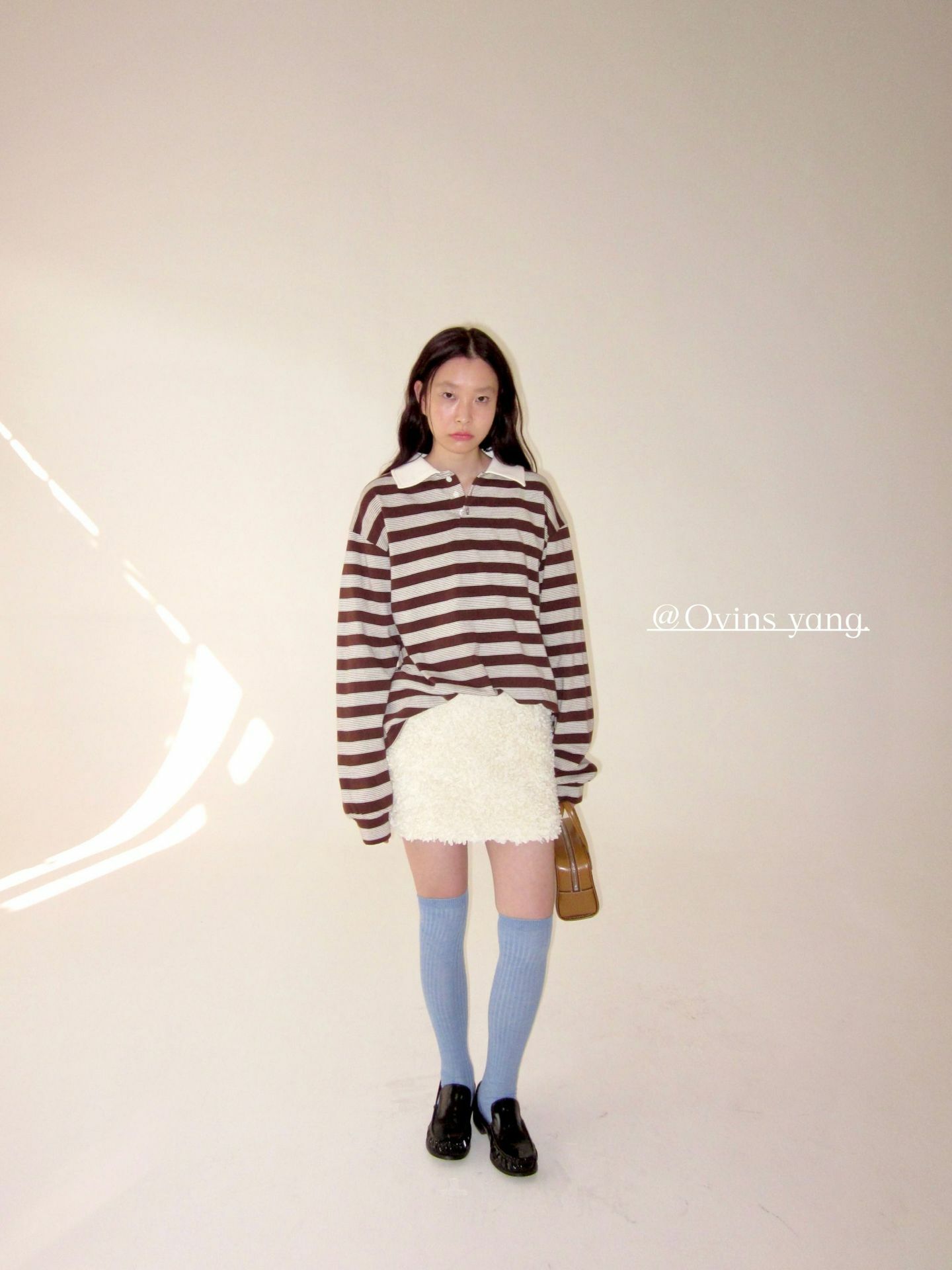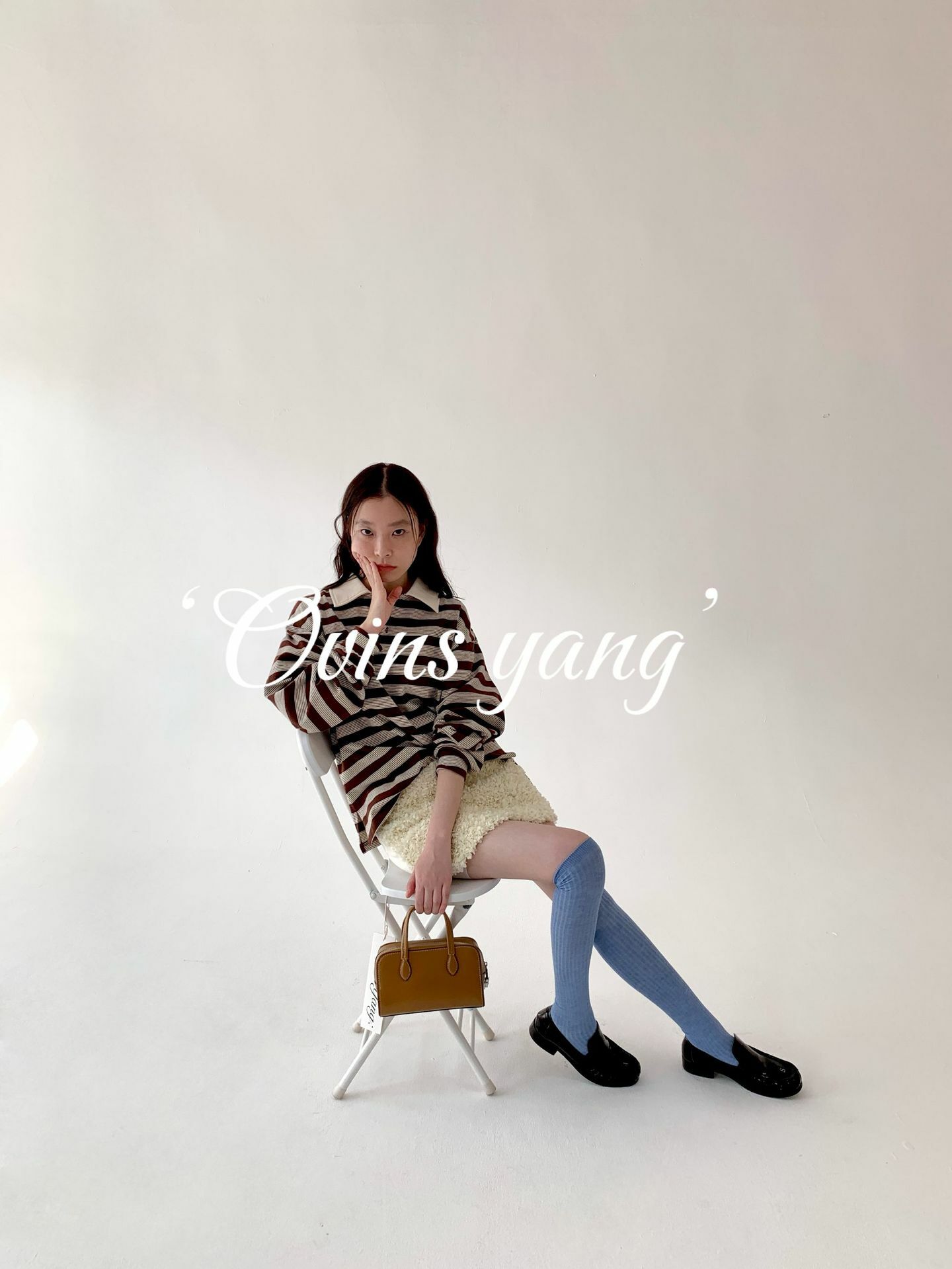 *o-ha-you*【FOY100350】條紋polo衫純棉休閒復古寬鬆慵懶風打底衫長袖上衣-2色-如有需要請先諮詢