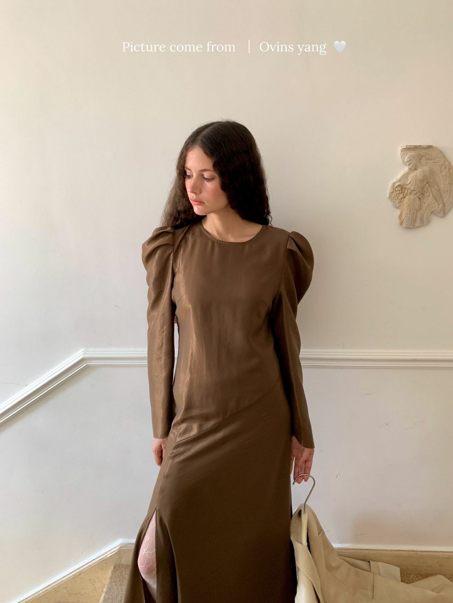 *o-ha-you*【FOY100362】泡泡袖長袖連衣裙氣質中長裙秋季洋裝好適合尾牙-2色-如有需要請先諮詢