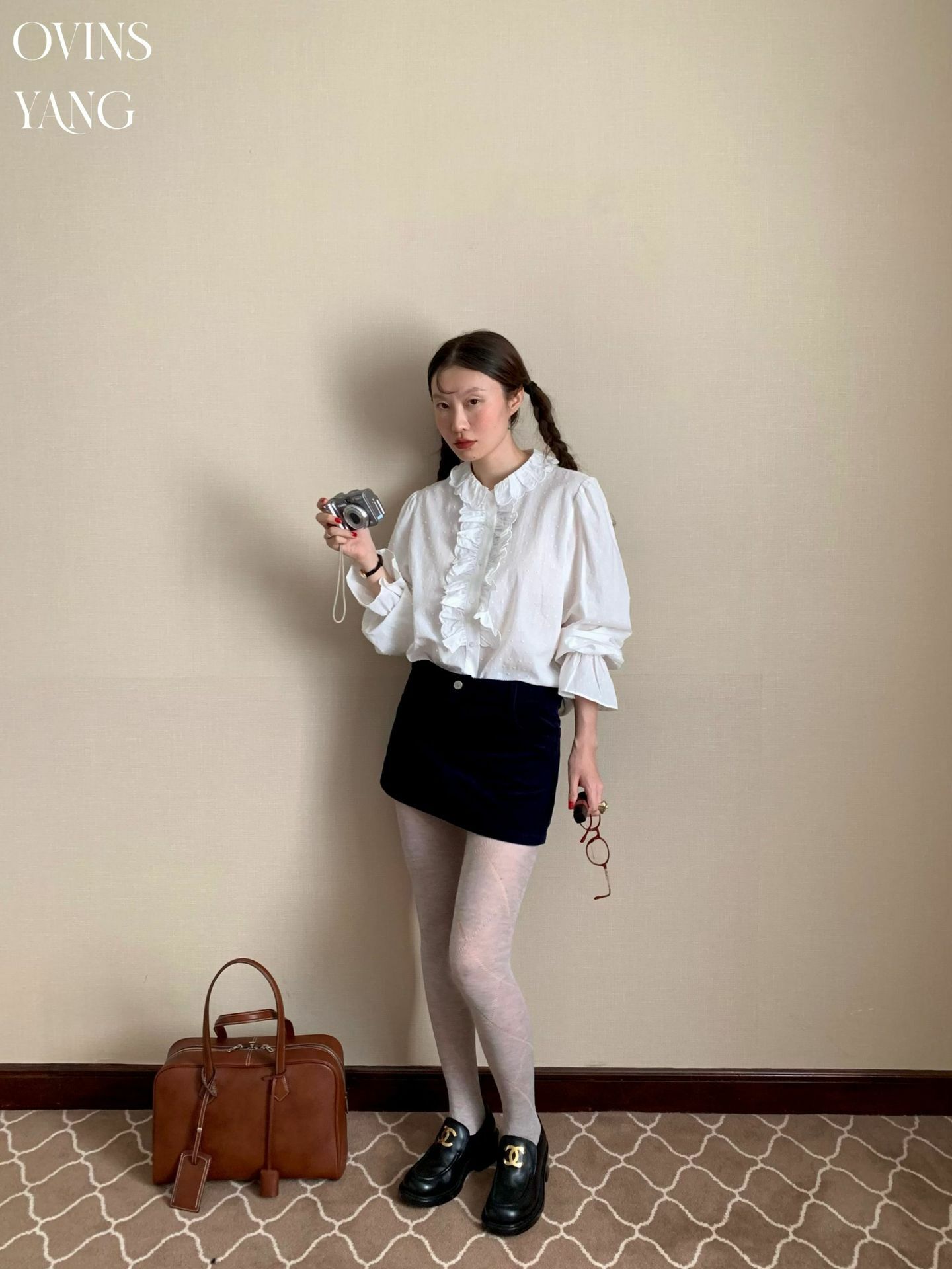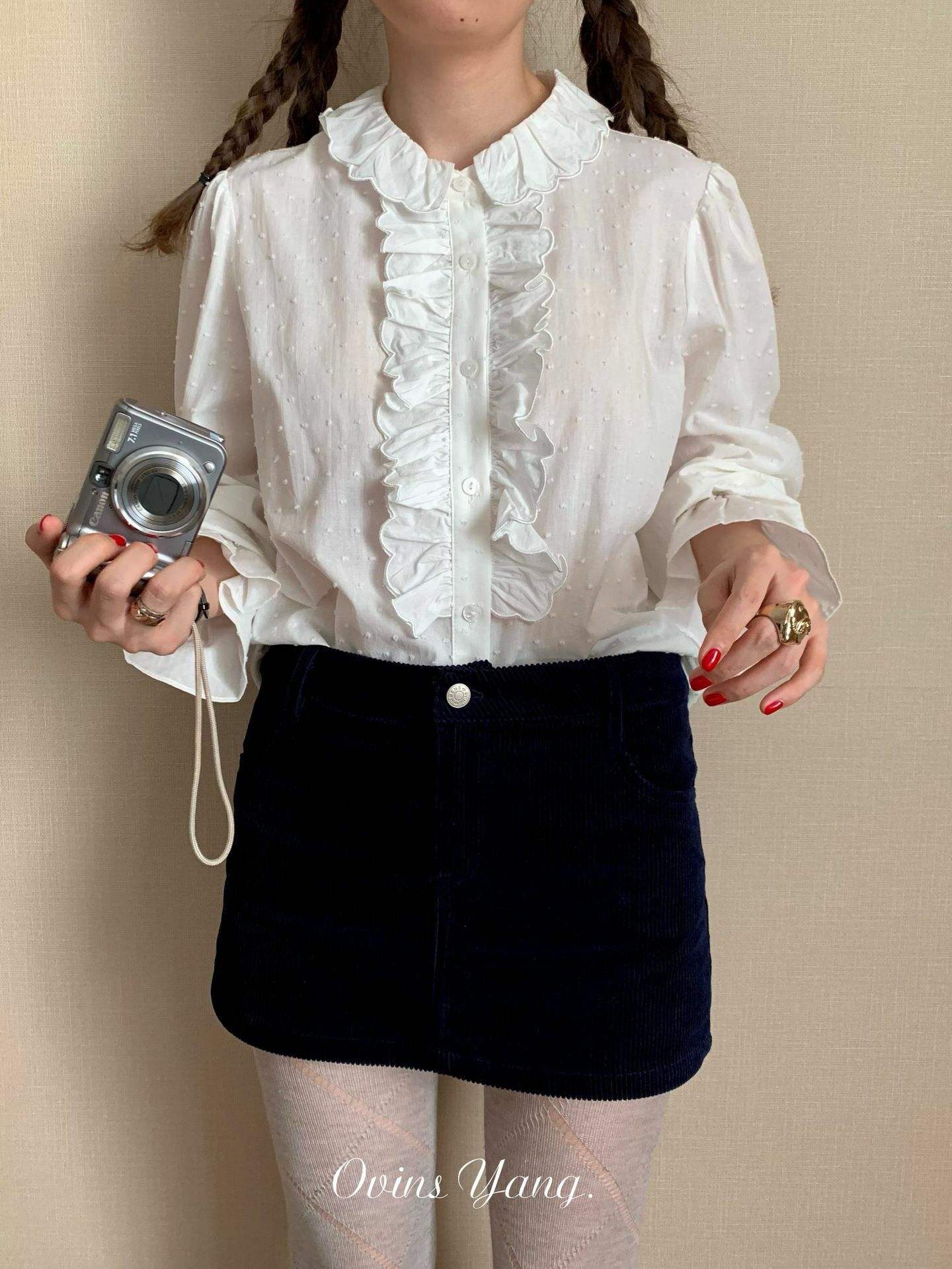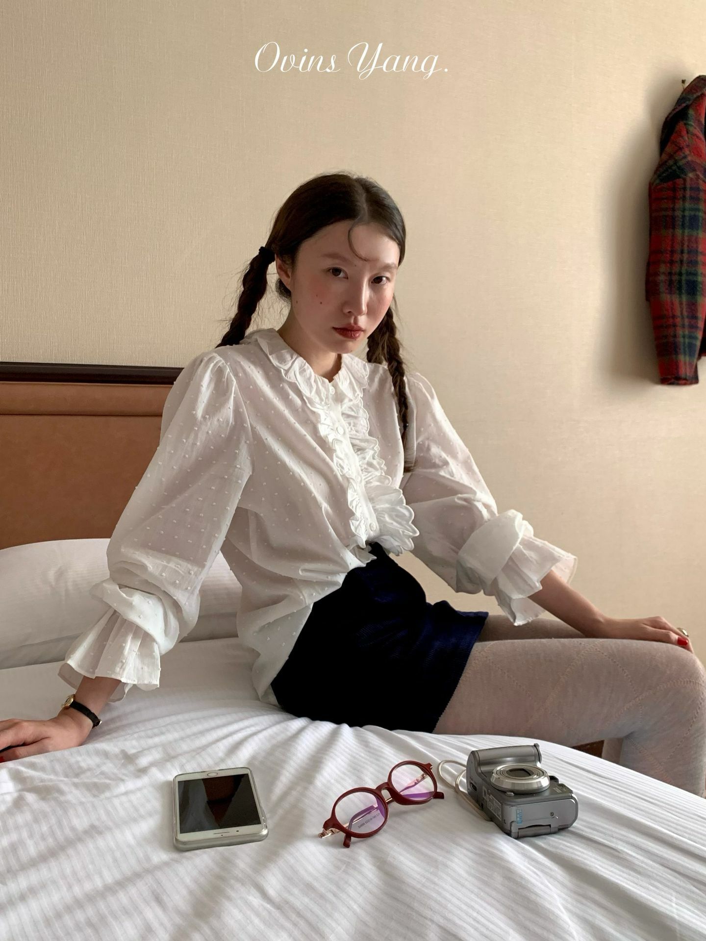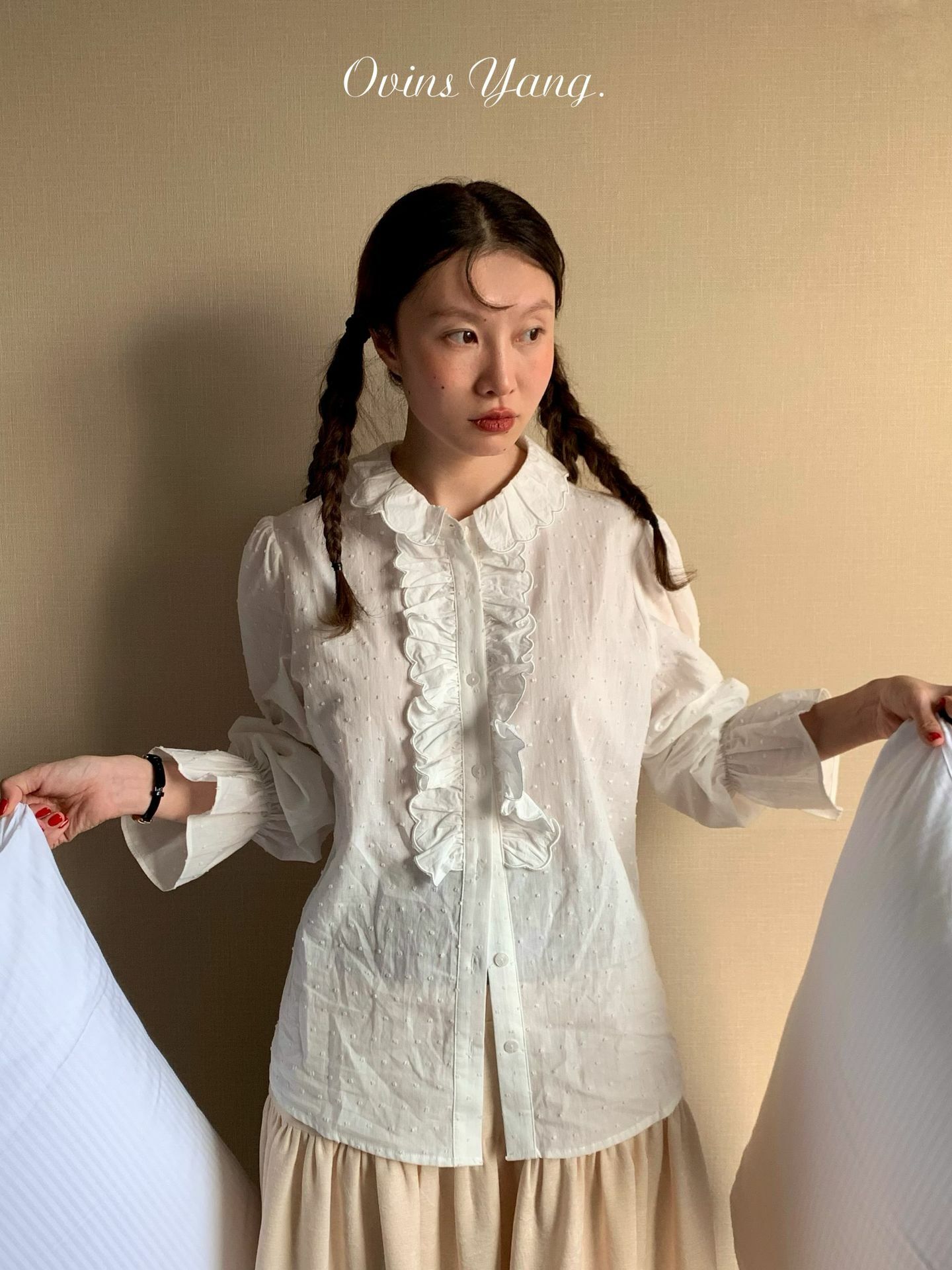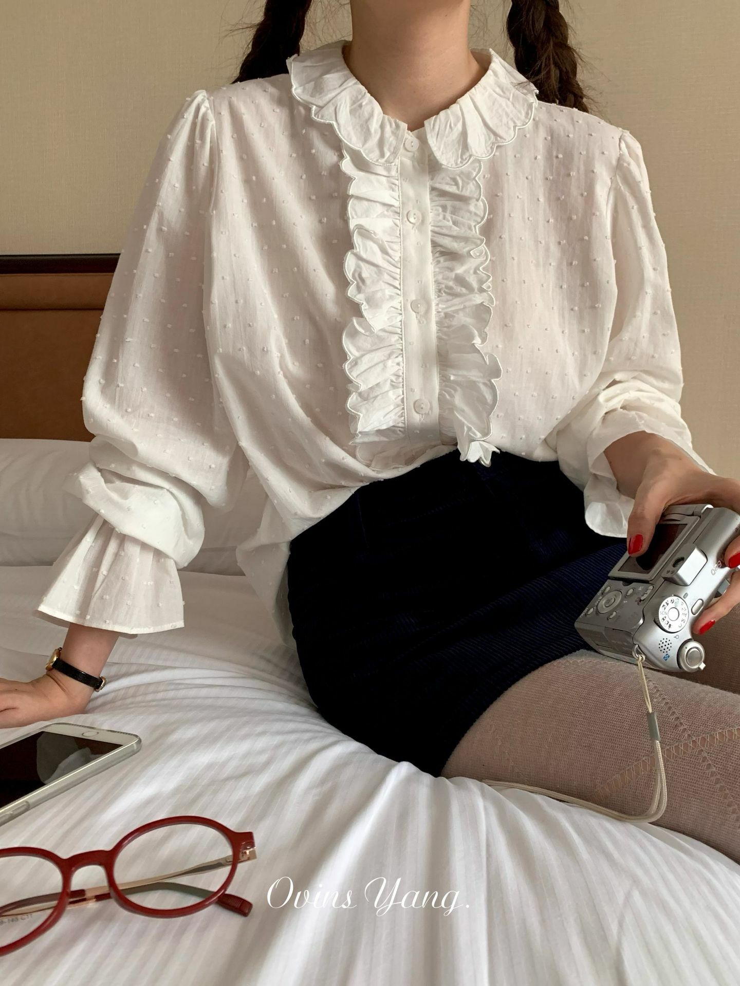 *o-ha-you*【FOY100365】法式白襯衫秋冬設計感小眾甜美娃娃領襯衣內搭上衣-如有需要請先諮詢