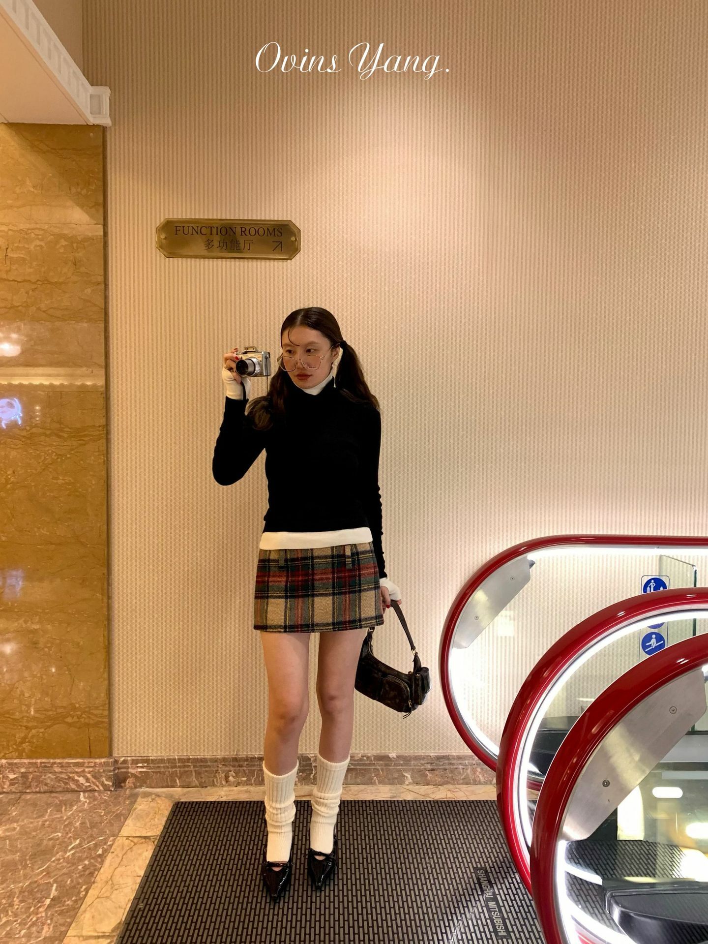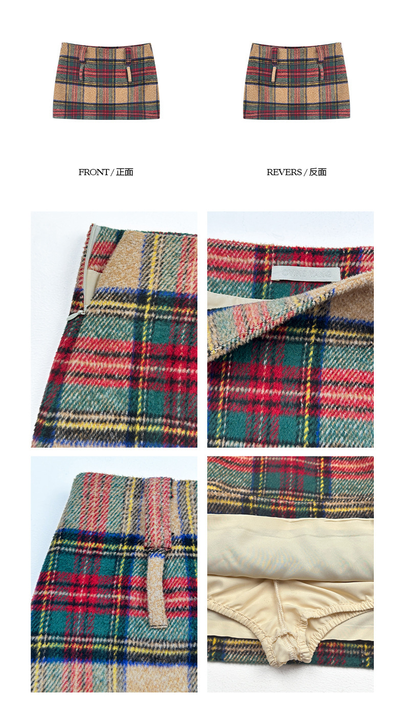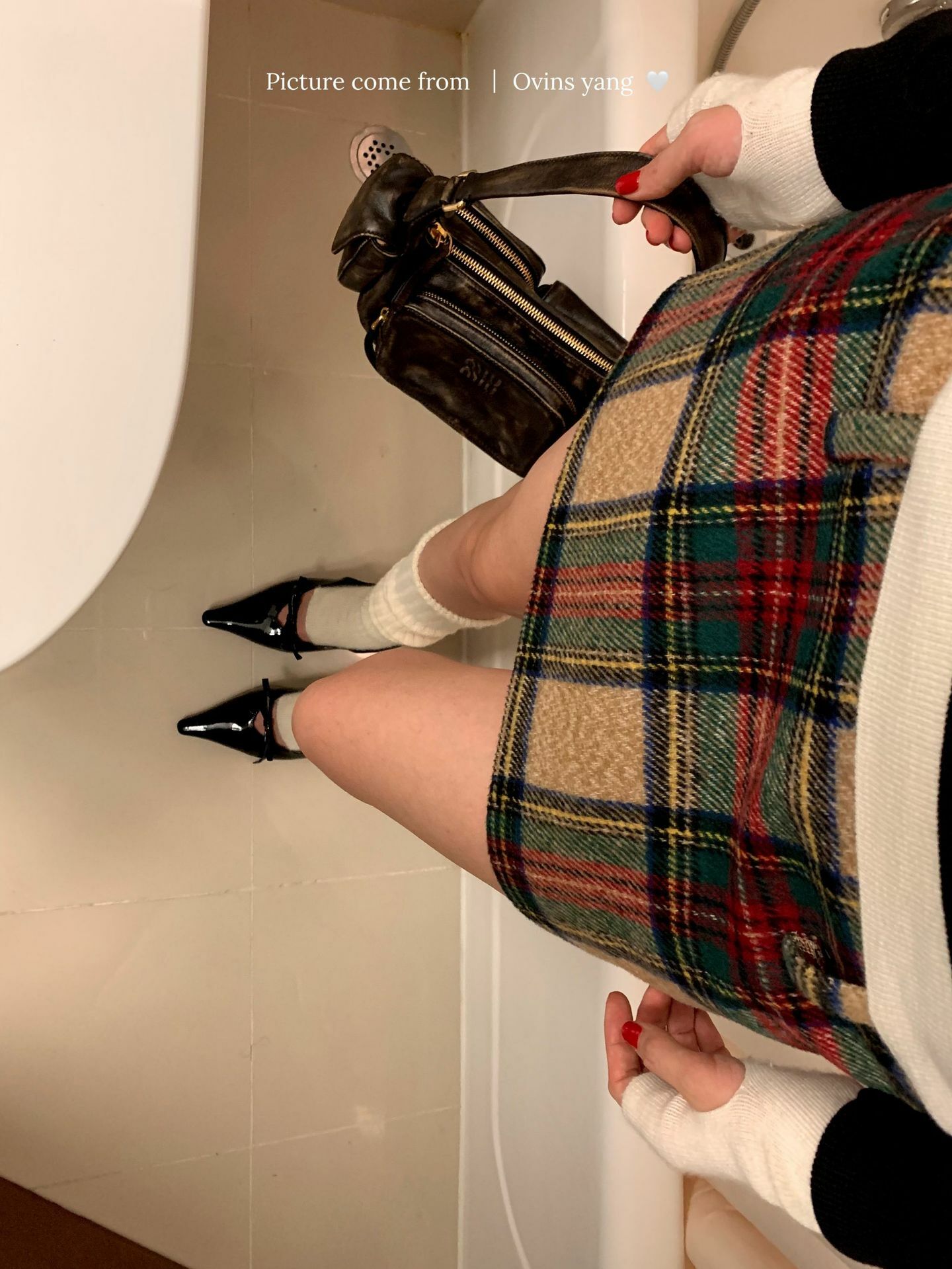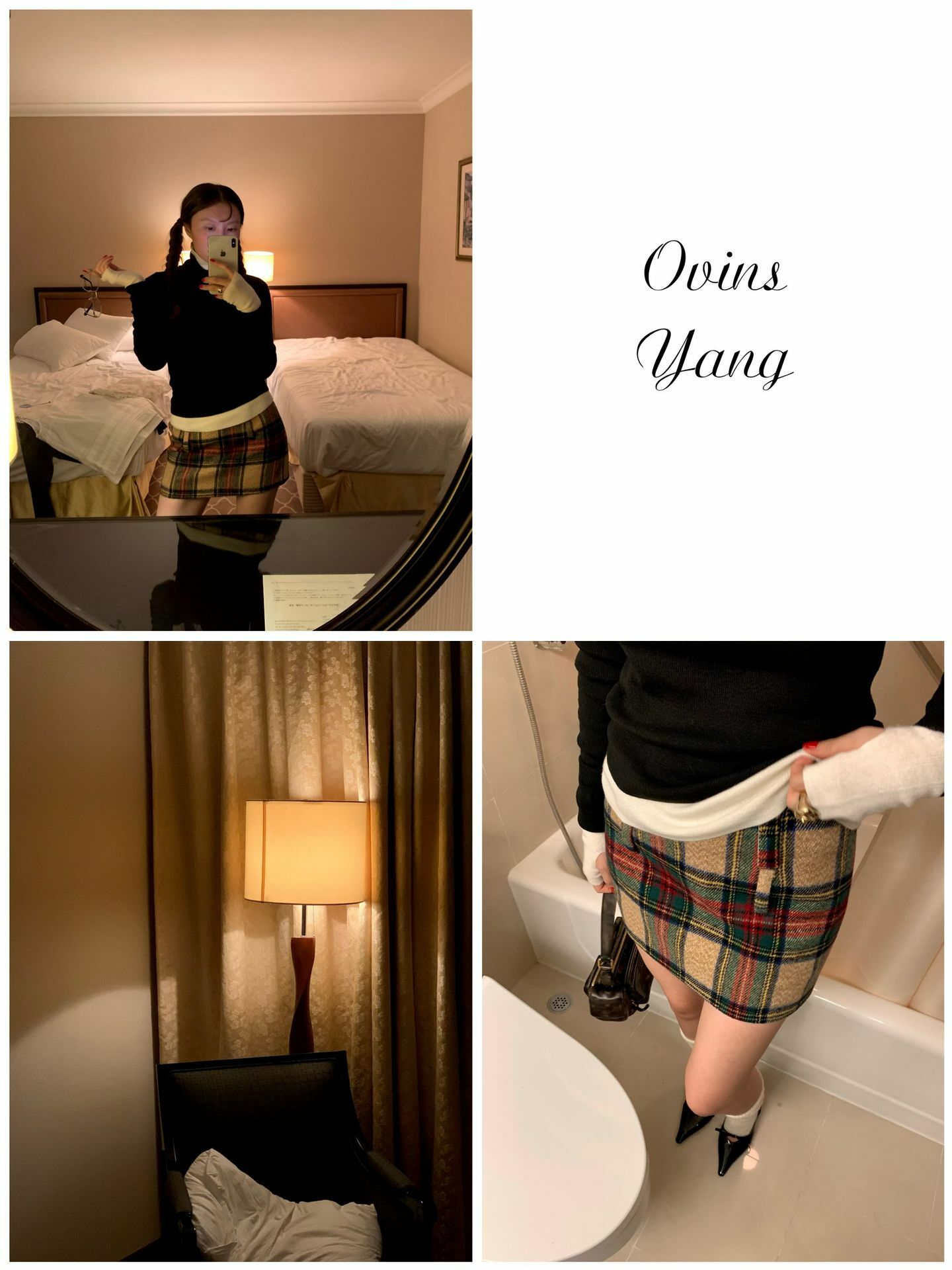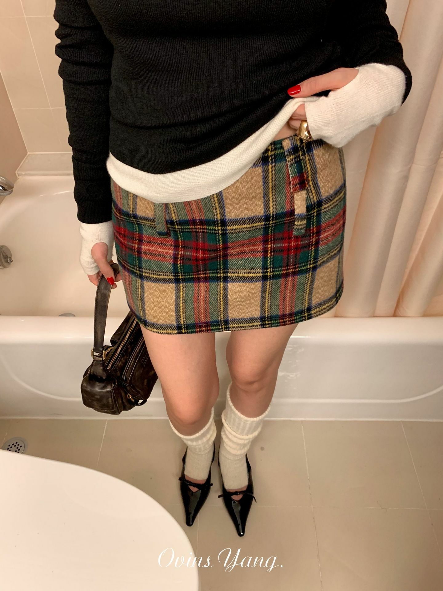 *o-ha-you*【FOY100383】毛呢短裙格紋半身裙秋冬款jk制服學院風A字包臀裙-如有需要請先諮詢